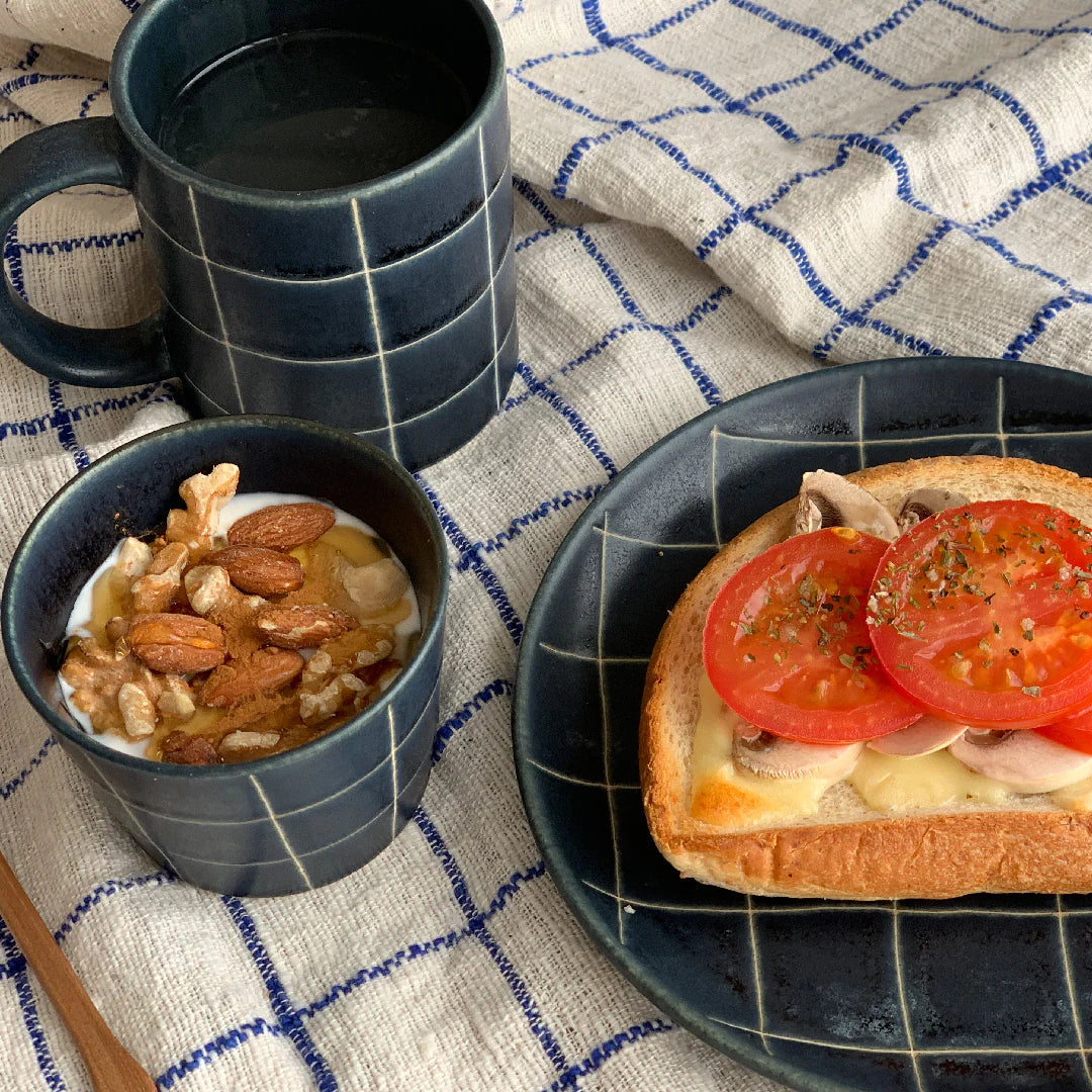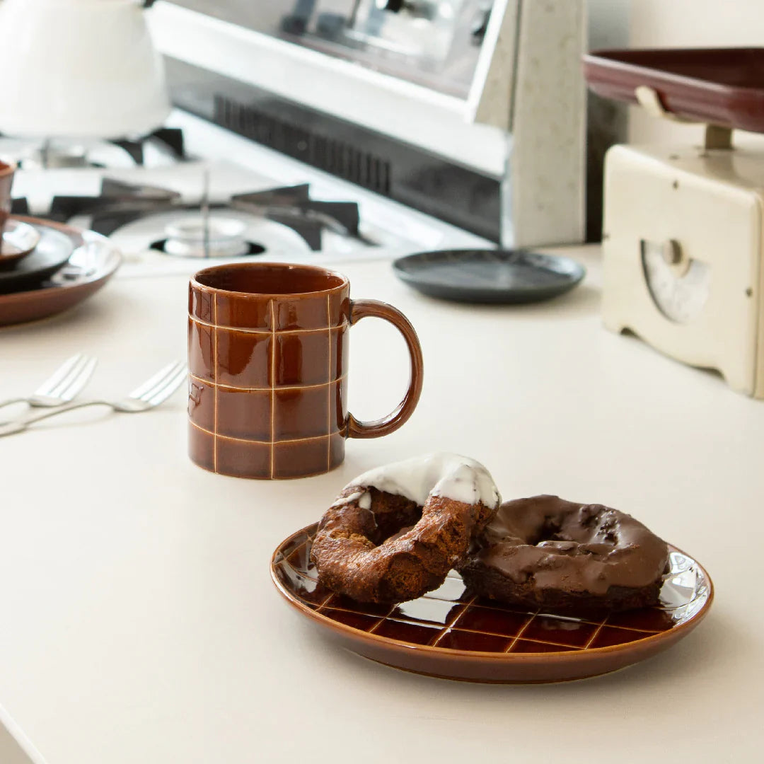 手仕事から生まれる線が温かみを与えるマグレイユール マグは、ワッフルのようなグリッド柄のカップです。たっぷり入る容量で、コーヒーや紅茶に最適。職人の手書きの線が、カフェ空間に温かみを与え、より飲み物を温かく美味しく引き立たせます。