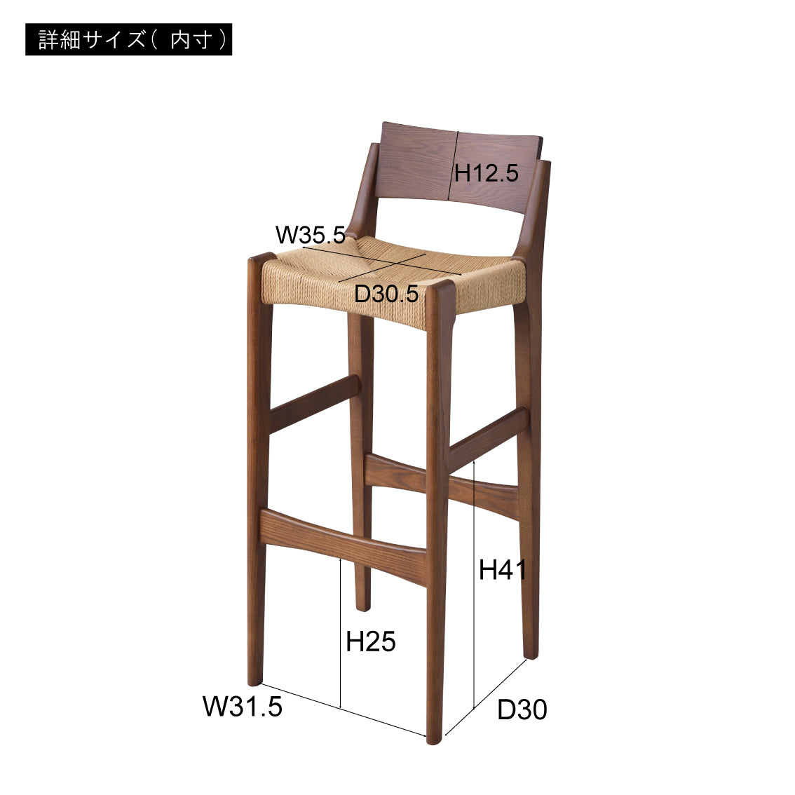北欧のデザイナーズ家具を代表する『ペーパーコード』を採用した、シンプルで上質なハイタイプのチェア。座面の高さは70cmで背もたれが付いているので、ゆったりと座れるカウンター用におすすめのチェア。足置きが付いているので、安定感のある座り心地です。 フレームは木目が美しく人気の高い天然木アッシュ(ウレタン塗装)を使用。座面には、職人が1点1点編み込んで作り上げる『ペーパーコード』を使用。代表的な「封筒編み」と呼ばれる、座面の四辺から中央に向けて集中していくように見えるデザインを採用。