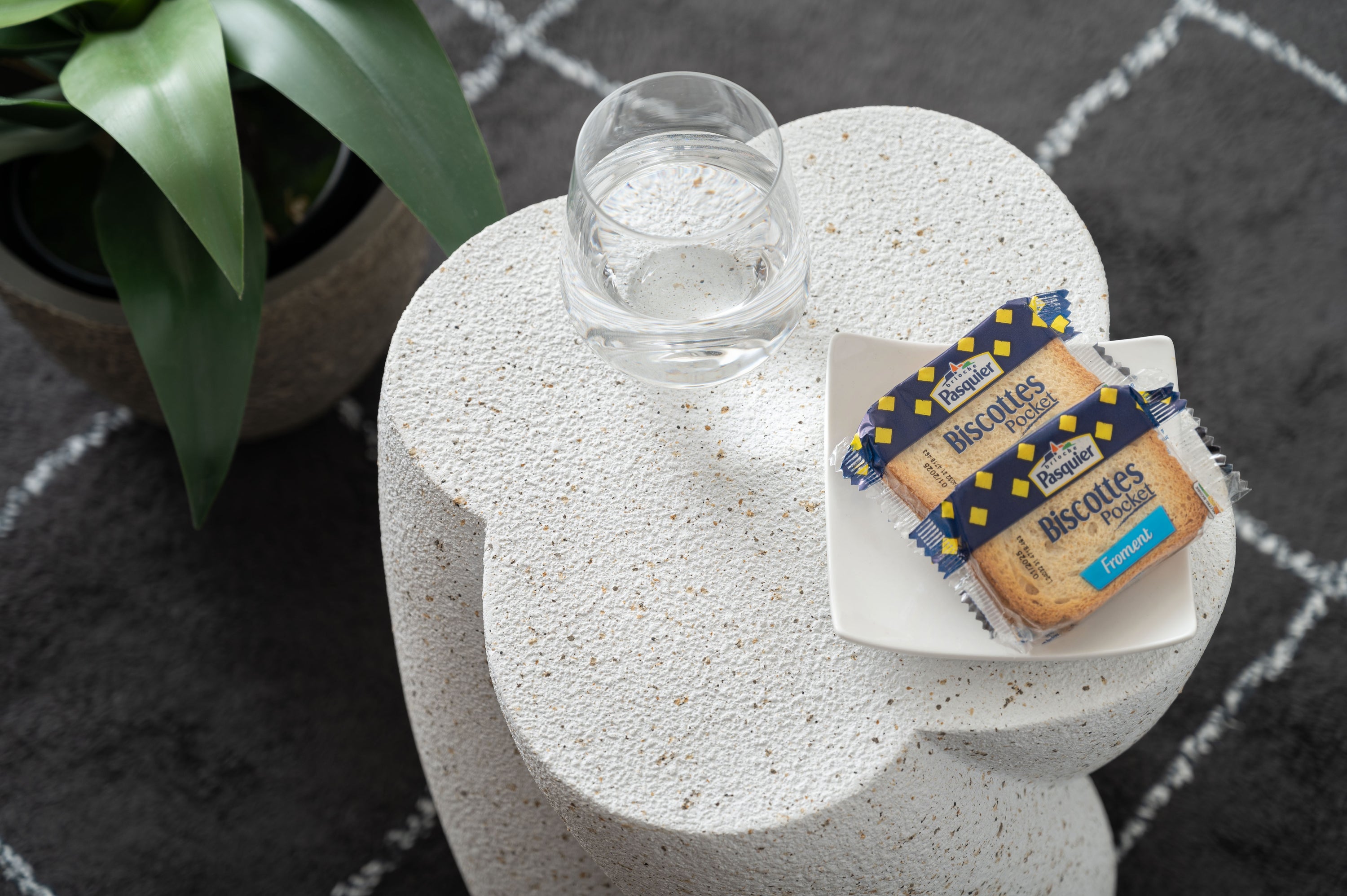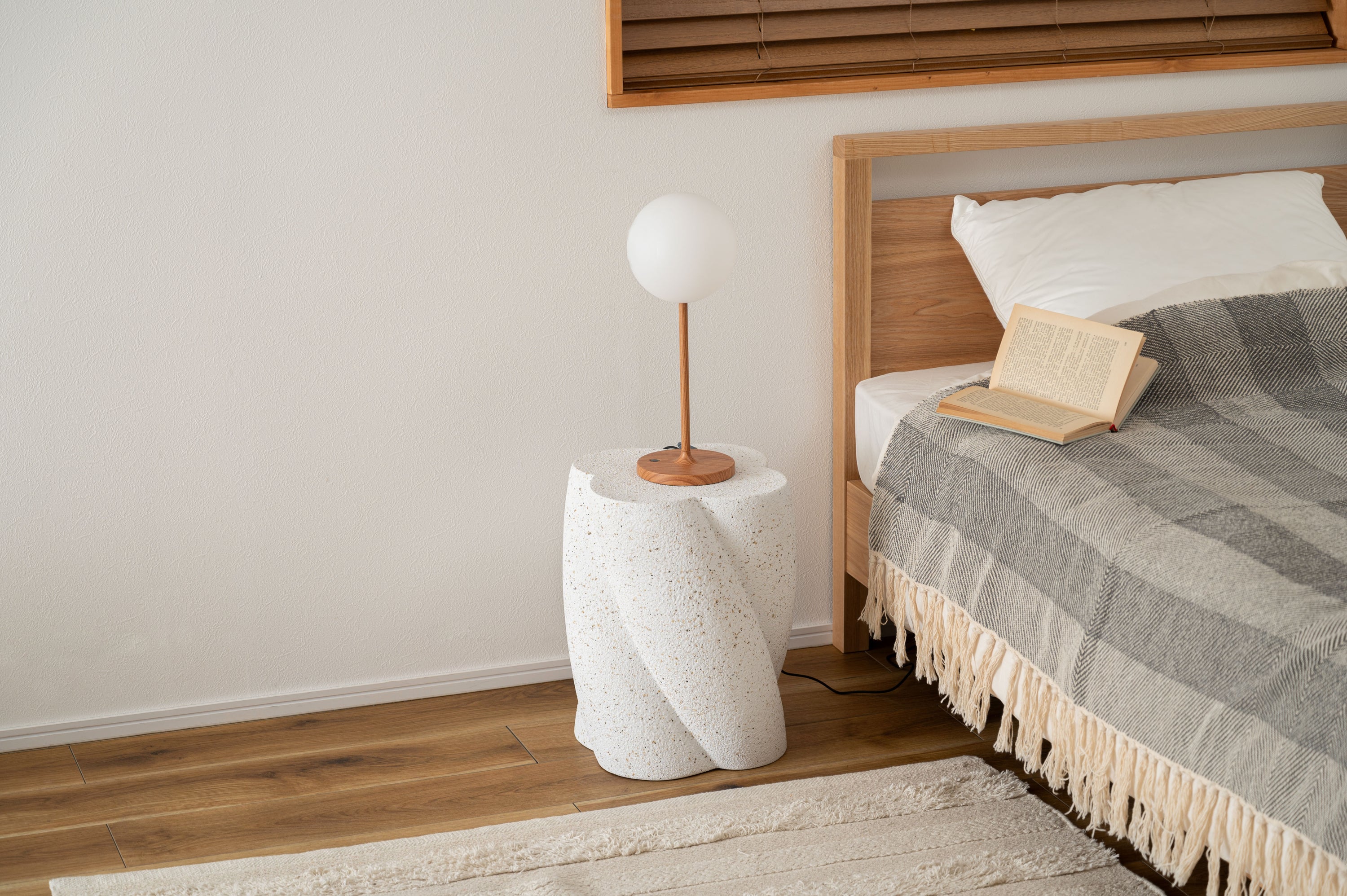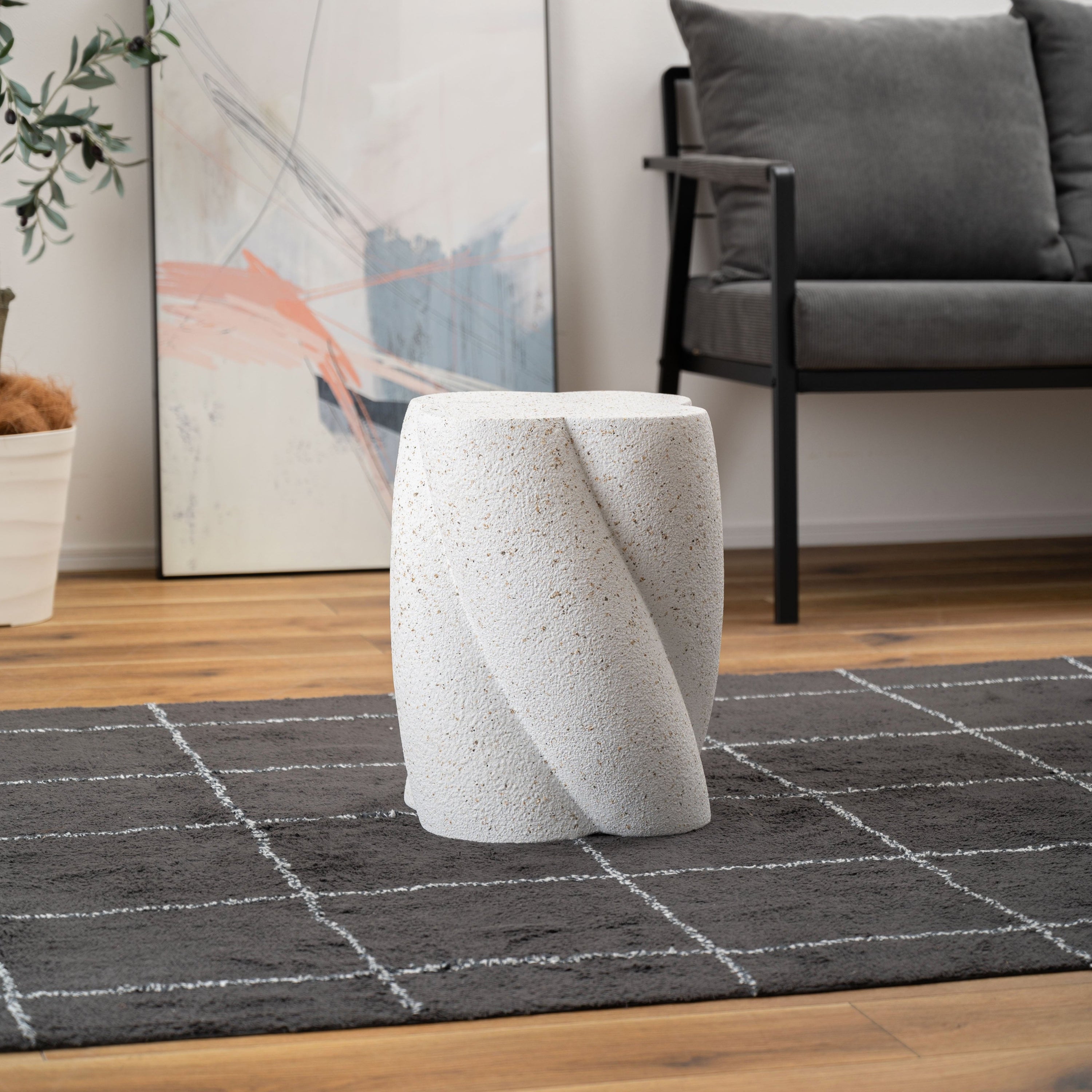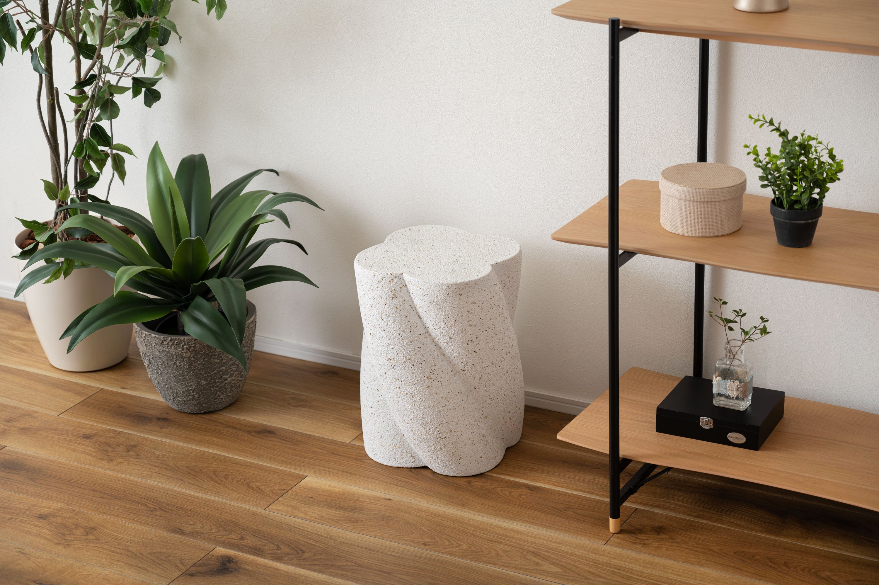 石目調の仕上がりとなっており、表面のざらざらとした質感とユニークな形が特徴のトレンド感があるサイドテーブルです。お部屋に取り入れるだけで、オブジェのようなデザインが空間の魅力を引き立て華やかにします。