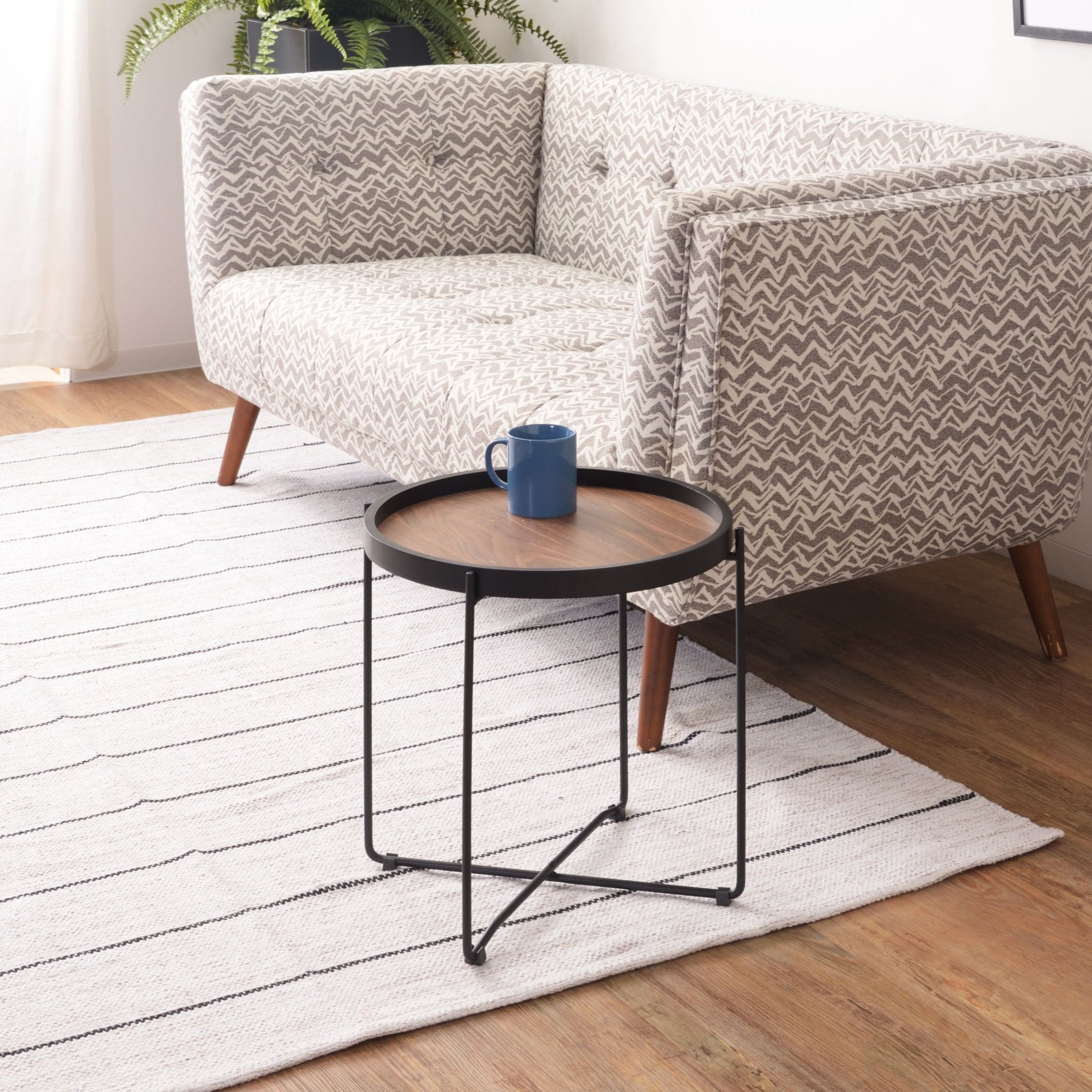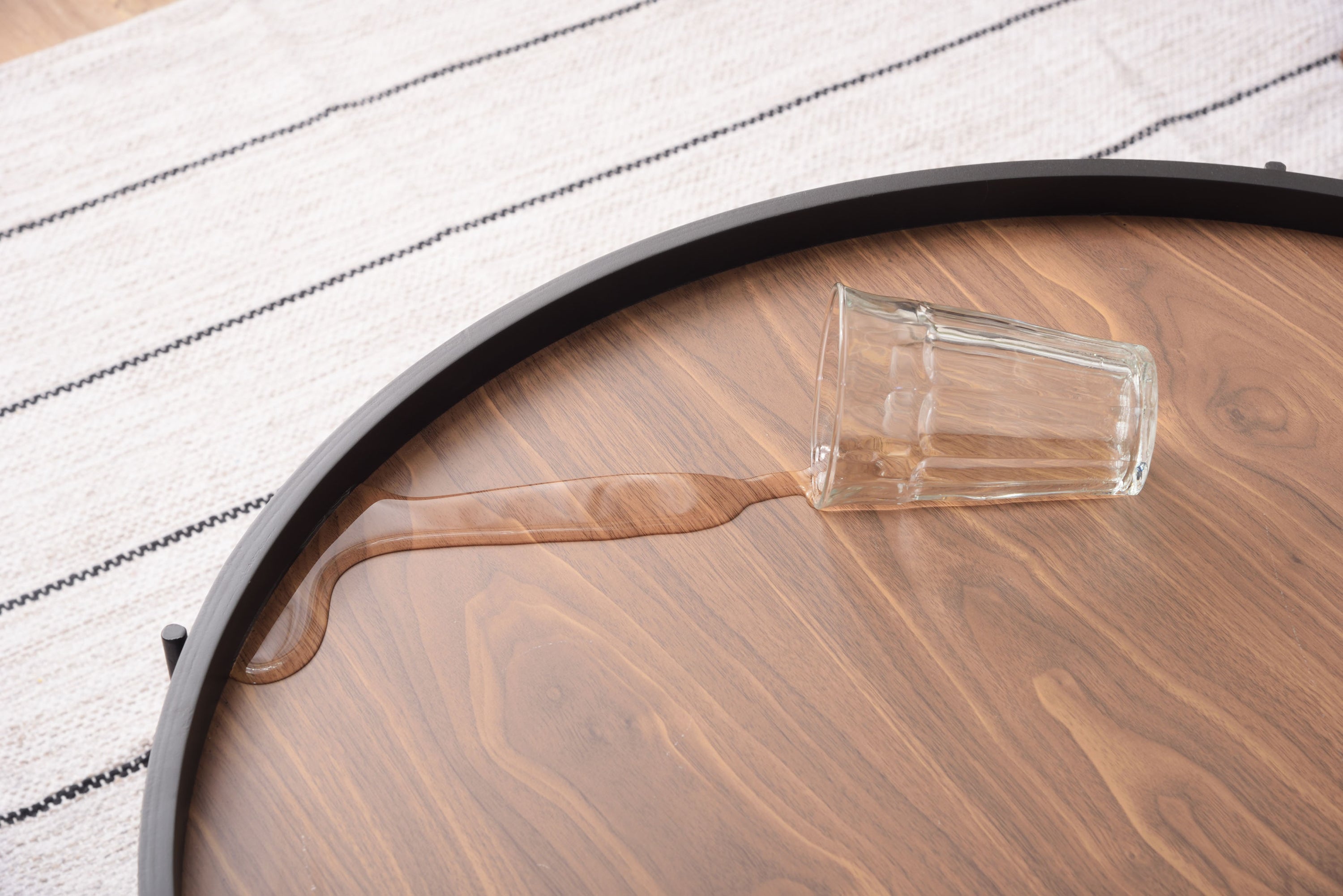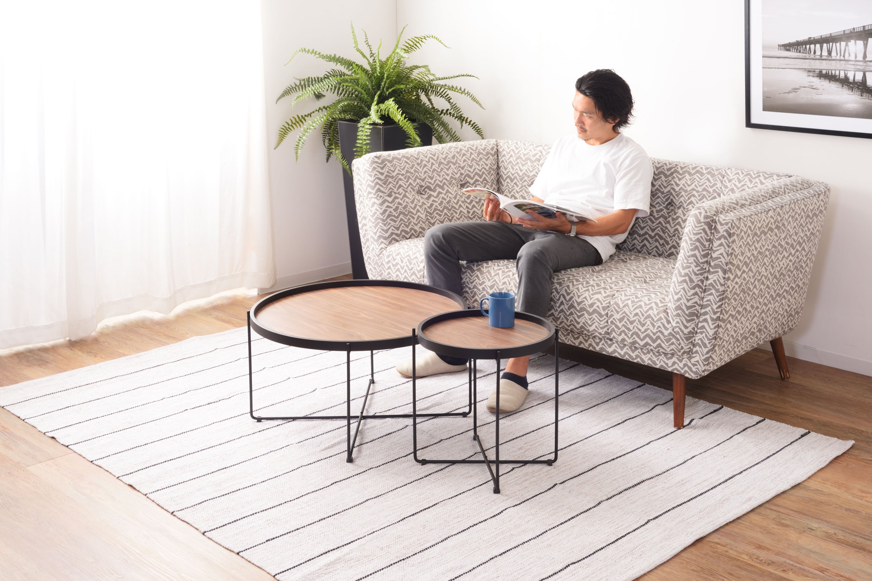 天板が取り外しできるトレーテーブル ミラー天板は外して壁掛けミラーに、木目調天板は外してトレーとして使用できます。 SサイズLサイズ一緒に使用することも可能で、様々なシーンで活躍します。