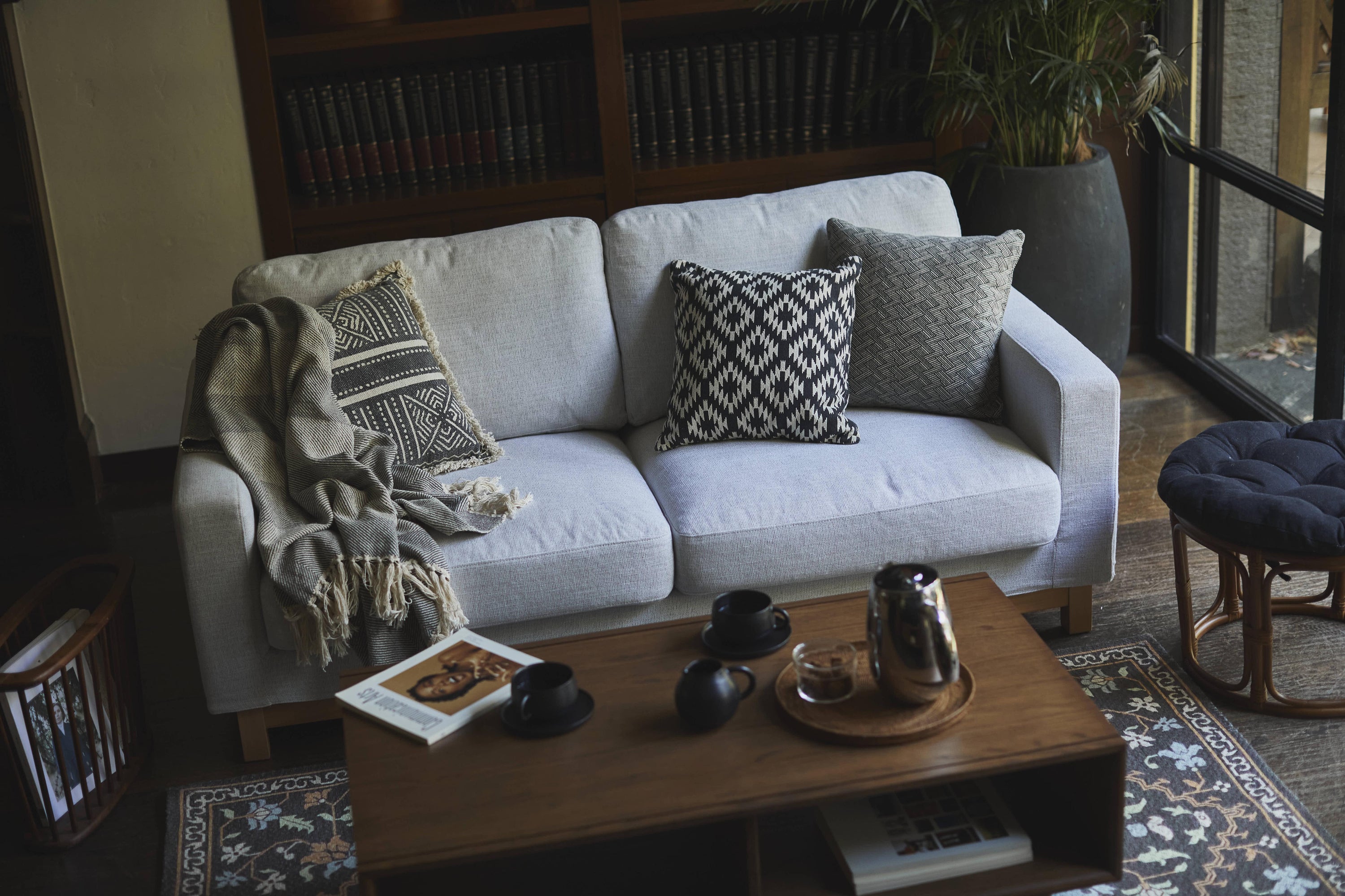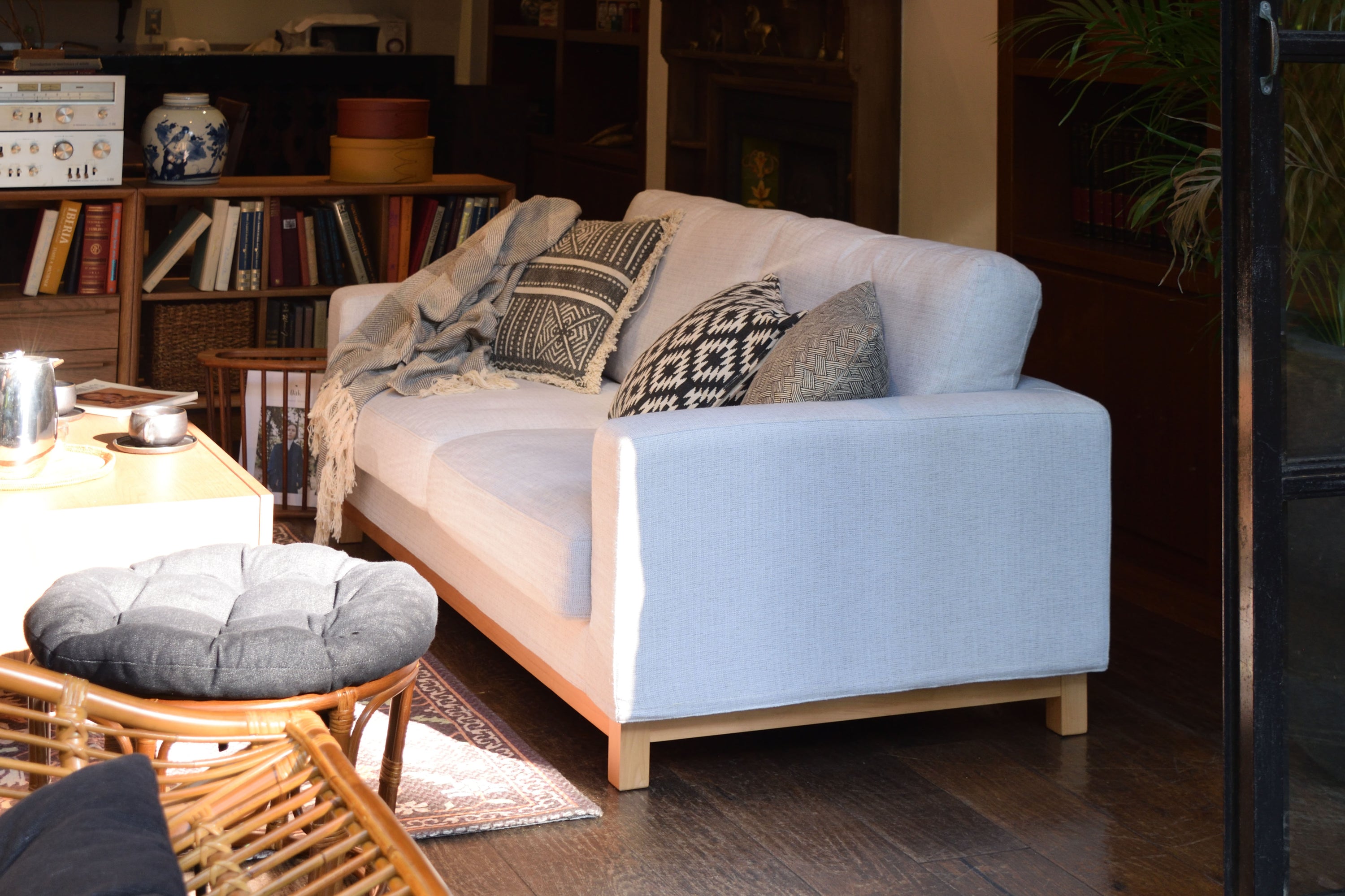 ライフスタイルを選ばない。シンプルで飽きのこないデザインソファ。 しっとりと柔らかな肌触りのファブリックをぜひ素足で体感してください。