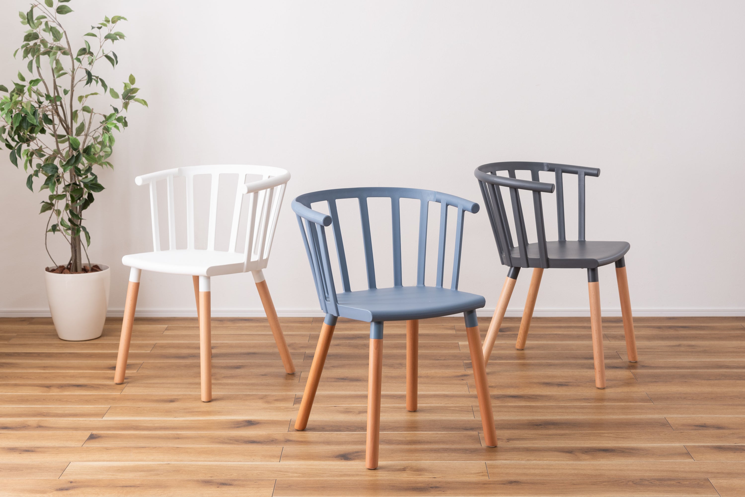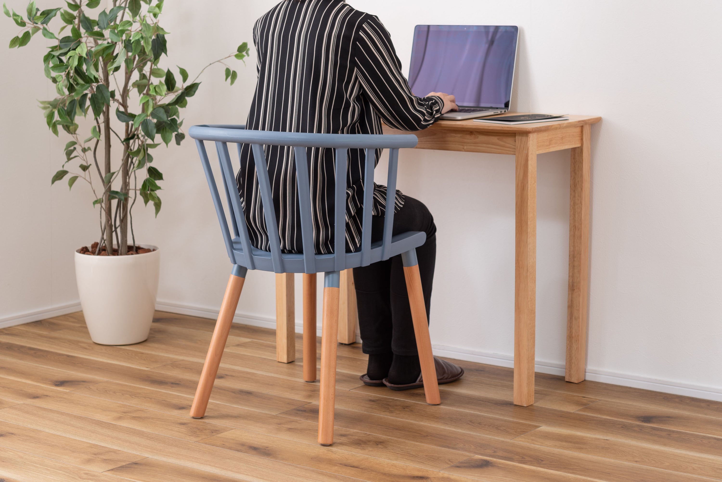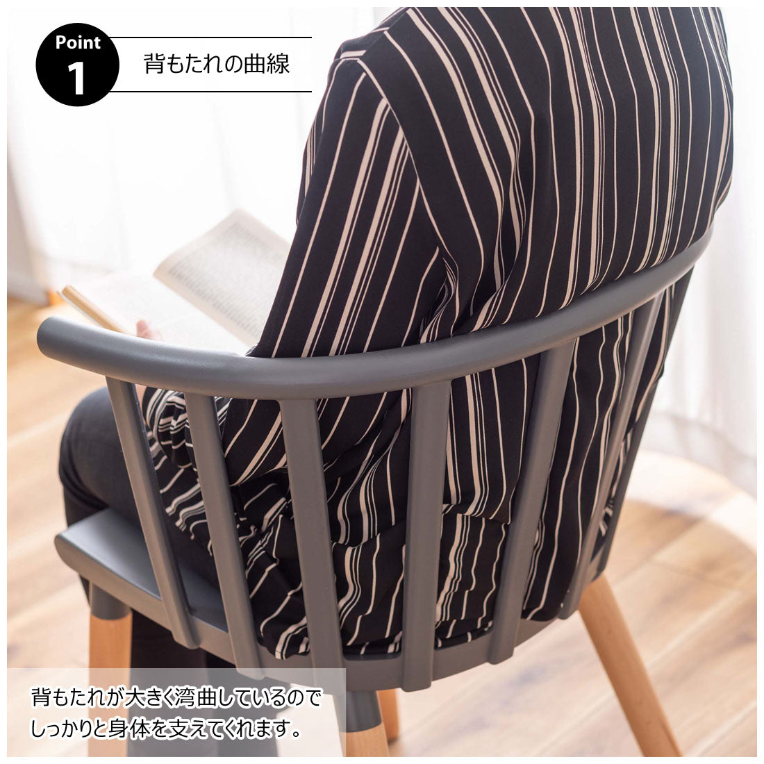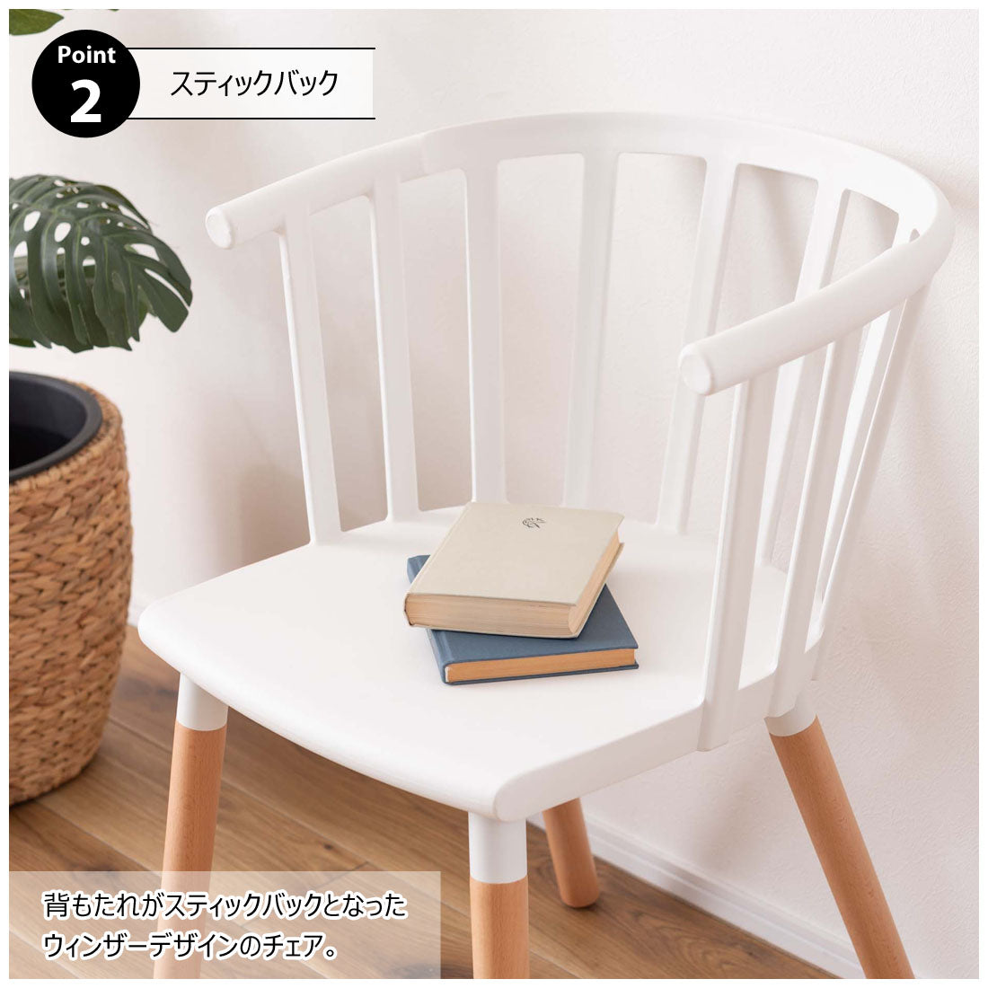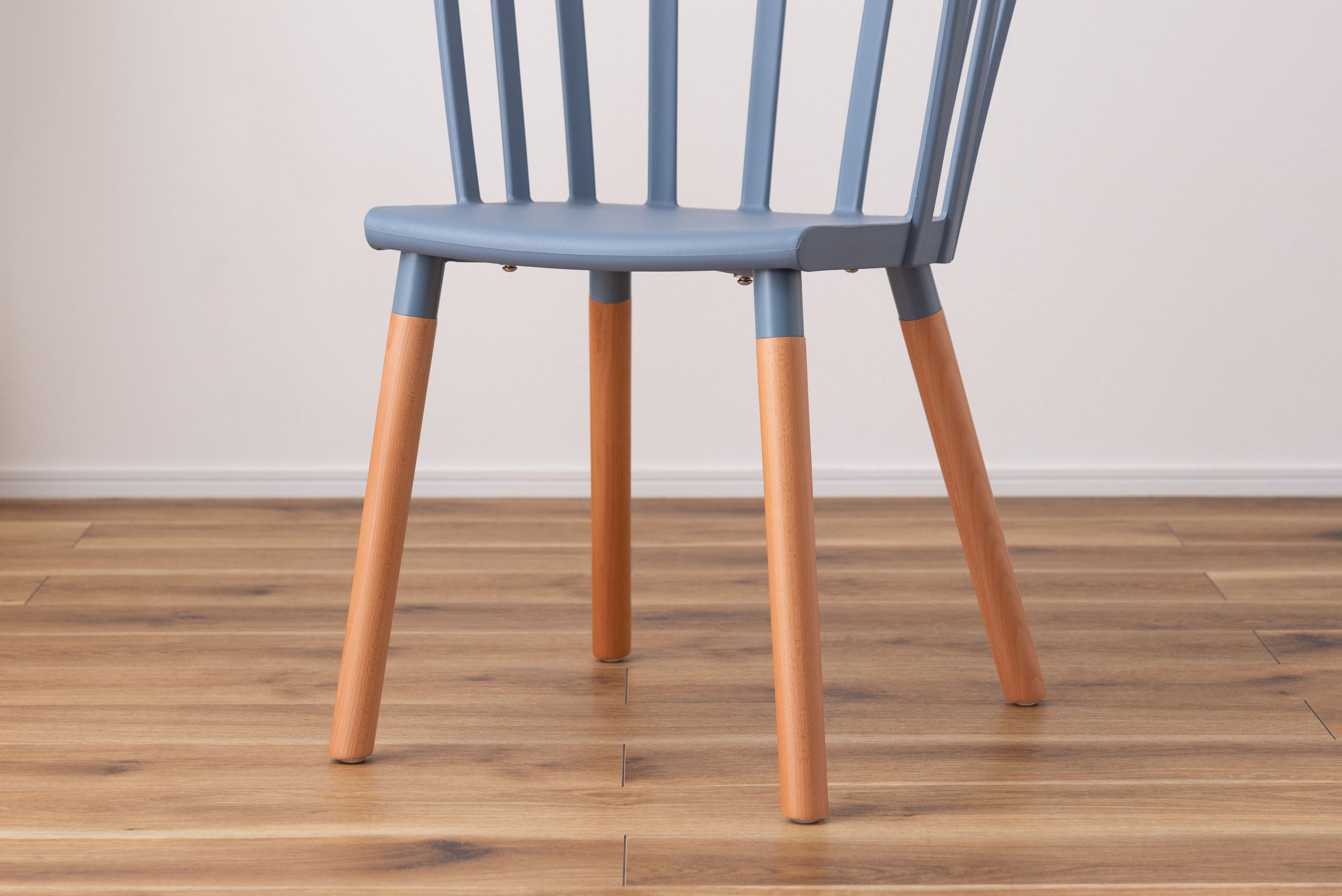 身体を包み込むように支えてくれる、ゆったりとした座り心地のウィンザーデザインチェア。 背もたれが大きく湾曲しているのでしっかりと身体を支えてくれます。 背もたれがスティックバックとなった、ウィンザーデザインのチェア。 脚は繊細で優しい印象の天然木ビーチを使用。 柔らかく八の字に広がる脚は北欧テイストのデザイン。 座面と背もたれは汚れに強くお手入れが簡単なポリプロピレン。 脚先には床への傷防止にもなるパーツ付き。 座面と脚部材を取り付けるだけの簡単組立式。 ダイニングチェアやデスクチェアなどに。