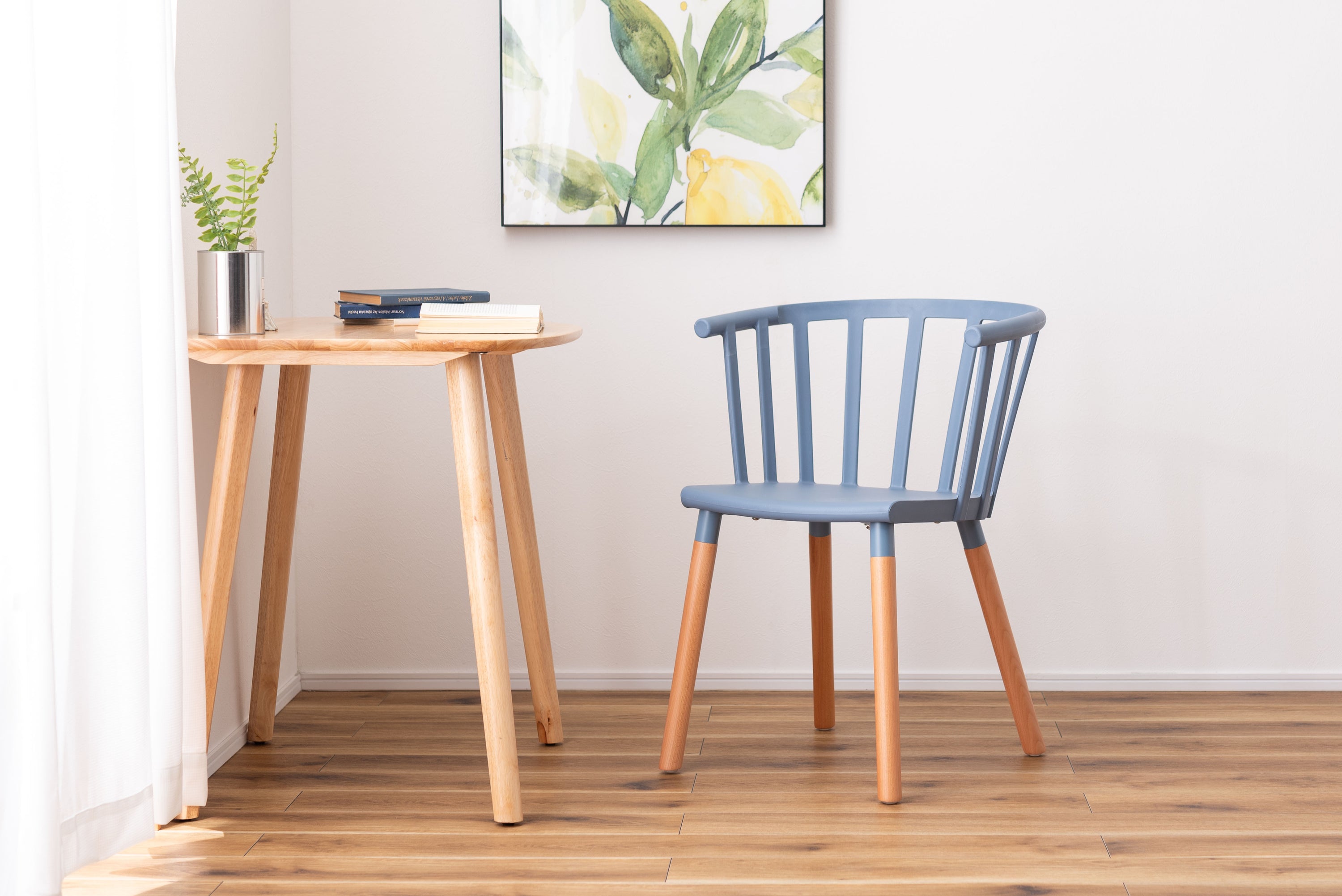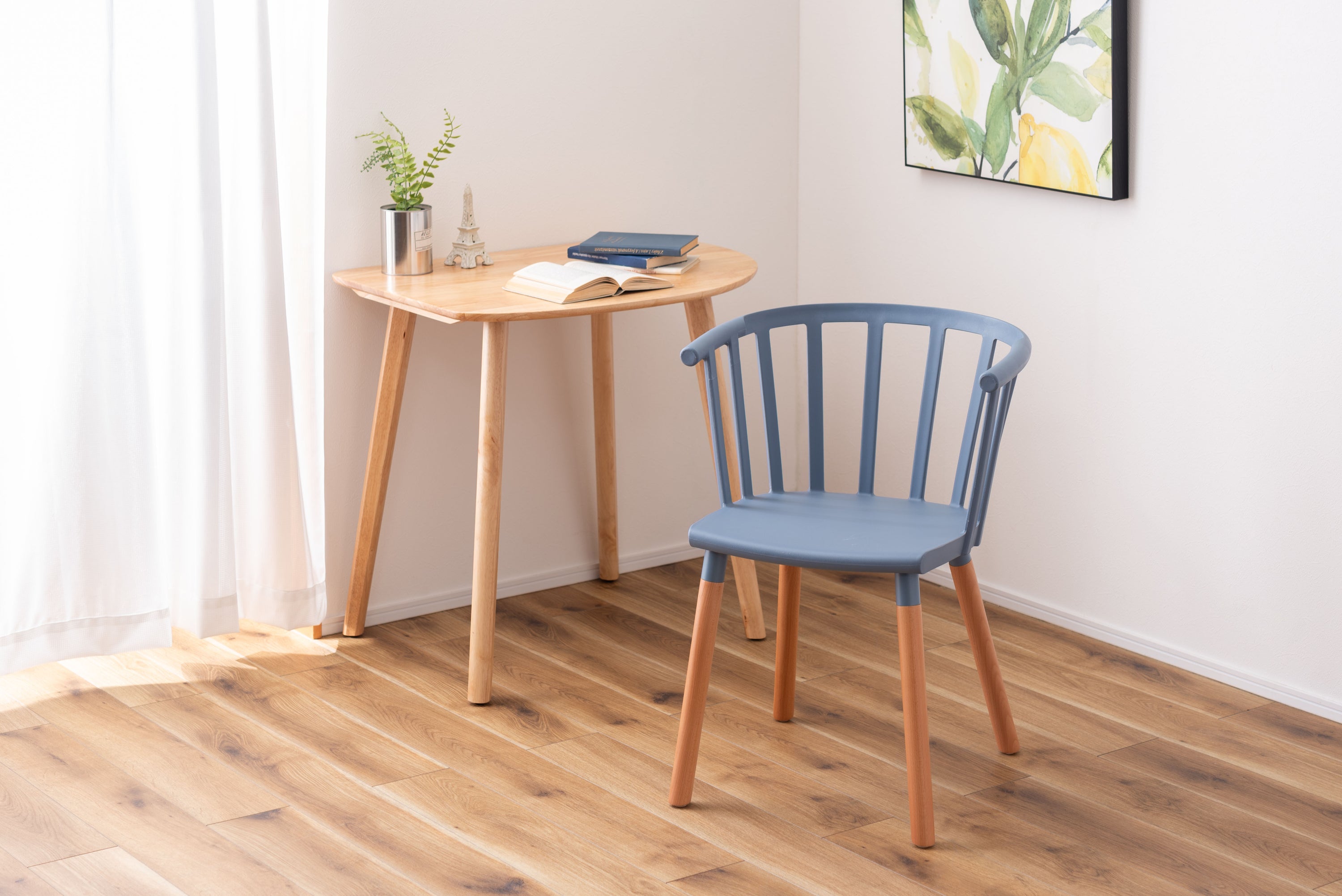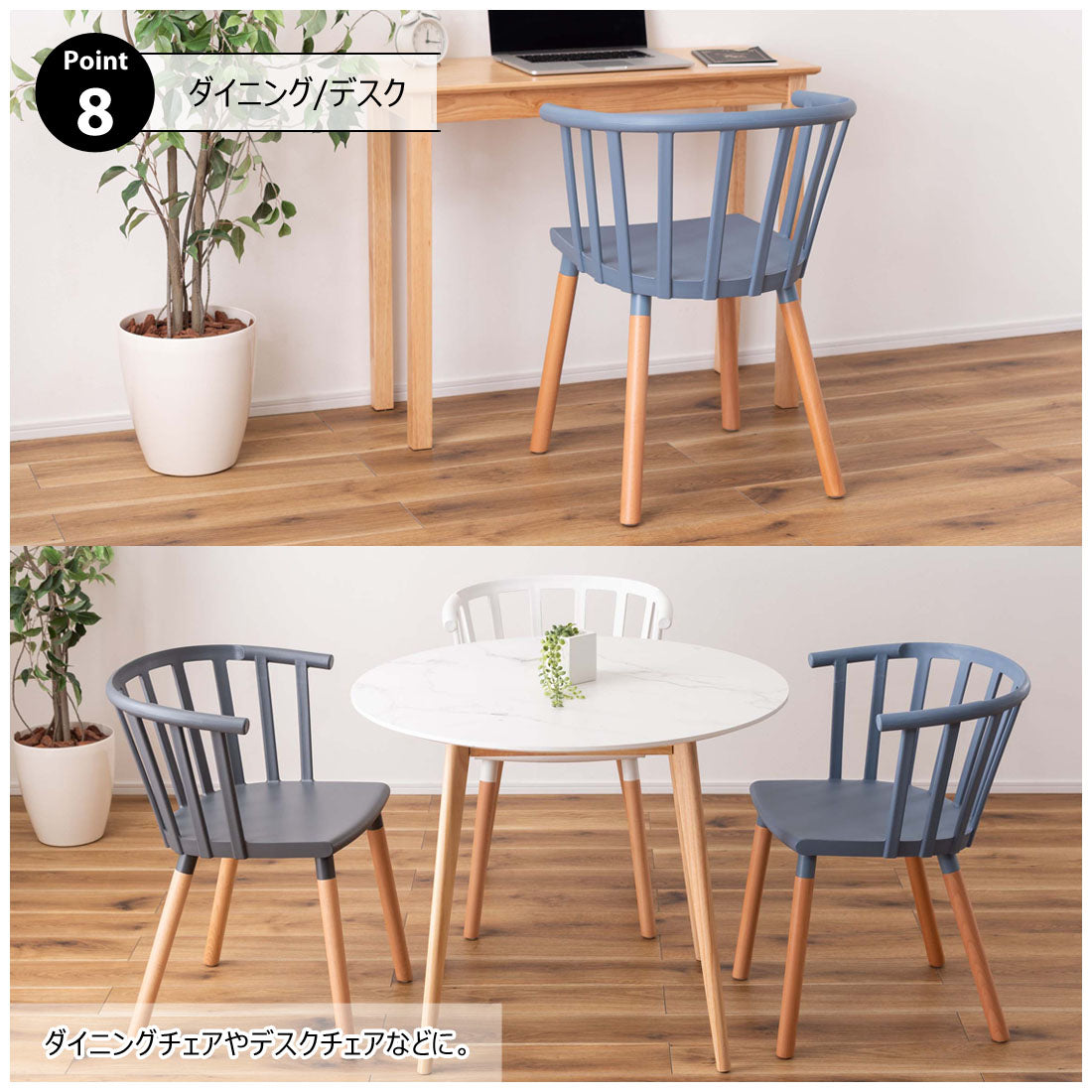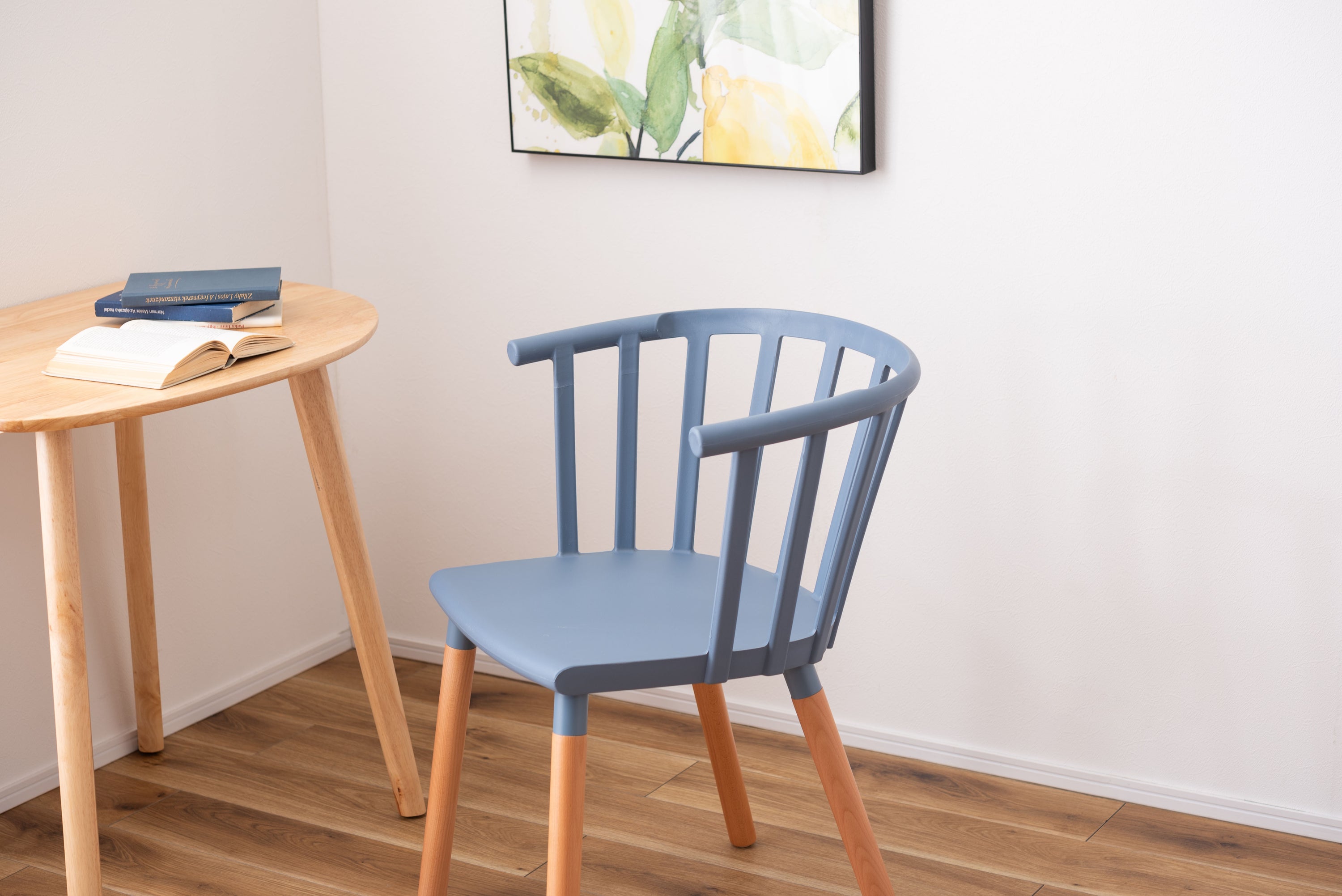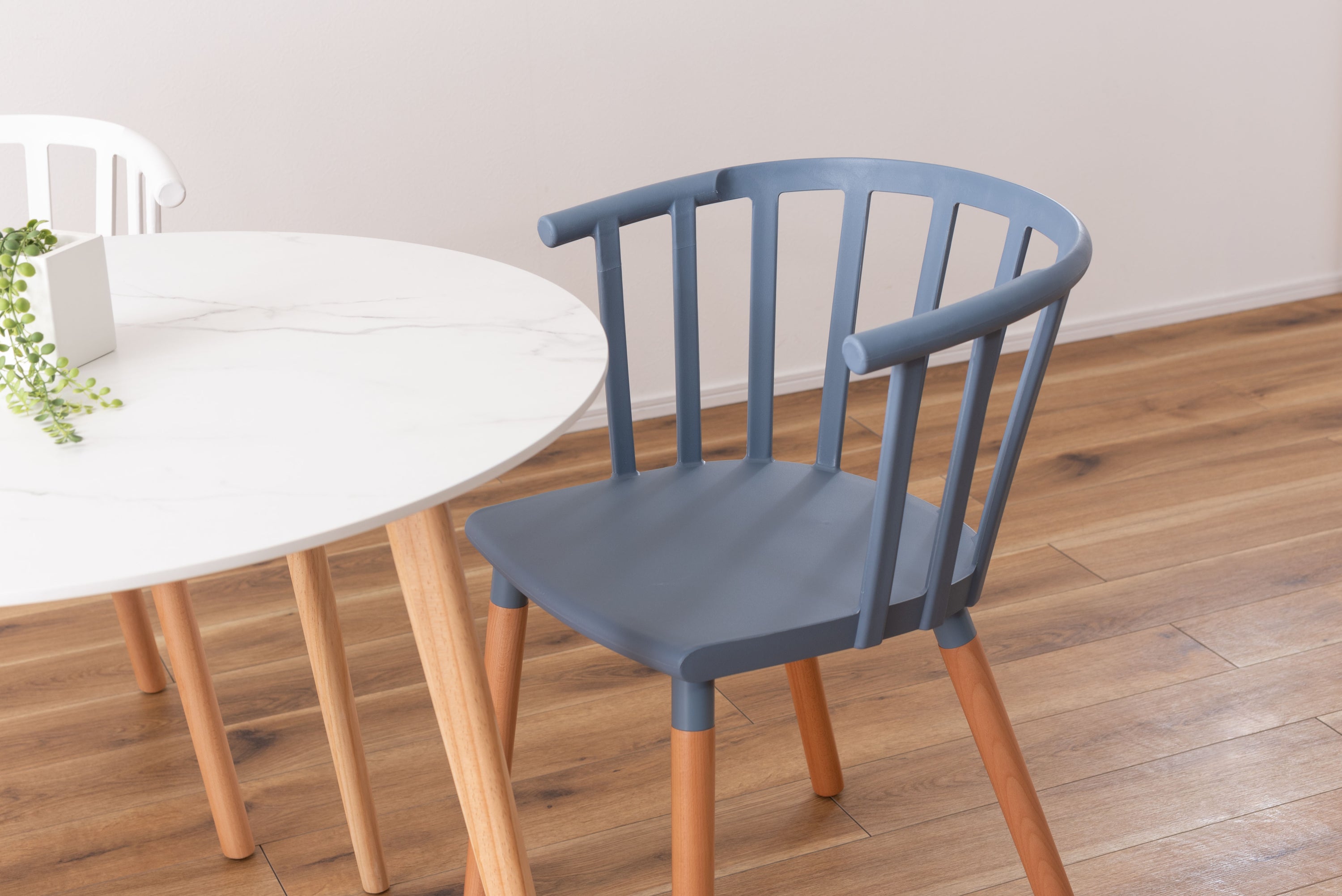 身体を包み込むように支えてくれる、ゆったりとした座り心地のウィンザーデザインチェア。 背もたれが大きく湾曲しているのでしっかりと身体を支えてくれます。 背もたれがスティックバックとなった、ウィンザーデザインのチェア。 脚は繊細で優しい印象の天然木ビーチを使用。 柔らかく八の字に広がる脚は北欧テイストのデザイン。 座面と背もたれは汚れに強くお手入れが簡単なポリプロピレン。 脚先には床への傷防止にもなるパーツ付き。 座面と脚部材を取り付けるだけの簡単組立式。 ダイニングチェアやデスクチェアなどに。
