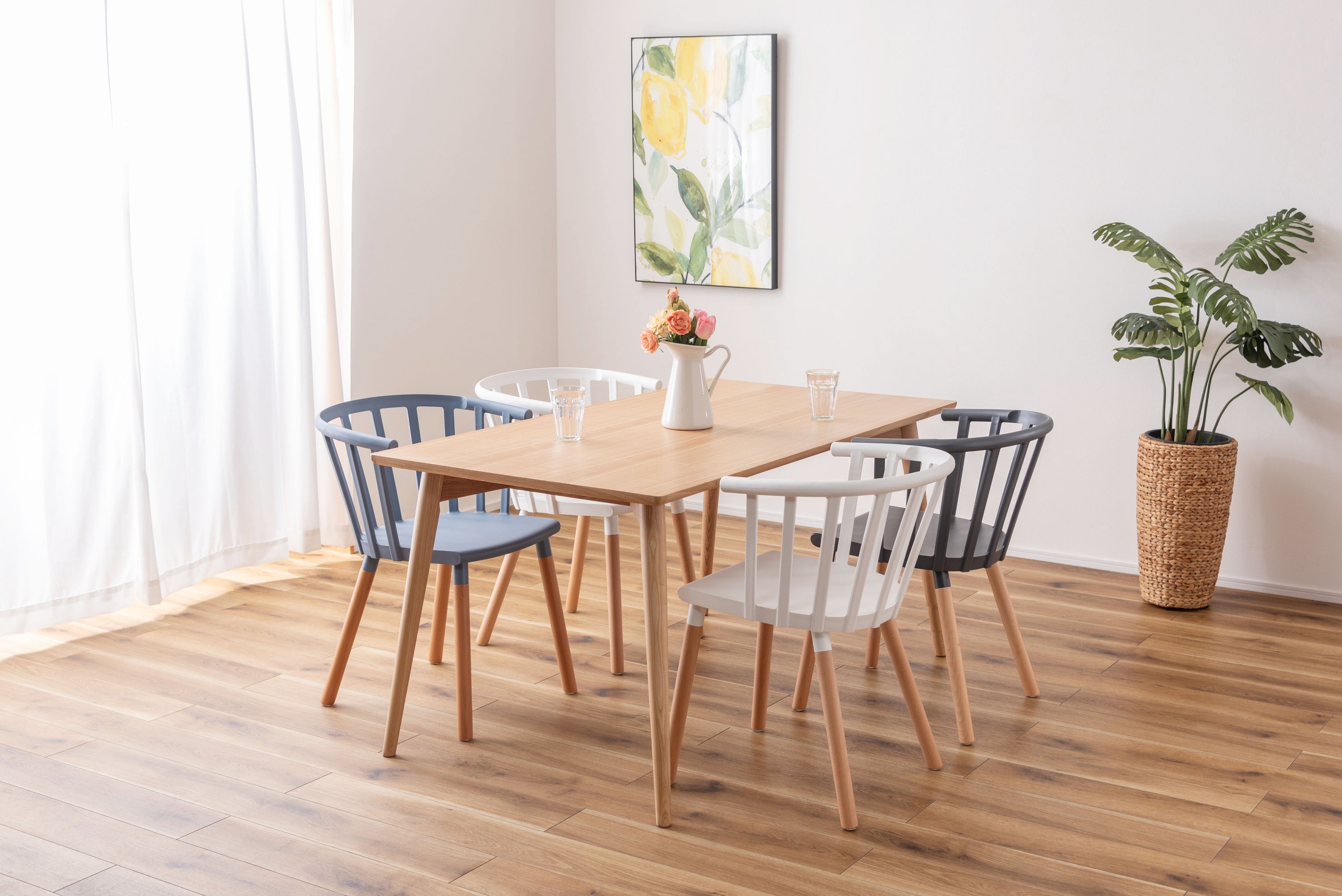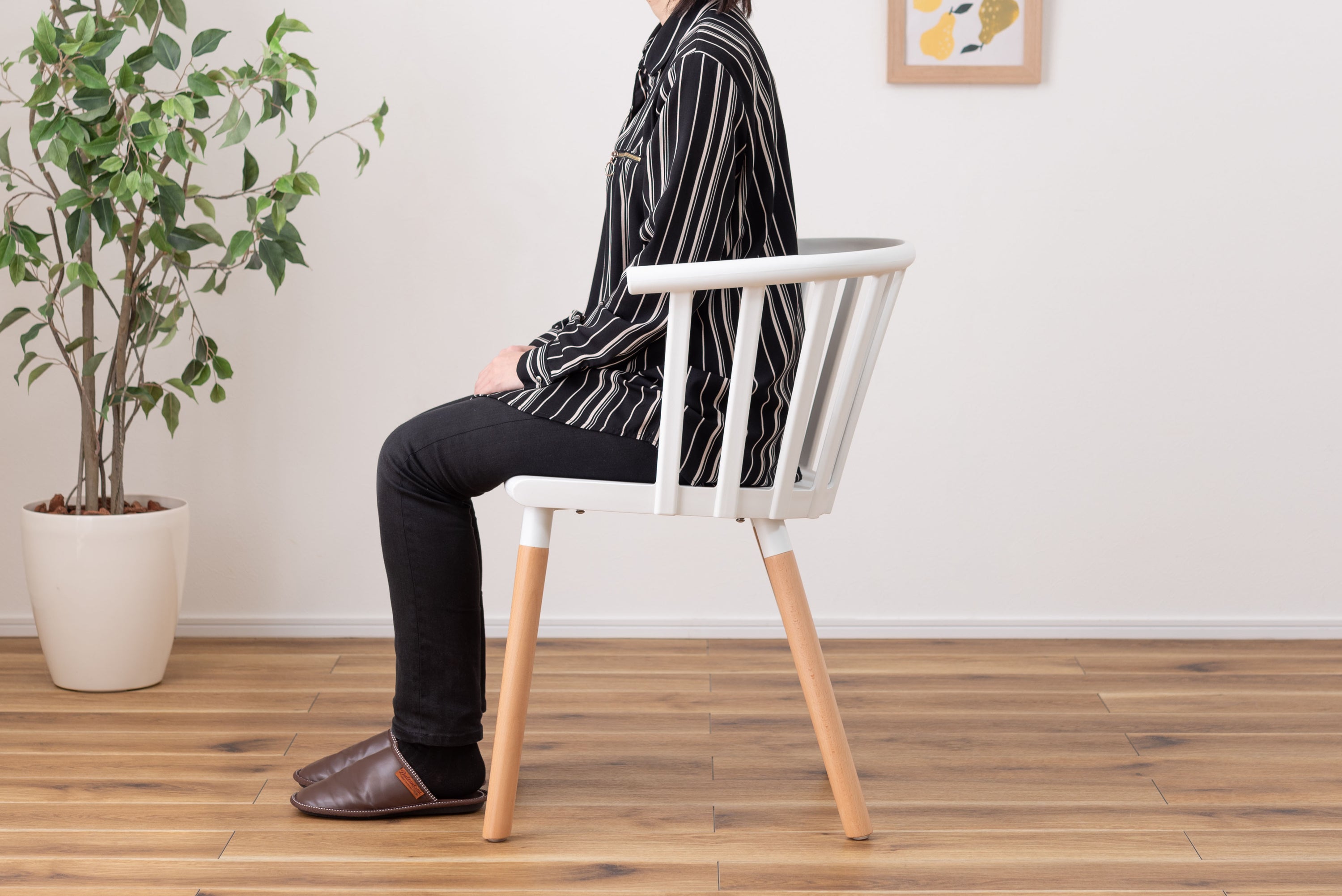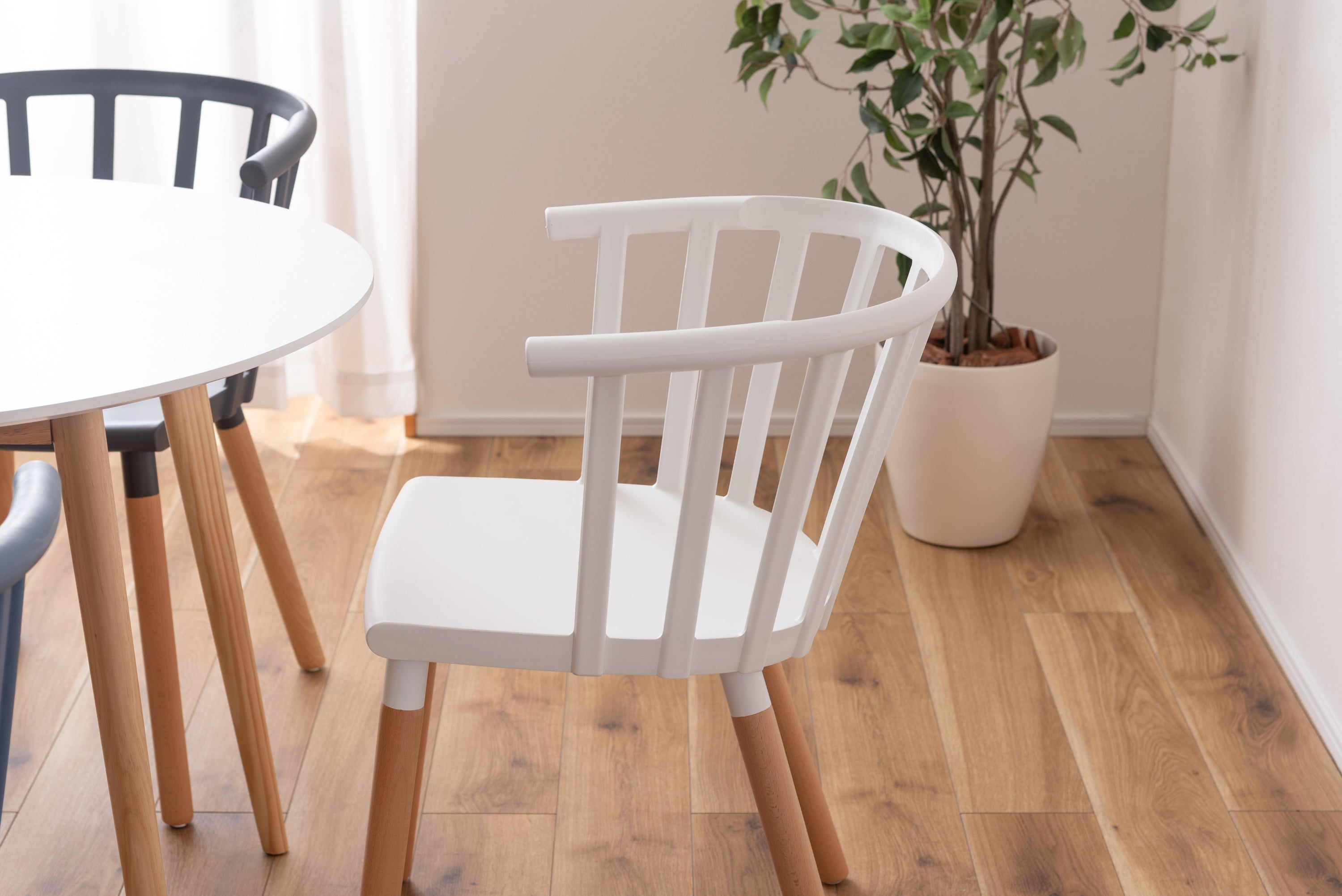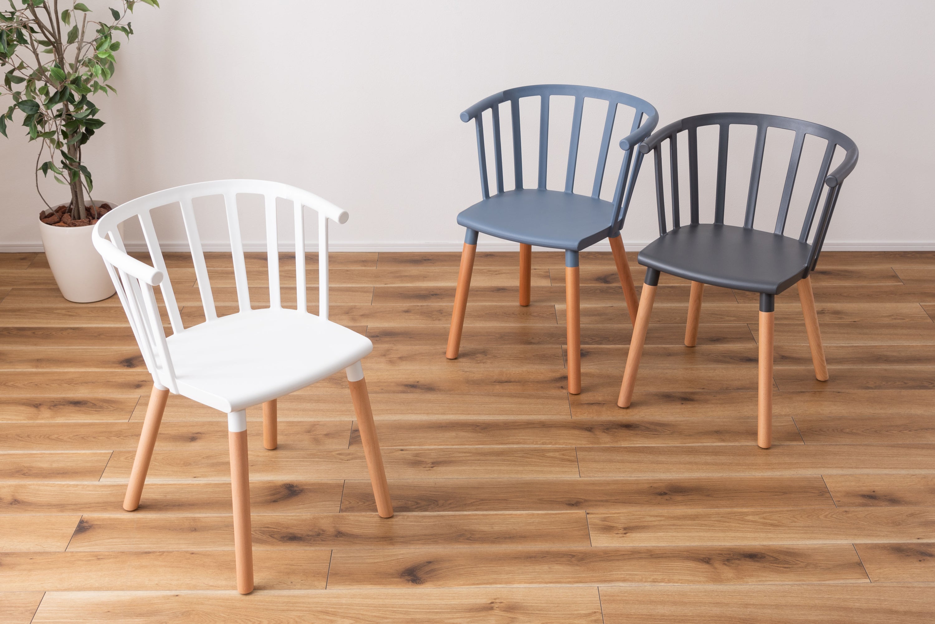 身体を包み込むように支えてくれる、ゆったりとした座り心地のウィンザーデザインチェア。 背もたれが大きく湾曲しているのでしっかりと身体を支えてくれます。 背もたれがスティックバックとなった、ウィンザーデザインのチェア。 脚は繊細で優しい印象の天然木ビーチを使用。 柔らかく八の字に広がる脚は北欧テイストのデザイン。 座面と背もたれは汚れに強くお手入れが簡単なポリプロピレン。 脚先には床への傷防止にもなるパーツ付き。 座面と脚部材を取り付けるだけの簡単組立式。 ダイニングチェアやデスクチェアなどに。