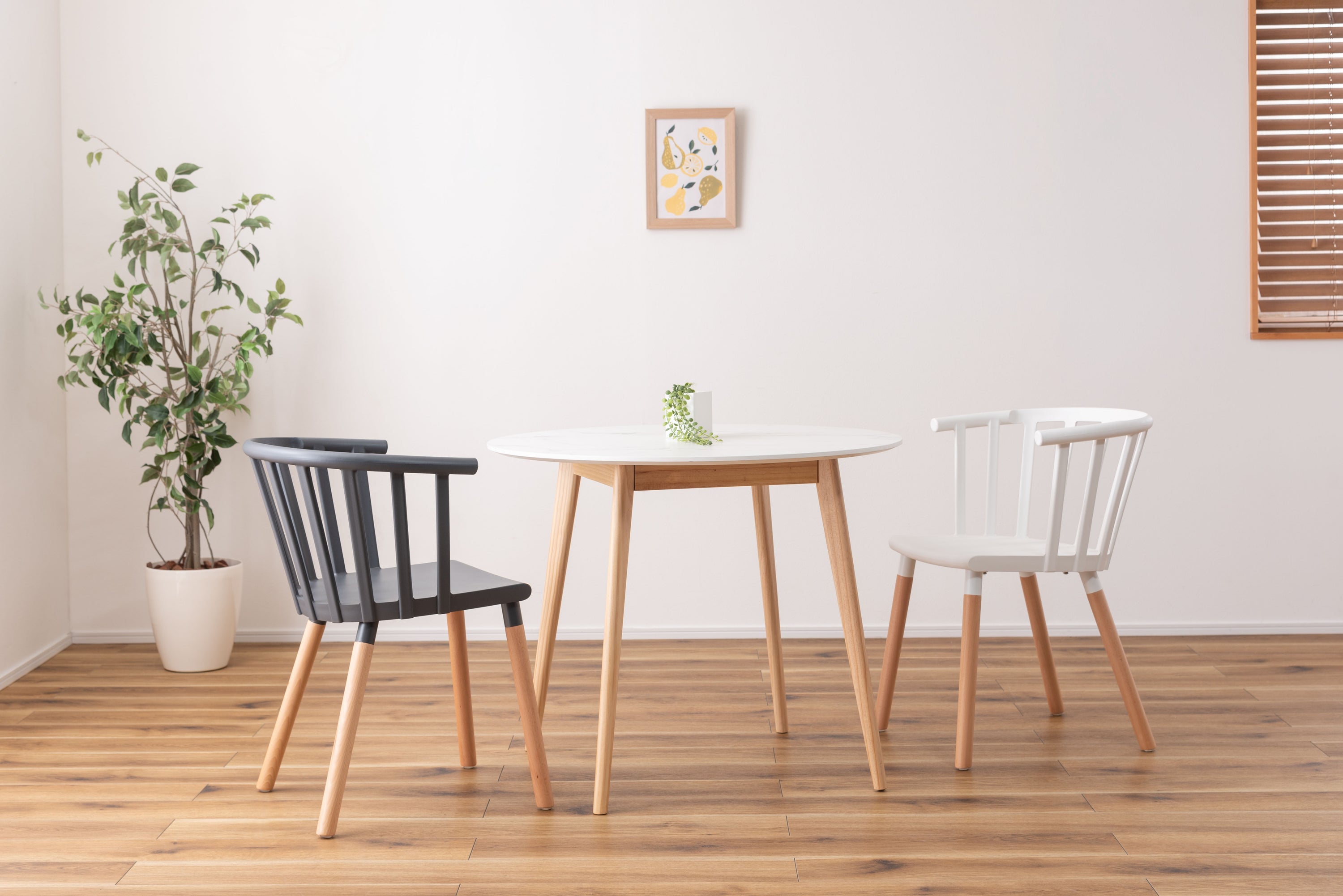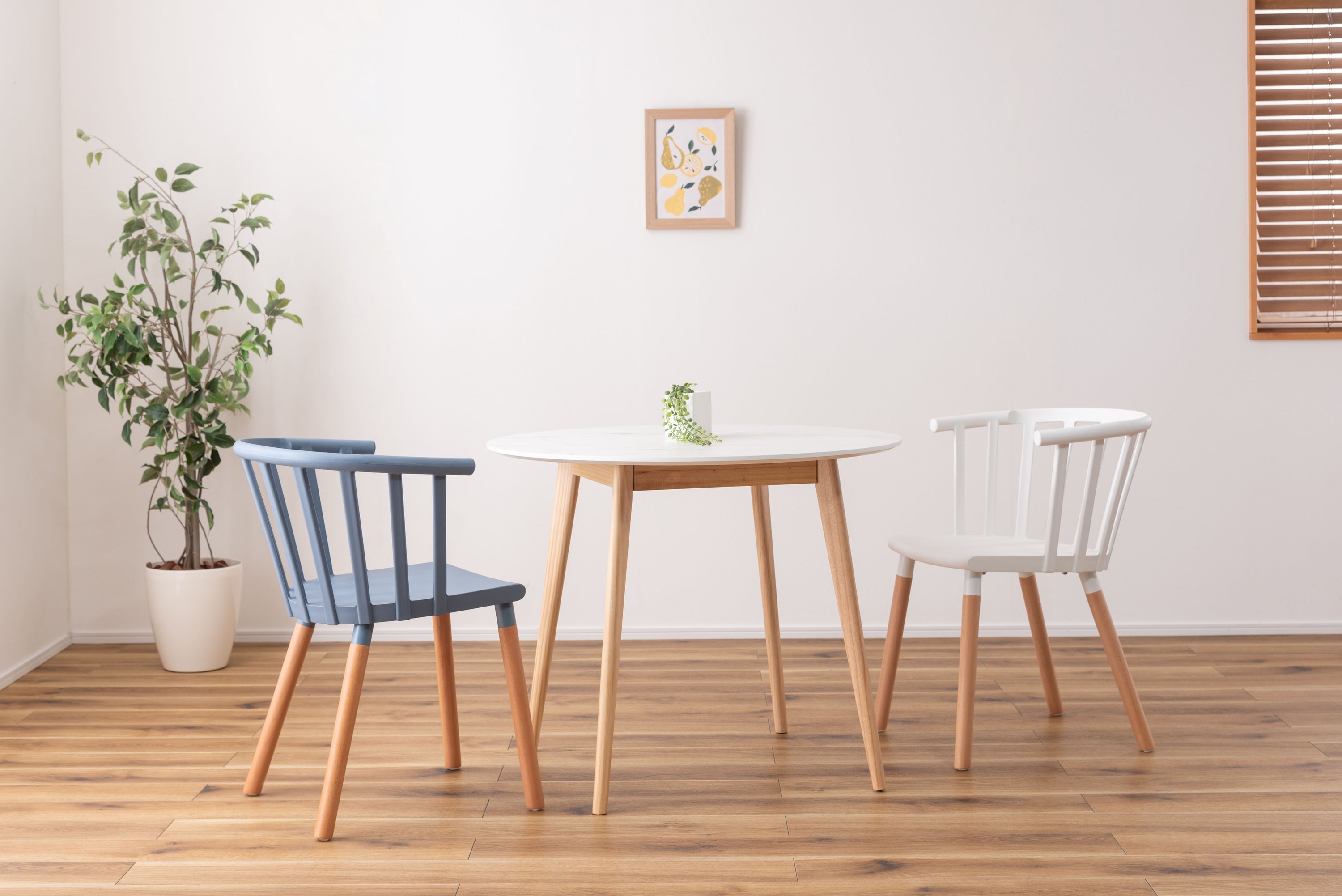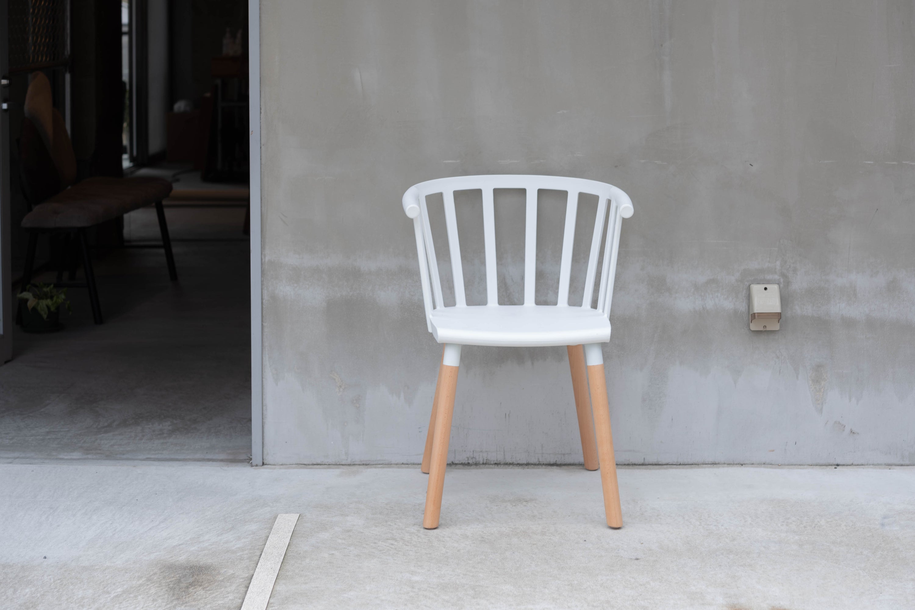 身体を包み込むように支えてくれる、ゆったりとした座り心地のウィンザーデザインチェア。 背もたれが大きく湾曲しているのでしっかりと身体を支えてくれます。 背もたれがスティックバックとなった、ウィンザーデザインのチェア。 脚は繊細で優しい印象の天然木ビーチを使用。 柔らかく八の字に広がる脚は北欧テイストのデザイン。 座面と背もたれは汚れに強くお手入れが簡単なポリプロピレン。 脚先には床への傷防止にもなるパーツ付き。 座面と脚部材を取り付けるだけの簡単組立式。 ダイニングチェアやデスクチェアなどに。
