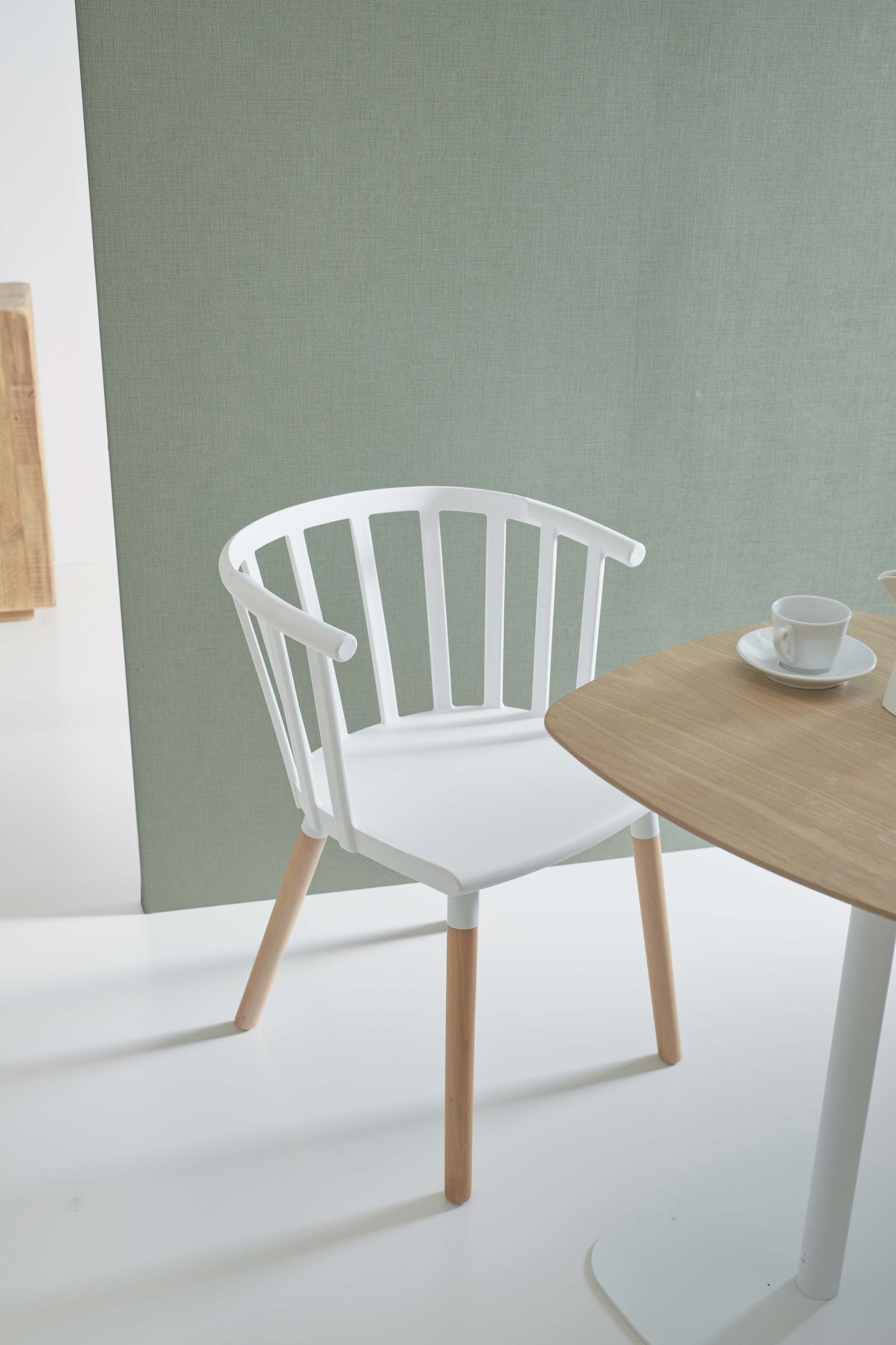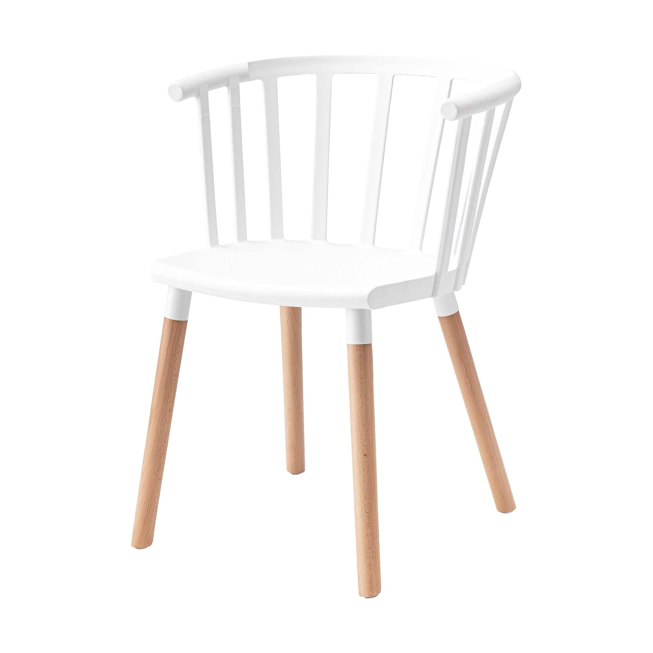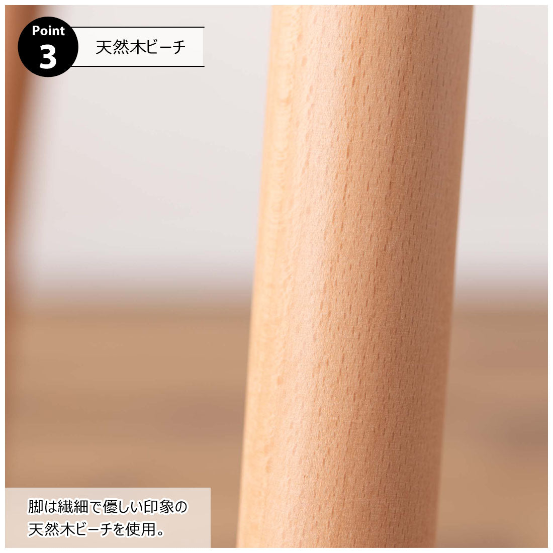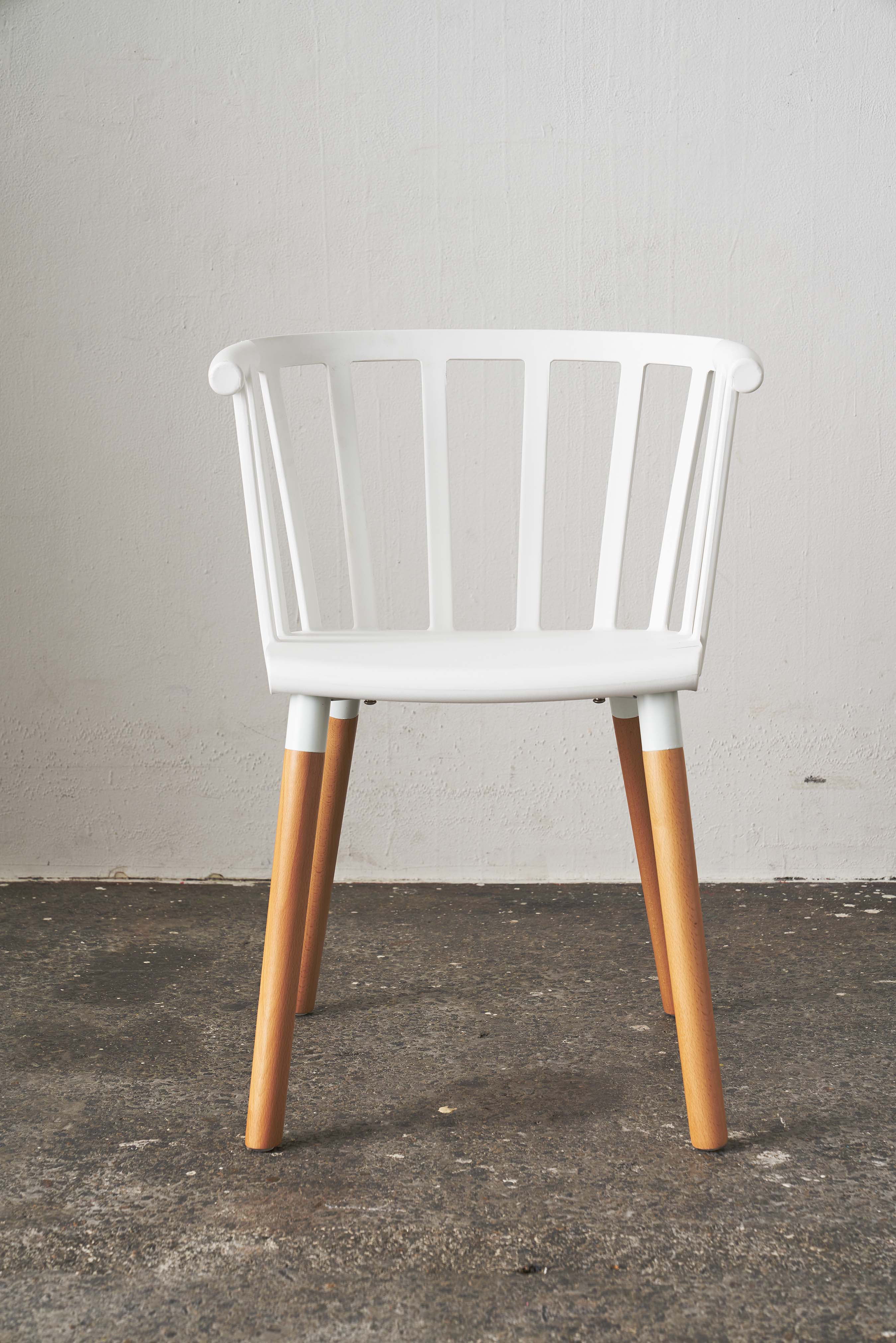 身体を包み込むように支えてくれる、ゆったりとした座り心地のウィンザーデザインチェア。 背もたれが大きく湾曲しているのでしっかりと身体を支えてくれます。 背もたれがスティックバックとなった、ウィンザーデザインのチェア。 脚は繊細で優しい印象の天然木ビーチを使用。 柔らかく八の字に広がる脚は北欧テイストのデザイン。 座面と背もたれは汚れに強くお手入れが簡単なポリプロピレン。 脚先には床への傷防止にもなるパーツ付き。 座面と脚部材を取り付けるだけの簡単組立式。 ダイニングチェアやデスクチェアなどに。