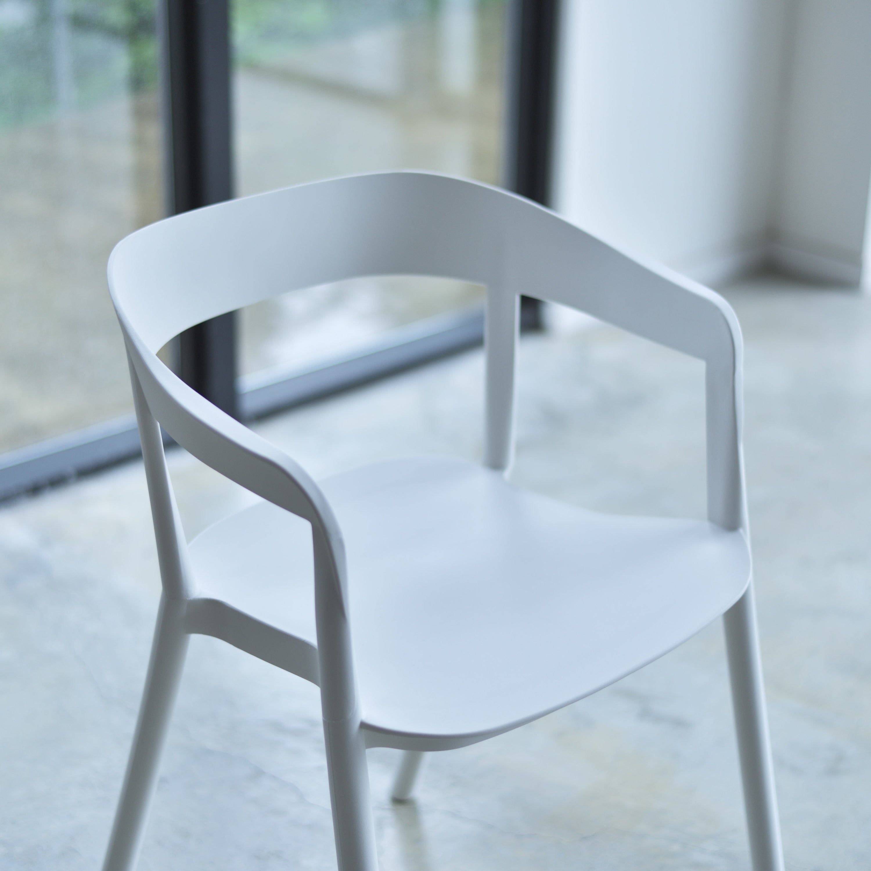 ROOMESSENCEのアームチェアホワイトです。長時間でも快適な座り心地を備え、ダイニングやワークスペースに活躍します。ブランドの美意識を感じる佇まいで、日常づかいから来客時まで幅広く対応。品番:CL-504WH。暮らしに上質なアクセントを添える一品です。