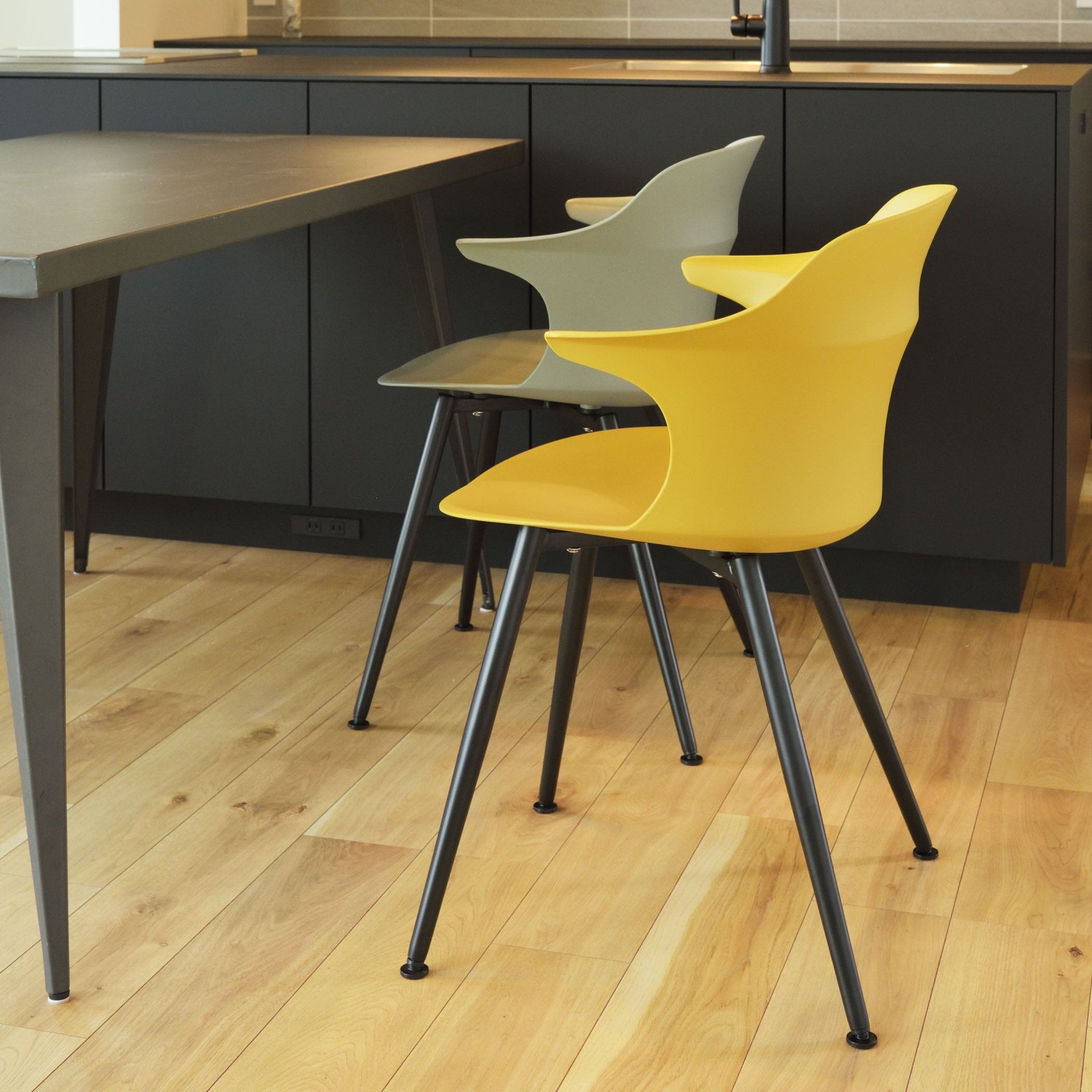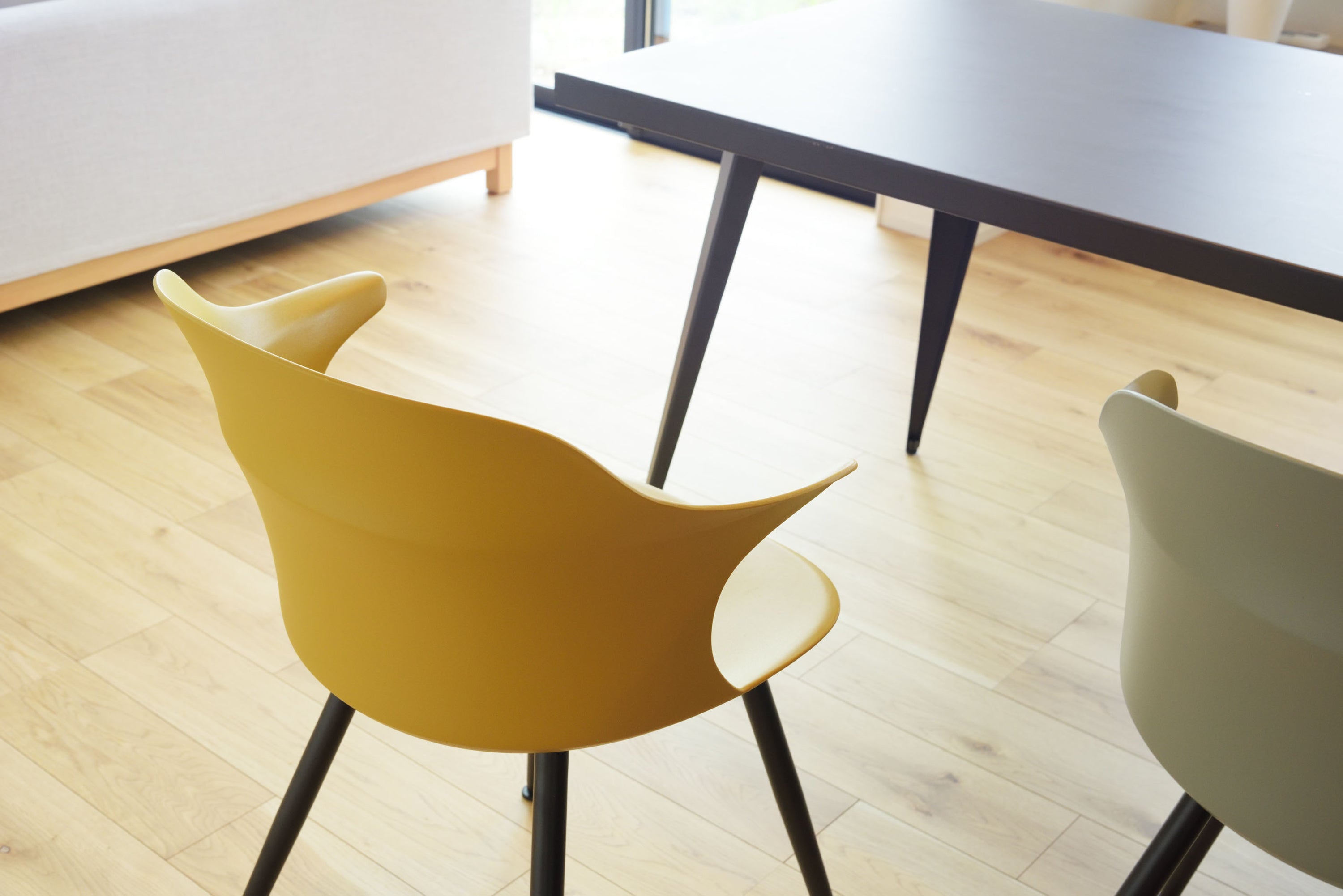 洗練された美しいフォルムのアヴァンチェア 座面には汚れてしまってもお手入れしやすいポリプロピレンを使用。 脚部にスチールを使用し、スタイリッシュな印象に。