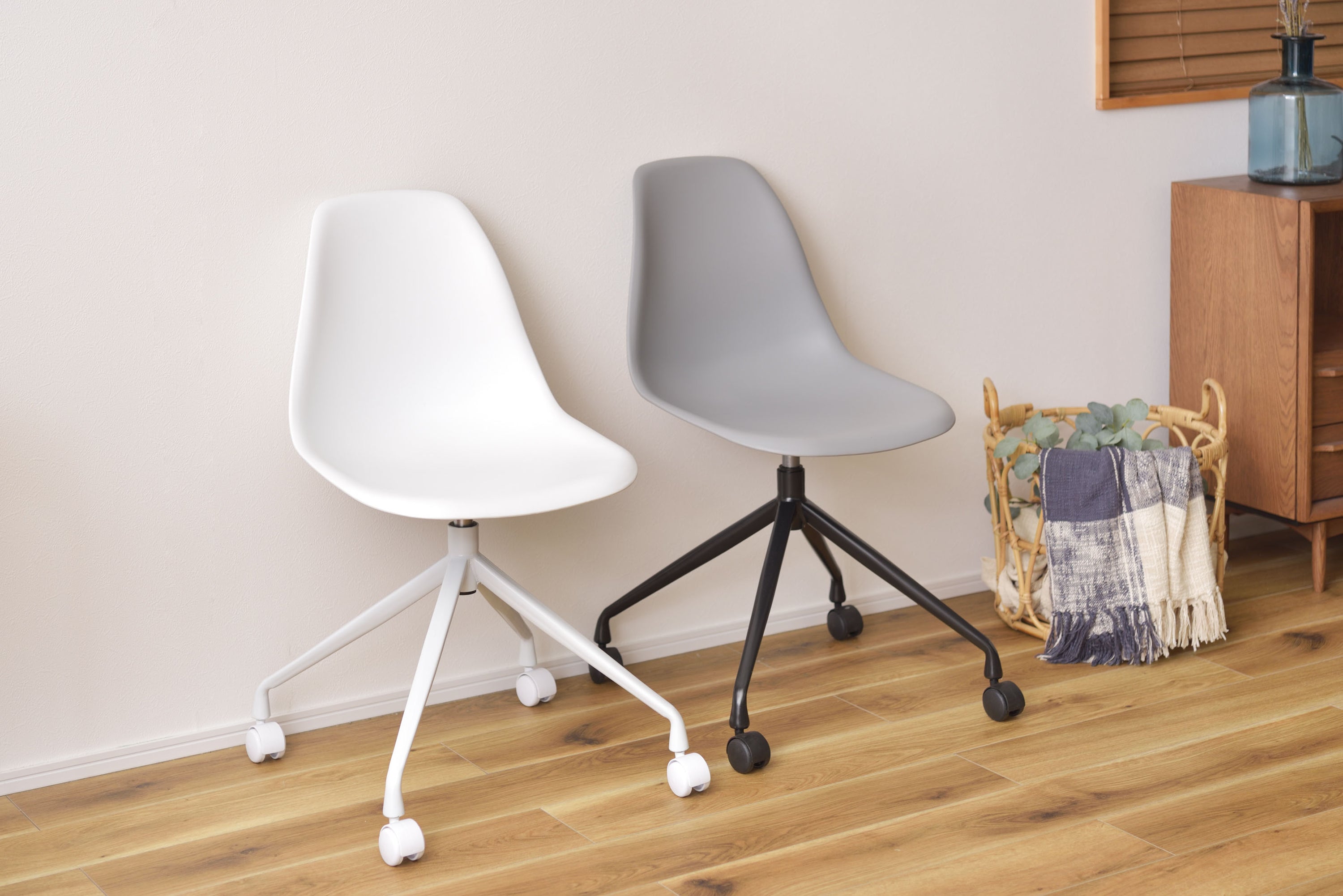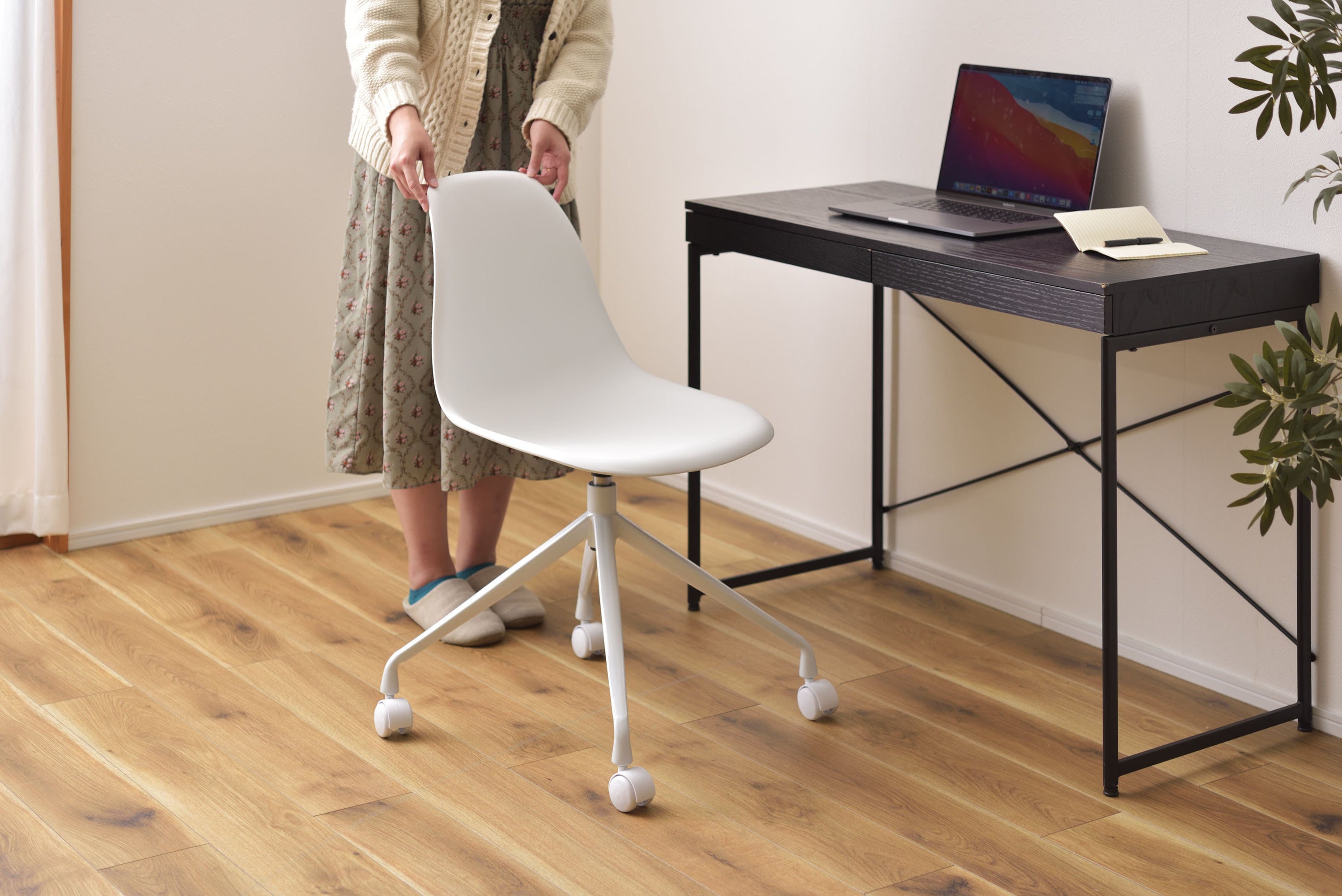 ROOMESSENCEの回転チェアホワイトです。長時間でも快適な座り心地を備え、ダイニングやワークスペースに活躍します。ブランドの美意識を感じる佇まいで、日常づかいから来客時まで幅広く対応。品番:CL-508WH。暮らしに上質なアクセントを添える一品です。
