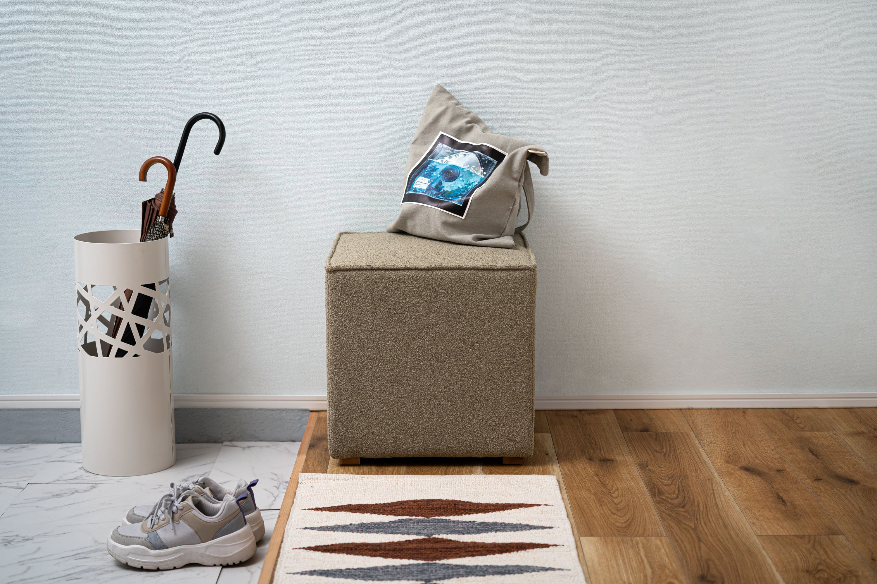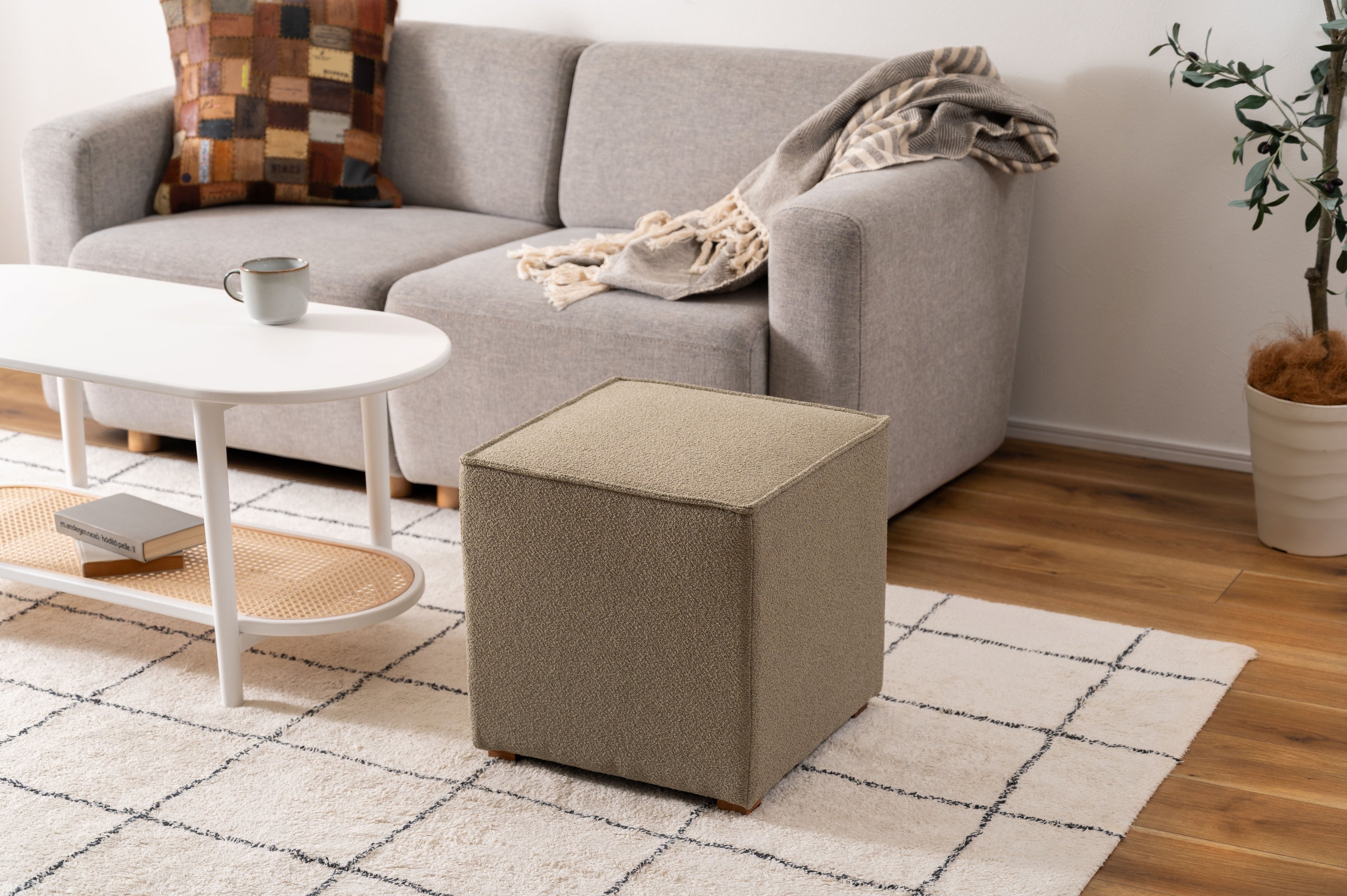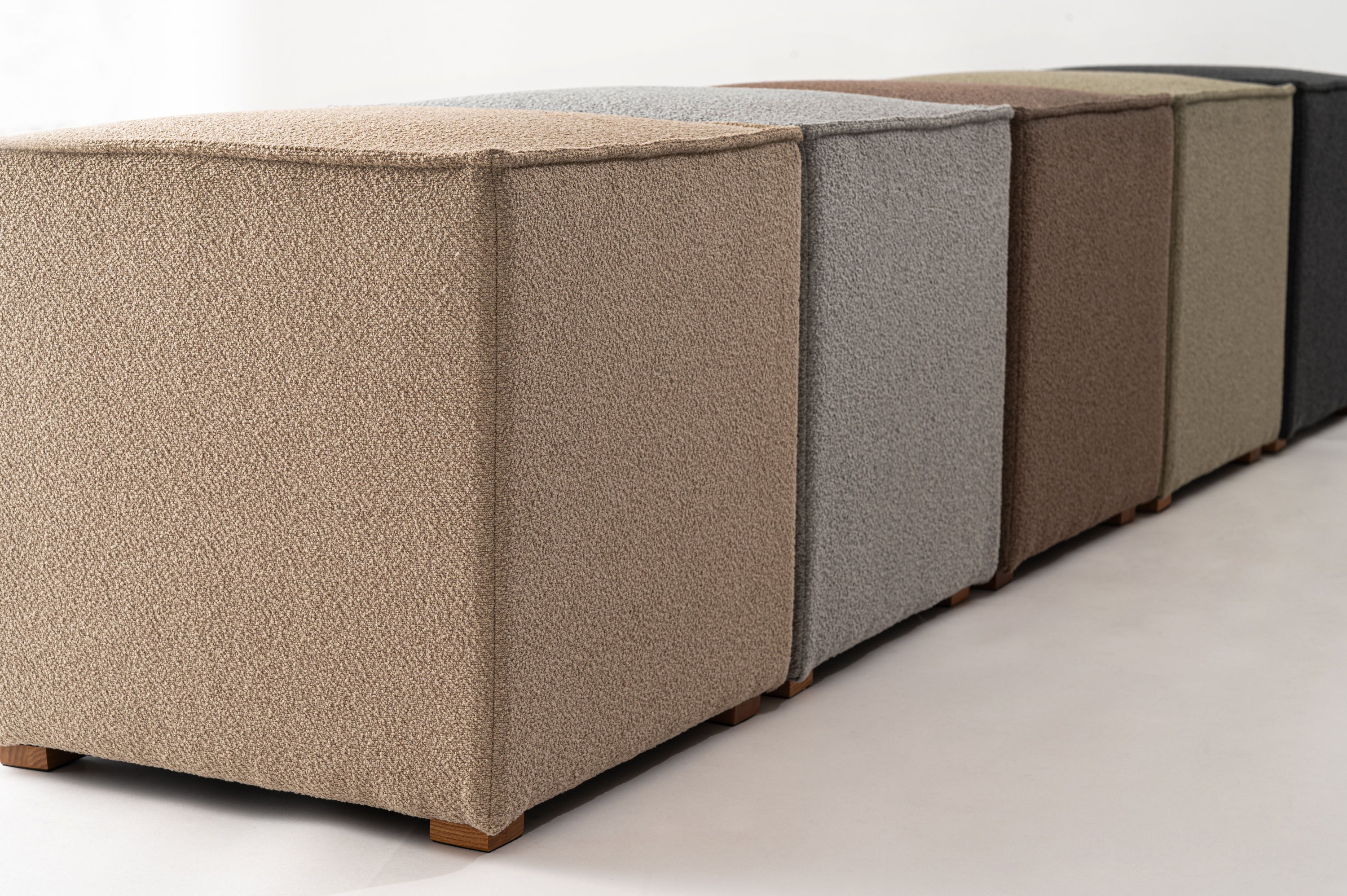 ころんとしたキューブ型のフォルムとシンプルなカラーリングが特徴的なスツール キューブ型のフォルムで可愛らしさもありながら、シンプルなニュアンスカラーにする事で様々なインテリアとの相性も良いアイテム。 スツールとしてはもちろん、オットマンとしてやピッタリ並べて複数台でのご使用もお勧めです。 クッション性のある座面 オットマンとしても 複数並べての使用も
