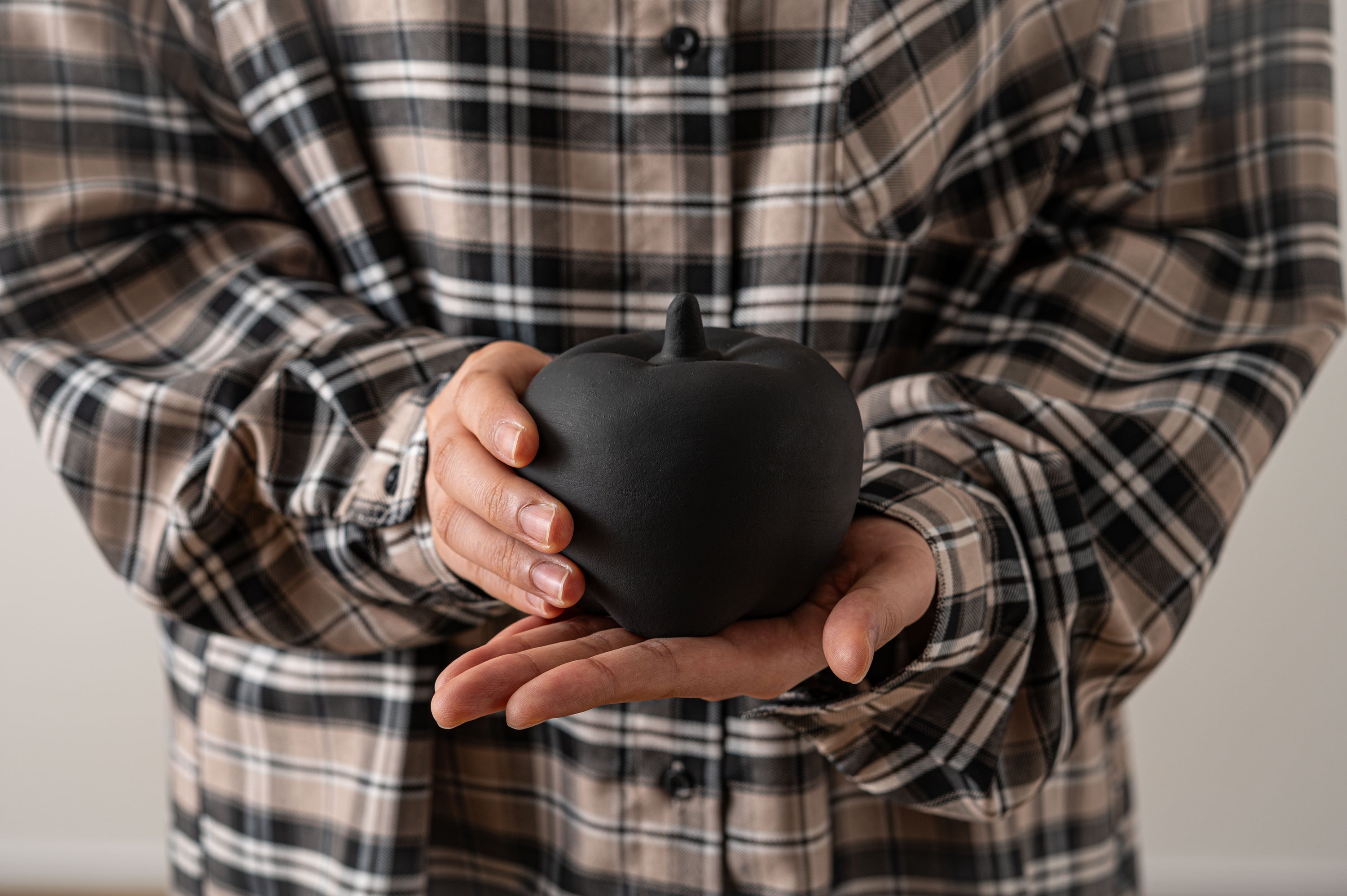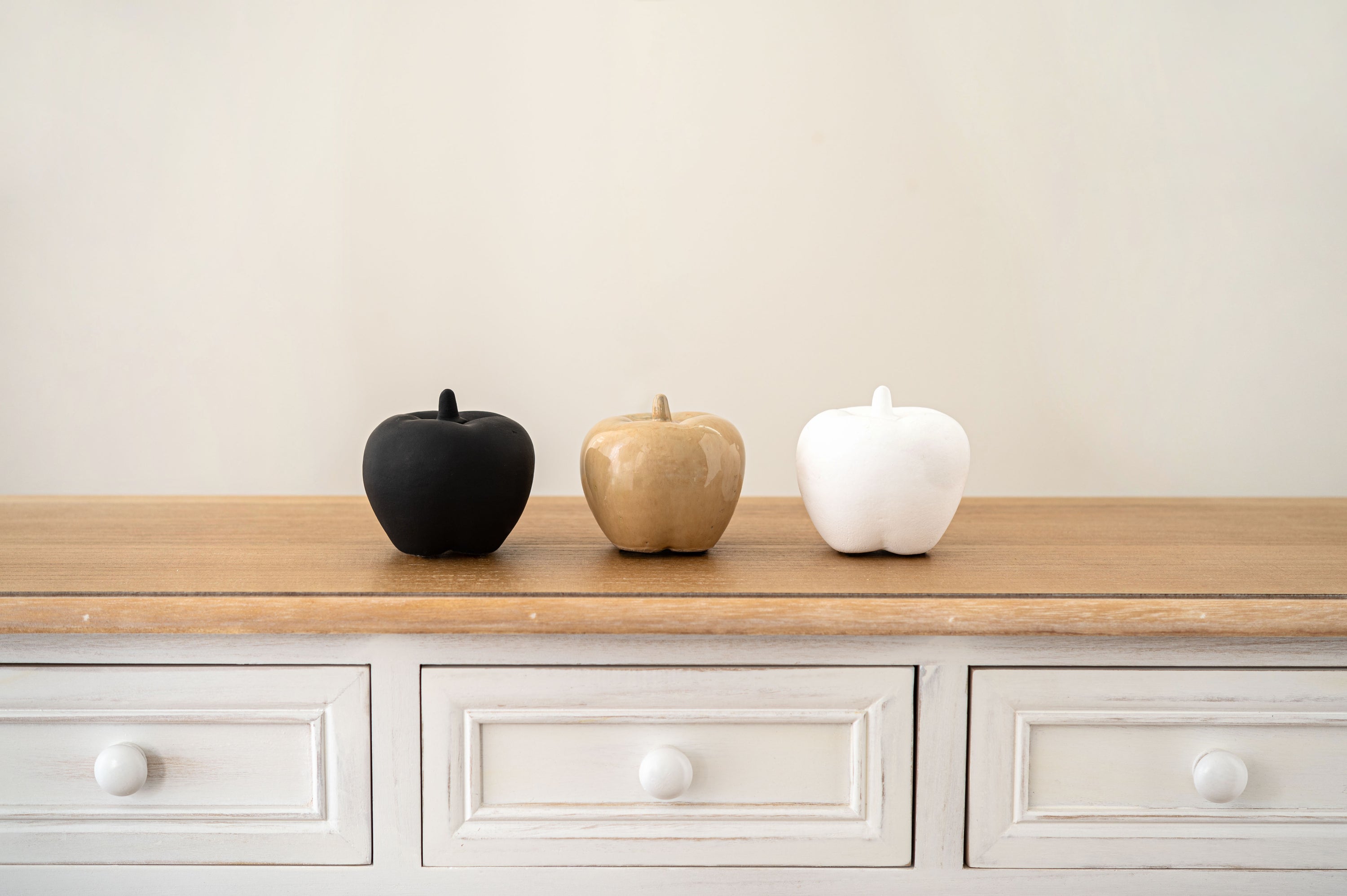 陶器製のフルーツモチーフオブジェ。置くだけで絵になるフォルムと、色んな場所に取り入れやすいサイズ感が魅力。ベージュカラーはツヤありのツルツルとした質感。ブラックとホワイトはツヤのないマットな質感。ちょっと置いておくだけで雰囲気のあるディスプレイに。※陶器製品の為、個体差があります。