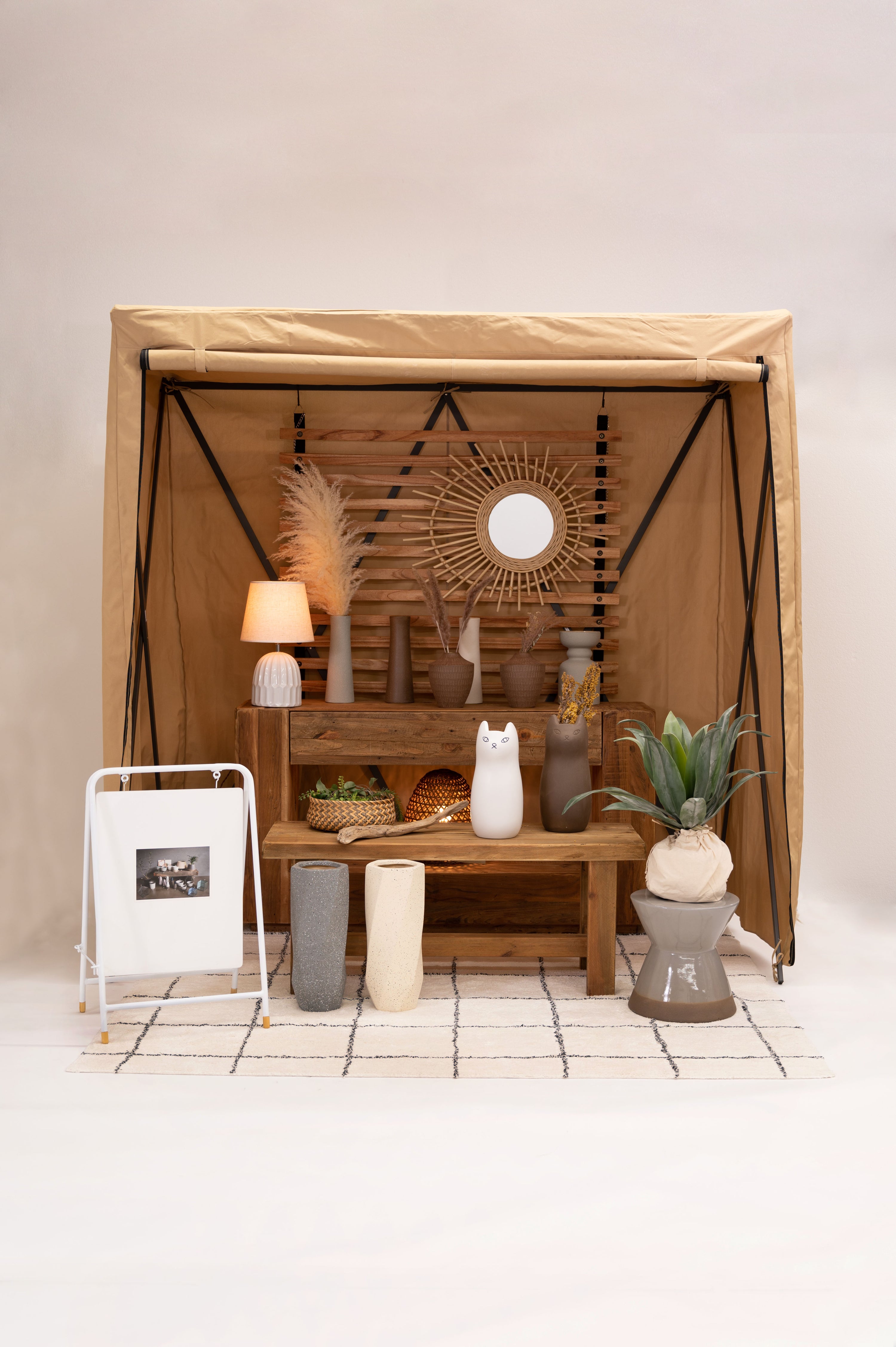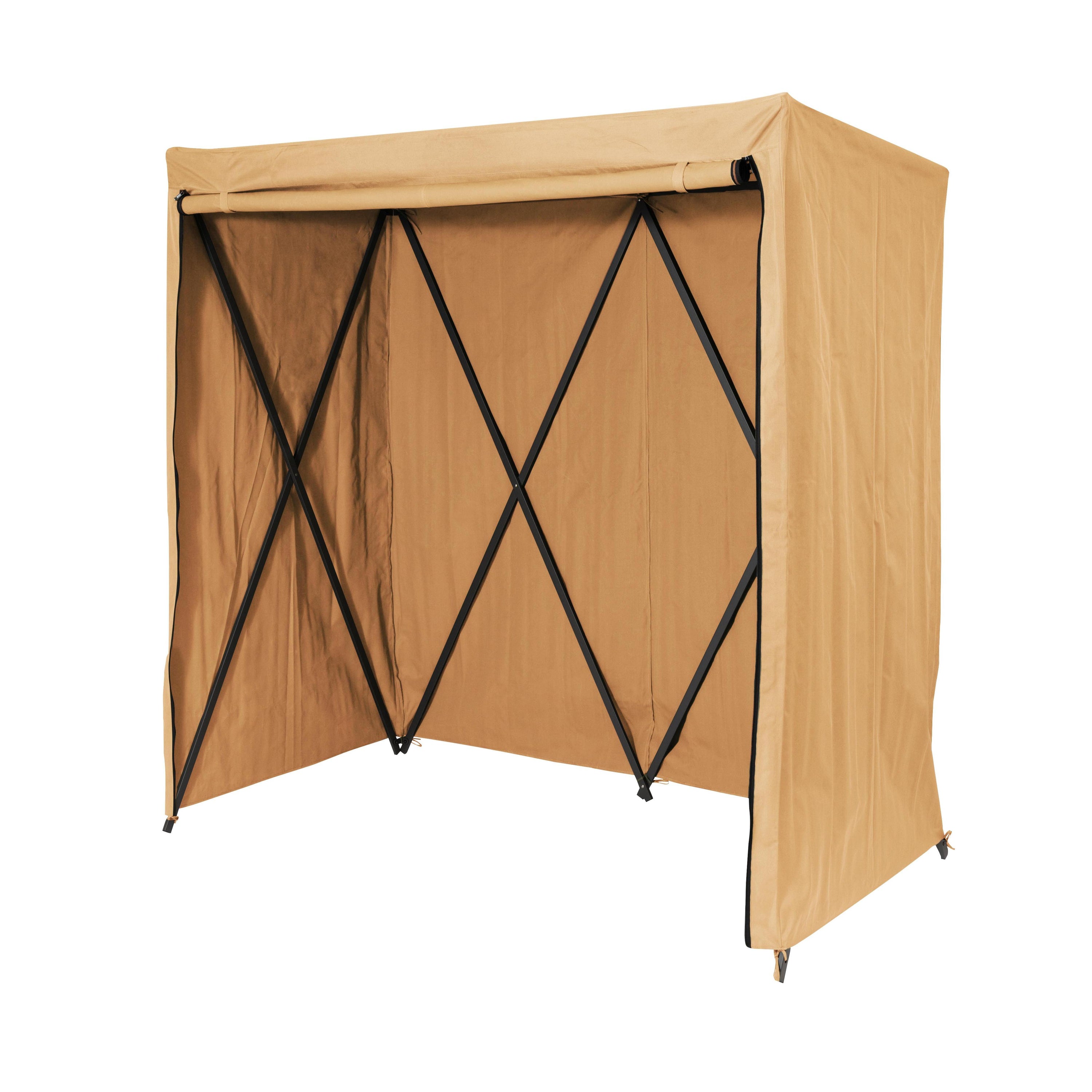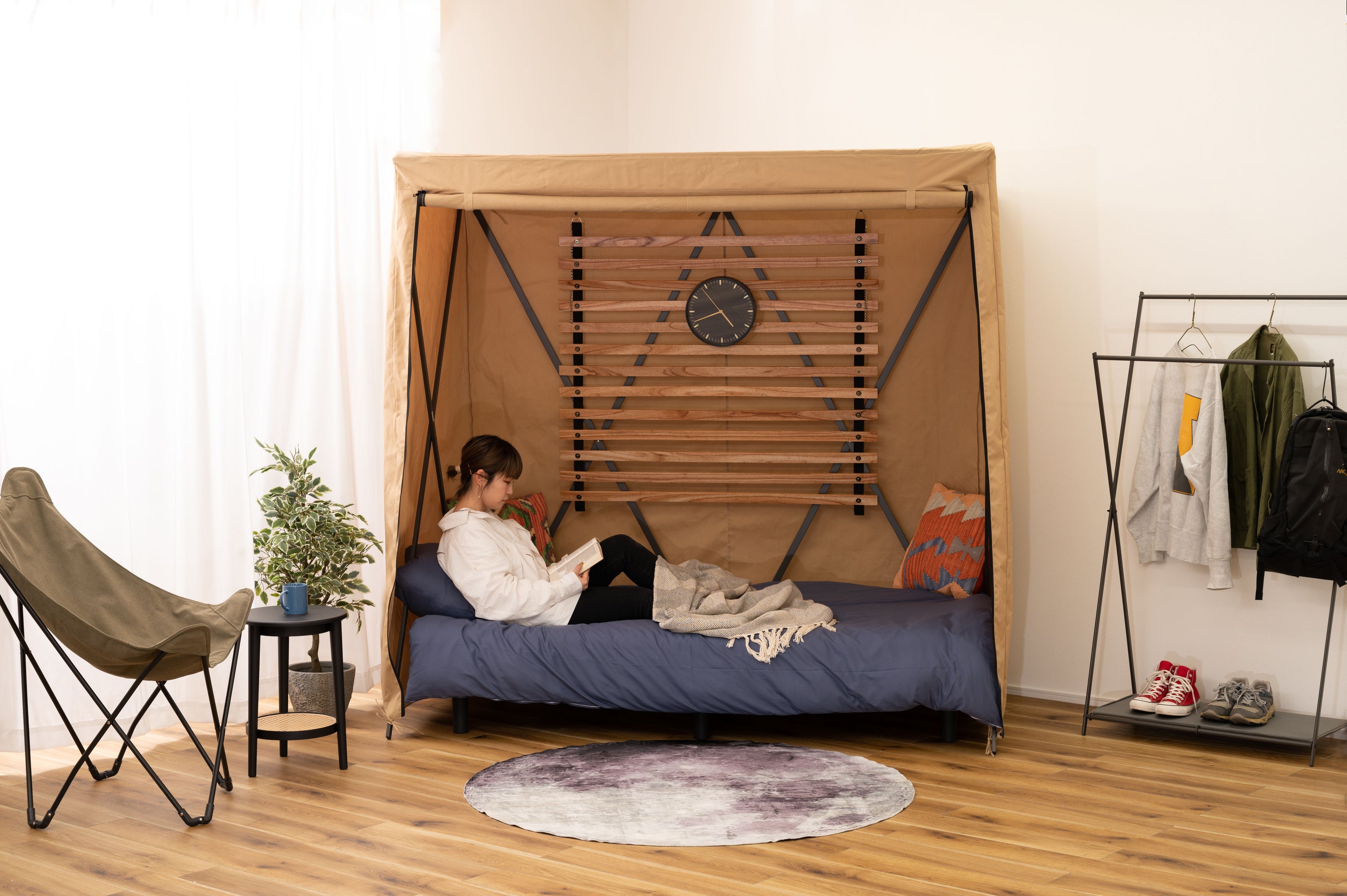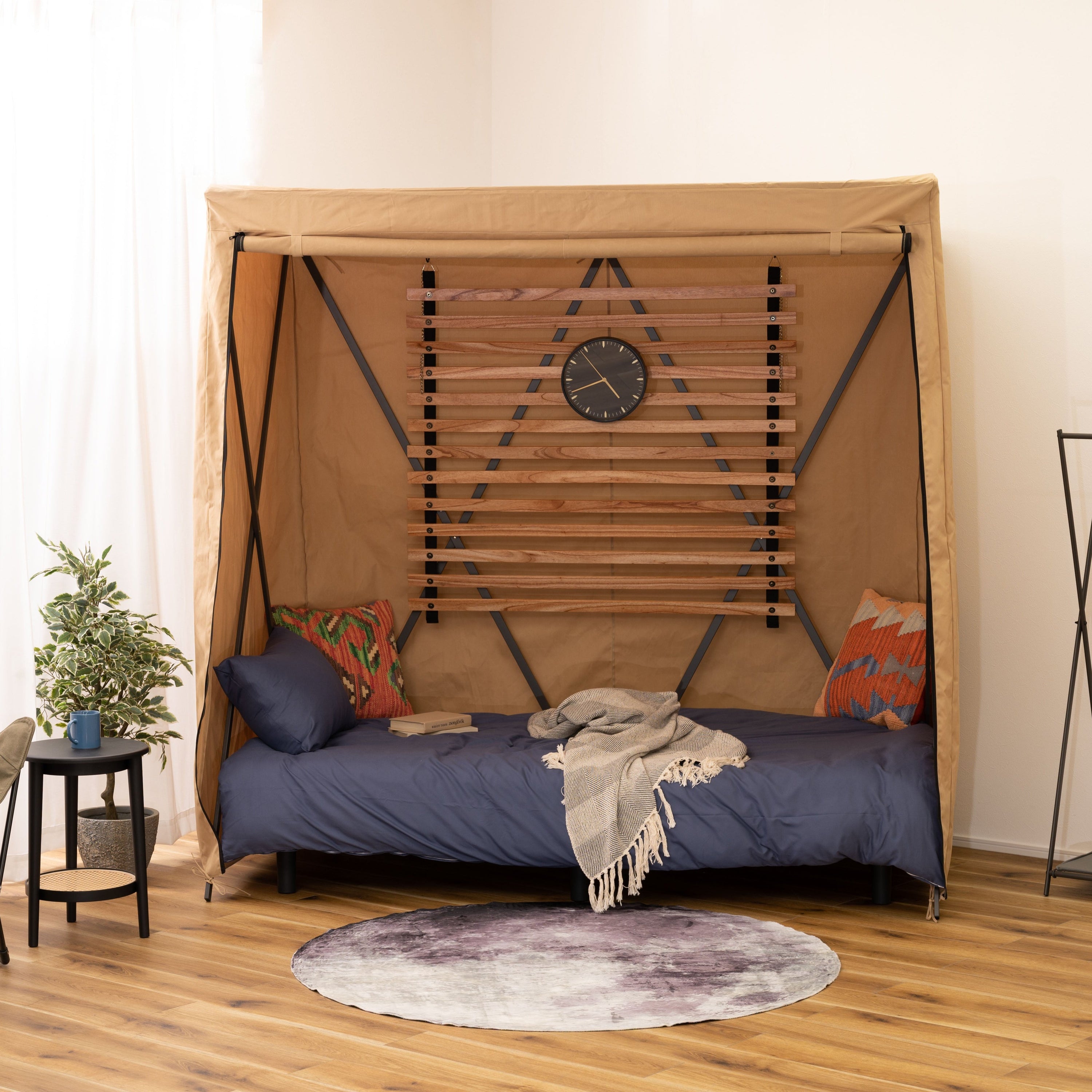 ガレージ、クローゼットや室内に広げて自分だけのプライベート空間として使えるルームテント。使い方によって様々なシーンで活躍してくれるアイテム。簡易ガレージとして自転車や脚立、工具類を収納するスペースに。リビングに設置してデスクやランプを入れて、作業に集中したい時のおこもりスペースとして。ルームテントでベッドを囲い小物でディスプレイをすれば、個性的で落ち着いたベッドルームに。ルームテントの中に収納ラックを置けばクローゼットに早変わり。お店の中に設置して、販売スペースとしてこだわりの商品やおすすめ商品をディスプレイするのにも。折りたためばコンパクトになるので持ち運びにも便利。前面カバーの先端にハトメ・ベルトが付いているので、ロープを通してタープを張る事も出来ます。