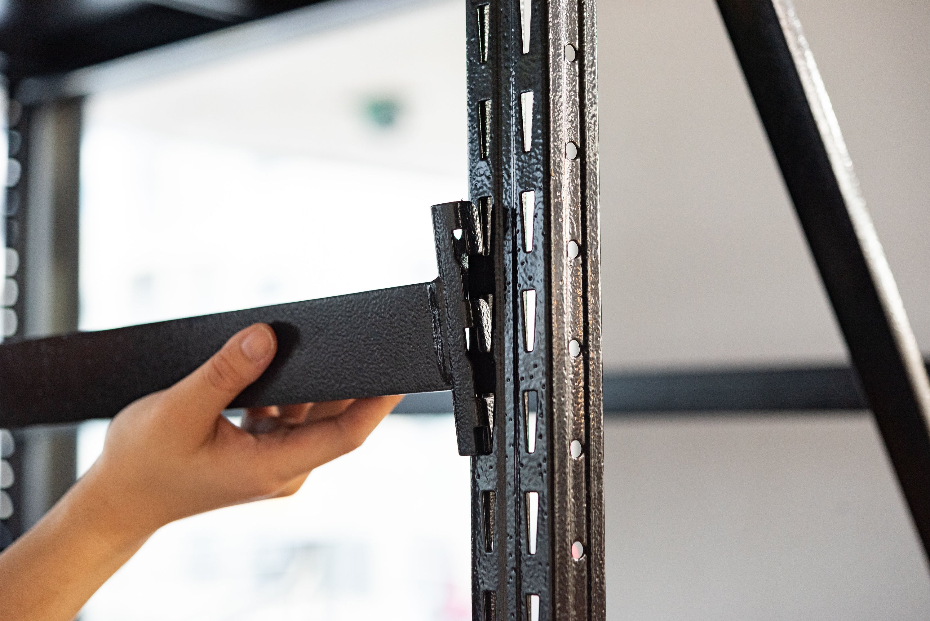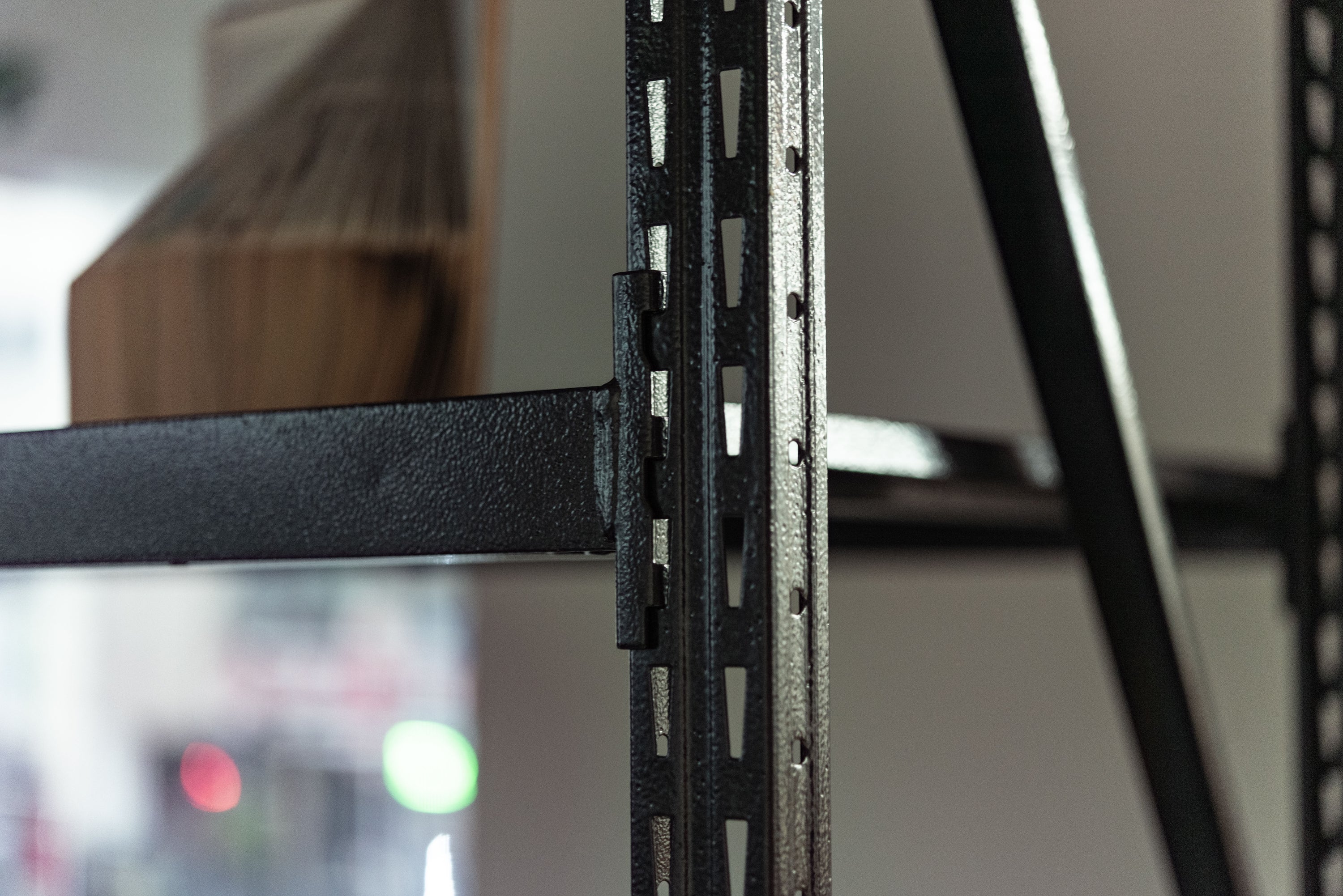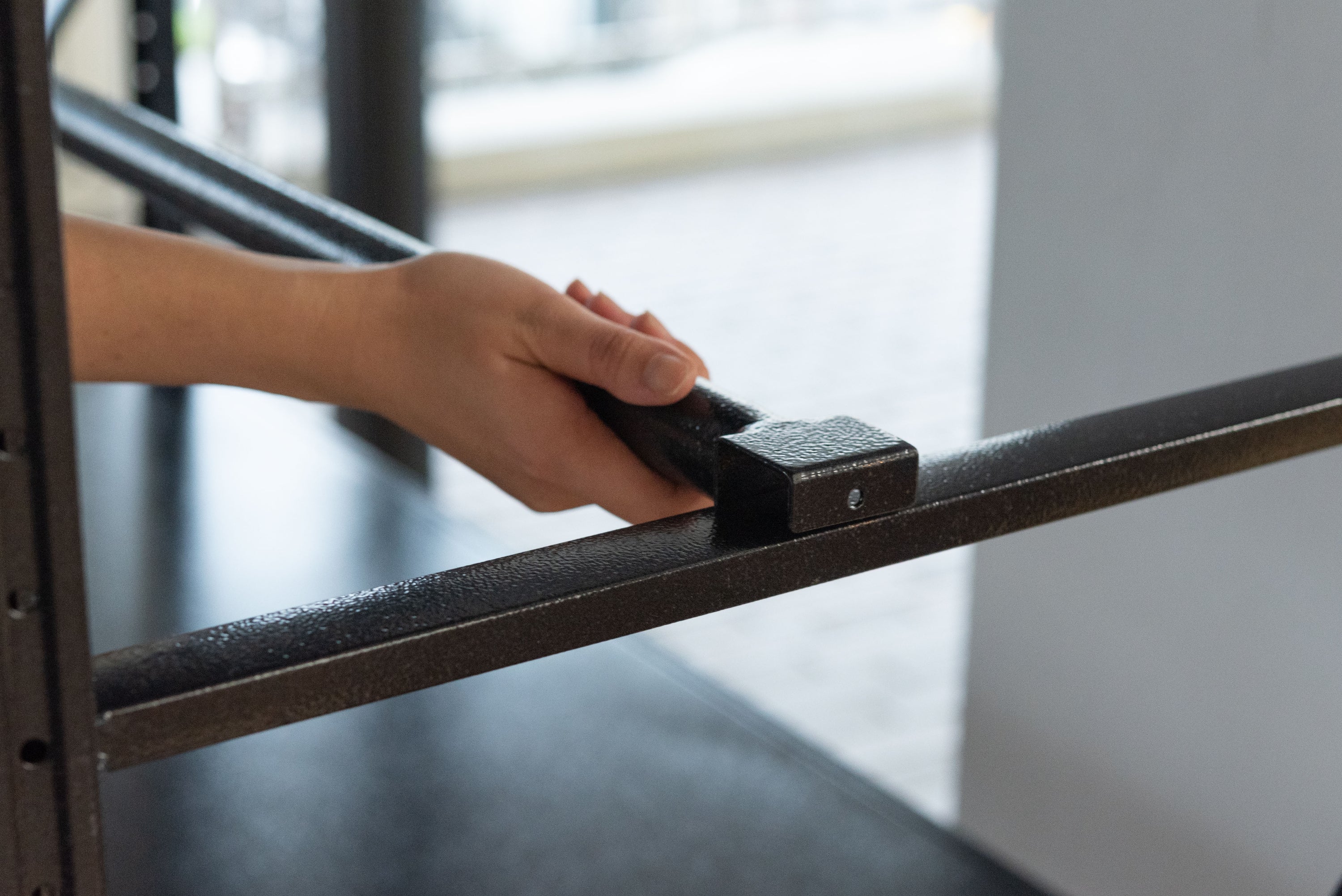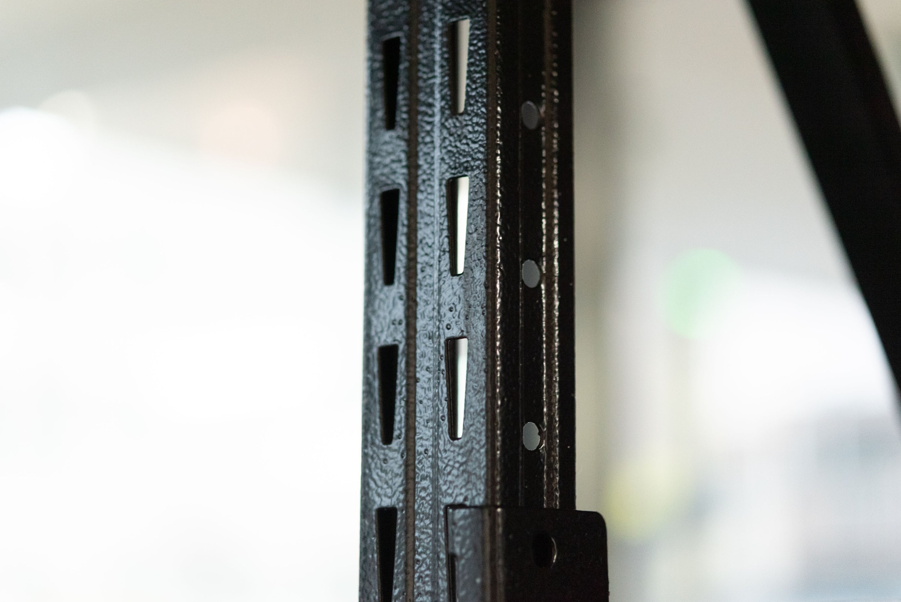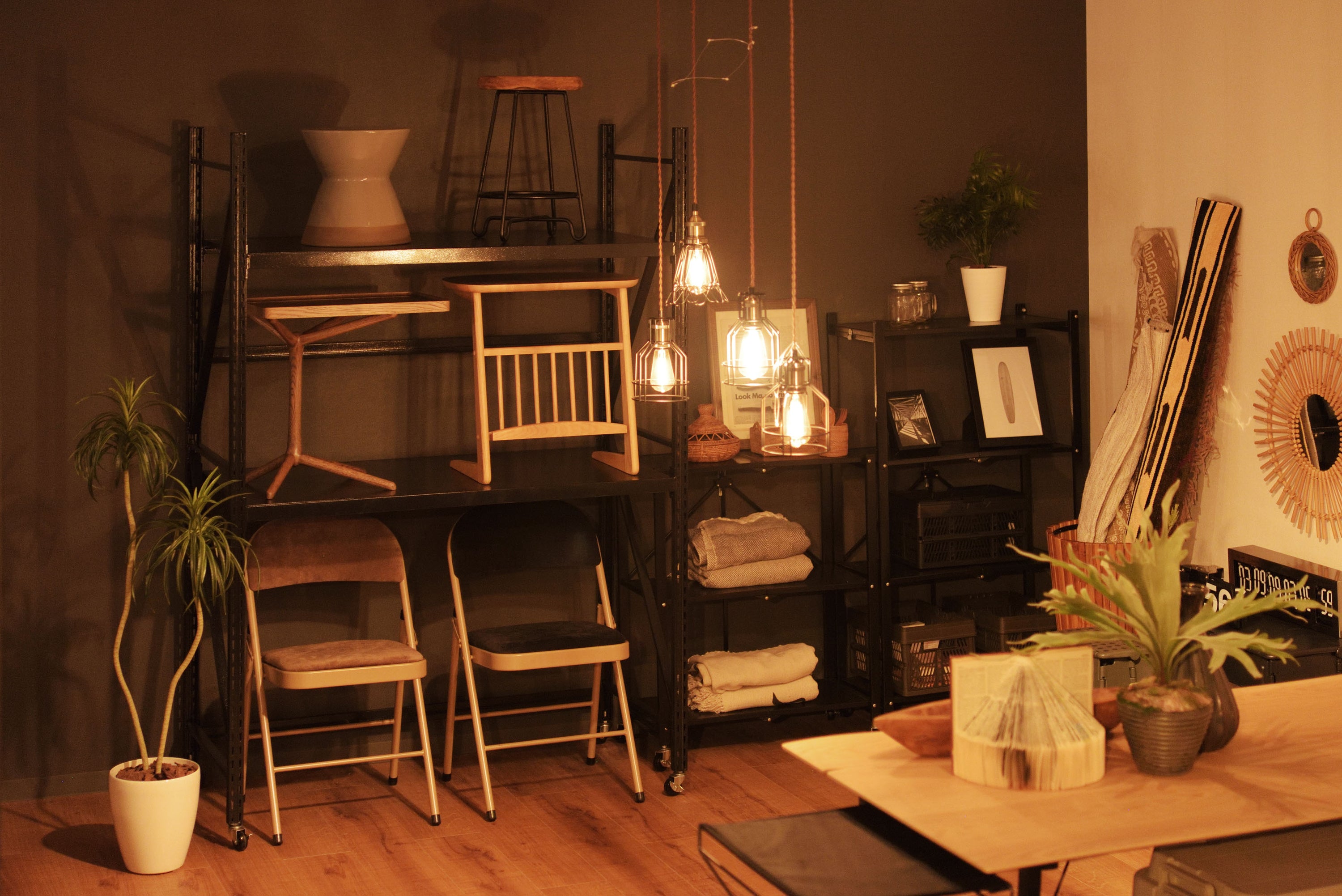 ボルトレスラックの奥行60cmタイプから新色のアイボリーが登場。無骨さを取り入れたシンプルなデザインは使用シーンを選ばず、店舗のディスプレイ用什器はもちろん、収納付きTVラックとしてなど、あらゆる場面でお使いいただけます。従来のボルトレスラック(DIS-683/684)が奥行40.5cmだったのに対し、DIS-685タイプは奥行60cmまで拡大。イスなどの幅の広い物でも余裕をもって配置できるようになったので、家具や雑貨を扱うお店の陳列棚としても活躍。