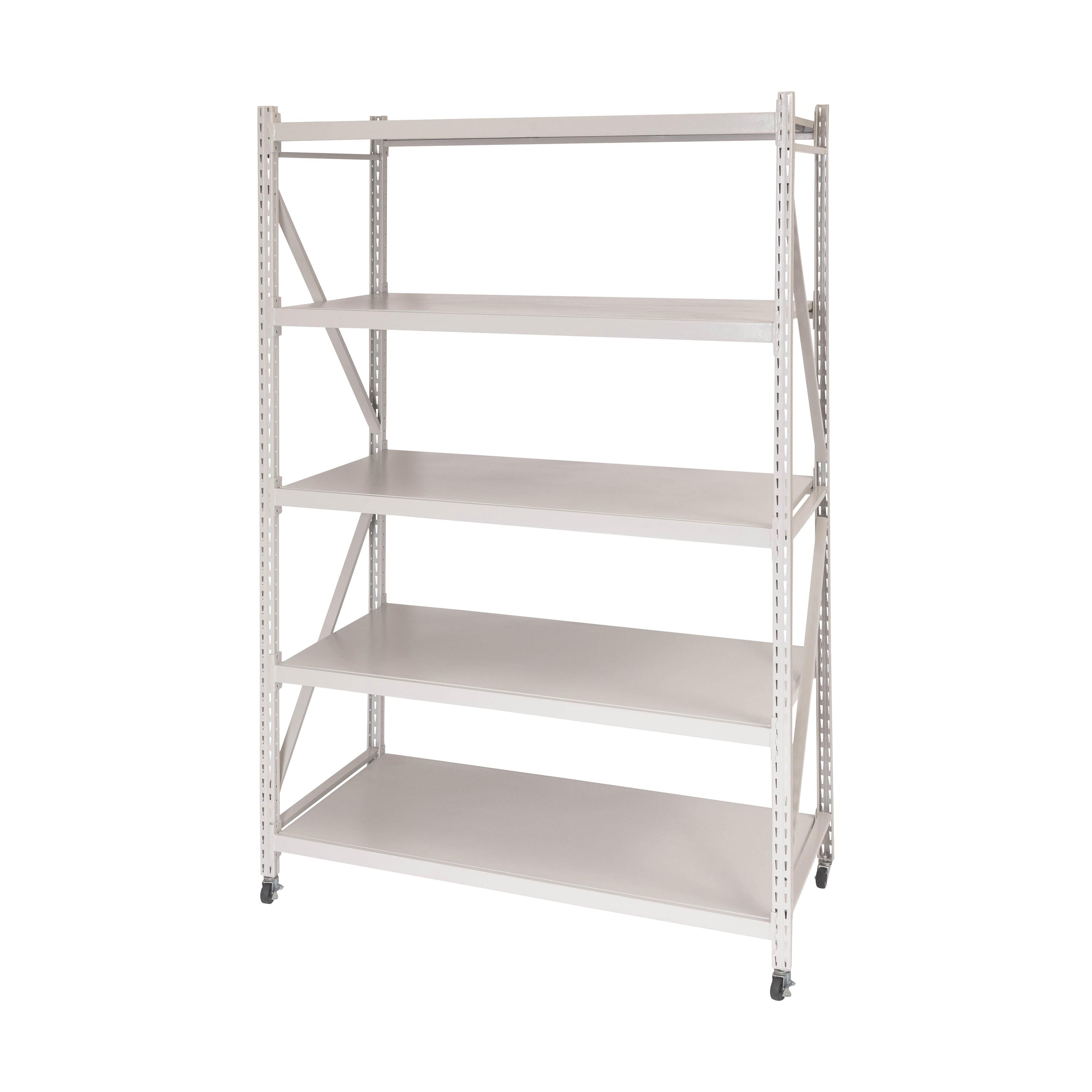 ボルトレスラックの奥行60cmタイプから新色のアイボリーが登場。無骨さを取り入れたシンプルなデザインは使用シーンを選ばず、店舗のディスプレイ用什器はもちろん、収納付きTVラックとしてなど、あらゆる場面でお使いいただけます。従来のボルトレスラック(DIS-683/684)が奥行40.5cmだったのに対し、DIS-685タイプは奥行60cmまで拡大。イスなどの幅の広い物でも余裕をもって配置できるようになったので、家具や雑貨を扱うお店の陳列棚としても活躍。