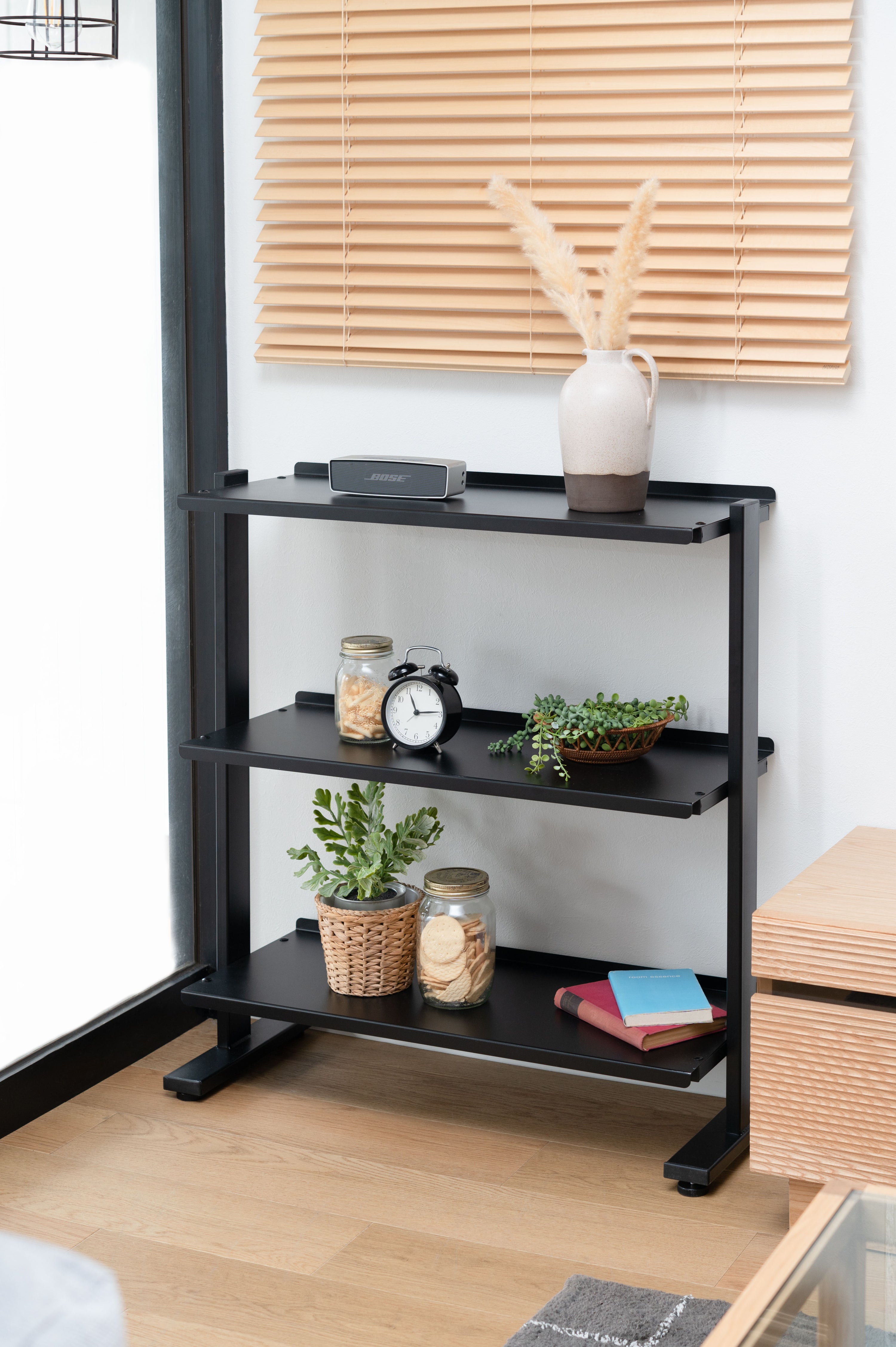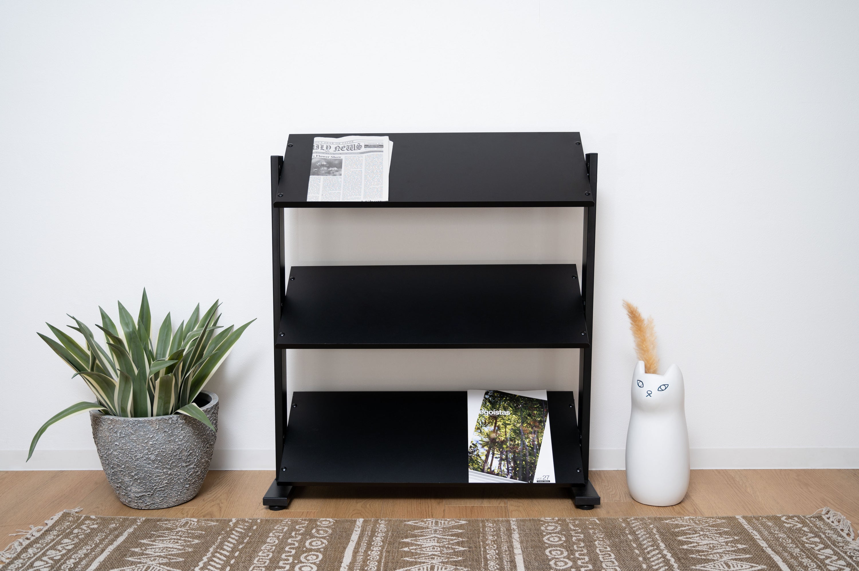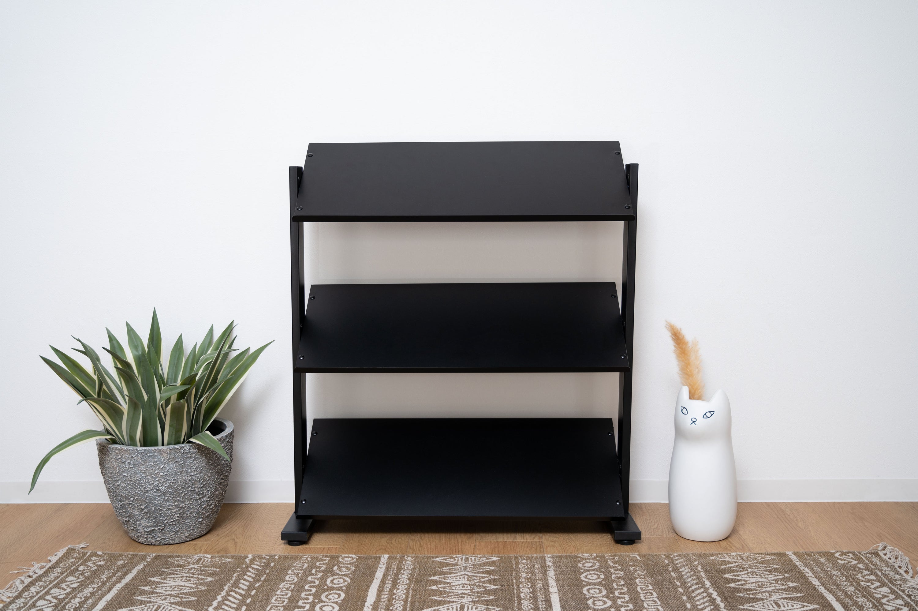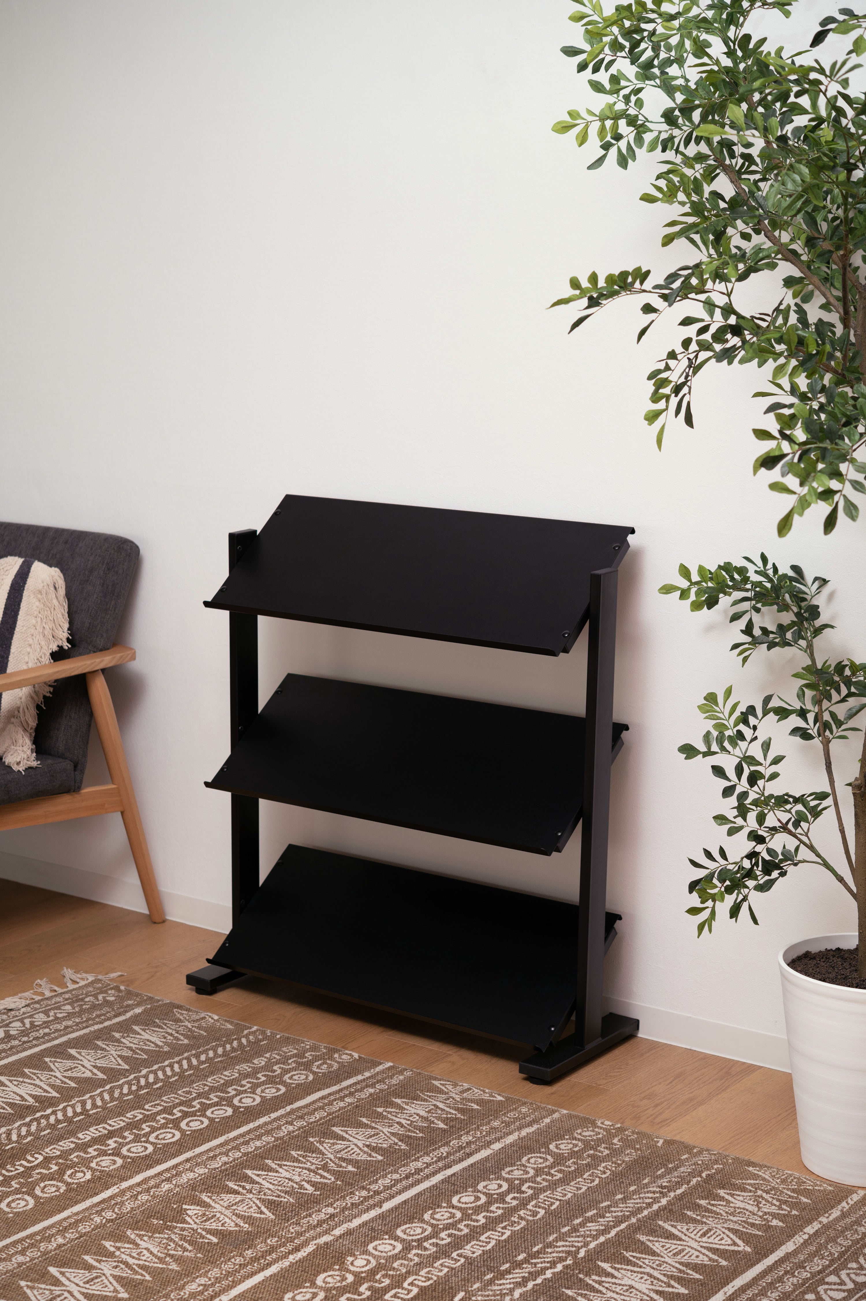 棚板を水平、斜めに変更できる2WAY仕様のラック。インテリアとしてはもちろん、お店の什器としてもお使いいただけます。通常のオープンラックとして使用する場合は棚板を水平に。ディスプレイラックとして使用する場合は棚板を斜めに設定。2WAY仕様のオープンラック。脚裏にはアジャスターが付いているのでガタツキ防止や床への傷防止になり安心です。