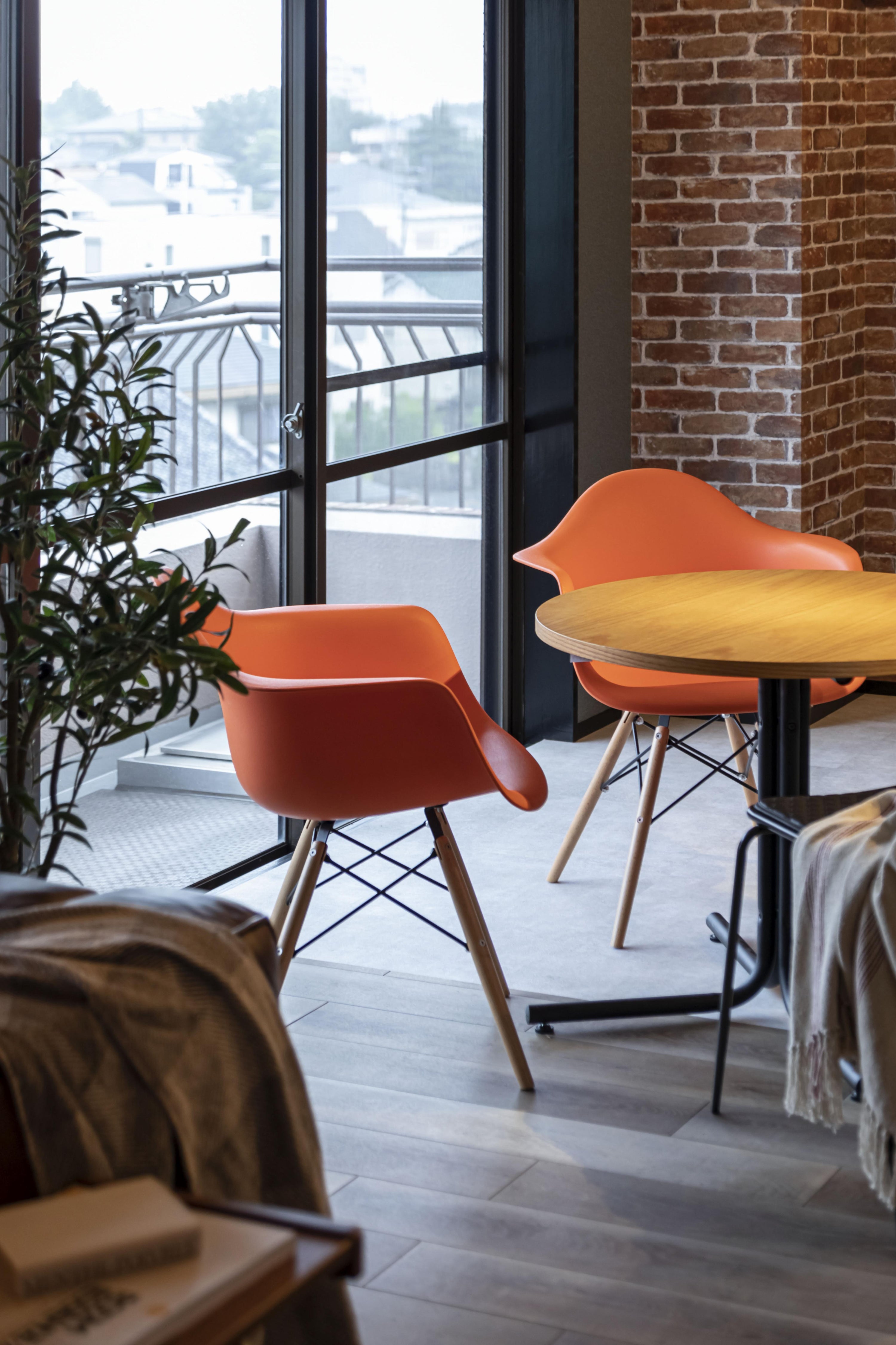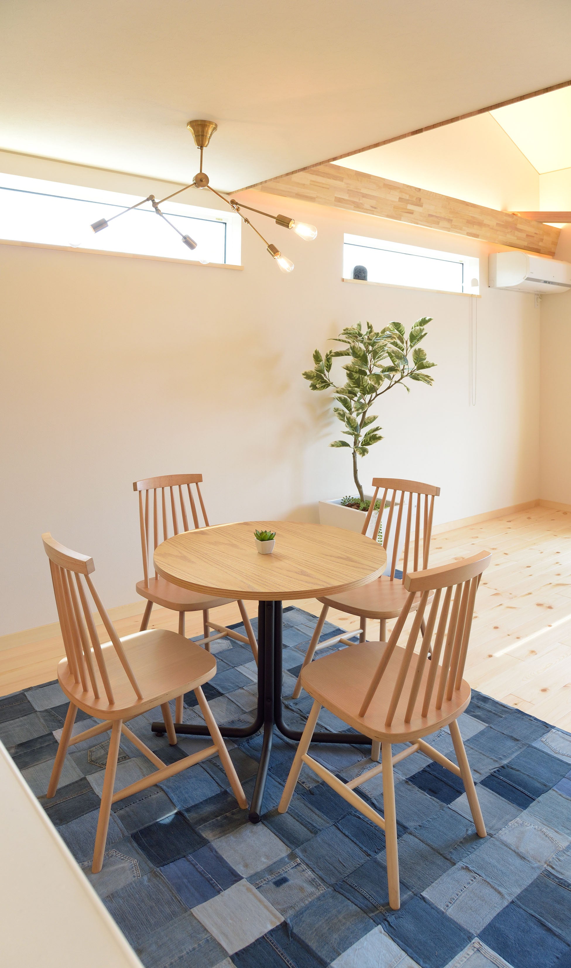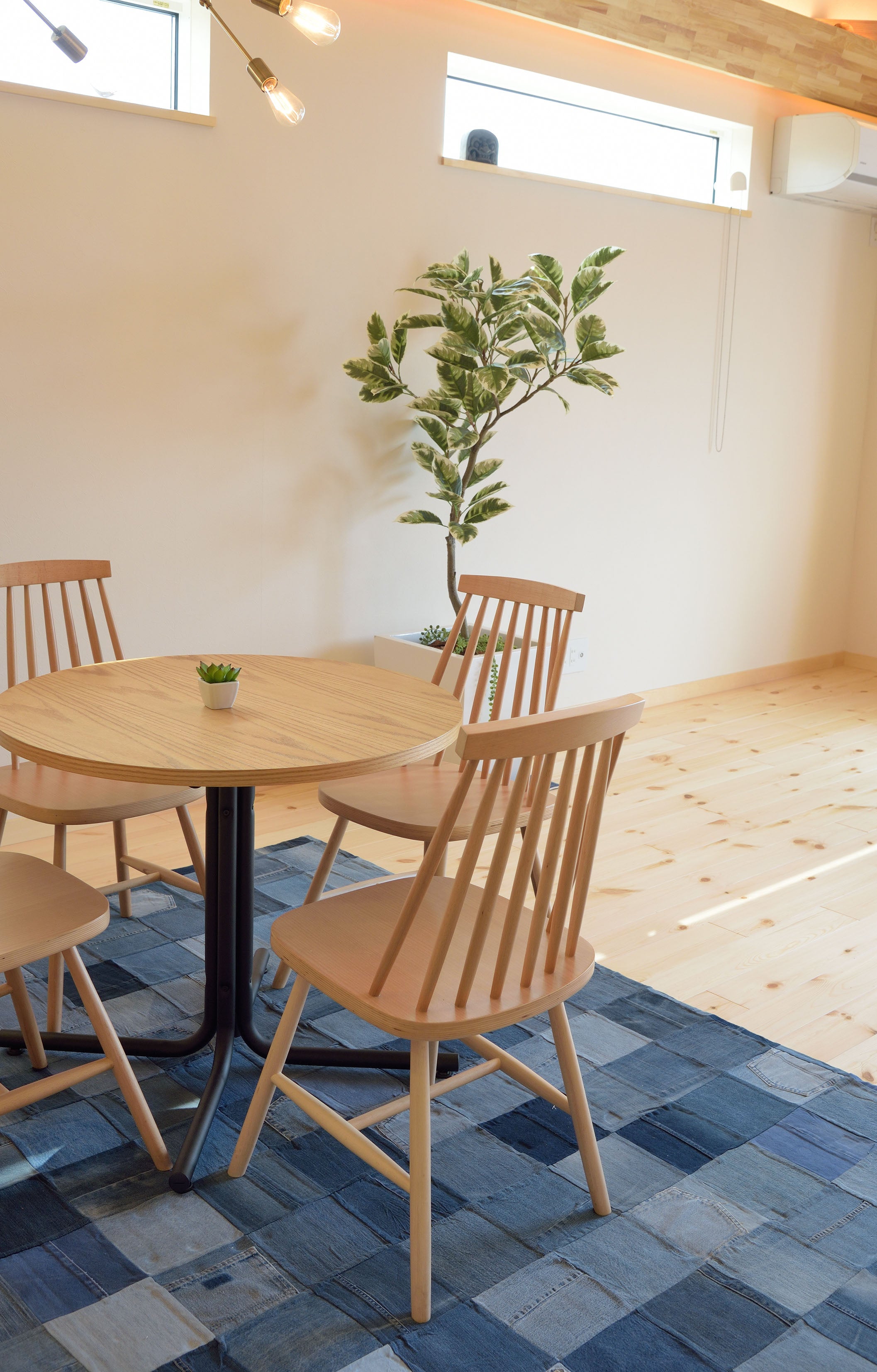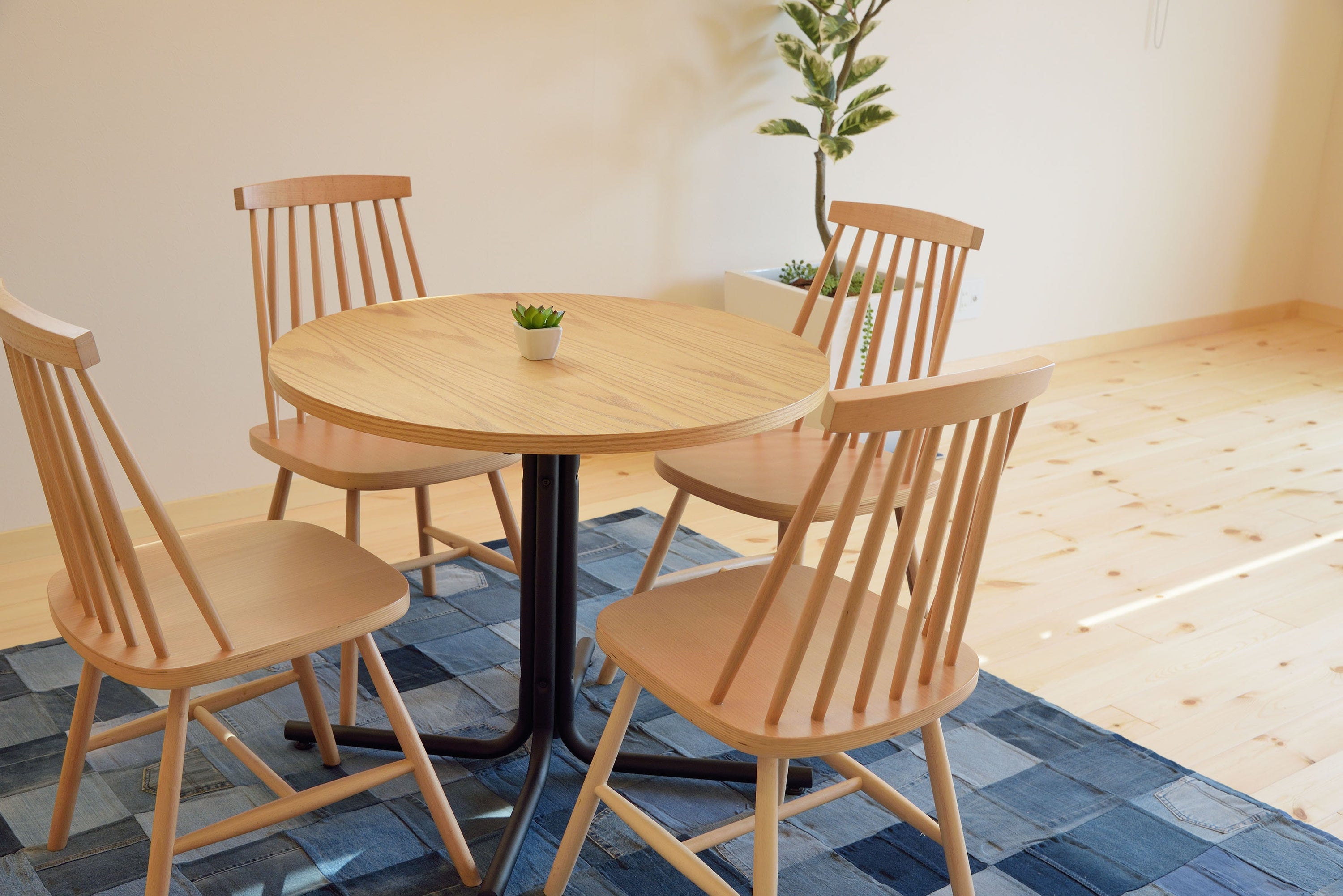 シンプルなデザインのカフェテーブル 間取りに合わせて選べる形3タイプに、テイストに合わせて選べる2カラーを用意。 十字脚を使用し、スッキリとした印象に。椅子への座りやすさもポイントです。