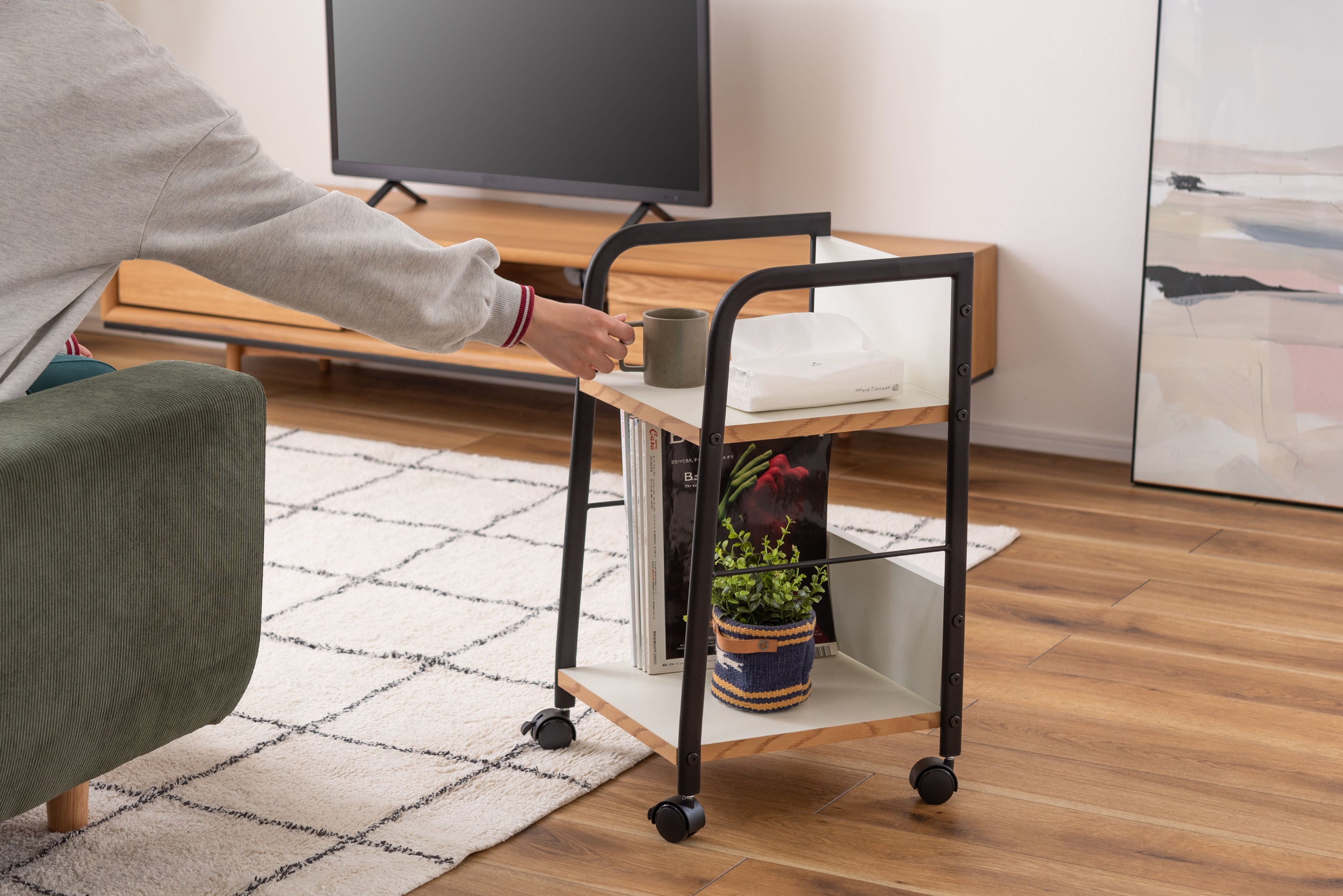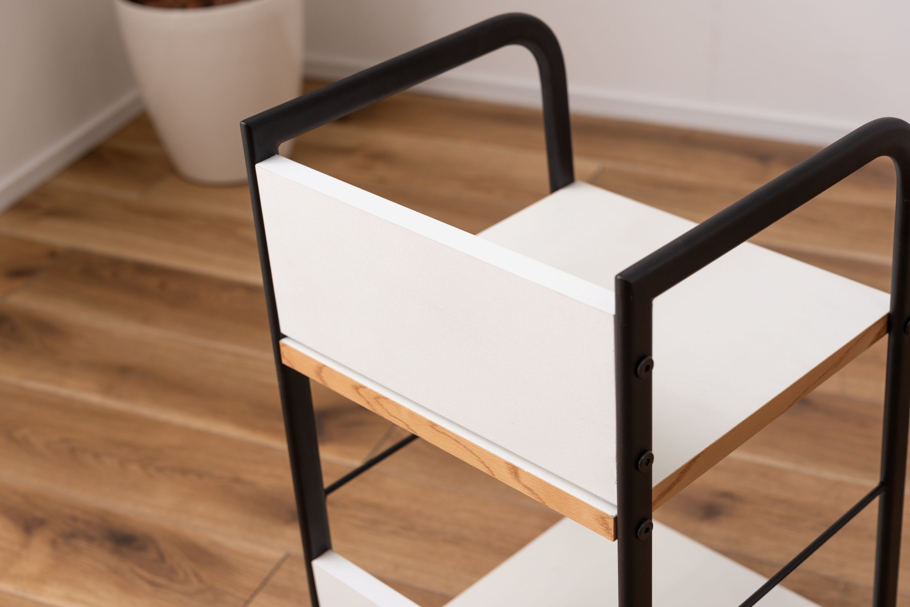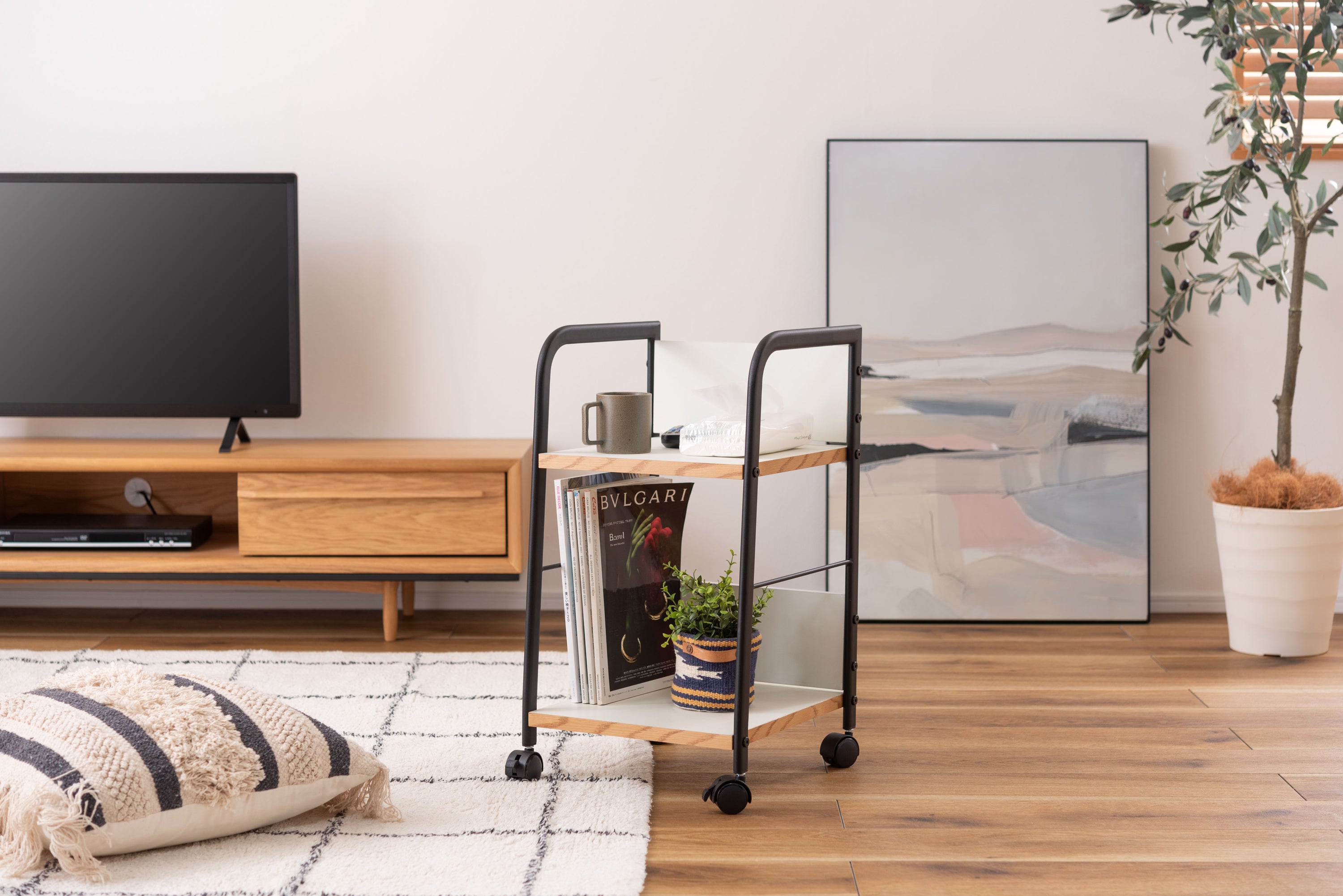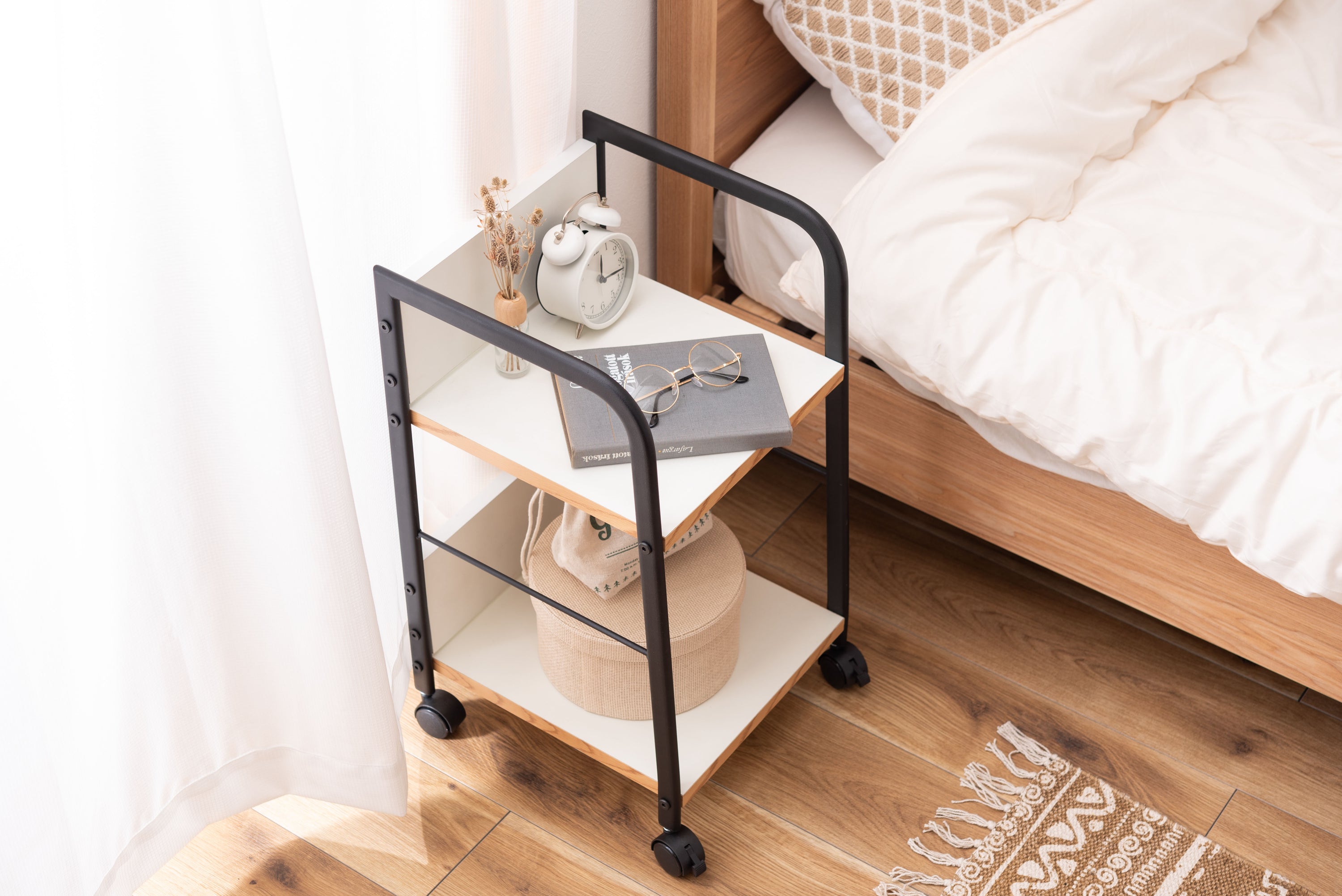 ワークデスクに合わせてデザインされたデスクワゴン。 PVCシートで手入れもしやすく、ちょうどいいサイズ感が魅力。 背板が付いているので物を置いても落ちにくく安心。 仕事道具や勉強用具を一箇所にまとめて収納。 ワークデスクの下に収納できるサイズ感。 オープンタイプなので見やすく必要な時にサッと取り出せる仕様。 ベッド横のサイドテーブルやソファ横のリビングワゴンなど使い方無限大。 キャスター付きで移動も簡単。 ストッパー付きなので場所を固定したい時にも便利。