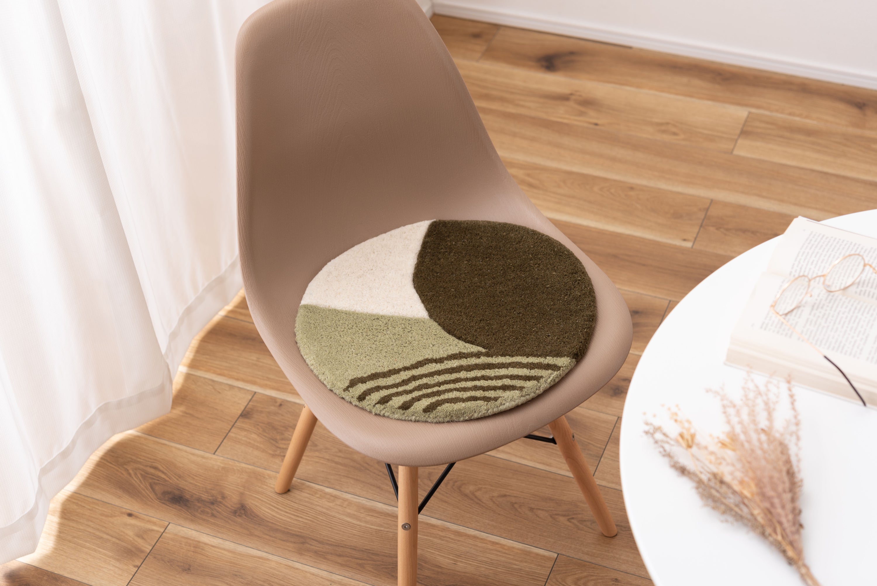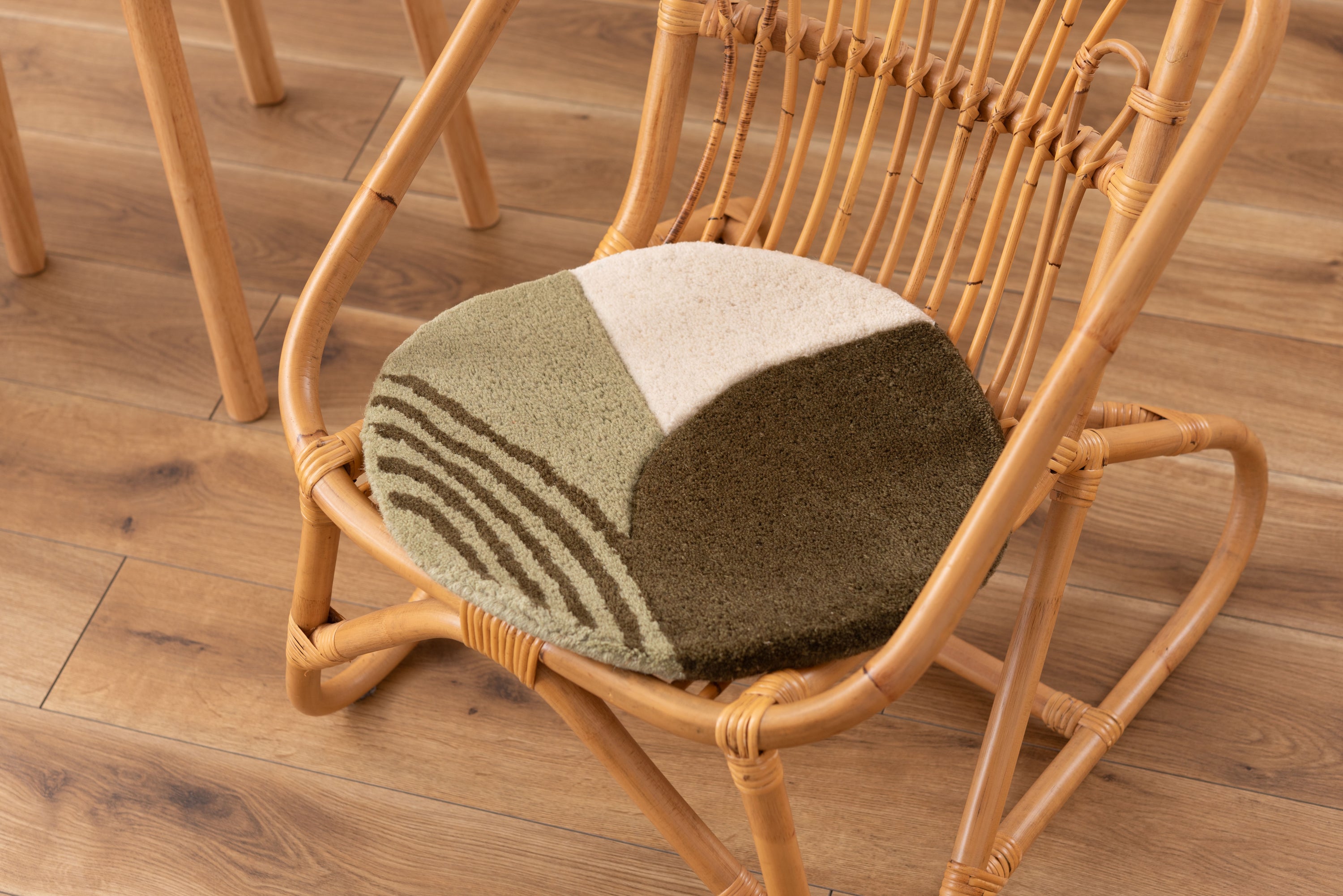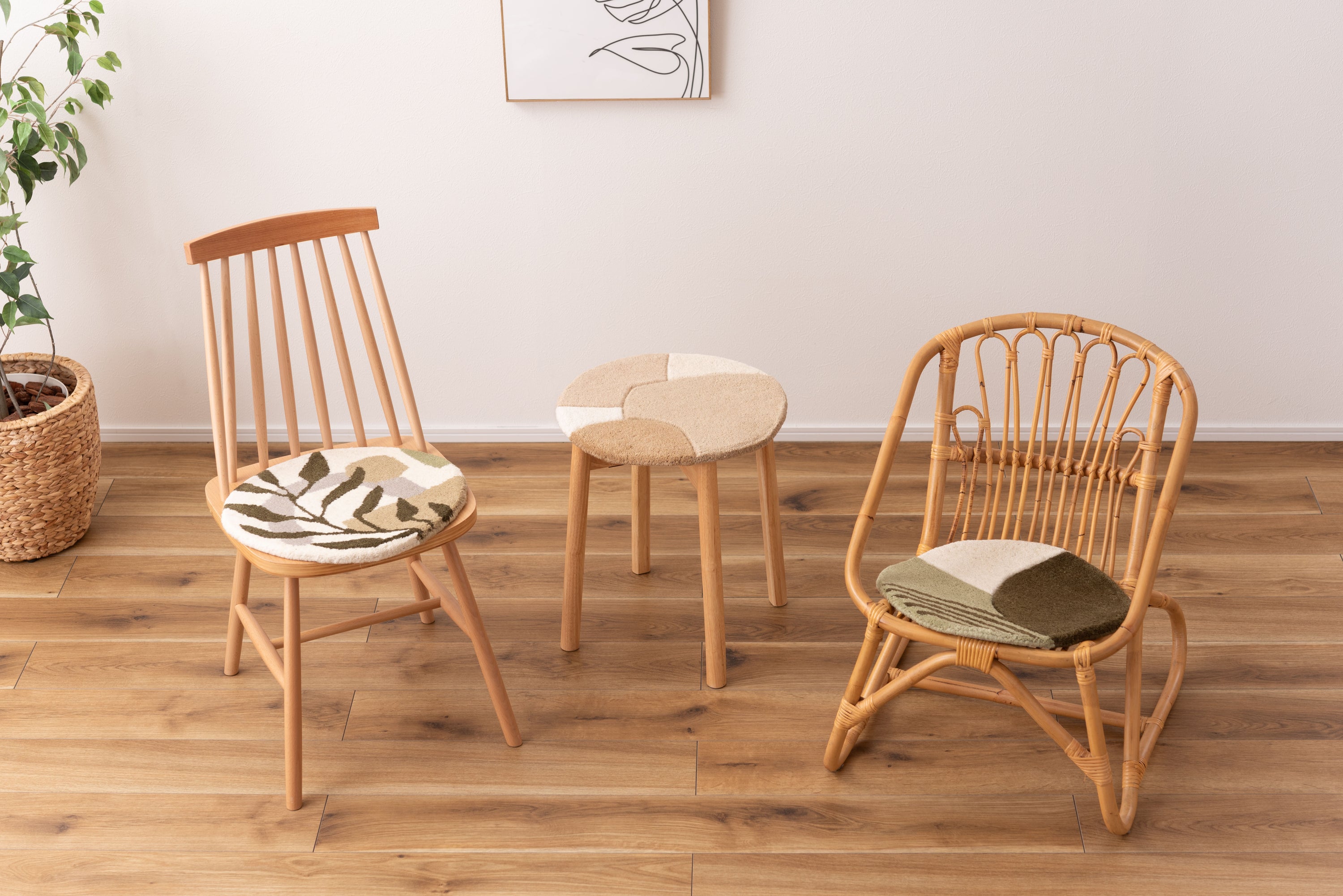 チェアやベンチに1点プラスで、インテリアも座り心地もアップ 人気のタフティングを座り心地の良いシートクッションに仕上げました。 1点1点手作業で丁寧に作られており、普段使っているチェアやベンチ、スツールなどに置くだけで、インテリアのアクセントになるだけでなく、使用感もアップする嬉しいアイテムです。