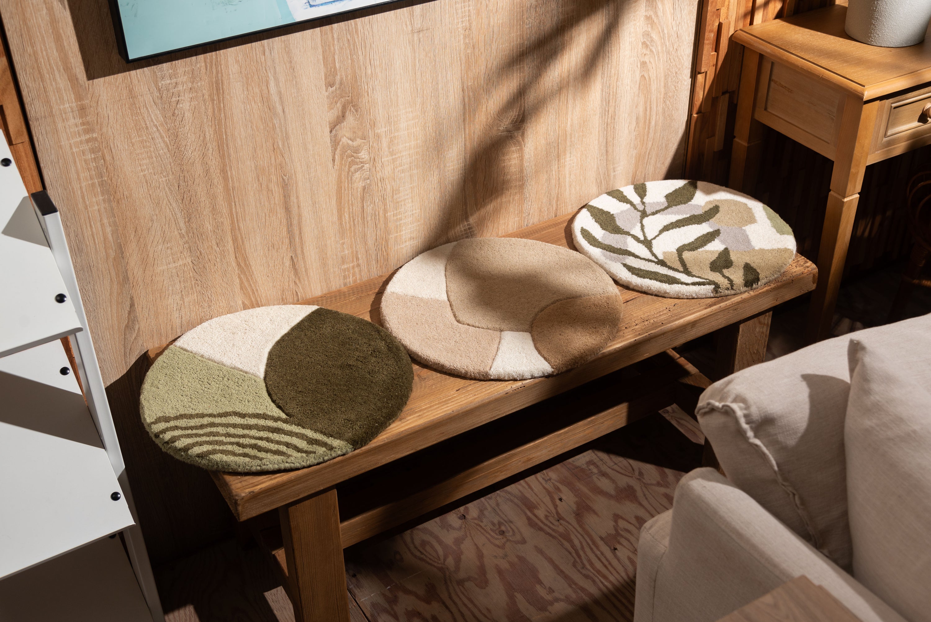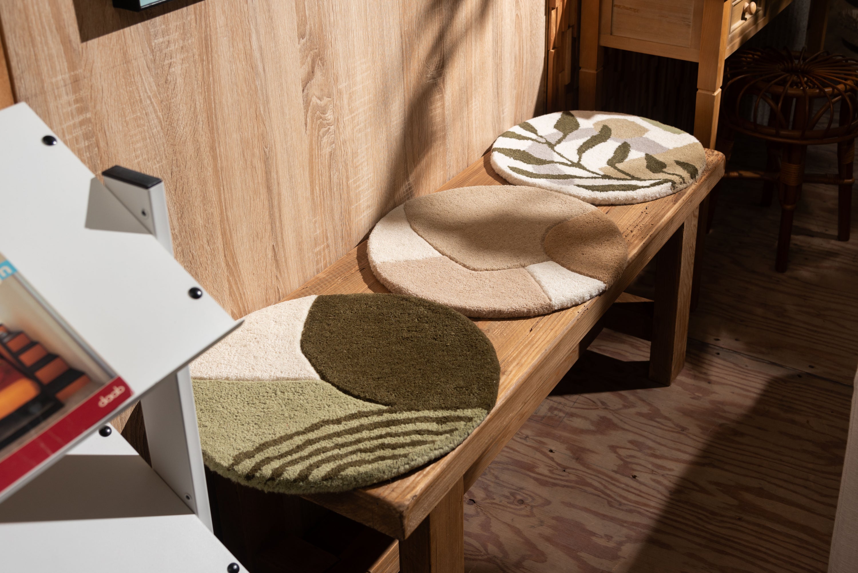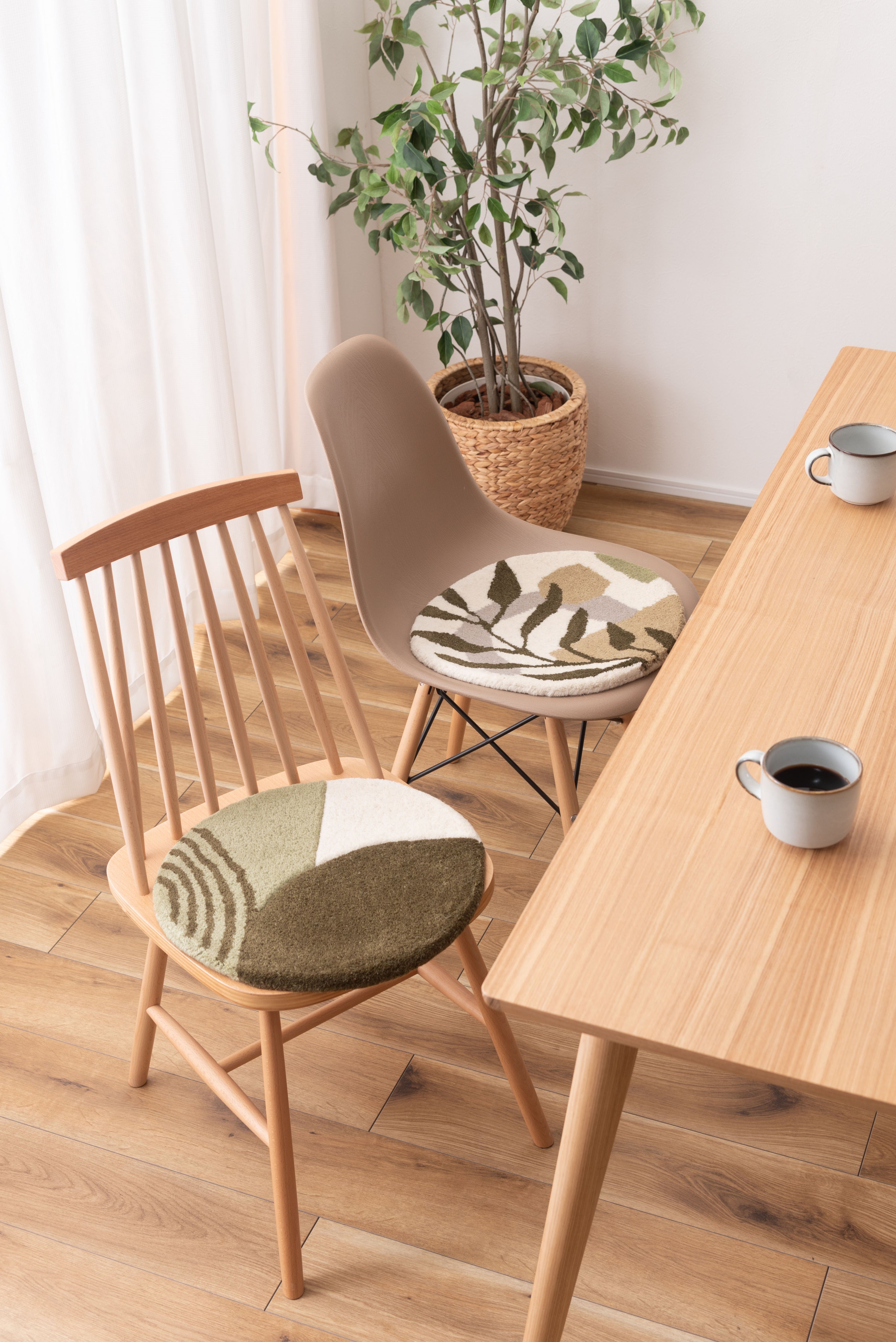 チェアやベンチに1点プラスで、インテリアも座り心地もアップ 人気のタフティングを座り心地の良いシートクッションに仕上げました。 1点1点手作業で丁寧に作られており、普段使っているチェアやベンチ、スツールなどに置くだけで、インテリアのアクセントになるだけでなく、使用感もアップする嬉しいアイテムです。