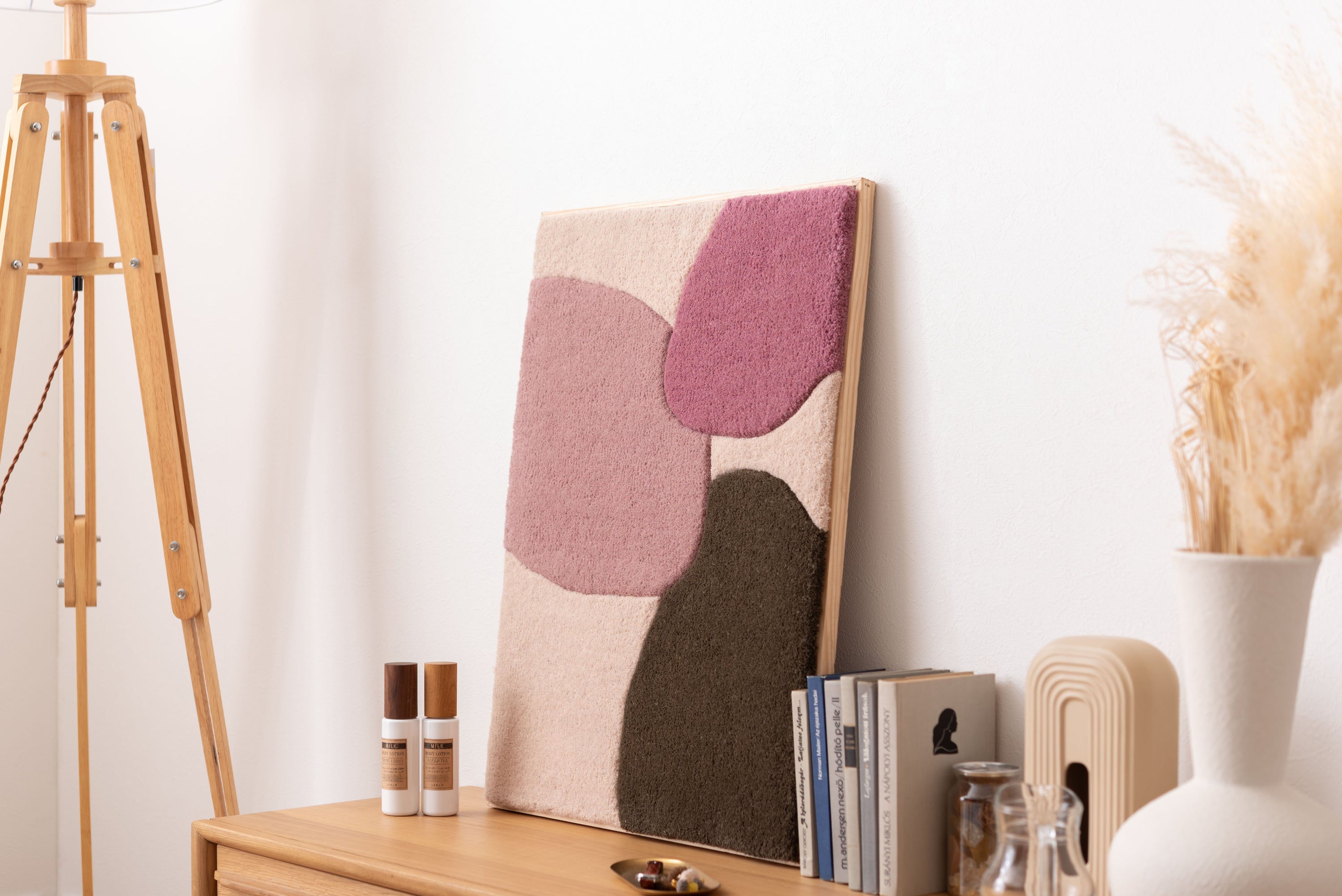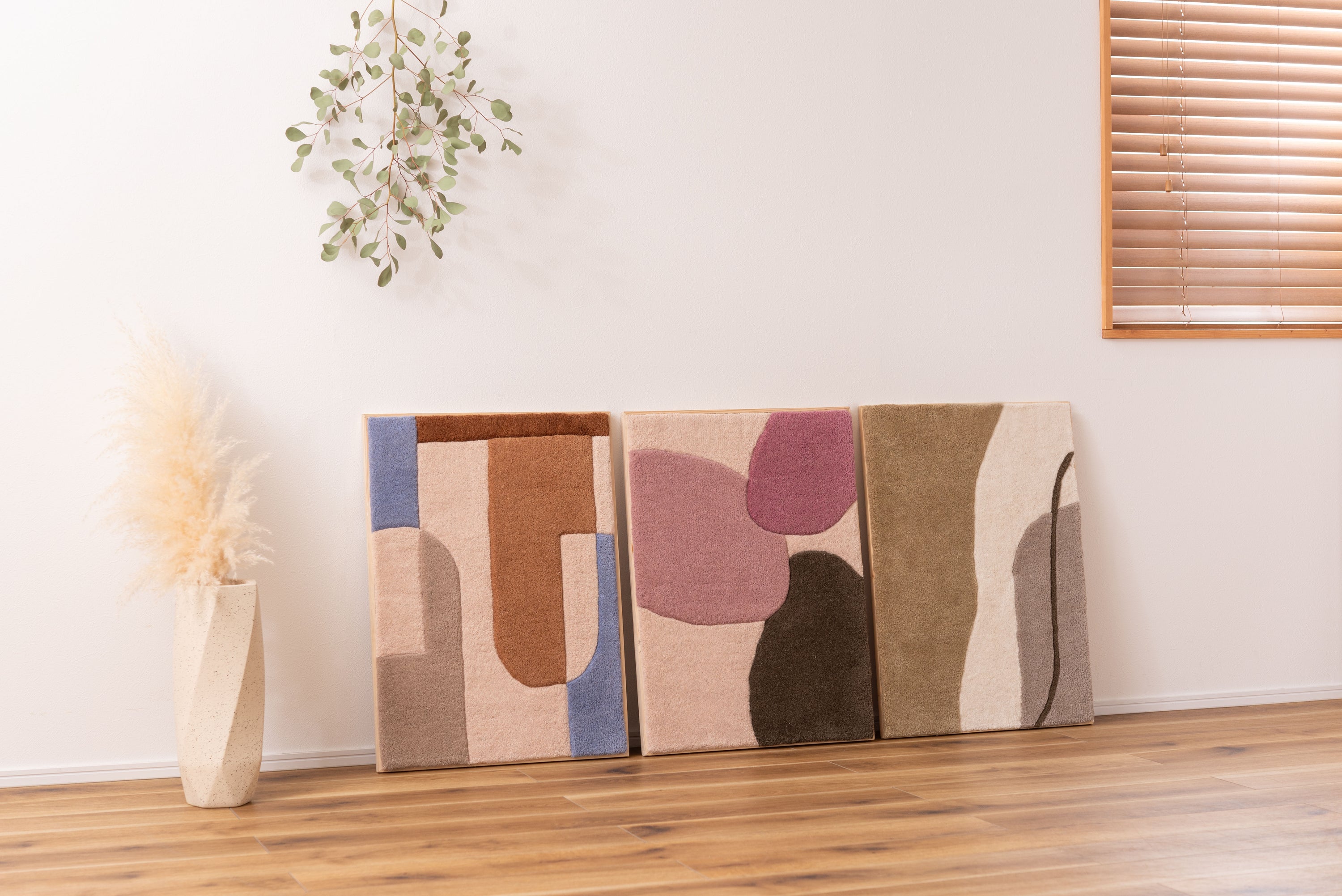人気のタフティングを木枠のパネルに施し、置くだけでお部屋を彩るウォールアートに。 ニュアンスカラーの表現と、表面の凹凸による動きのある表情にこだわったアートパネル。 凹凸のある人気のタフティング仕様で、表情のあるデザインに仕上げてます。 背面に金具が付いているので、壁掛けする事も可能。 厚みがあり重厚感もあるので、立て掛けての使用も安心。