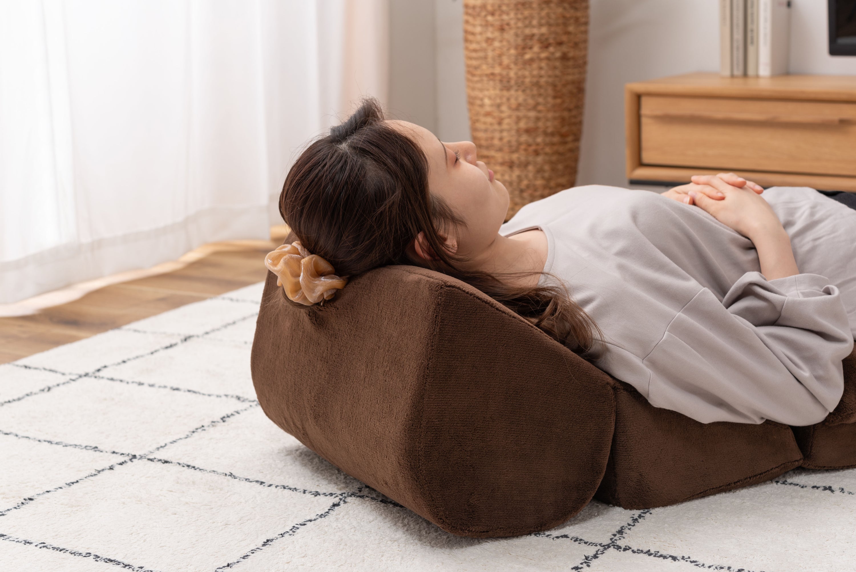 ROOMESSENCEのTV枕座布団付Mブラウンです。やわらかな触感を備え、ソファやベッドに活躍します。ブランドの美意識を感じる佇まいで、日常づかいから来客時まで幅広く対応。品番:FCC-120BR。暮らしに上質なアクセントを添える一品です。