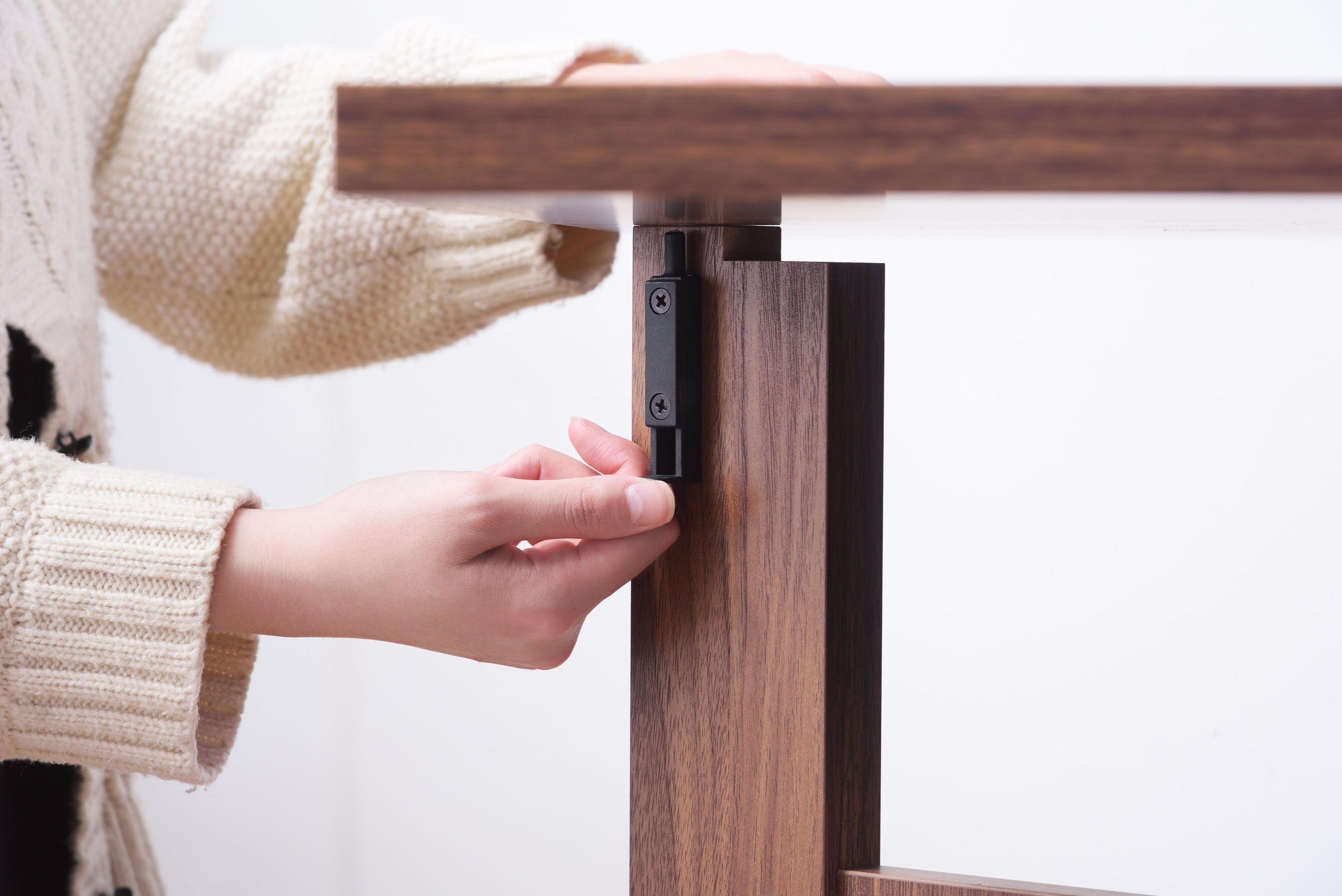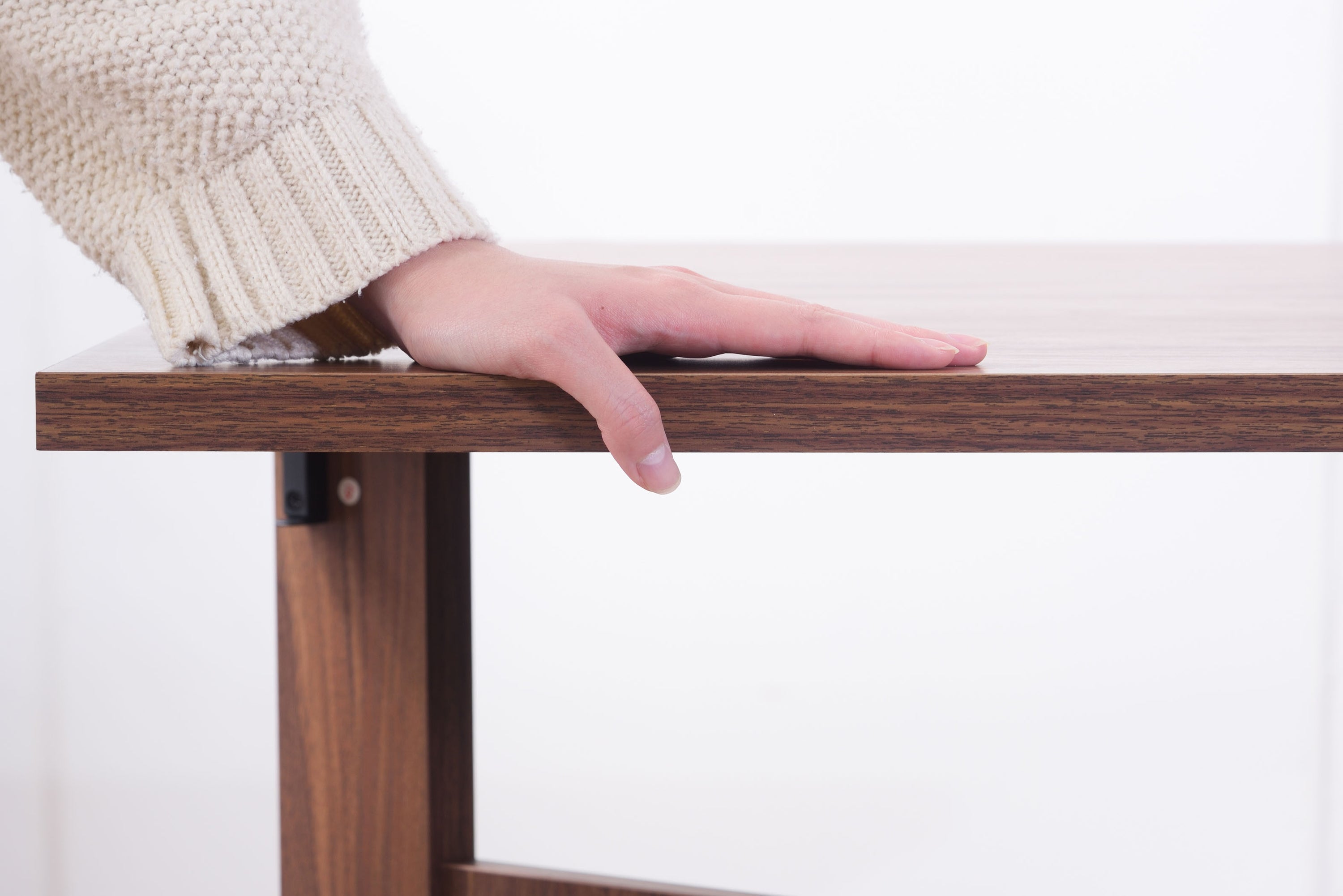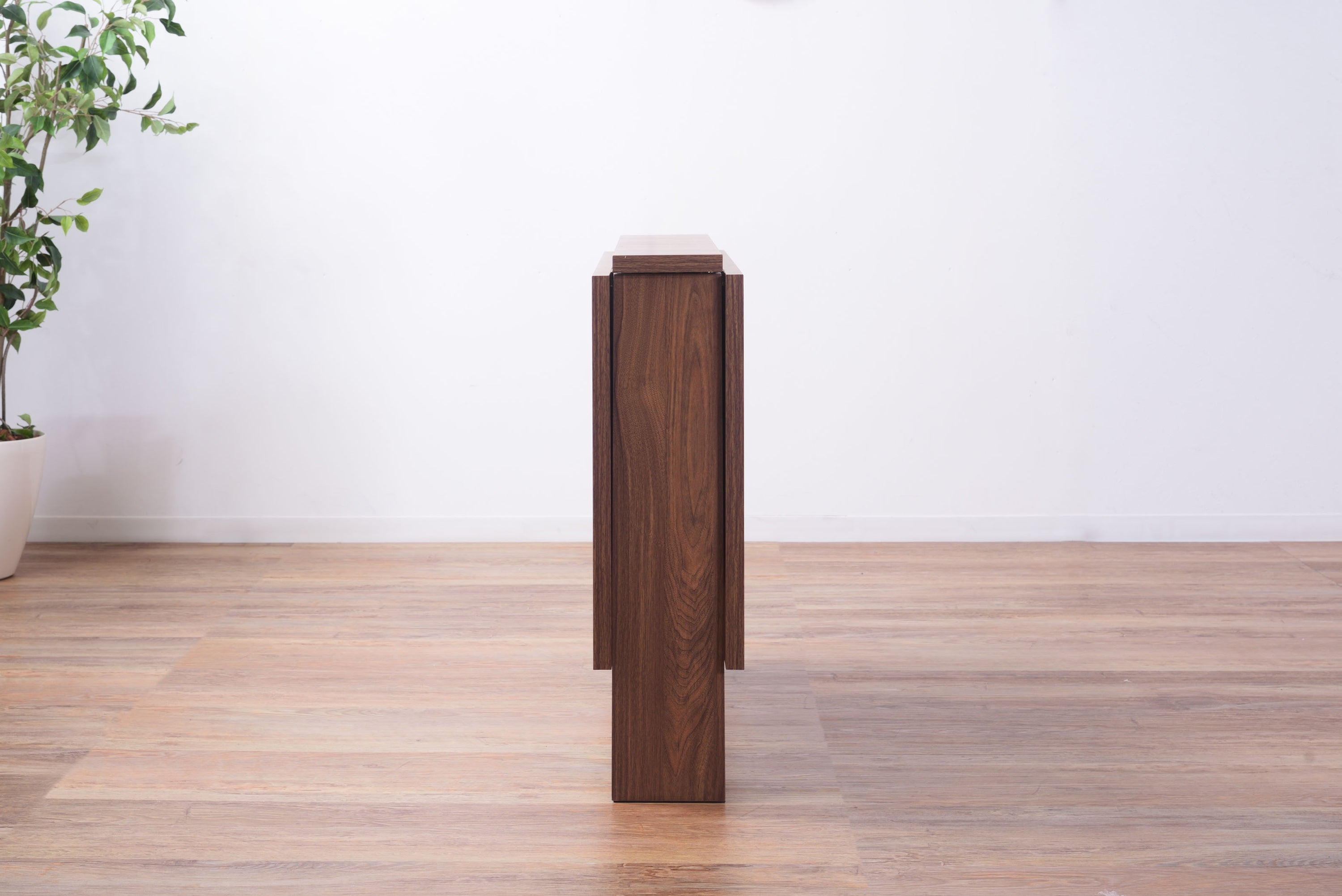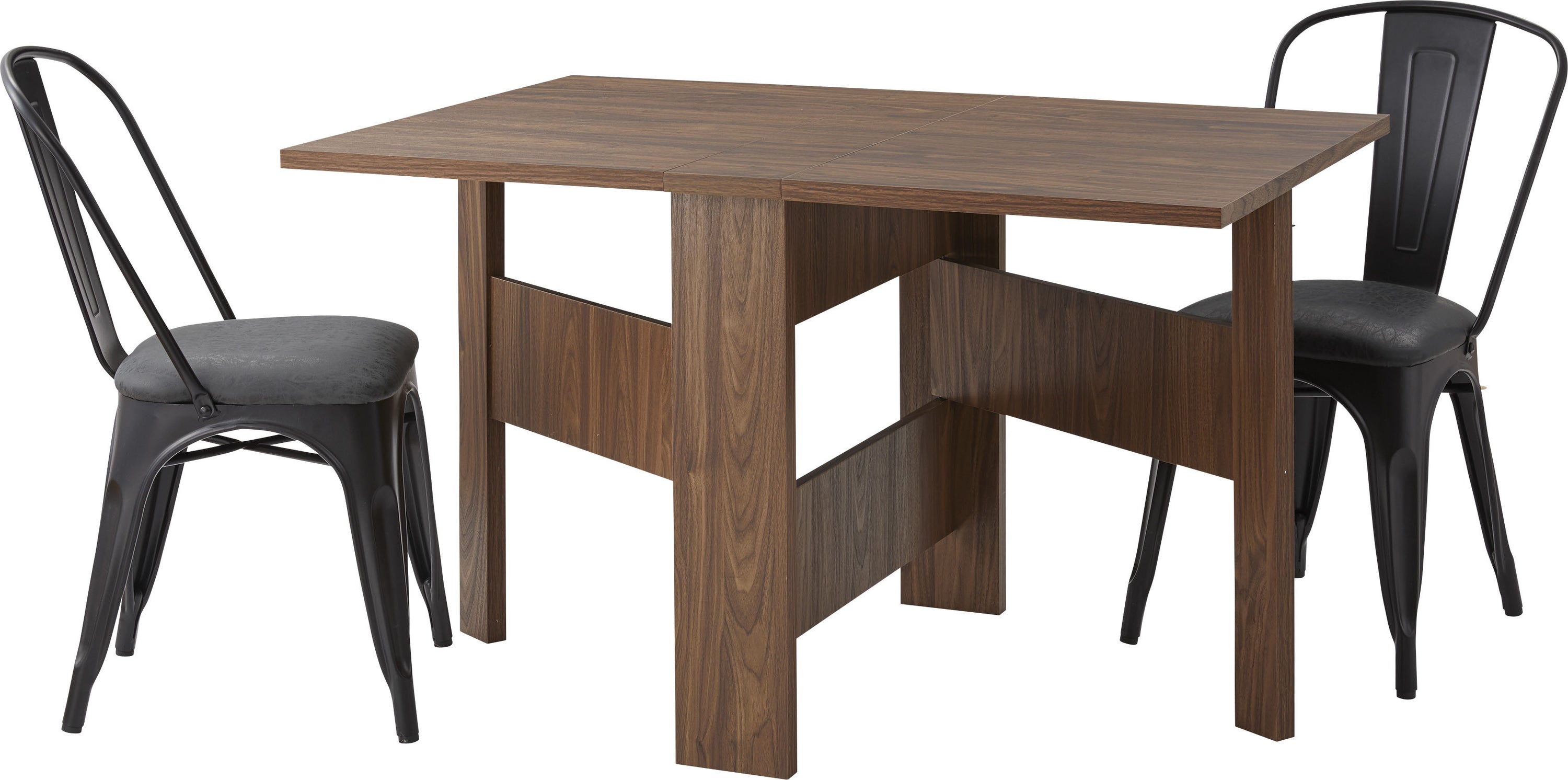 天板を広げたり折りたたんだり、使い分けが可能なダイニングテーブル。 片開き時は2人用テーブルやデスクとして。両開き時は4人用テーブルして使えます。 天板は折りたたんで収納可能。幅約20.5cmととってもコンパクト。 天板を広げたときはは両サイドにあるロックで簡単に固定。使用中に天板が閉じたりガタつく心配もありません。 テーブル本体には木目調の強化プリント紙化粧合板を使用。天然木・無垢材では難しい「統一感」を実現。 強化プリント紙化粧合板は汚れに強くお手入れが簡単なのでいつでも清潔。 弾力のある床キズ防止クッションが脚裏全体に張られているのでフローリングの使用でも安心。 お部屋全体を明るくしたいときにオススメのナチュラルと落ち着いた色合いで使いやすいウォルナットの2色。