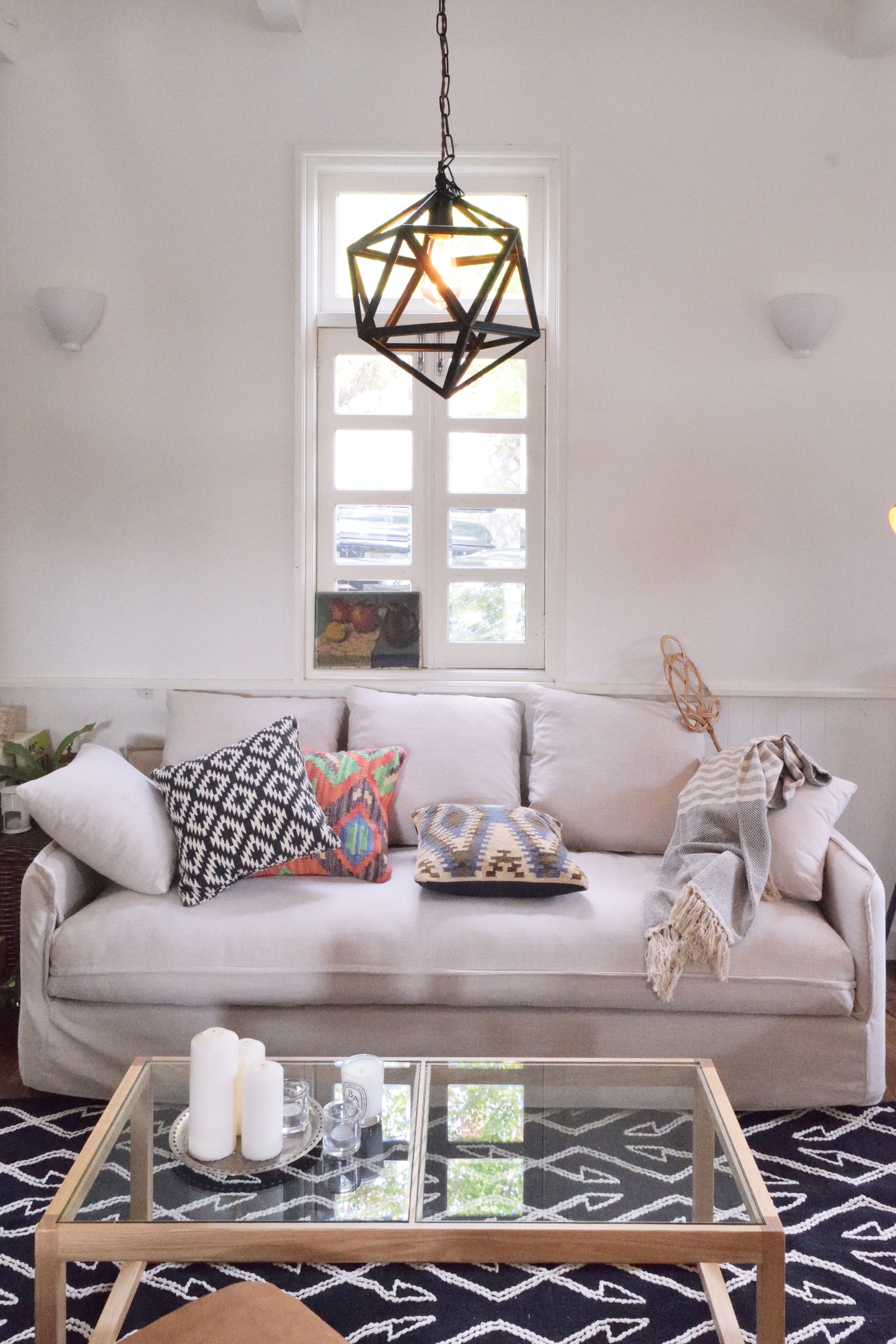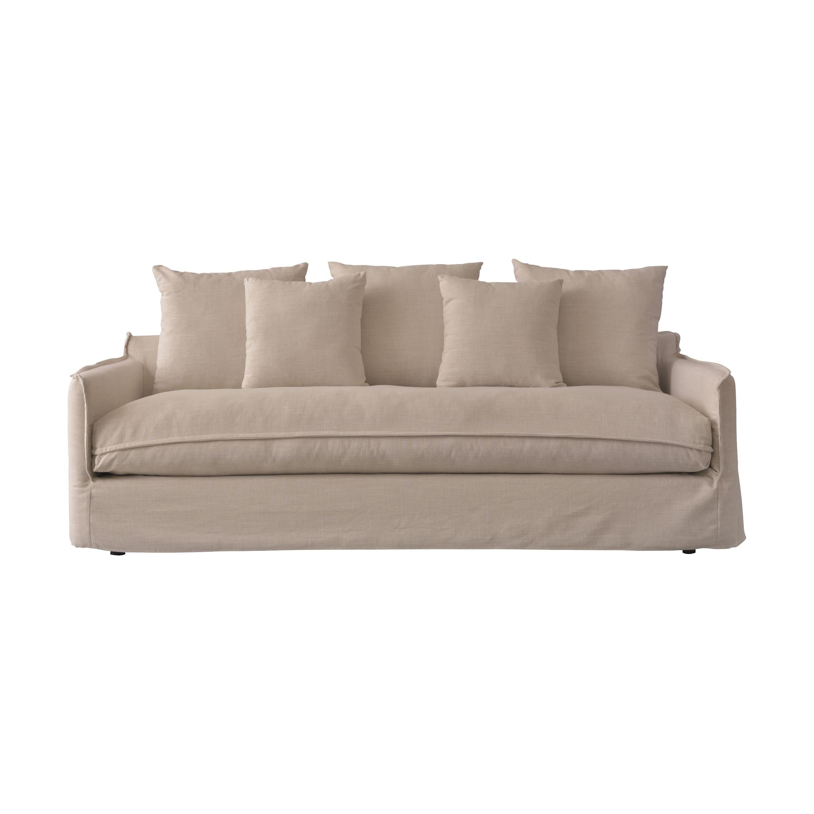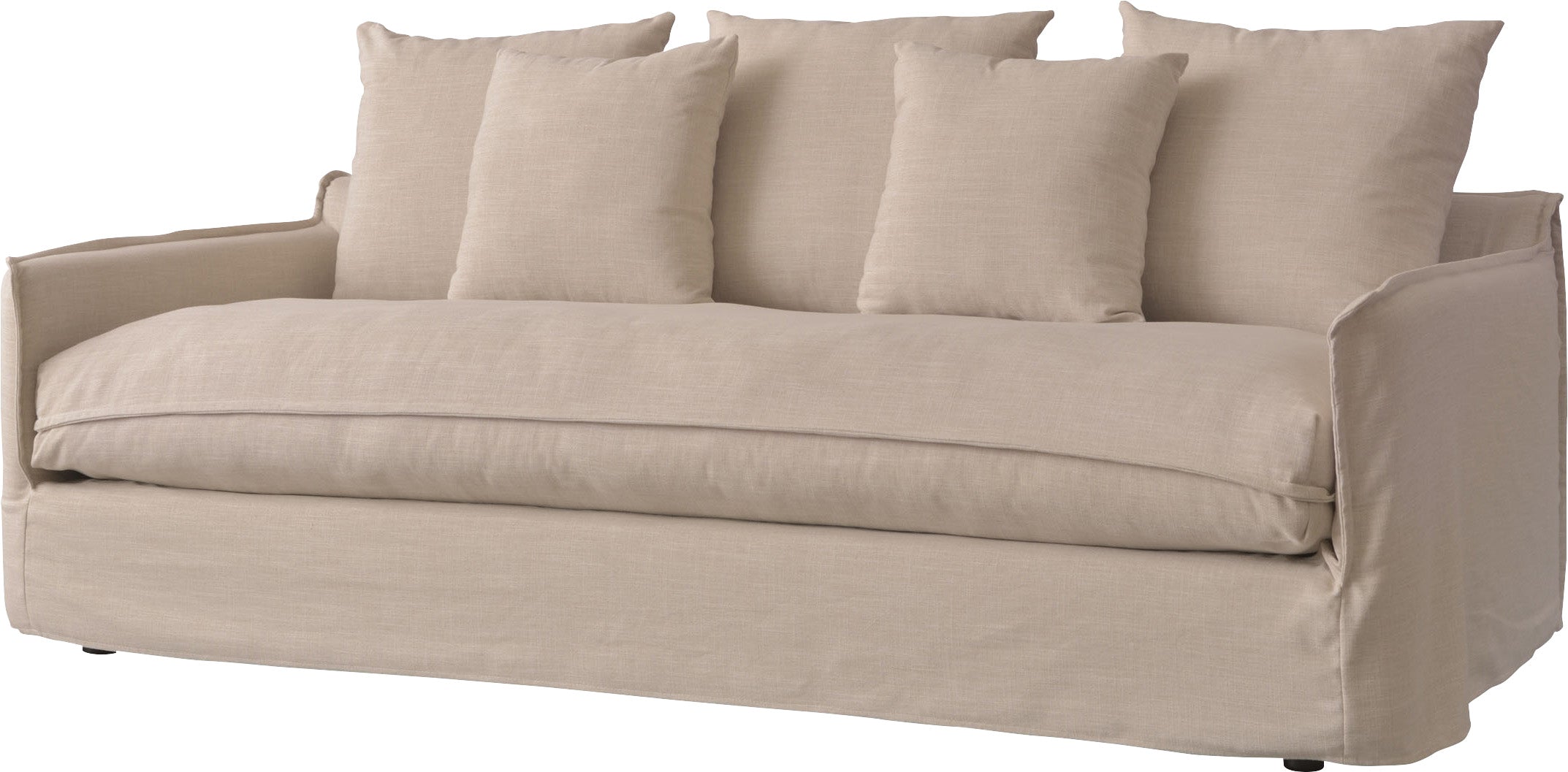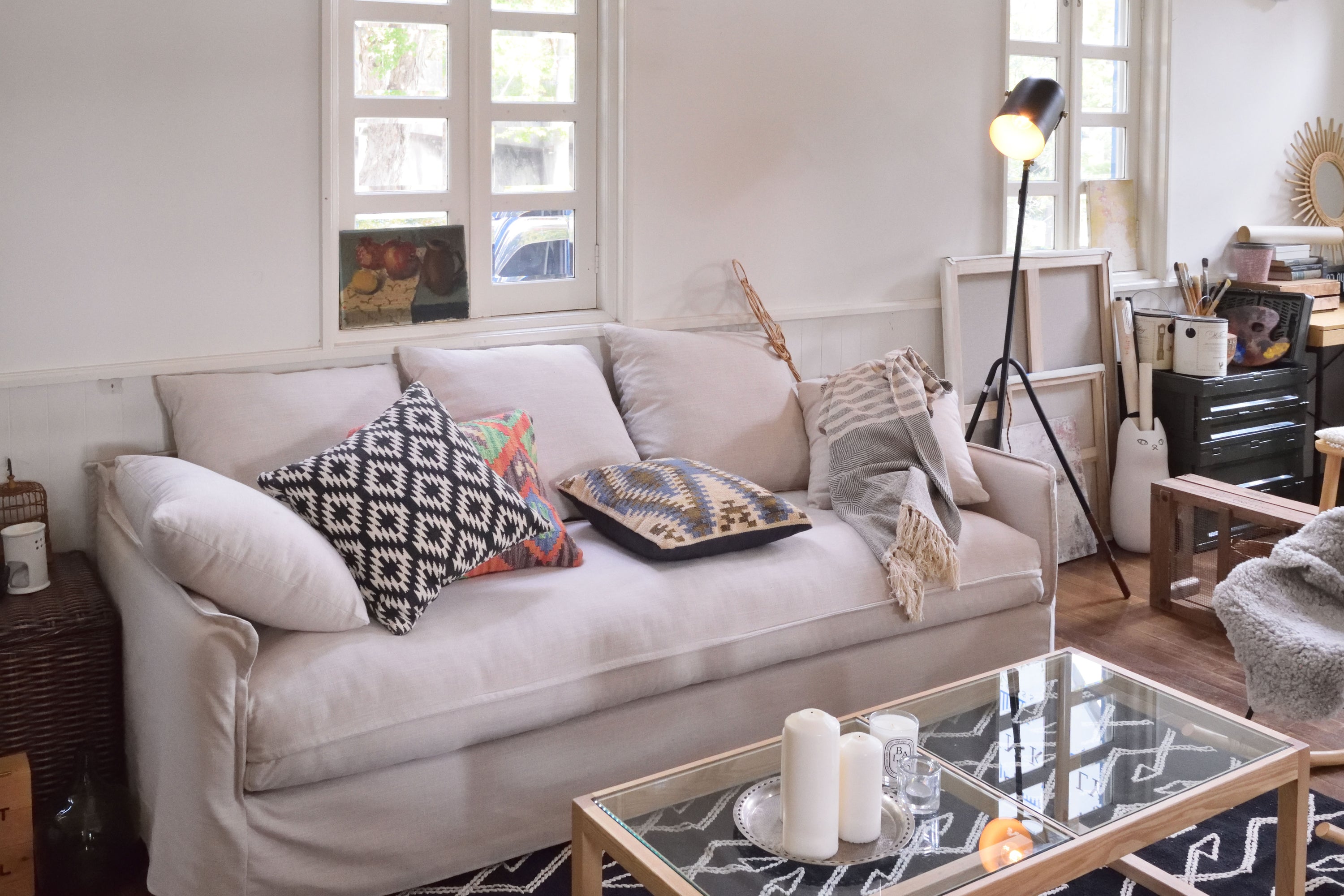 シンプルでベーシックなデザインのソファ。 5つのクッションは置き換えが自由なのでお好みのスタイルでくつろぐことができます。