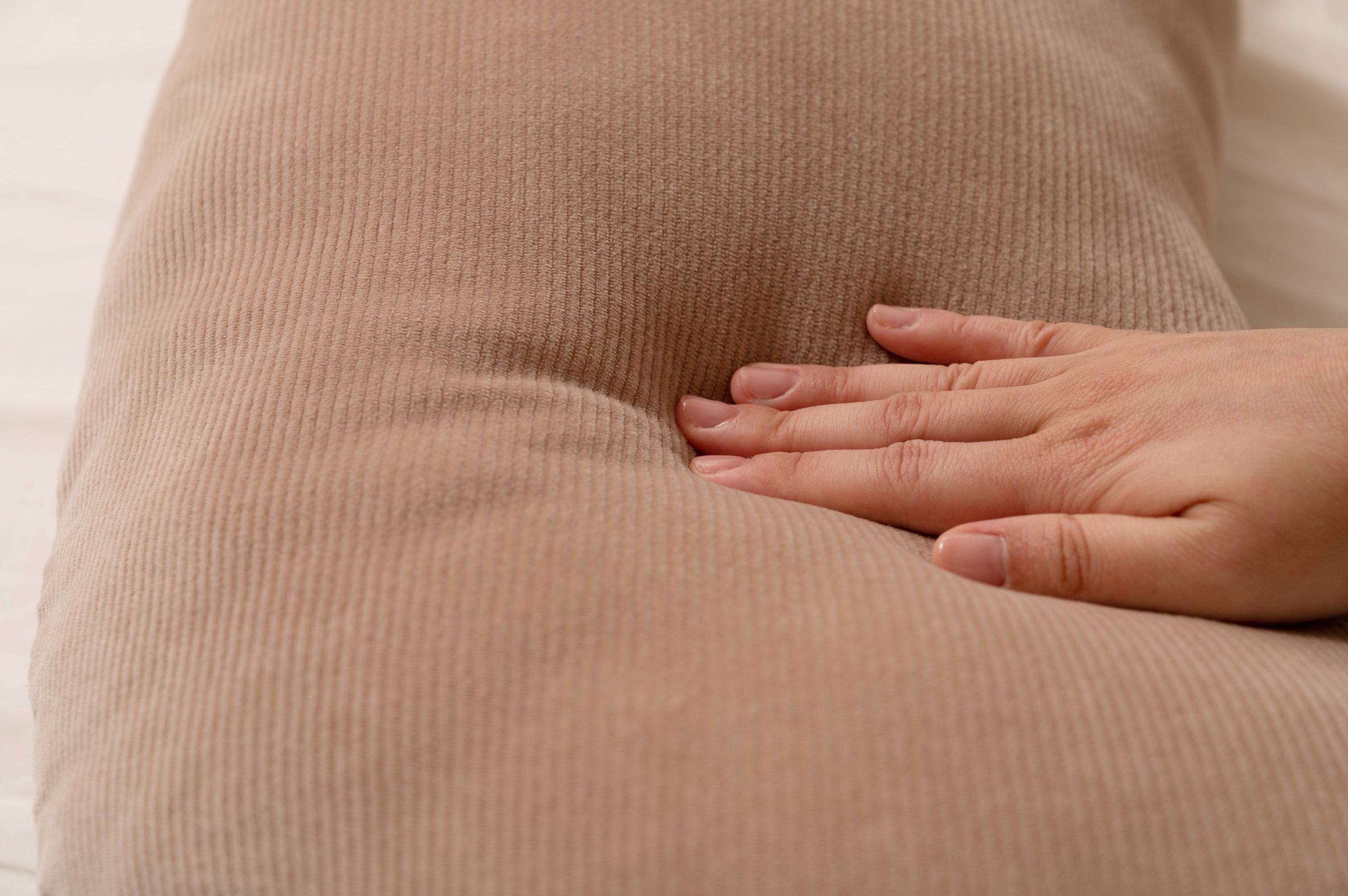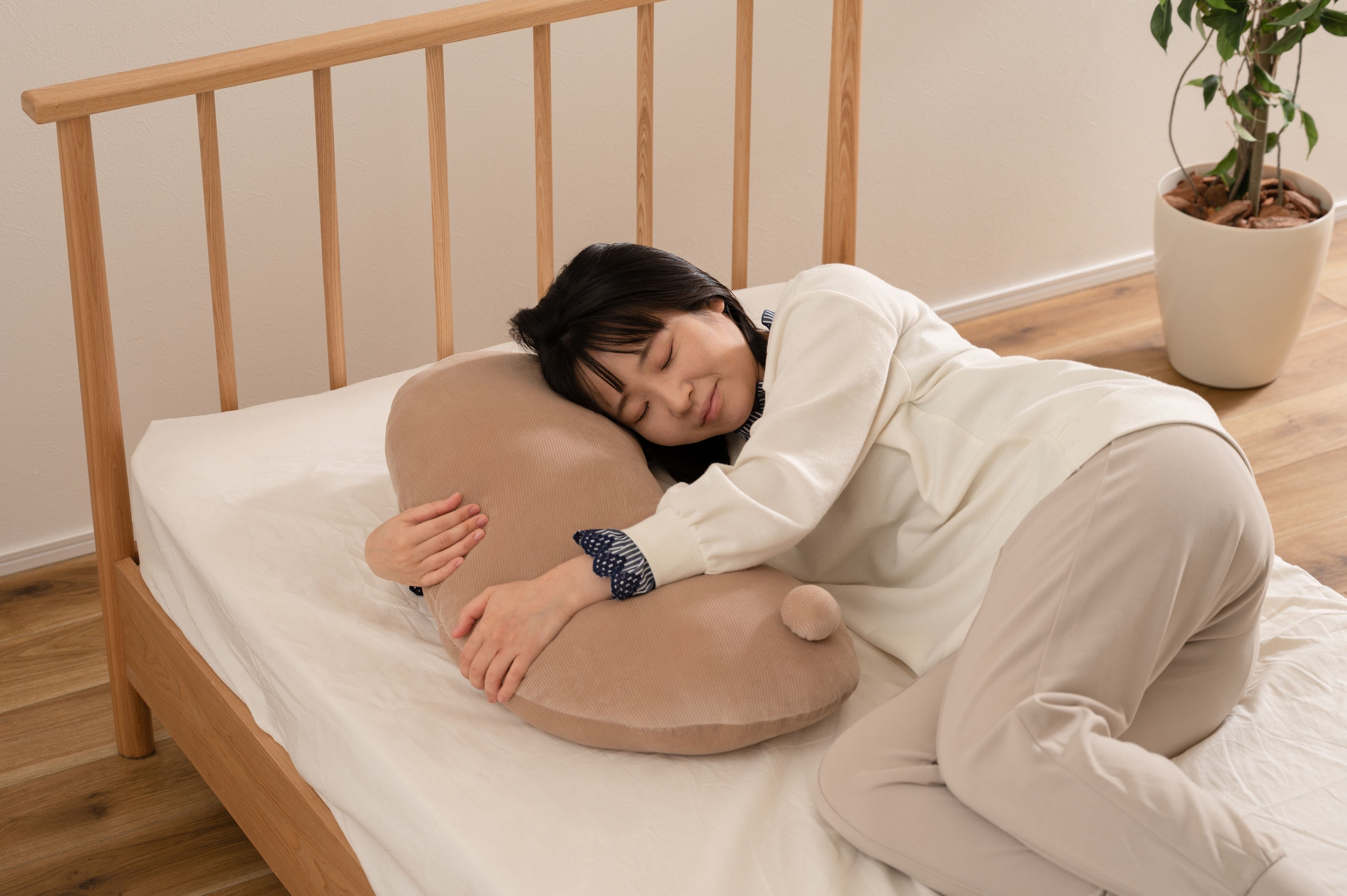 もちもちとした触感がたまらなく気持ち良い…。ボディーピロー。コーデュロイの生地とくすみカラーによって可愛らしさとお洒落さを兼ね備えた、インテリアにも馴染んでくれる癒しのピロー。カーブが掛かった形なのでとっても抱きやすい形状。枕として、腰当クッションとして、肘置きとして、足枕として、様々なシーンで寄り添ってくれる一度使ったら手放せないピロー。