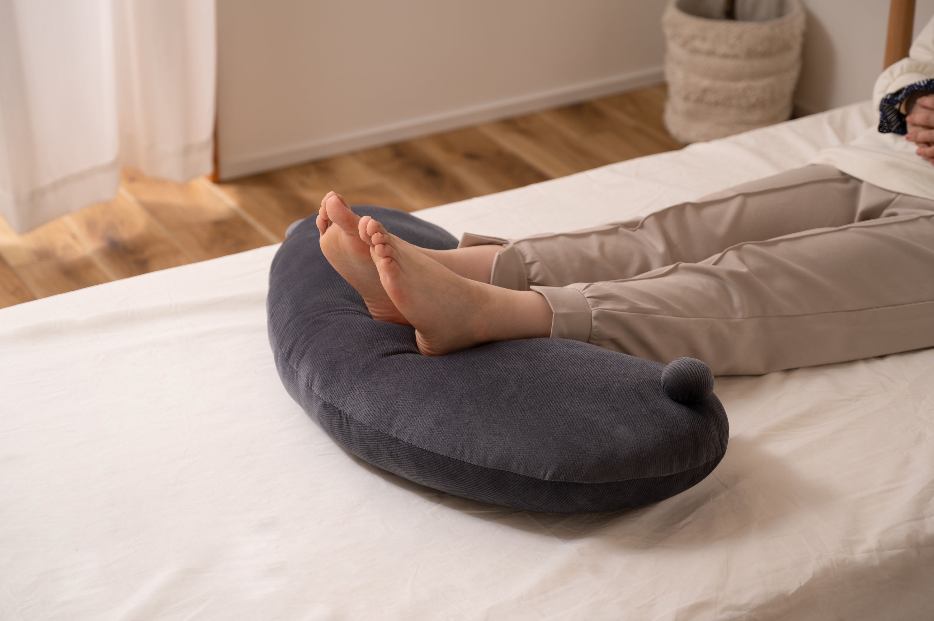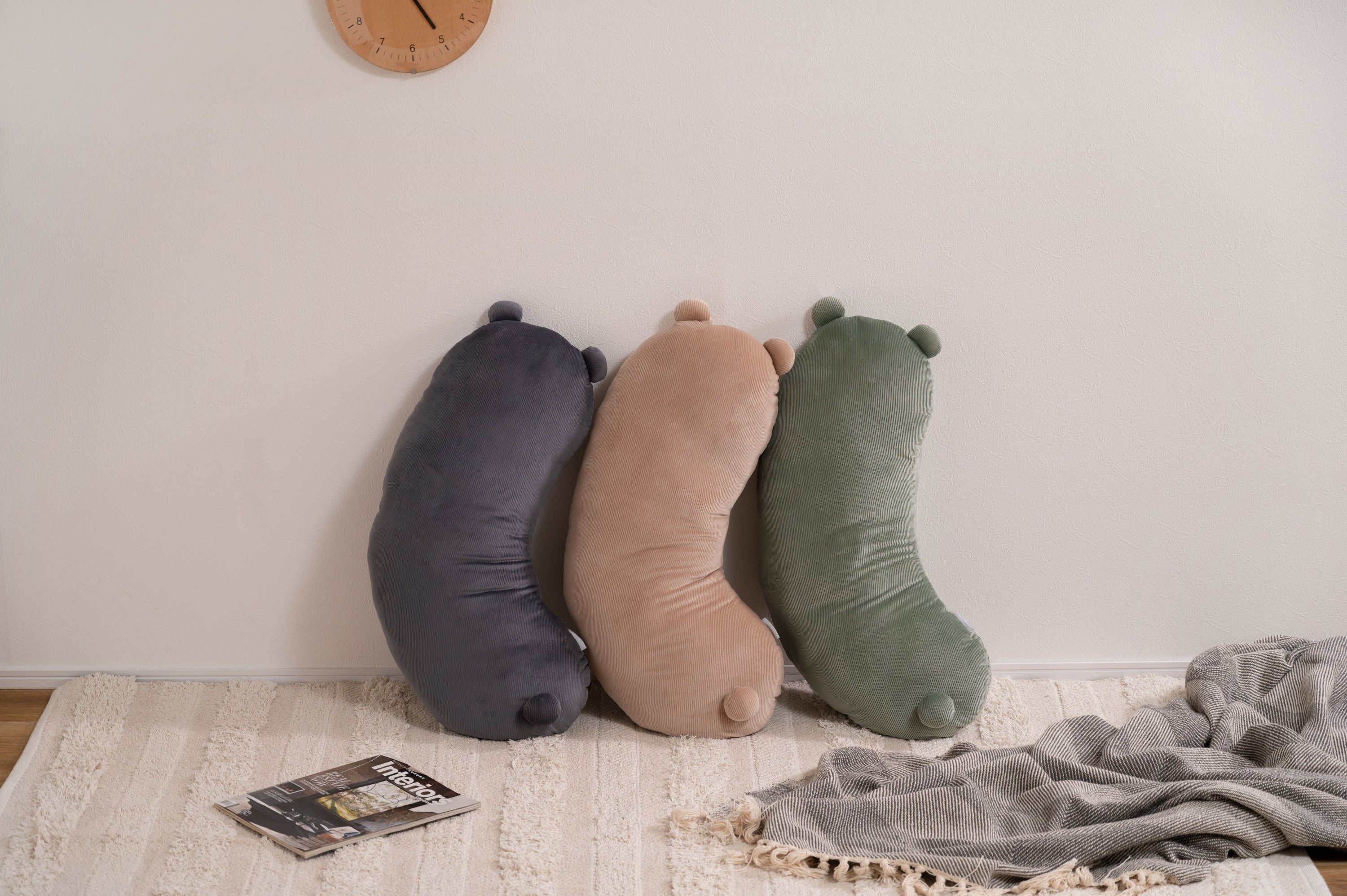もちもちとした触感がたまらなく気持ち良い…。ボディーピロー。コーデュロイの生地とくすみカラーによって可愛らしさとお洒落さを兼ね備えた、インテリアにも馴染んでくれる癒しのピロー。カーブが掛かった形なのでとっても抱きやすい形状。枕として、腰当クッションとして、肘置きとして、足枕として、様々なシーンで寄り添ってくれる一度使ったら手放せないピロー。
