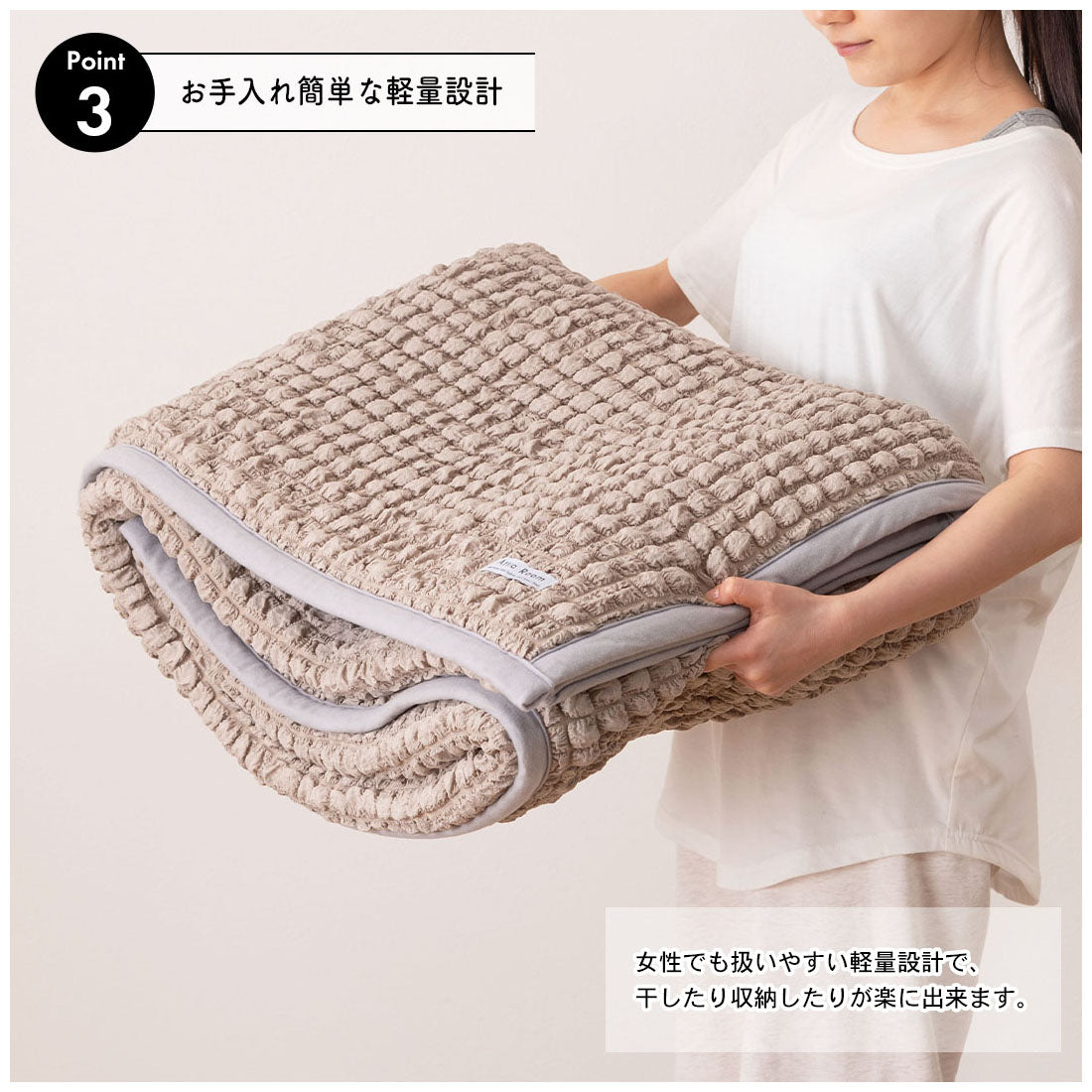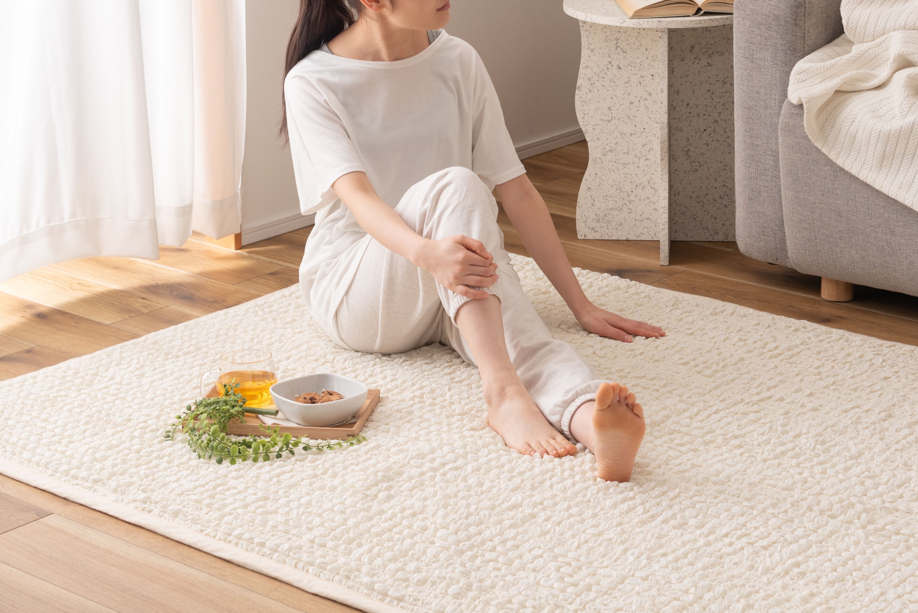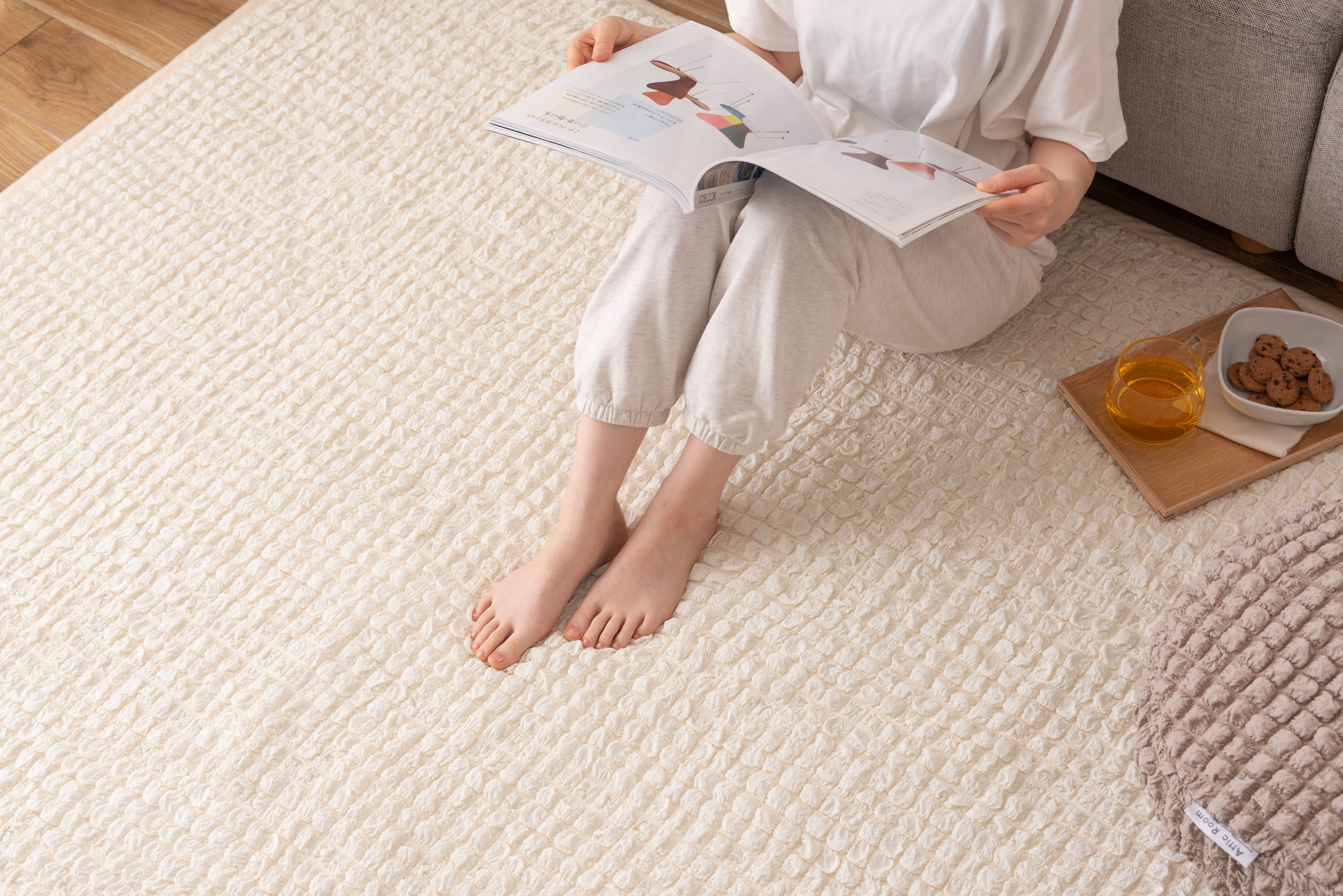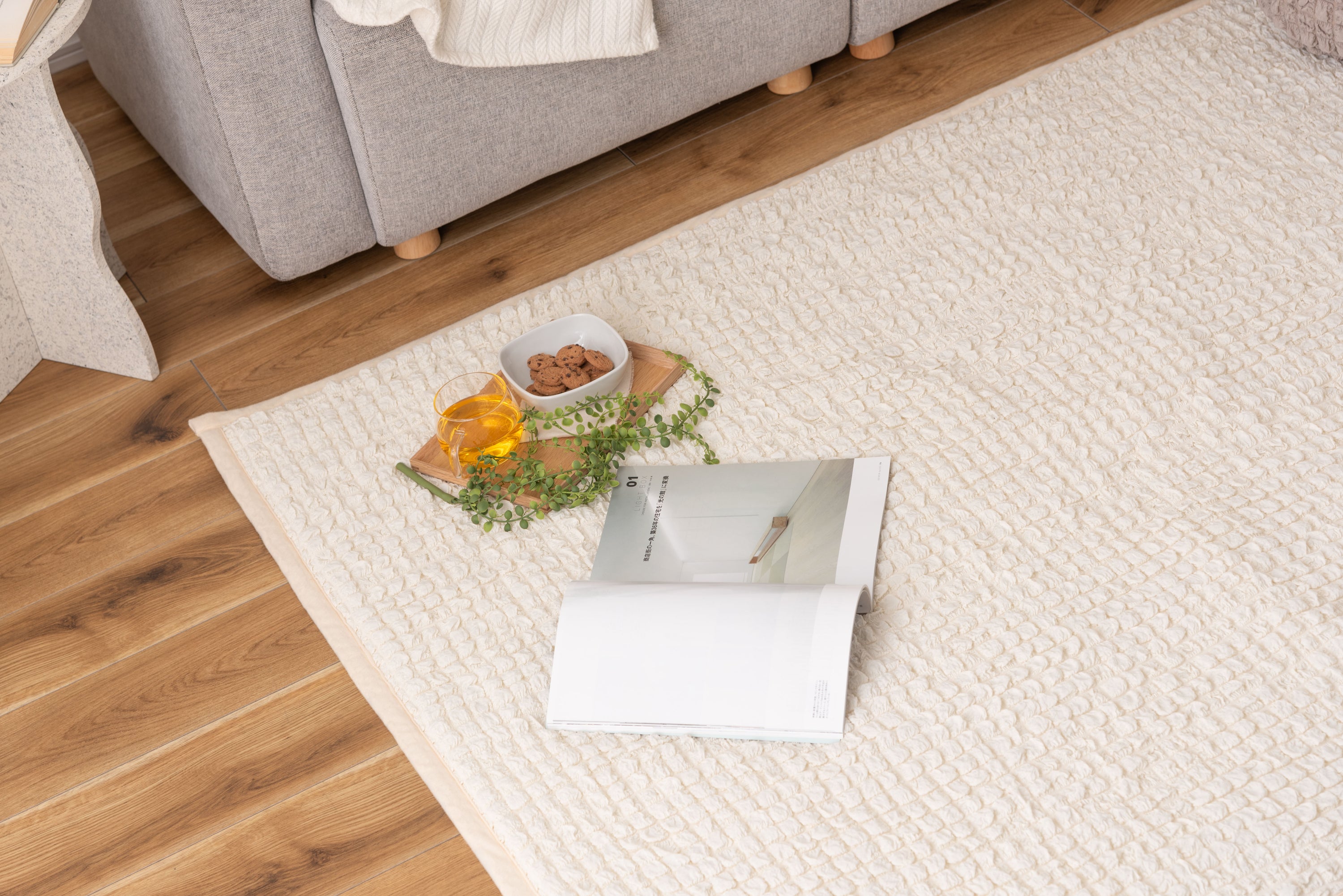 人気のポップコーン生地を使った接触冷感のポップコーンラグ。 冷感アイテムにはなかなか無いニュアンスカラー。 インテリアにも合わせやすいデザイン。 程よいクッション性のあるラグマット。 ふんわりひんやり触感の使い心地の良いラグ。 お部屋の主役になってくれる可愛い見た目もポイント。 ポップコーン生地が接触冷感になった、夏のお部屋をひんやり快適に過ごせるアイテム。 ウレタンを使用し程よいクッション性があるので、ふんわり気持ちよく使う事が出来ます。 扱いやすい軽量設計で、干したり収納したりがラクラク。 裏面は滑り止め付きで、お子様がいるご家庭でも安心して使用出来ます。 人気のくすみカラーを採用。