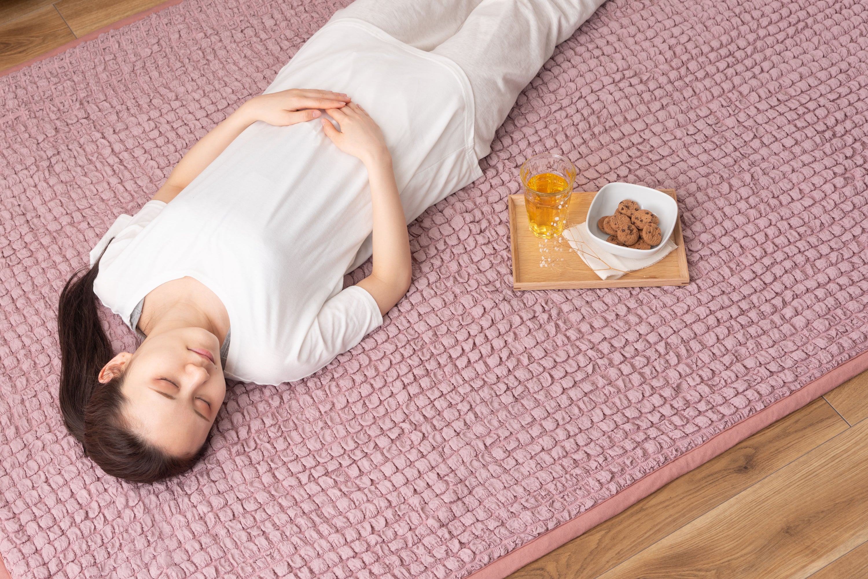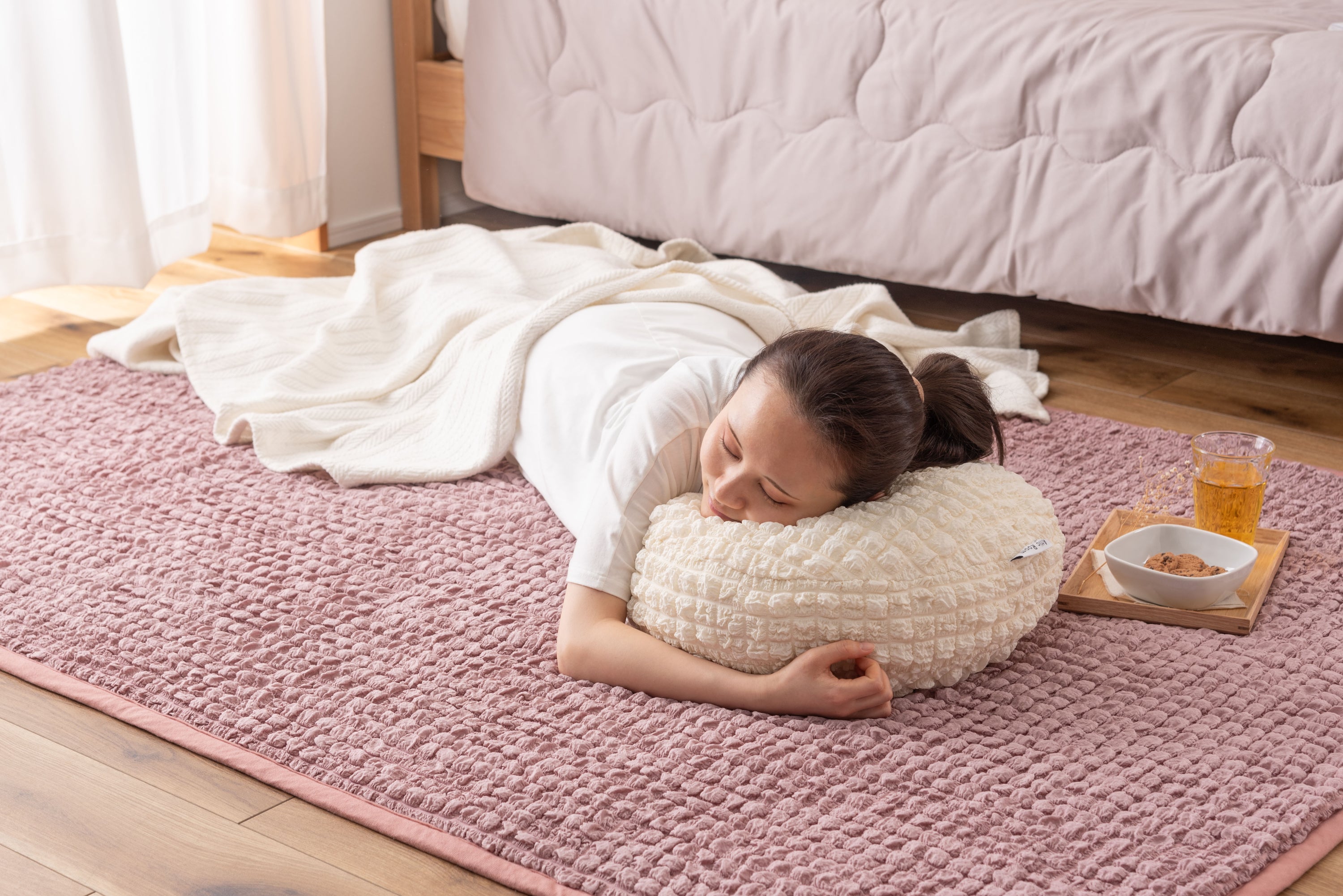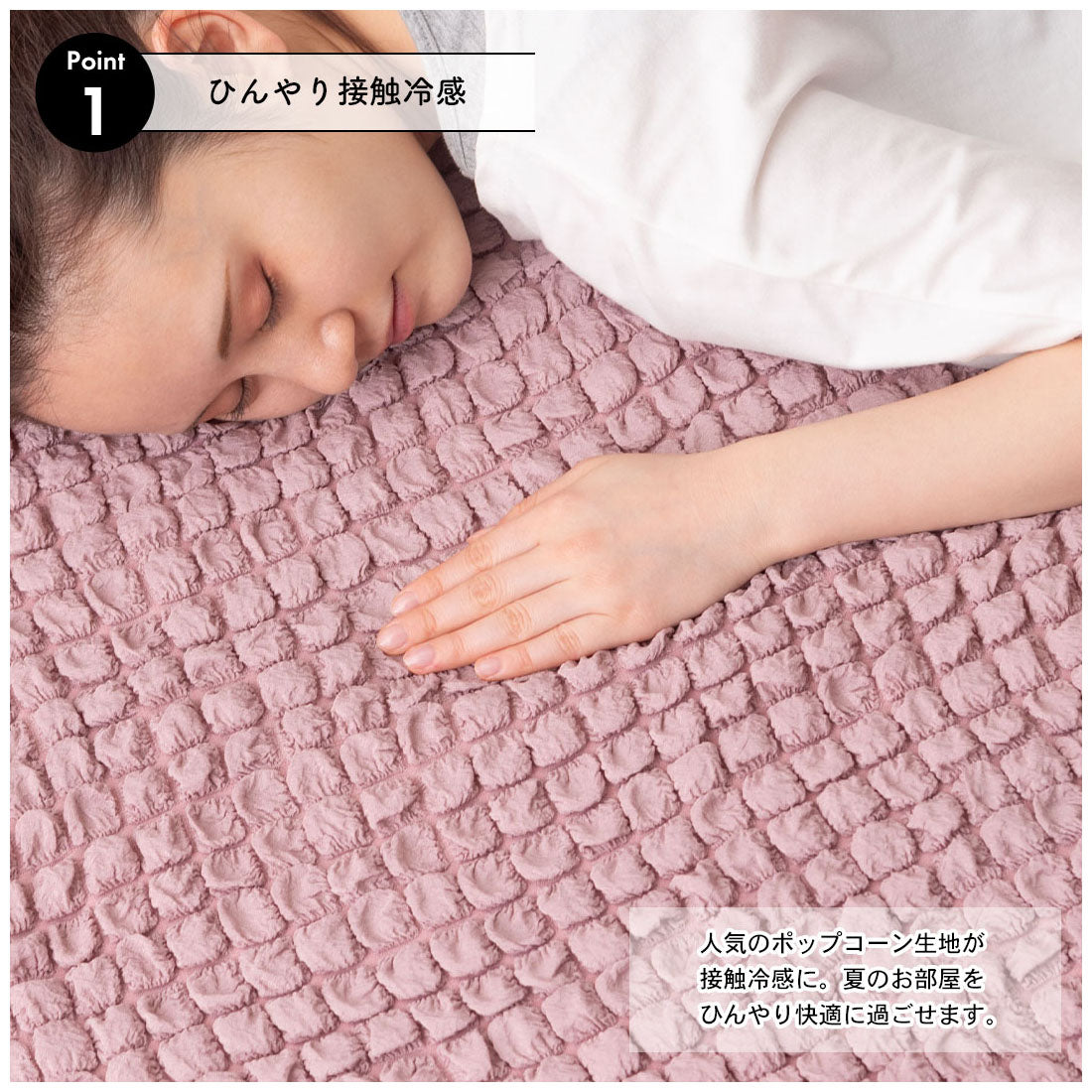 人気のポップコーン生地を使った接触冷感のポップコーンラグ。 冷感アイテムにはなかなか無いニュアンスカラー。 インテリアにも合わせやすいデザイン。 程よいクッション性のあるラグマット。 ふんわりひんやり触感の使い心地の良いラグ。 お部屋の主役になってくれる可愛い見た目もポイント。 ポップコーン生地が接触冷感になった、夏のお部屋をひんやり快適に過ごせるアイテム。 ウレタンを使用し程よいクッション性があるので、ふんわり気持ちよく使う事が出来ます。 扱いやすい軽量設計で、干したり収納したりがラクラク。 裏面は滑り止め付きで、お子様がいるご家庭でも安心して使用出来ます。 人気のくすみカラーを採用。