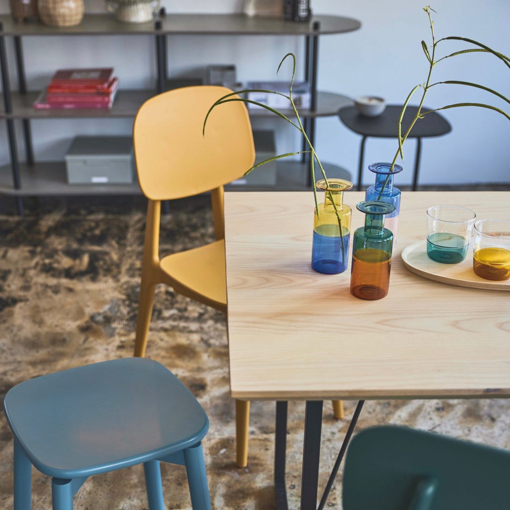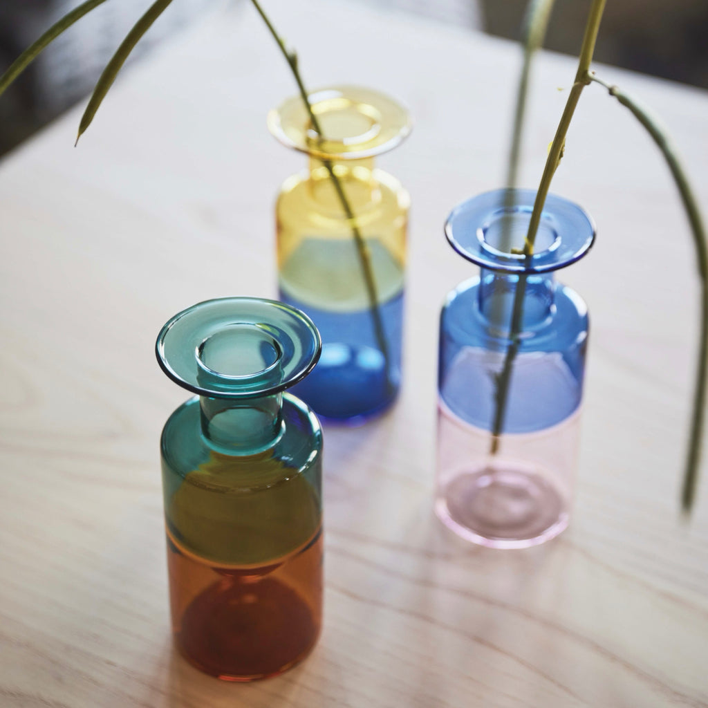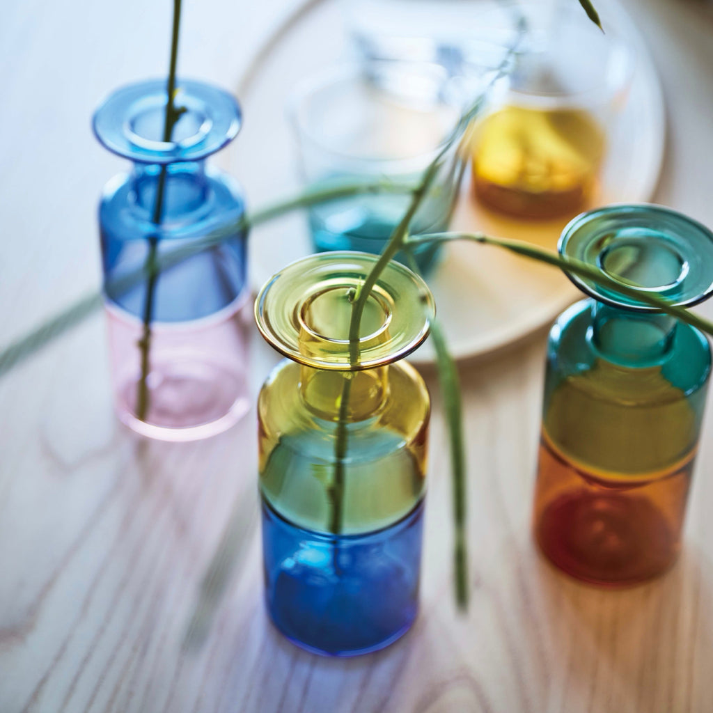 ROOMESSENCEのガラスベースブルー・ピンクです。花やグリーンを引き立てる透明感を備え、玄関や棚上のアクセントに活躍します。ブランドの美意識を感じる佇まいで、日常づかいから来客時まで幅広く対応。品番:GRS-26BPK。暮らしに上質なアクセントを添える一品です。