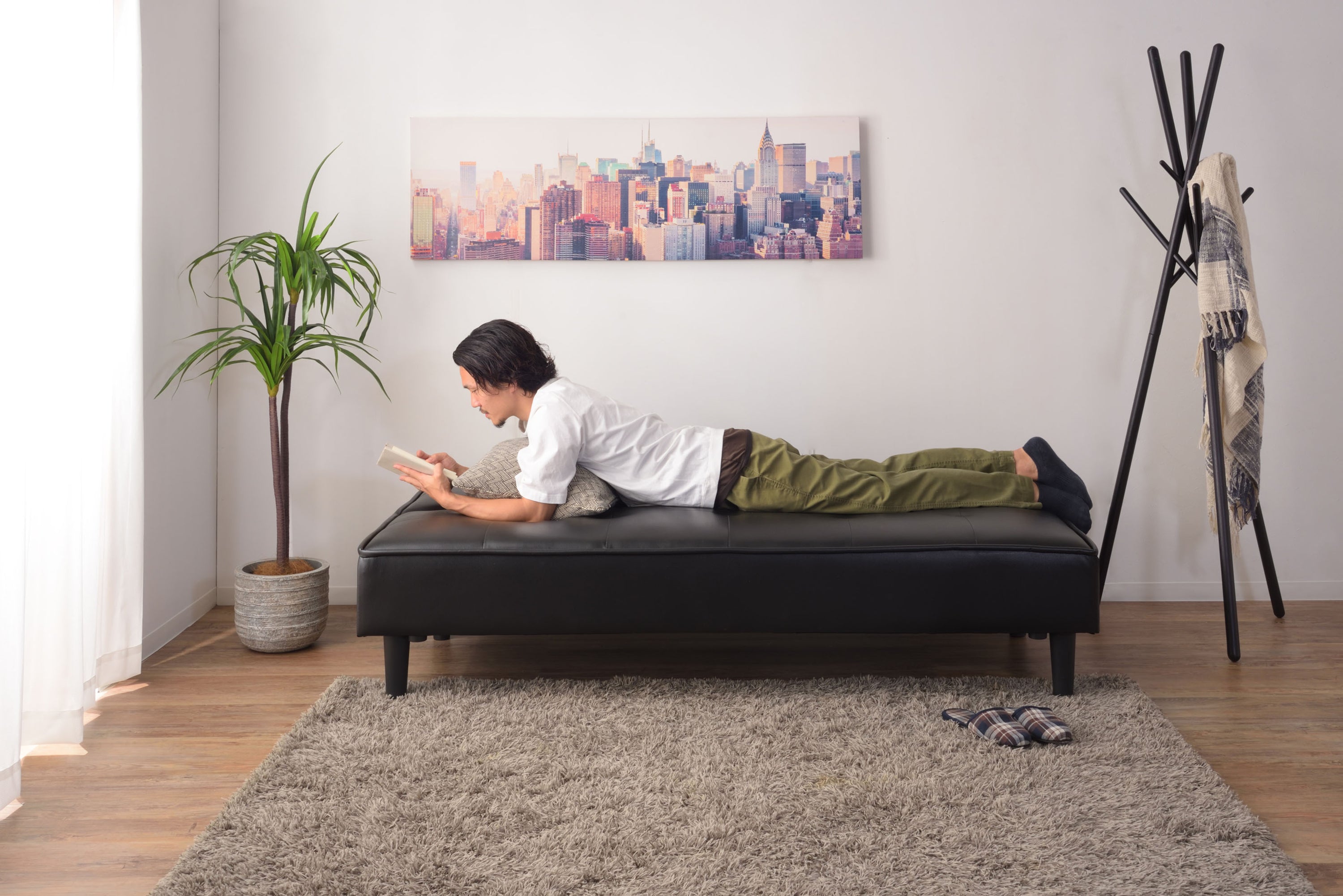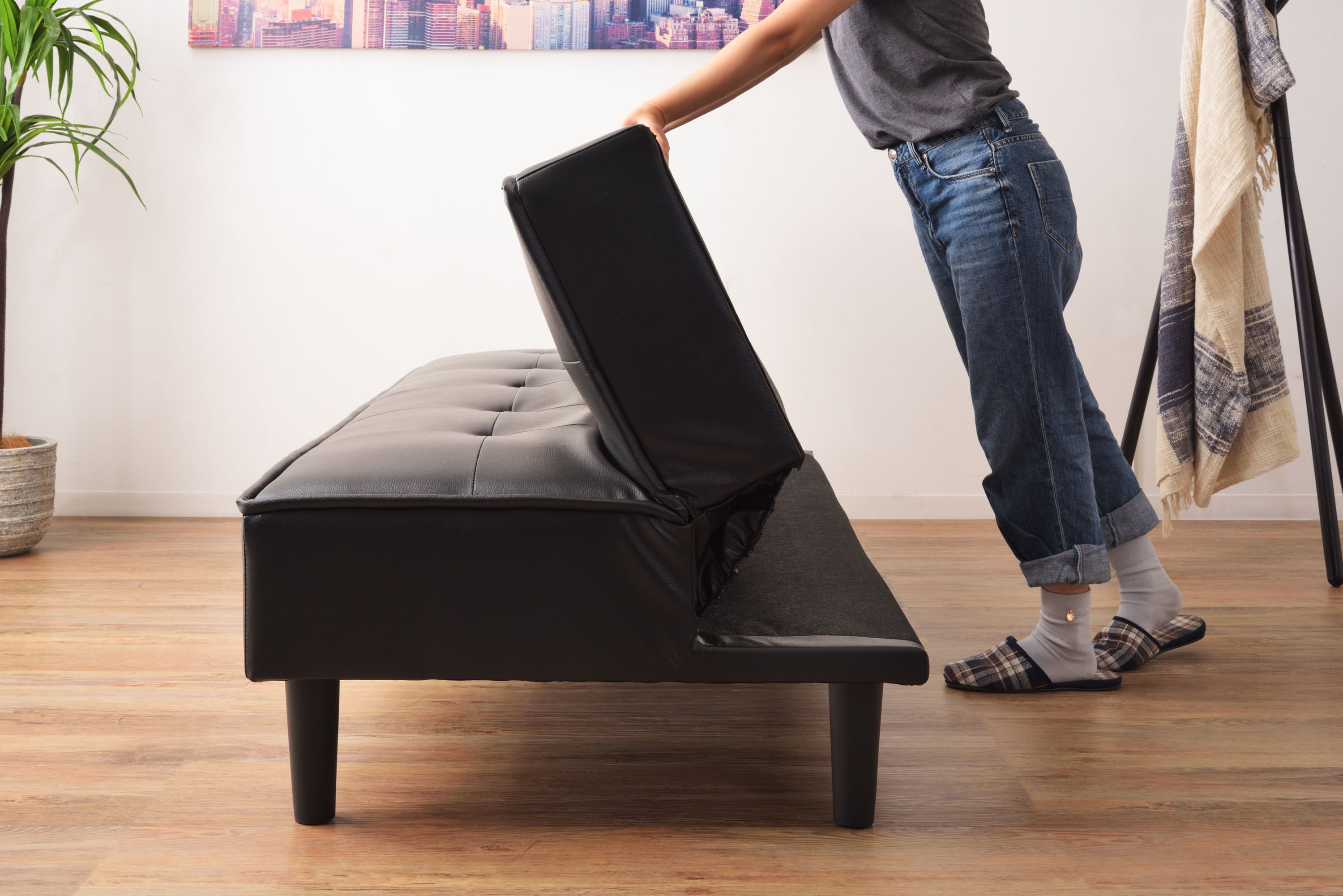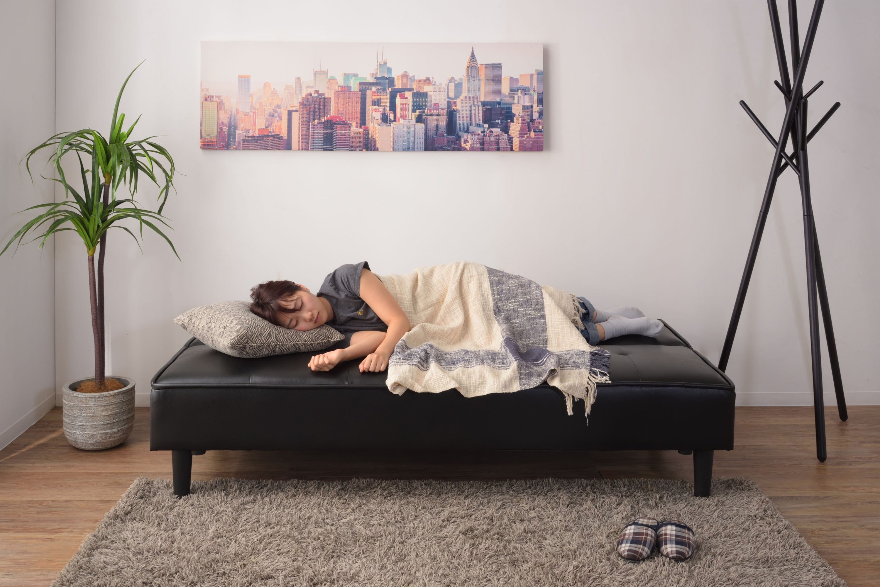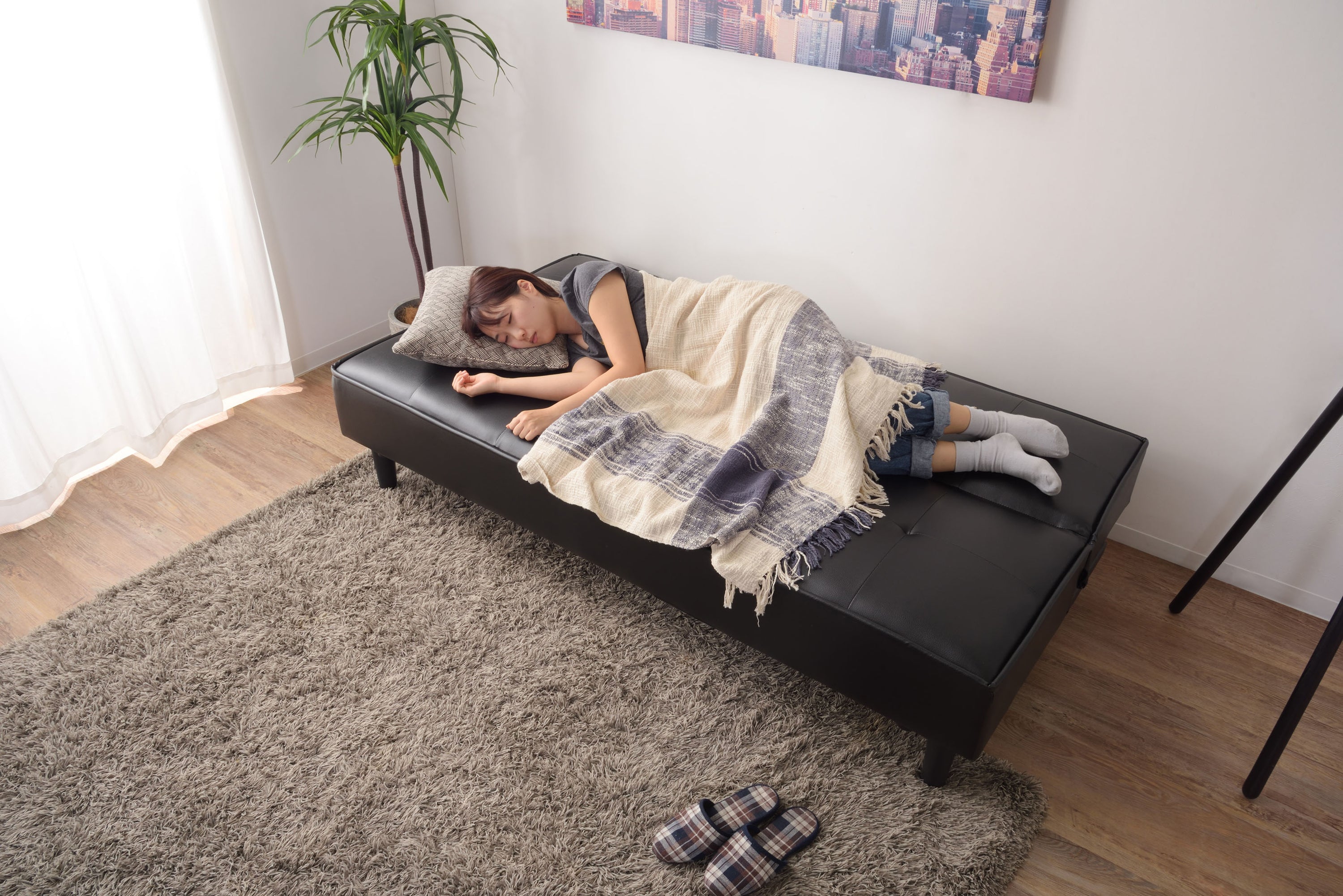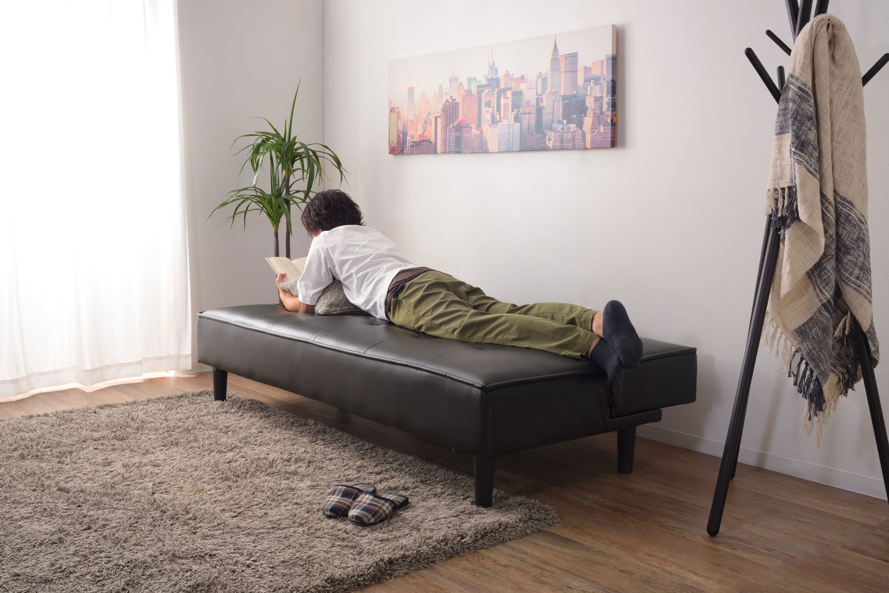 背もたれを倒すとソファへ早変わりするソファベッドは、限られたスペースにソファもベッドも置きたい方にピッタリ。 光沢が美しいレザータイプのソファベッドは、汚れに強いのでお手入れも簡単です。