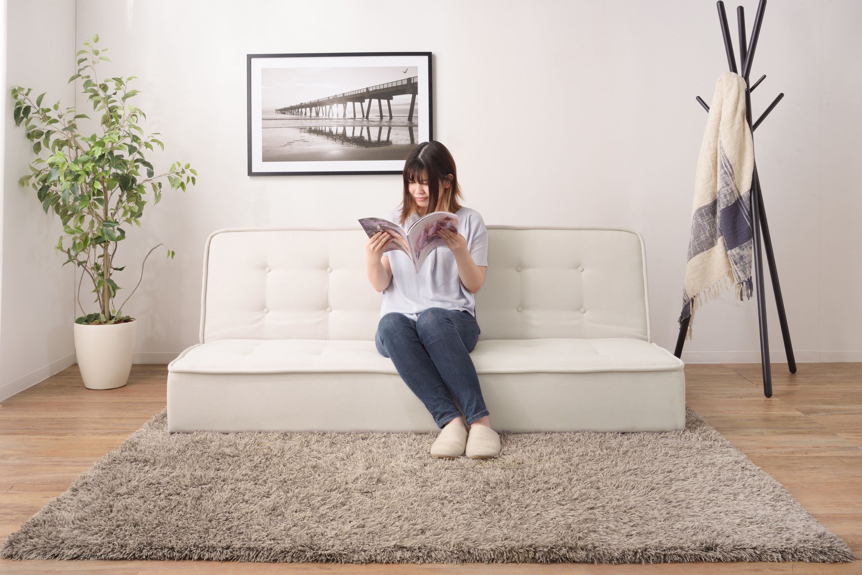 ソファベッド ベージュ
