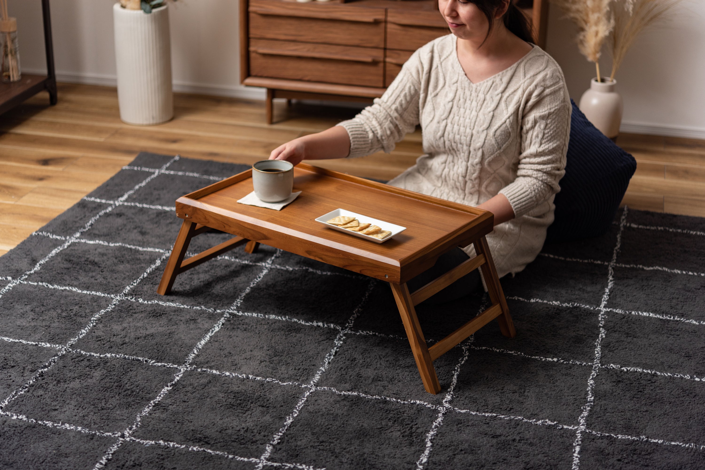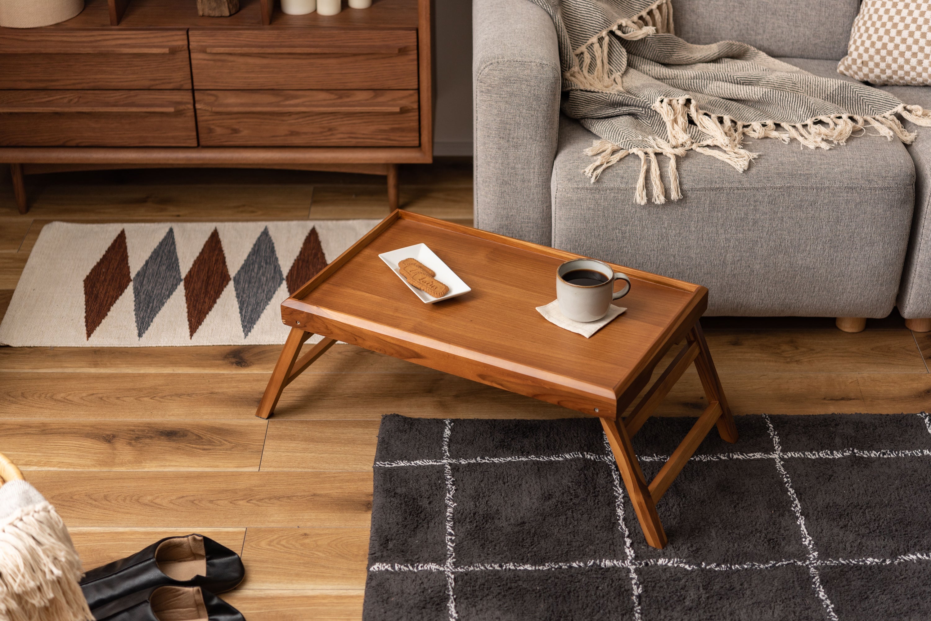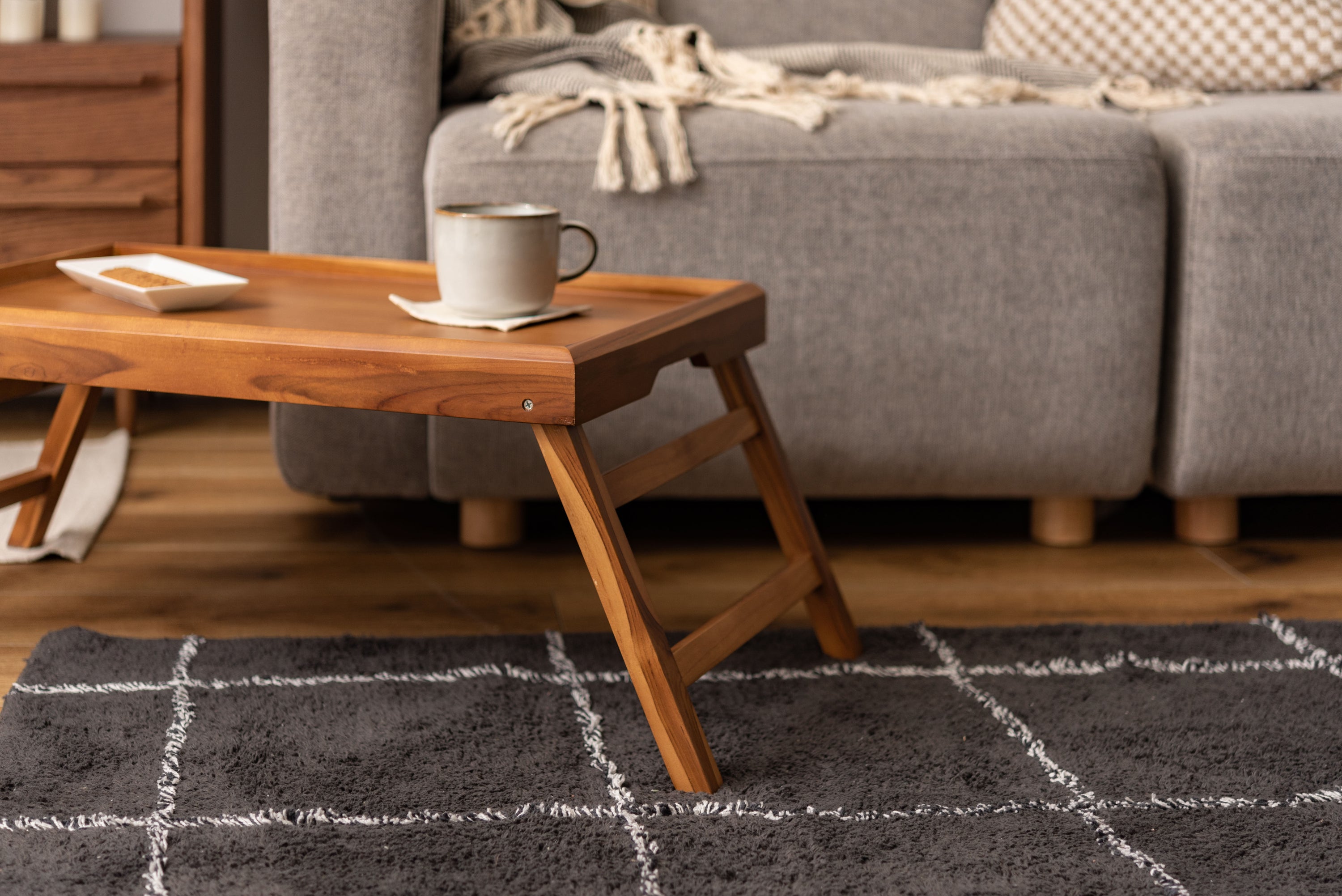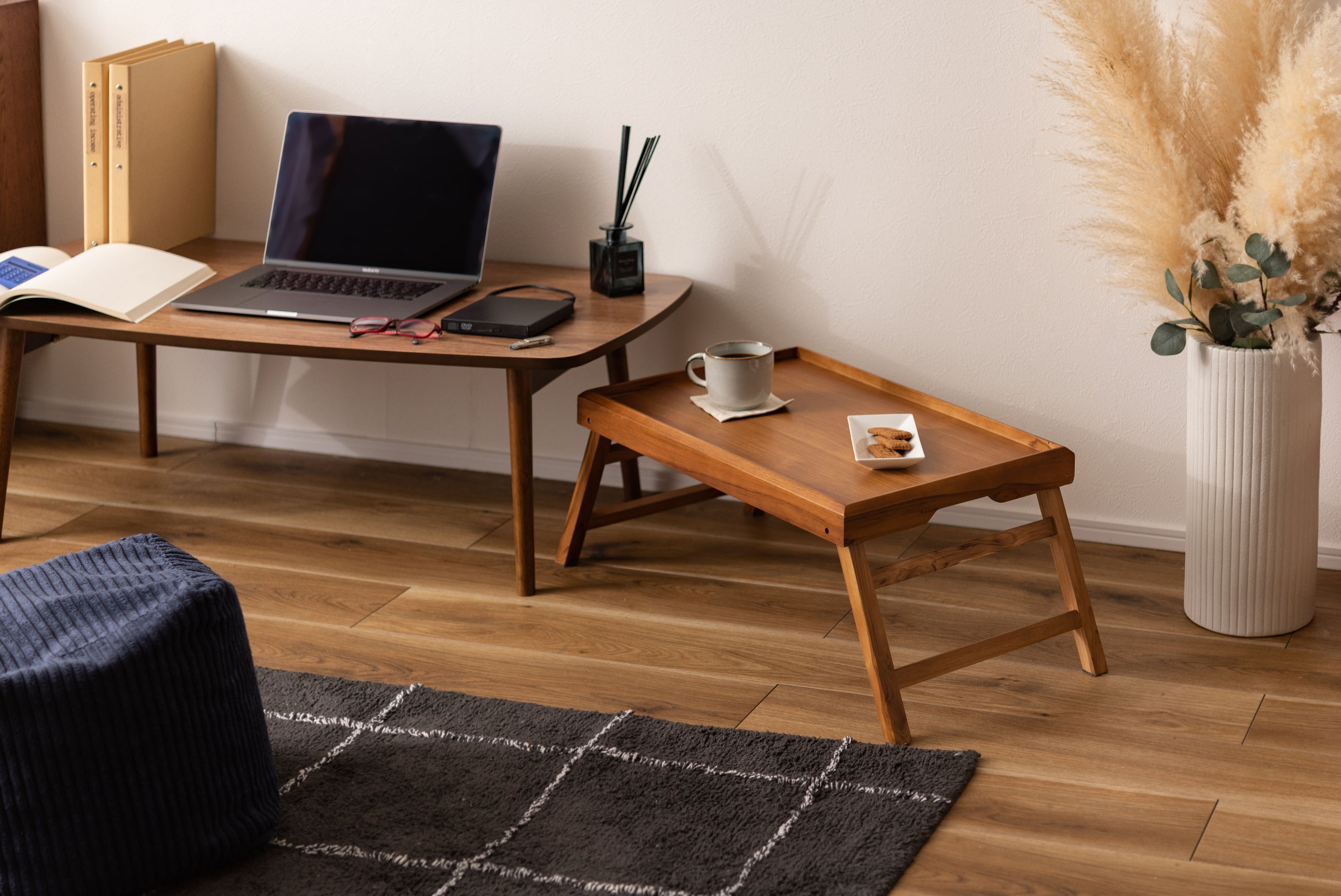 脚が折りたためるローテーブル。様々なシーンに合わせて活躍する、多目的なテーブル。脚を折りたためばコンパクトサイズに。持ち運びや収納に便利です。フロアテーブルやサイドテーブル、ベッドの上でのテーブルとして等、あらゆる用途で使えるテーブル。脚裏にフェルトが付いているので、床への傷防止になり安心。完成品の状態でお届け。届いてすぐに使えます。