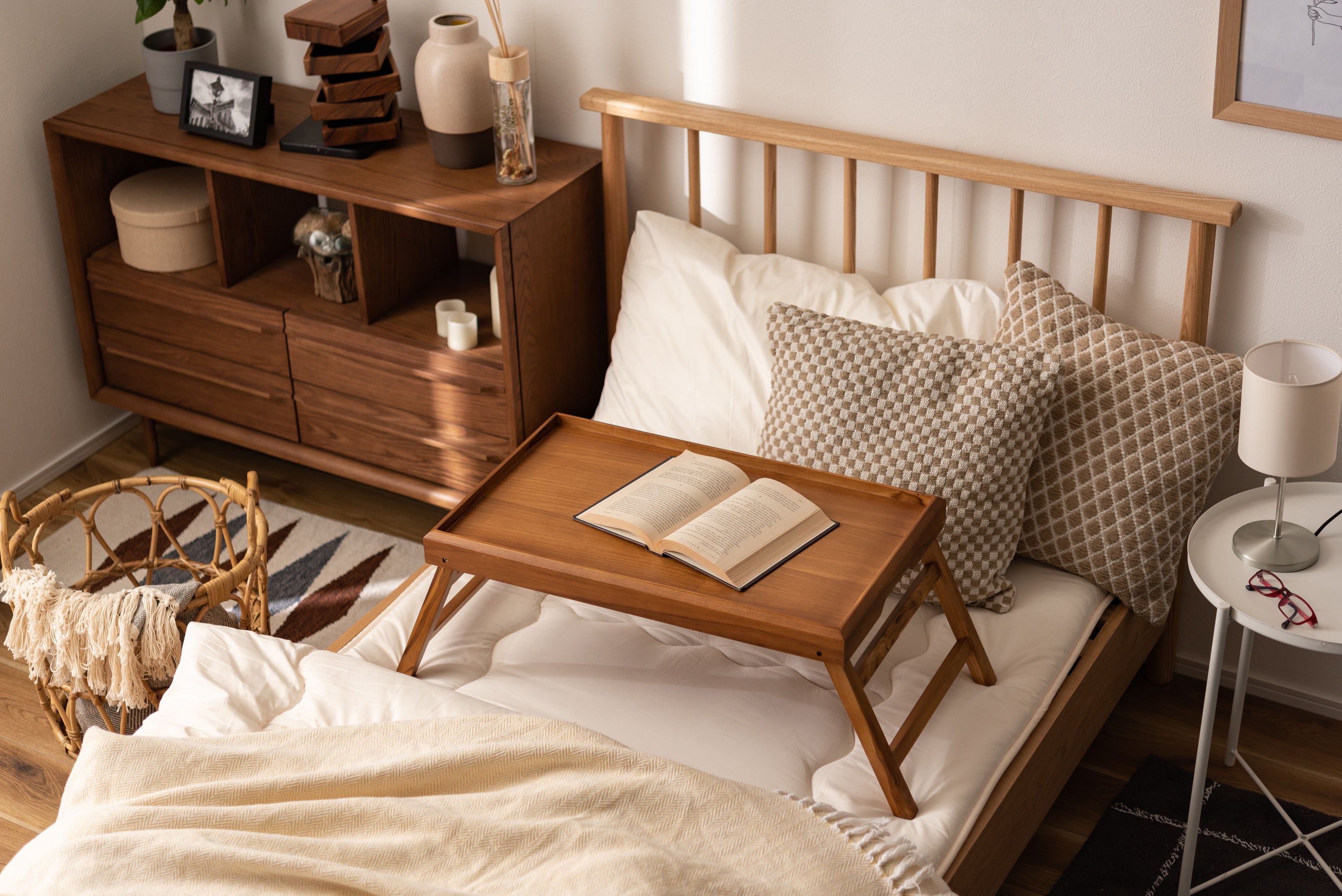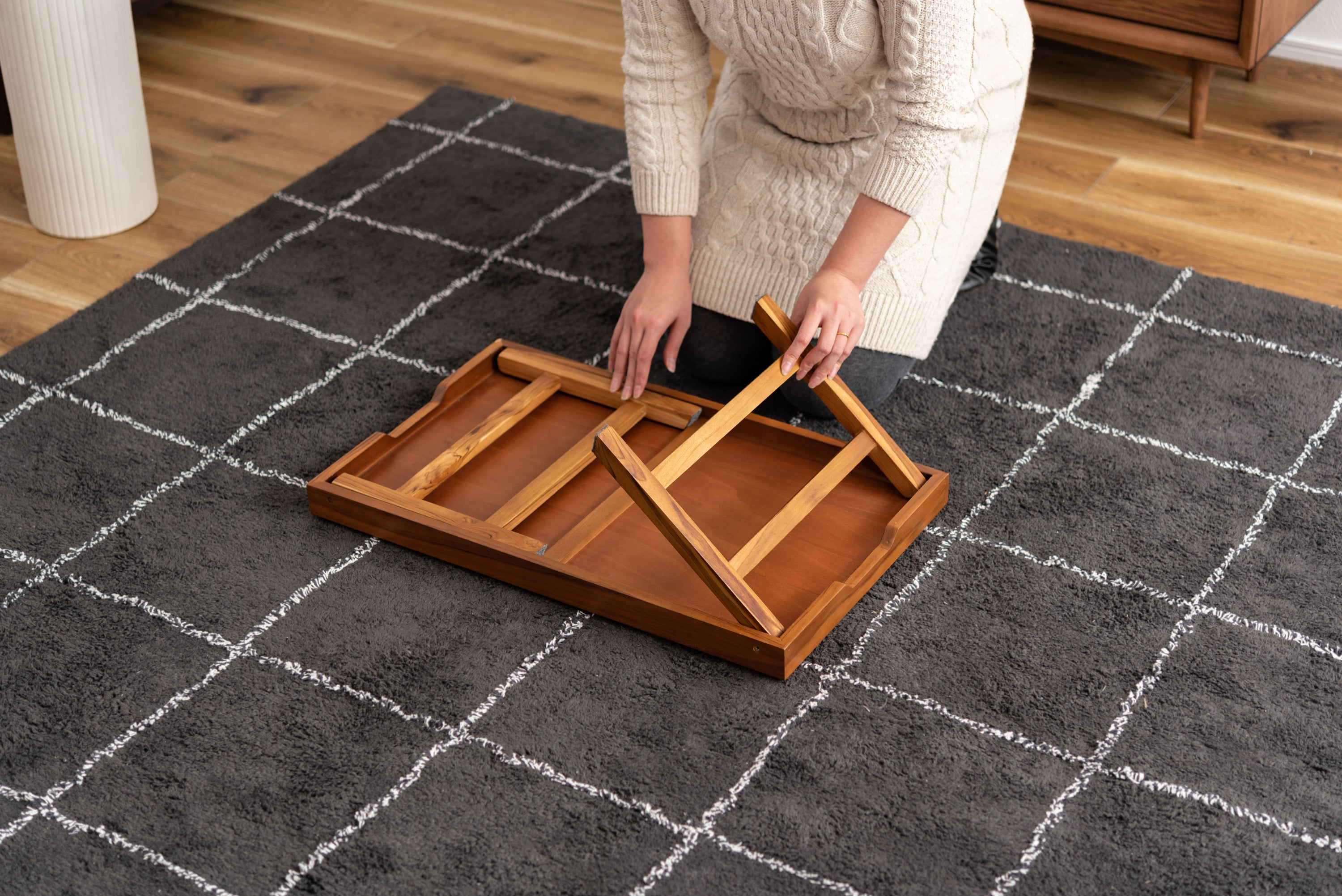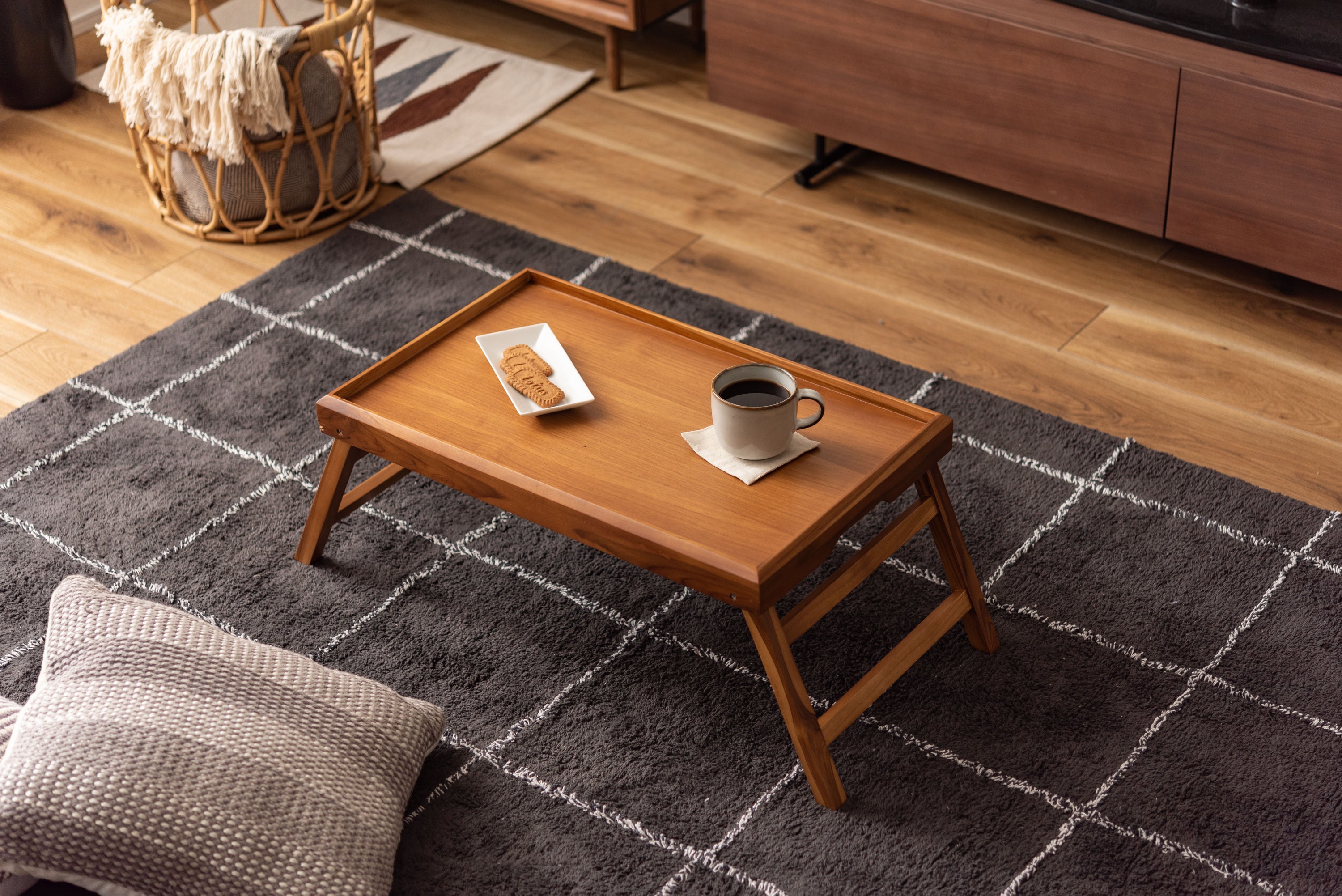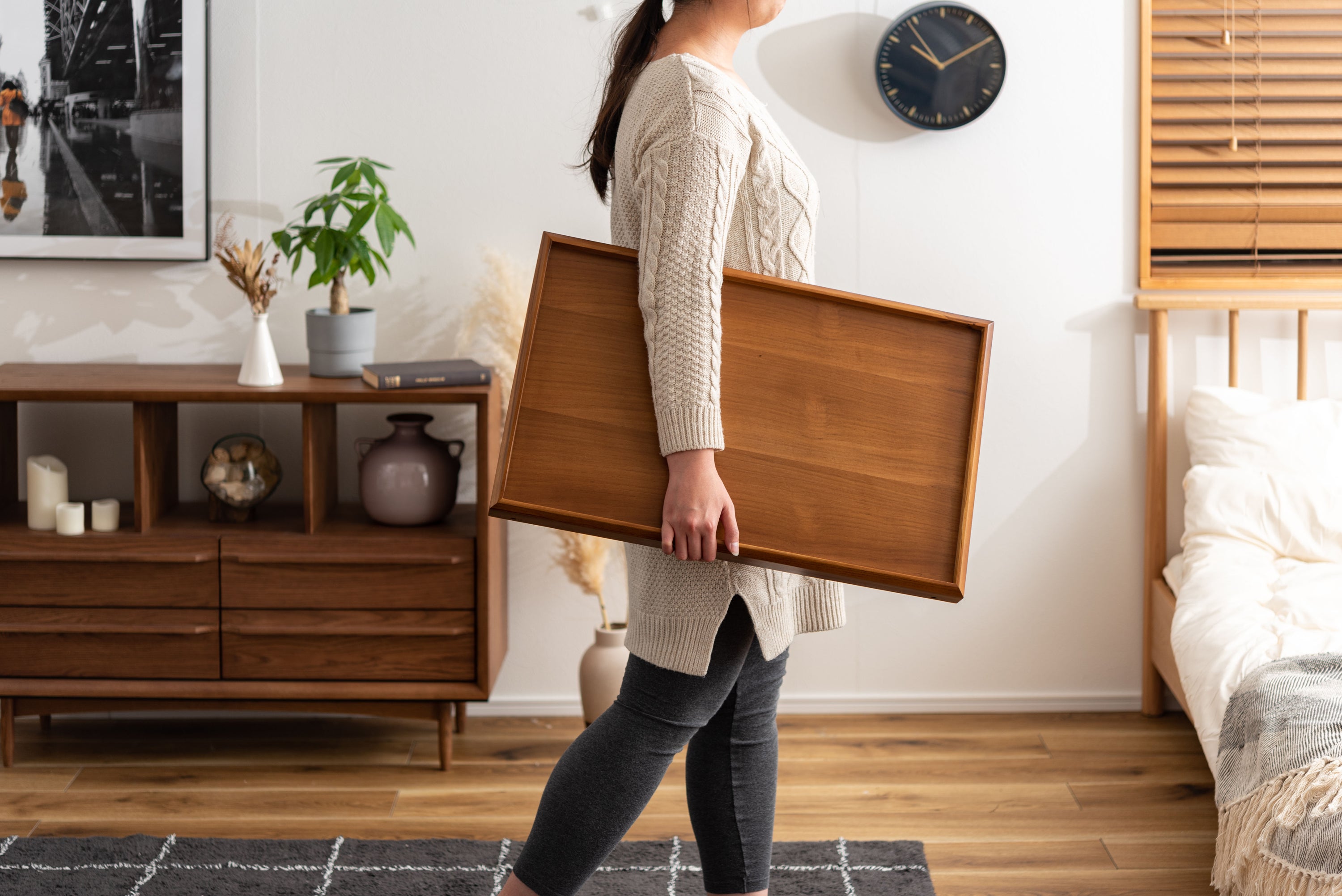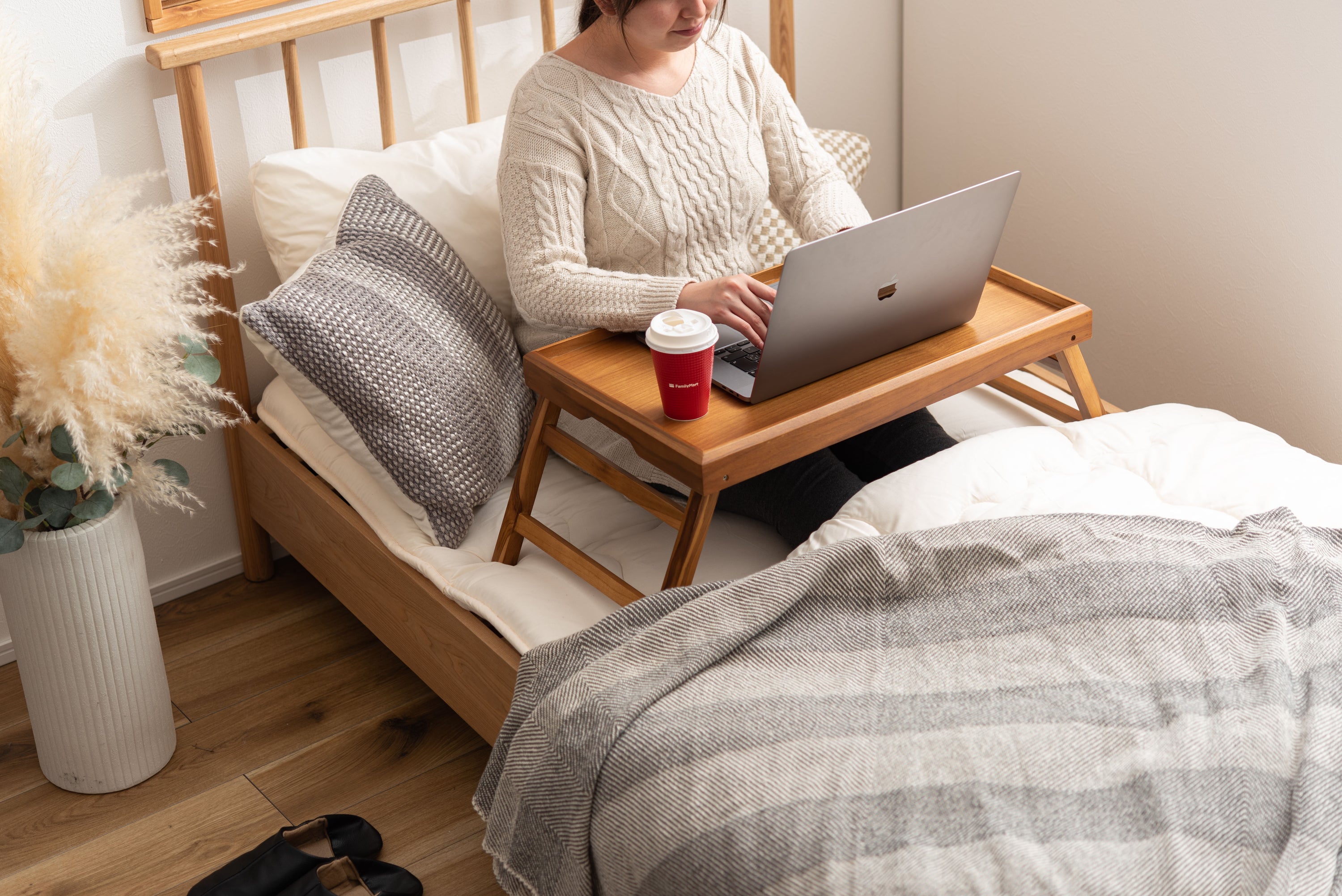 脚が折りたためるローテーブル。様々なシーンに合わせて活躍する、多目的なテーブル。脚を折りたためばコンパクトサイズに。持ち運びや収納に便利です。フロアテーブルやサイドテーブル、ベッドの上でのテーブルとして等、あらゆる用途で使えるテーブル。脚裏にフェルトが付いているので、床への傷防止になり安心。完成品の状態でお届け。届いてすぐに使えます。