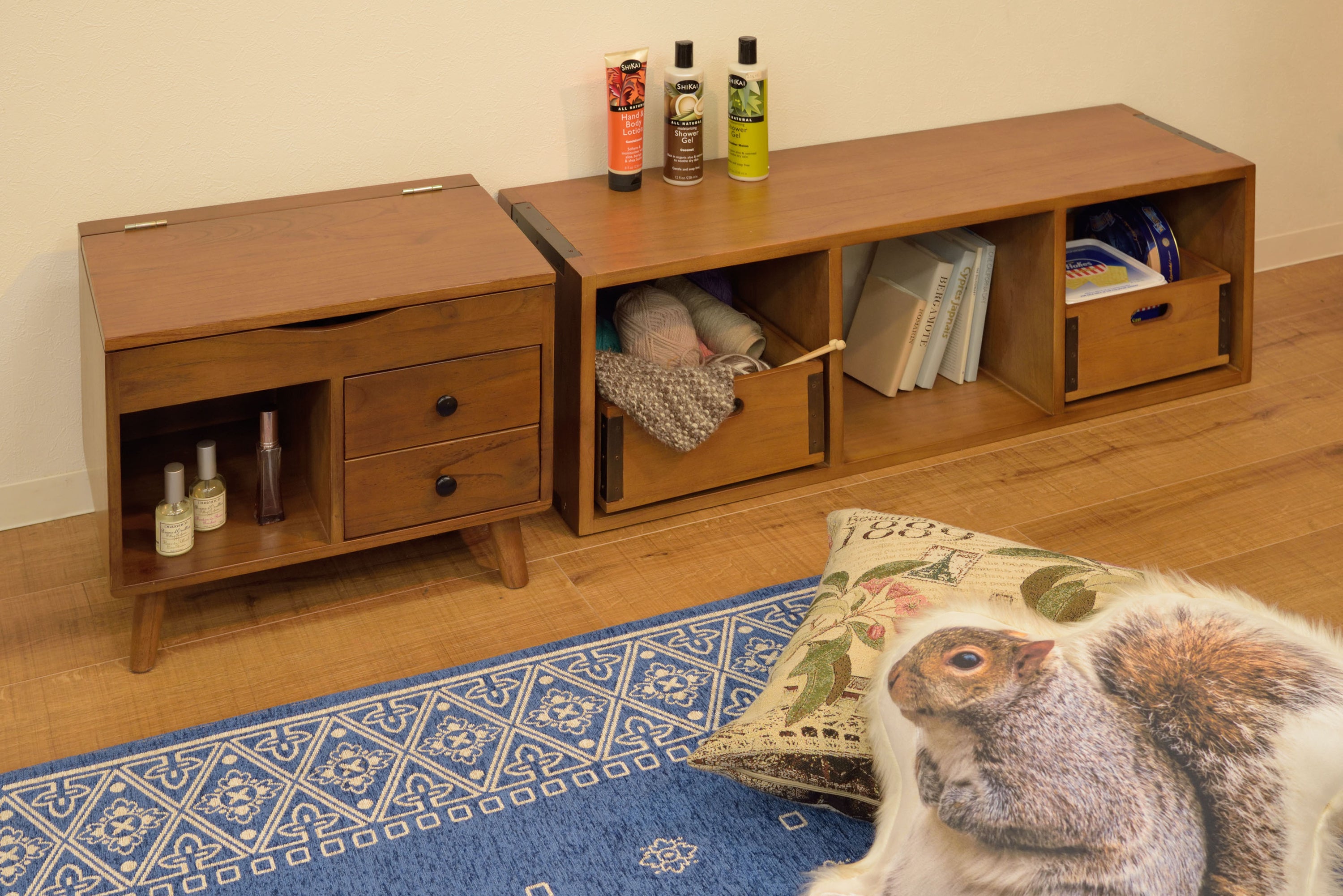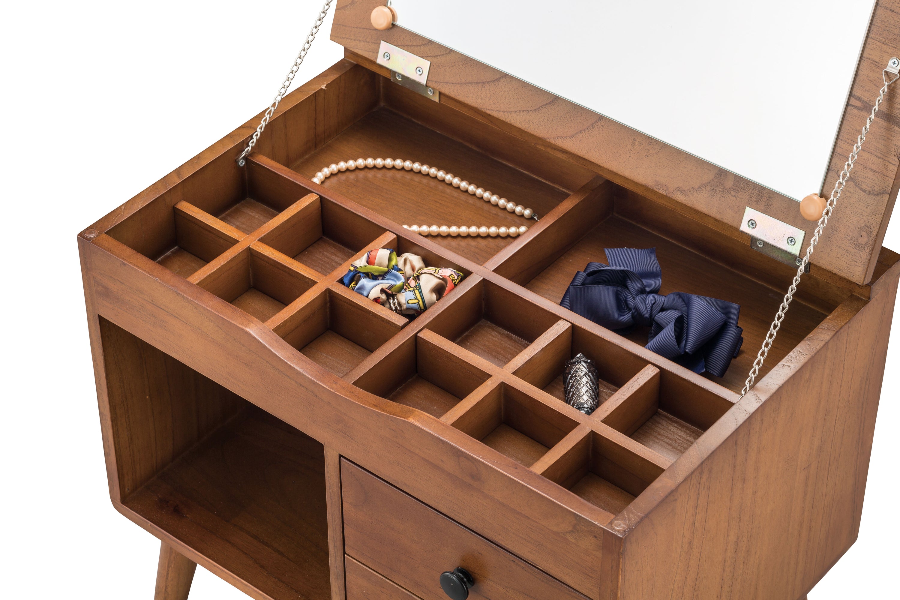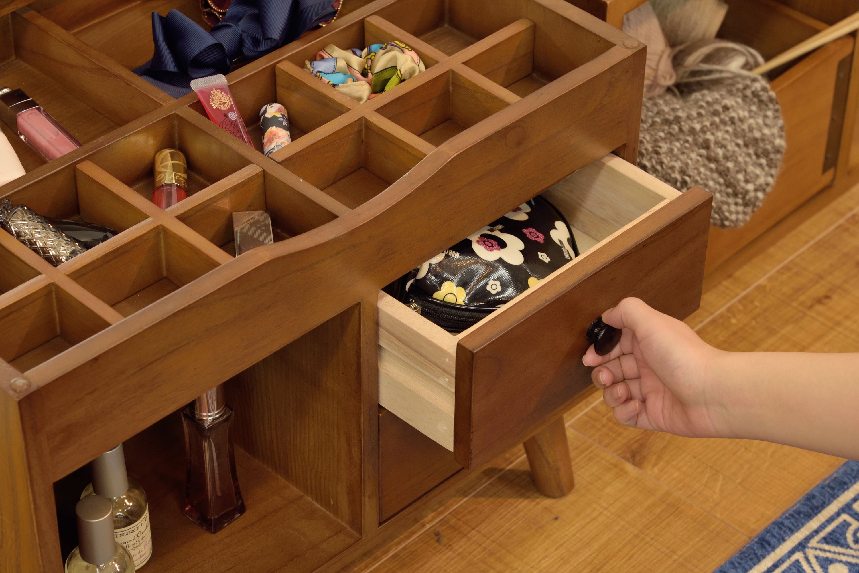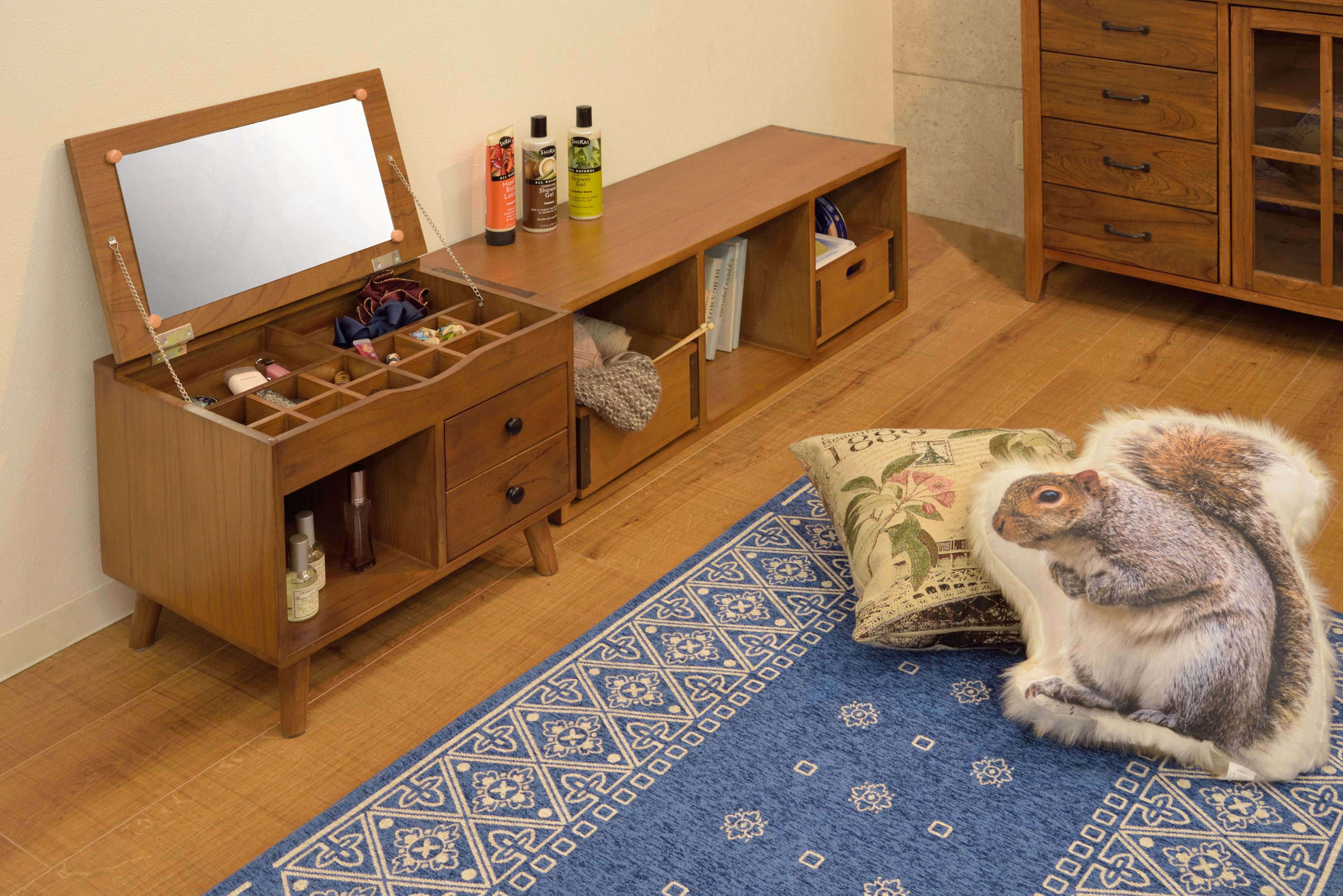 大きな鏡付きのコンパクトドレッサー。仕切り部分は取外し可能です。