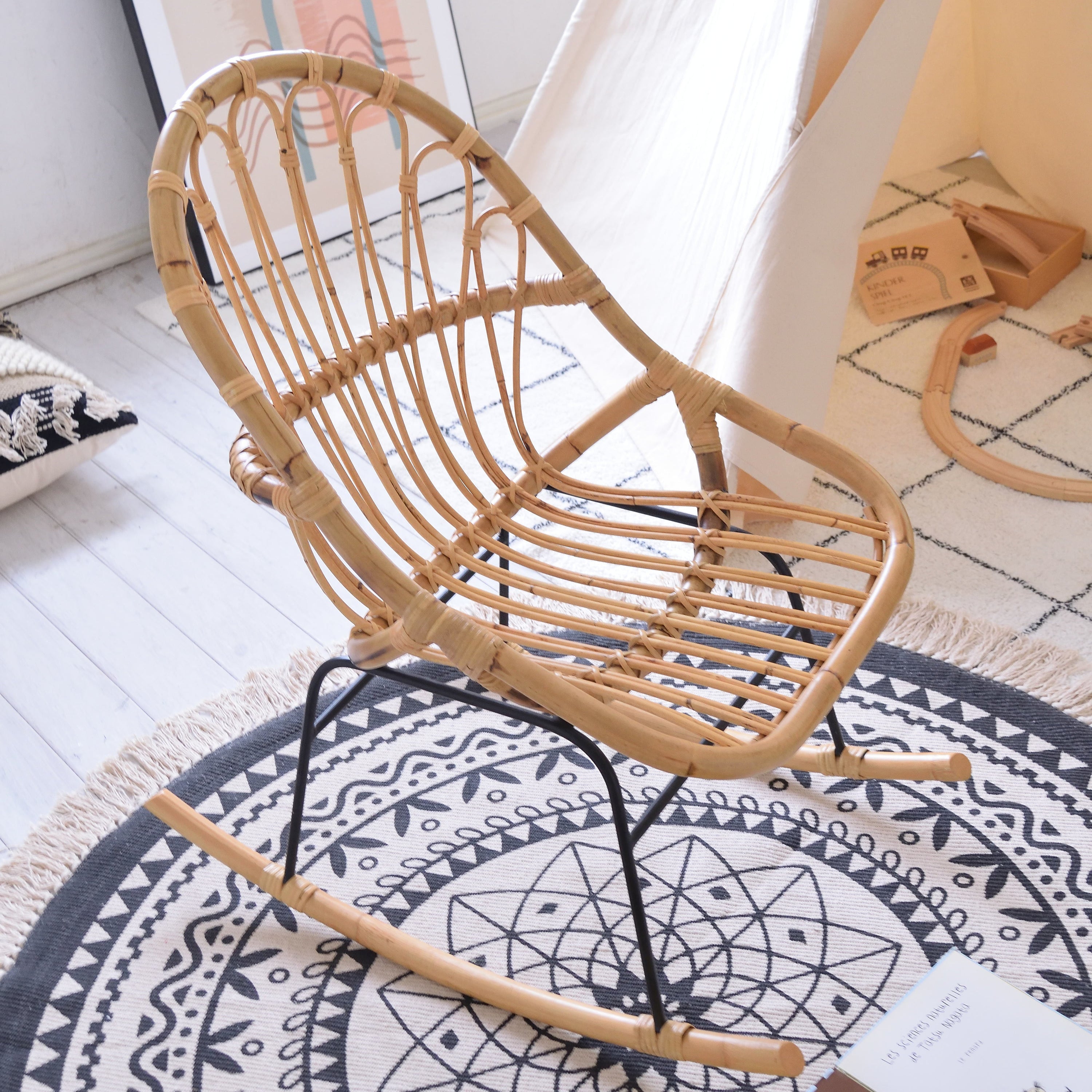 ROOMESSENCEのロッキングチェアナチュラルです。長時間でも快適な座り心地を備え、ダイニングやワークスペースに活躍します。ブランドの美意識を感じる佇まいで、日常づかいから来客時まで幅広く対応。品番:GUY-255。暮らしに上質なアクセントを添える一品です。