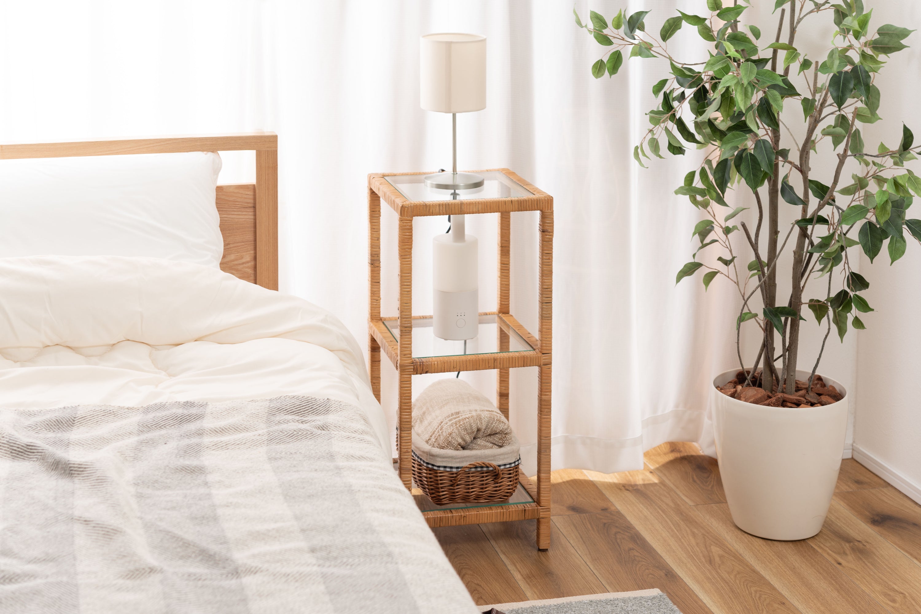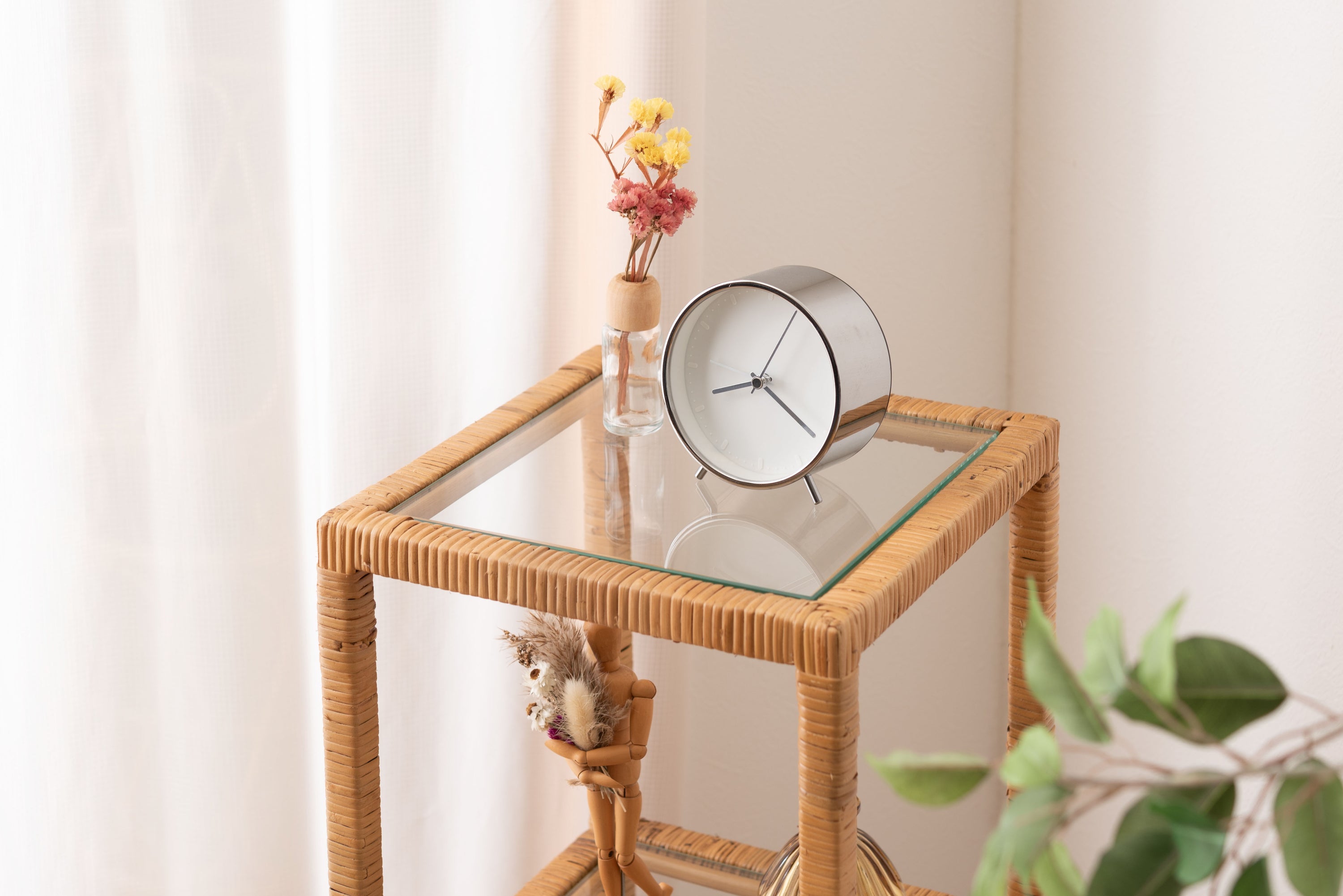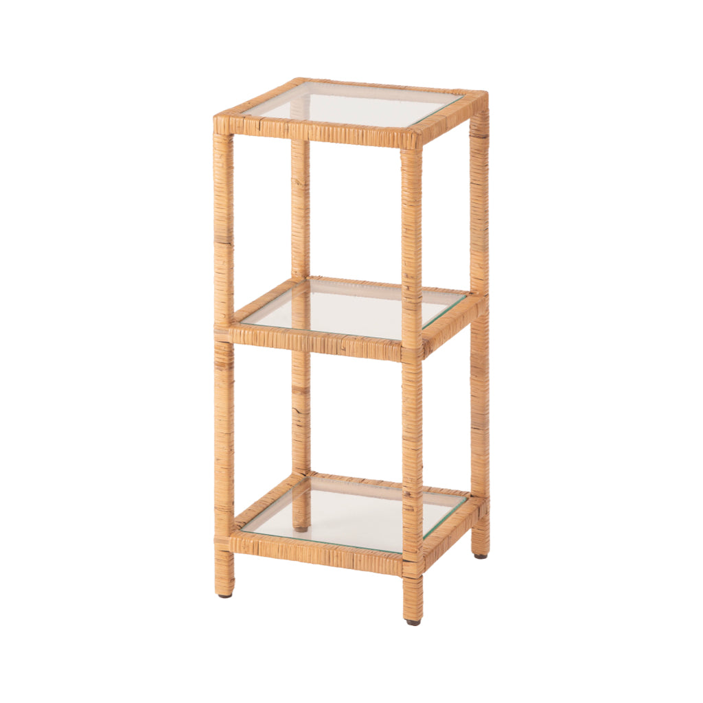 透明感が美しい取り外し可能なガラスと、スチールフレームに巻いた天然ラタンの相性がぴったりなガラスシェルフです。オープンタイプの為壁面に設置するだけでなく、お部屋の間仕切りとしてもご使用いただけます。リビングやベッドサイドだけでなく、ディスプレイ台としても活躍します。