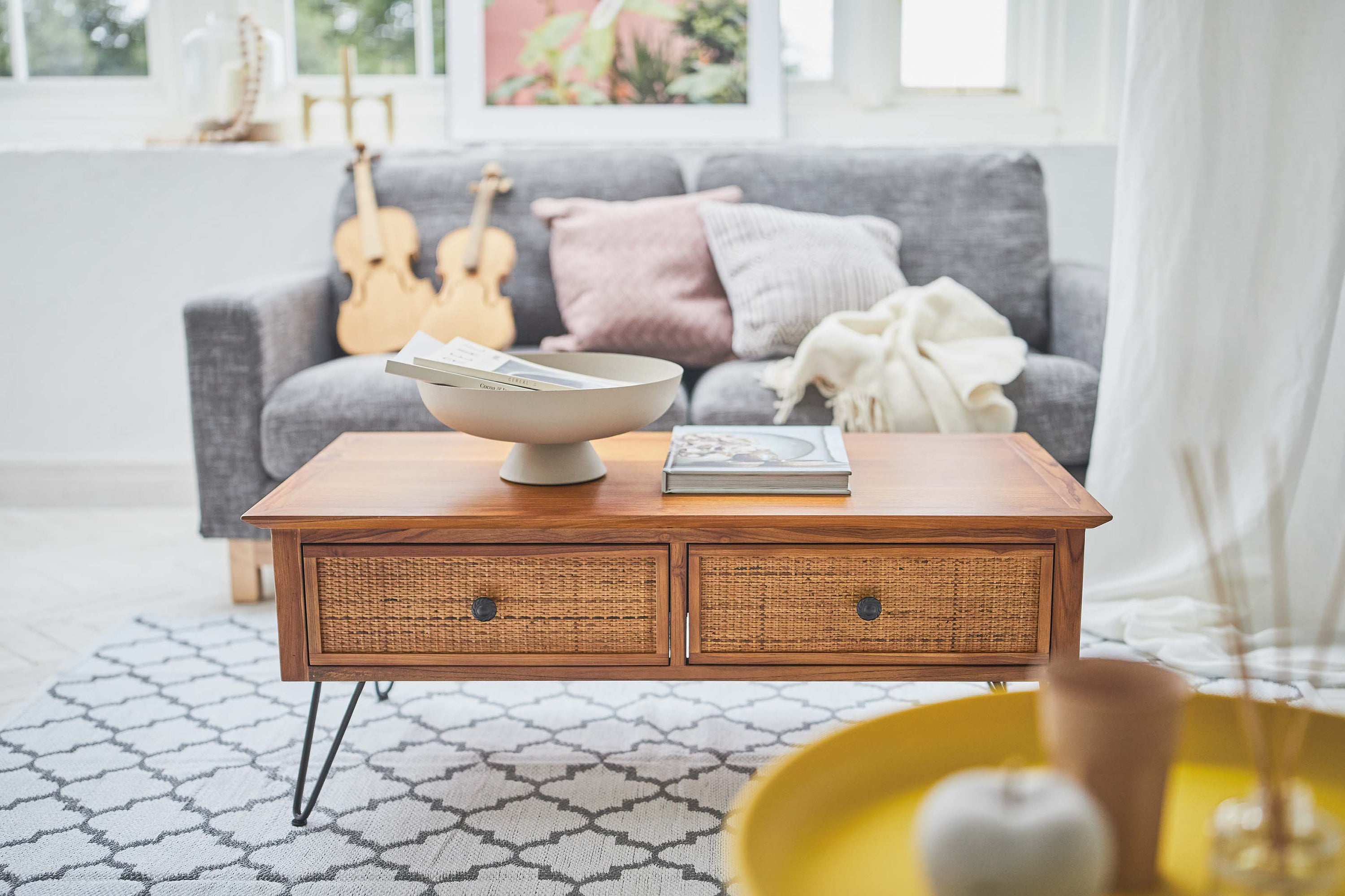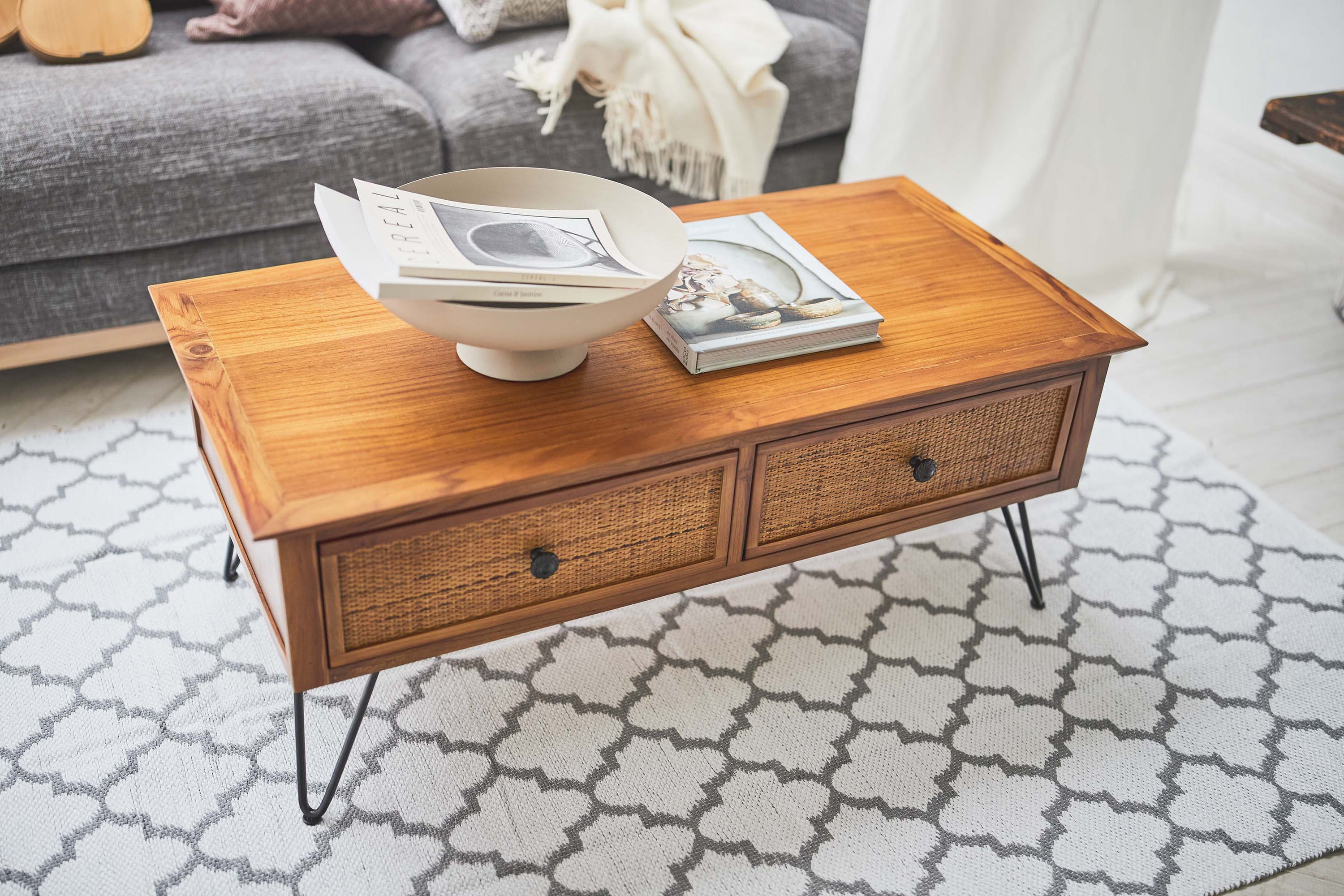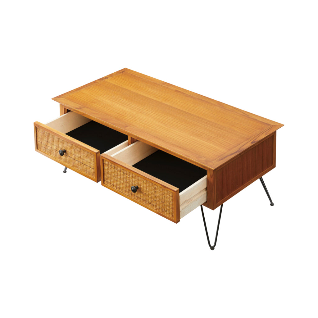 ROOMESSENCEのセンターテーブルブラウンです。安定感のあるつくりを備え、ダイニングや作業台として活躍します。ブランドの美意識を感じる佇まいで、日常づかいから来客時まで幅広く対応。品番:GUY-371。暮らしに上質なアクセントを添える一品です。