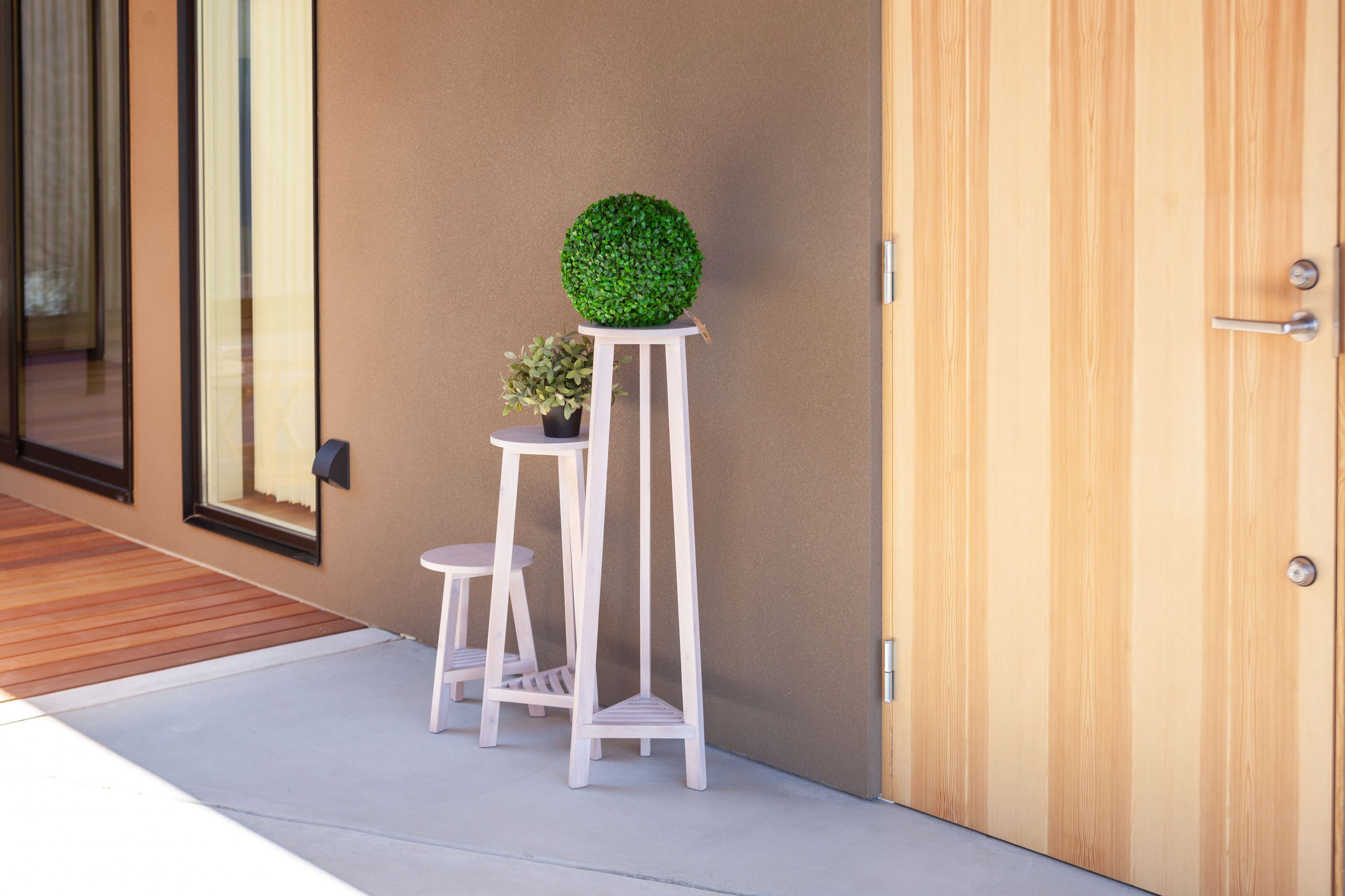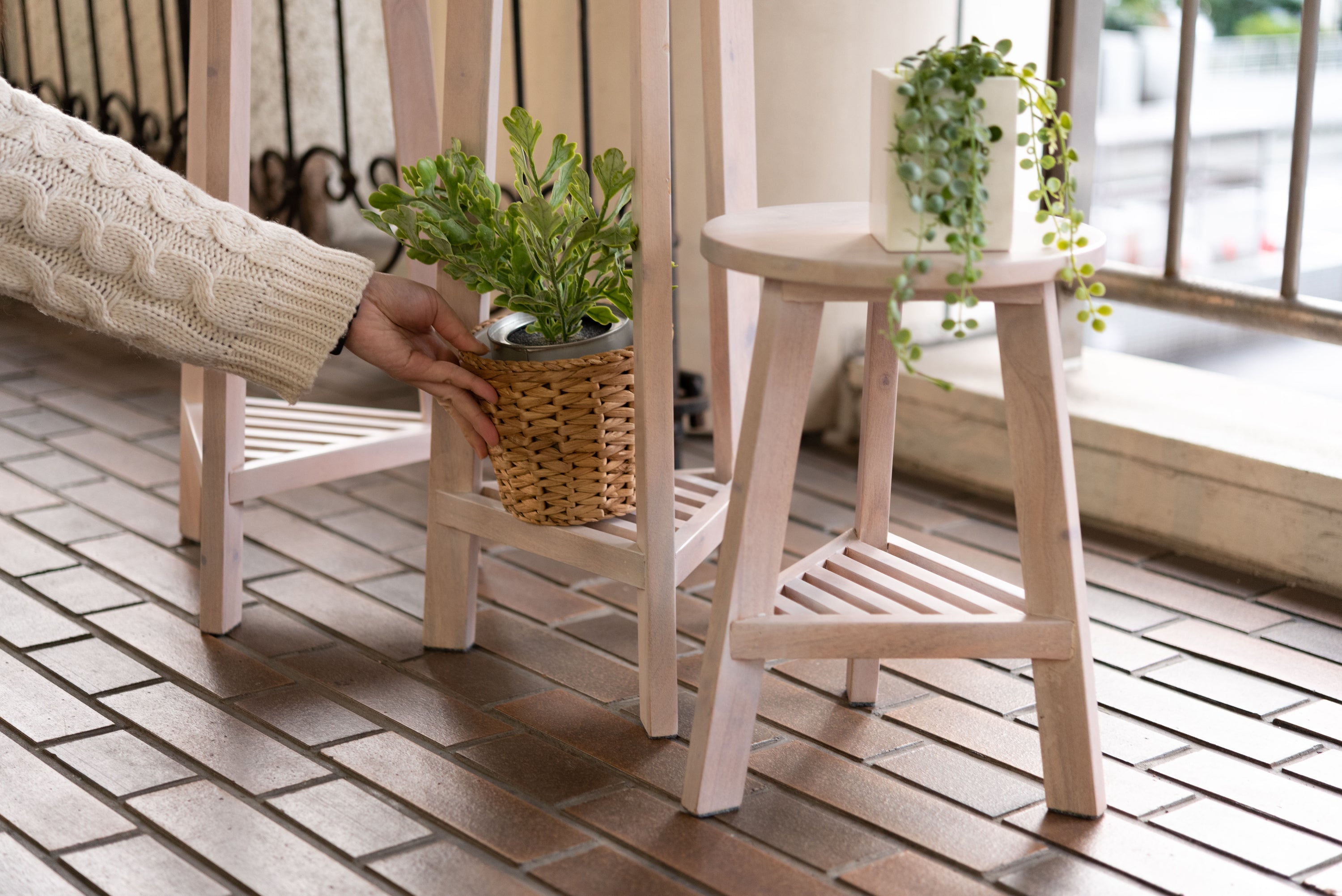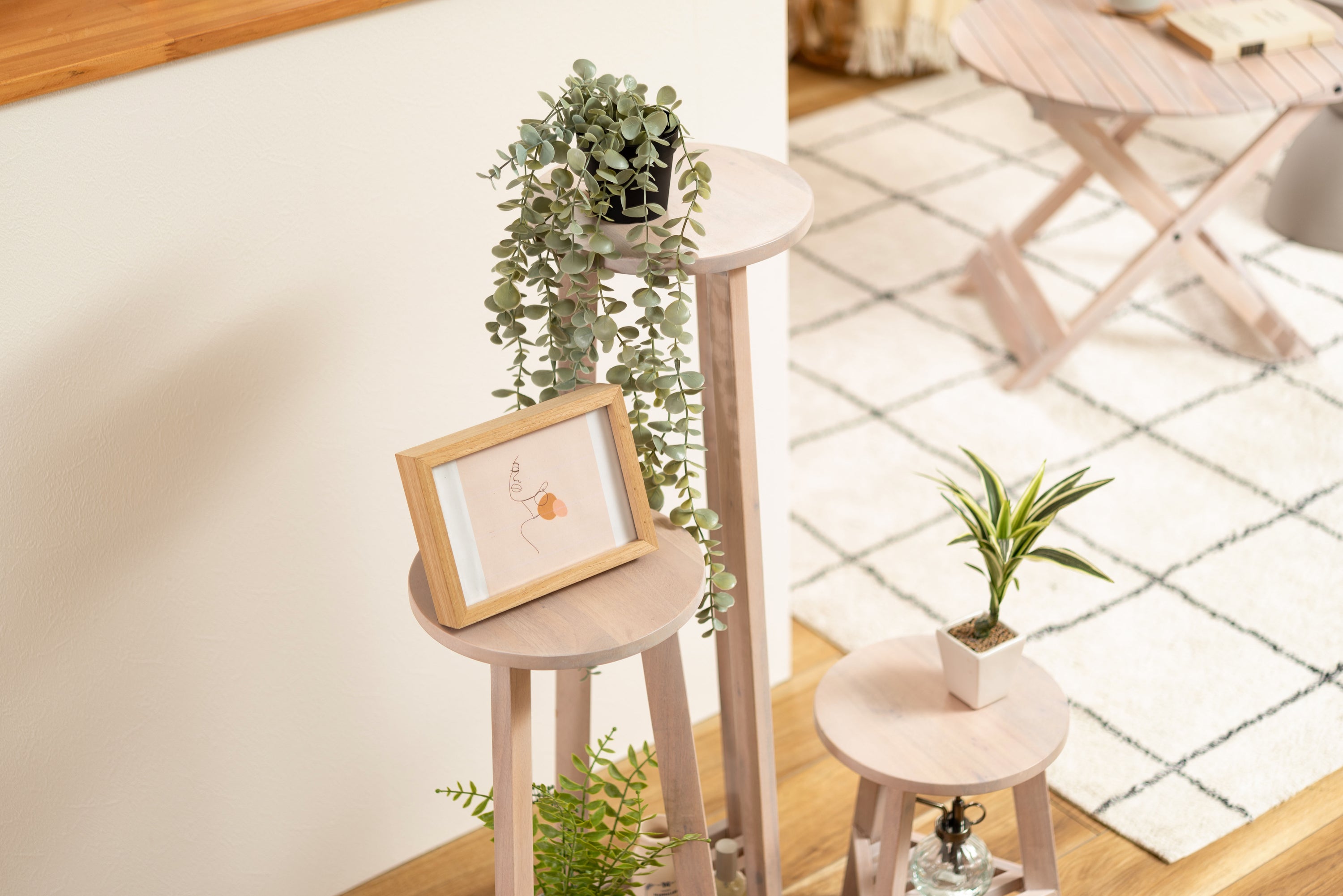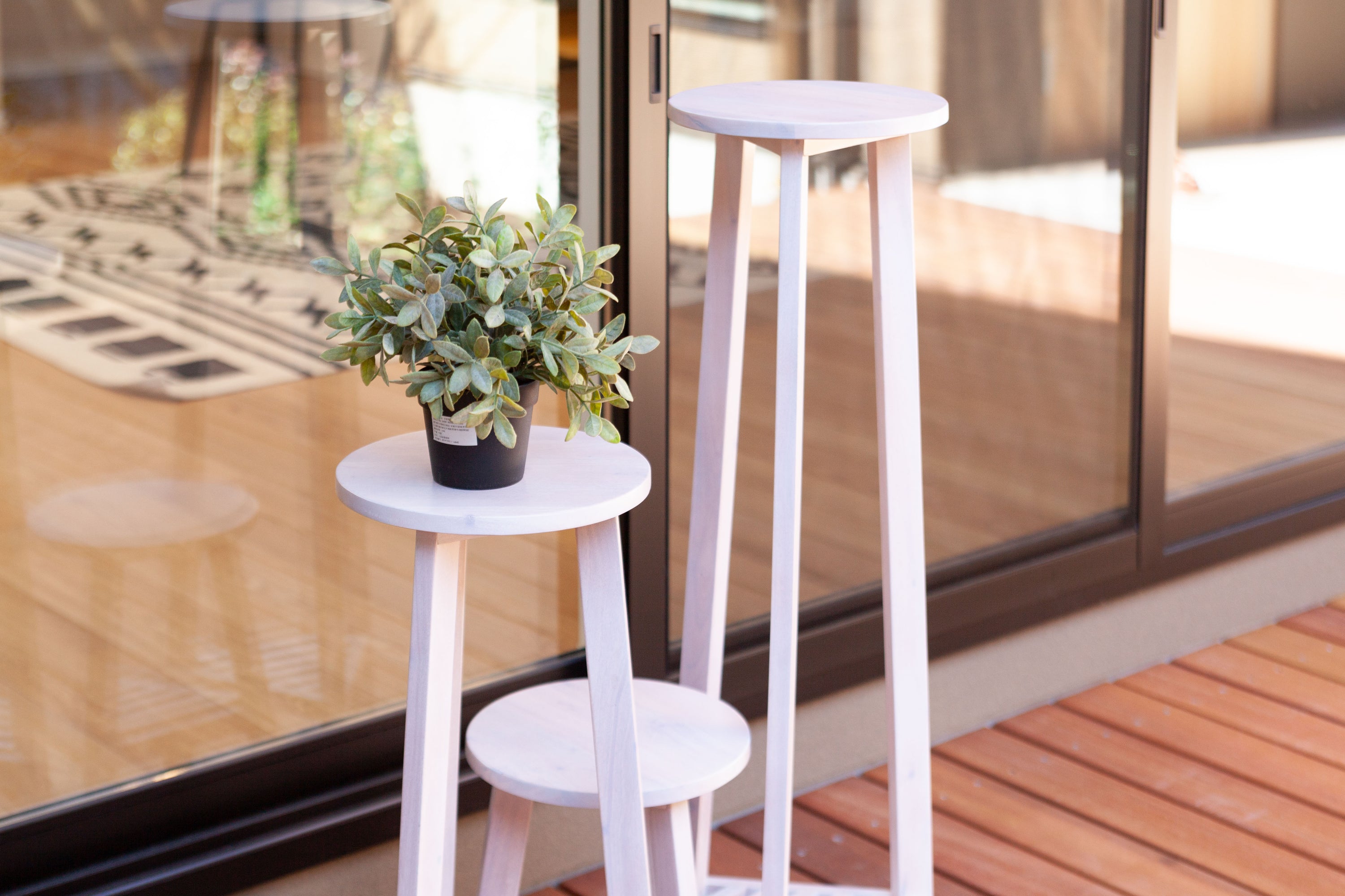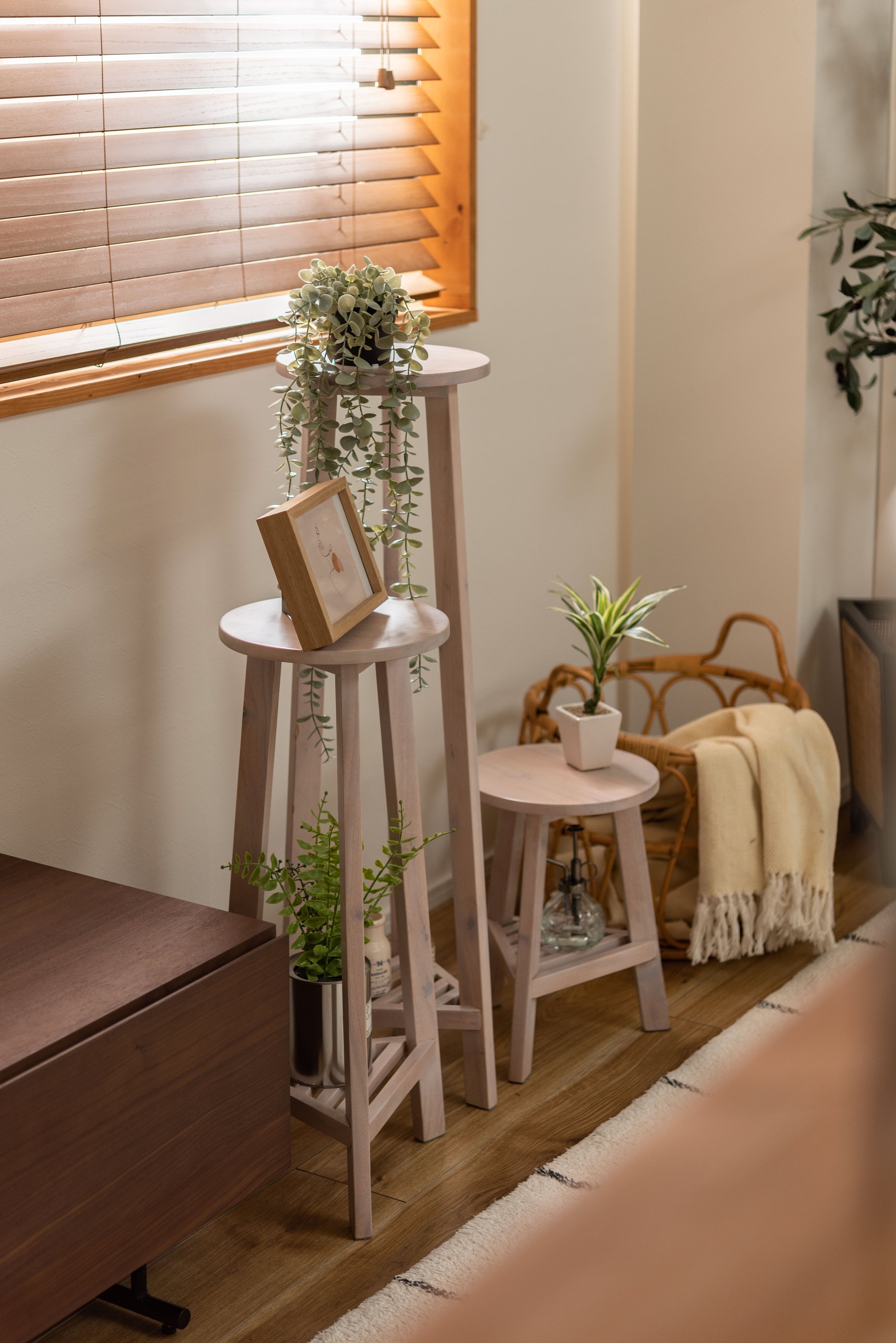 天然木が味わい深いプランターベース。サイズ違いで揃えてもバランスが良く植物を飾ることができます。植物と調和する美しい木目なので、置くだけで植物が引き立ちます。軽量なので持ち運びもラクラク。下段には小さな棚が付いているので、植物やちょっとした小物を置くことができます。脚裏にはフェルトが付いているので床への傷防止にもなります。スリムなシルエットのプランターベースなので、お部屋のコーナーやちょっとしたスペースに置くのに最適なサイズです。新色のホワイトは、ほんのり木目を出した"ホワイトウォッシュ"の味のある仕上がりです。