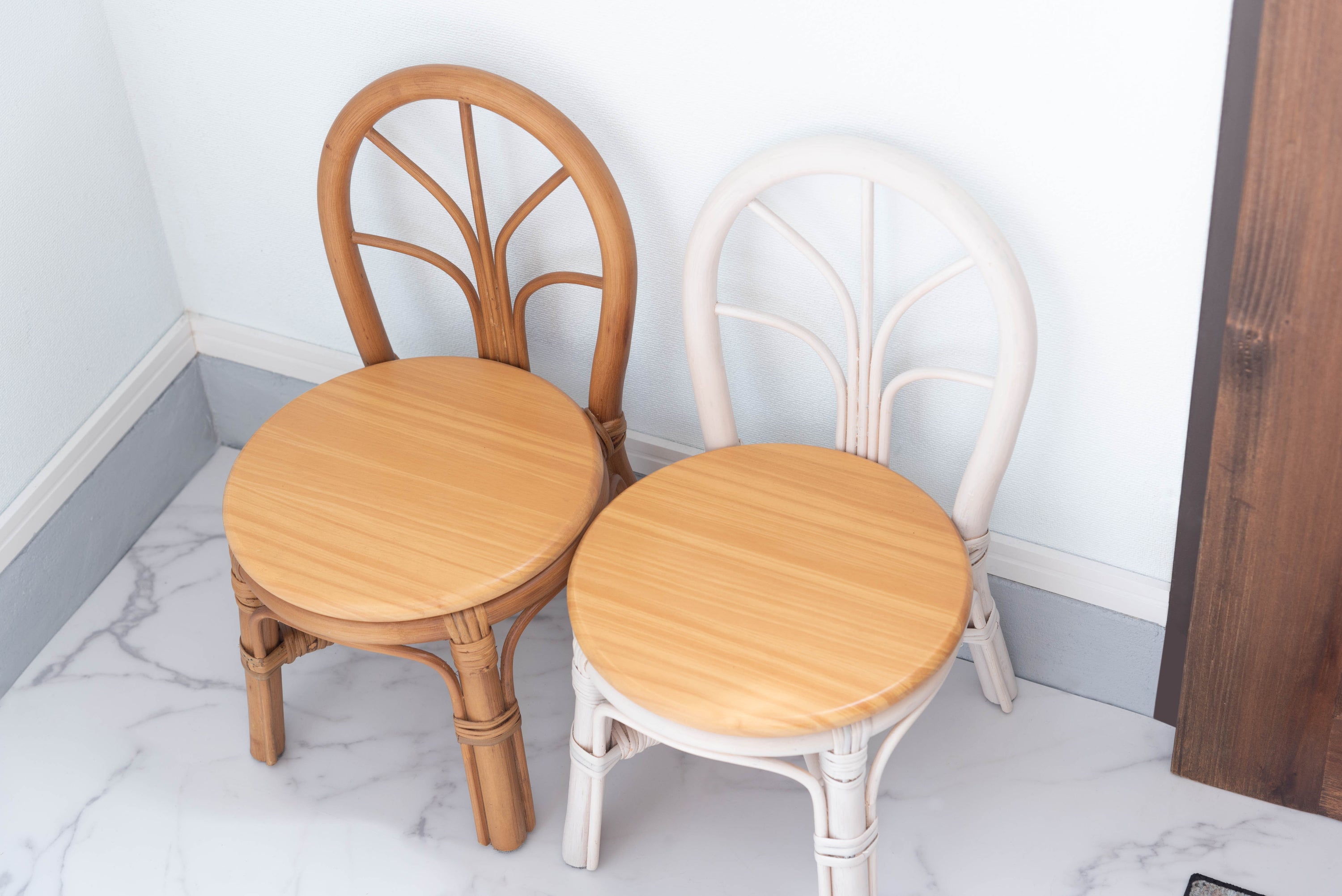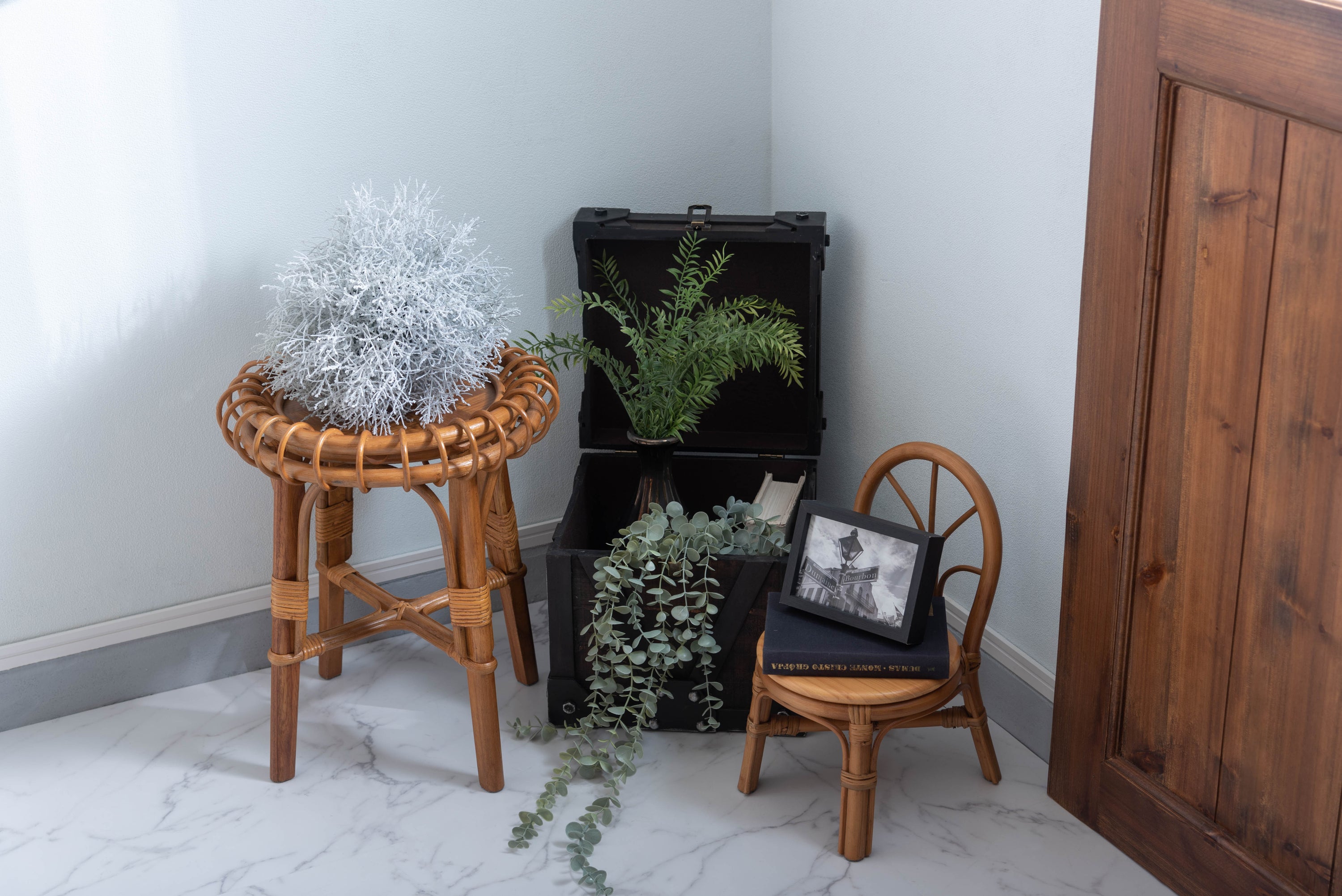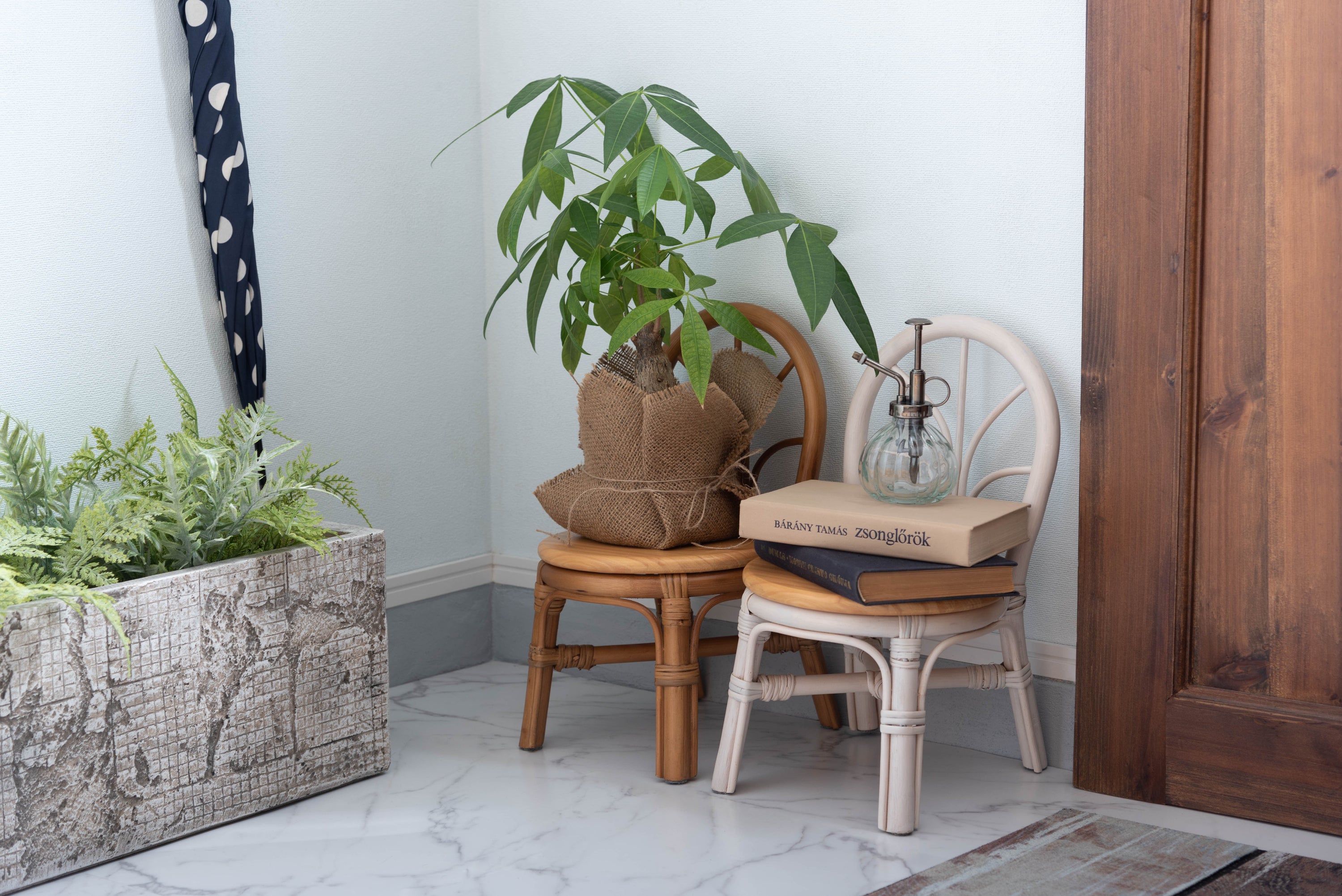 小さくてかわいらしいチェア型プランター。ラタンと天然木を組み合わせた人気のデザインです。フラットな天板はより安定し、植物や小物を置いたりそのままインテリアとして飾ることもできます。