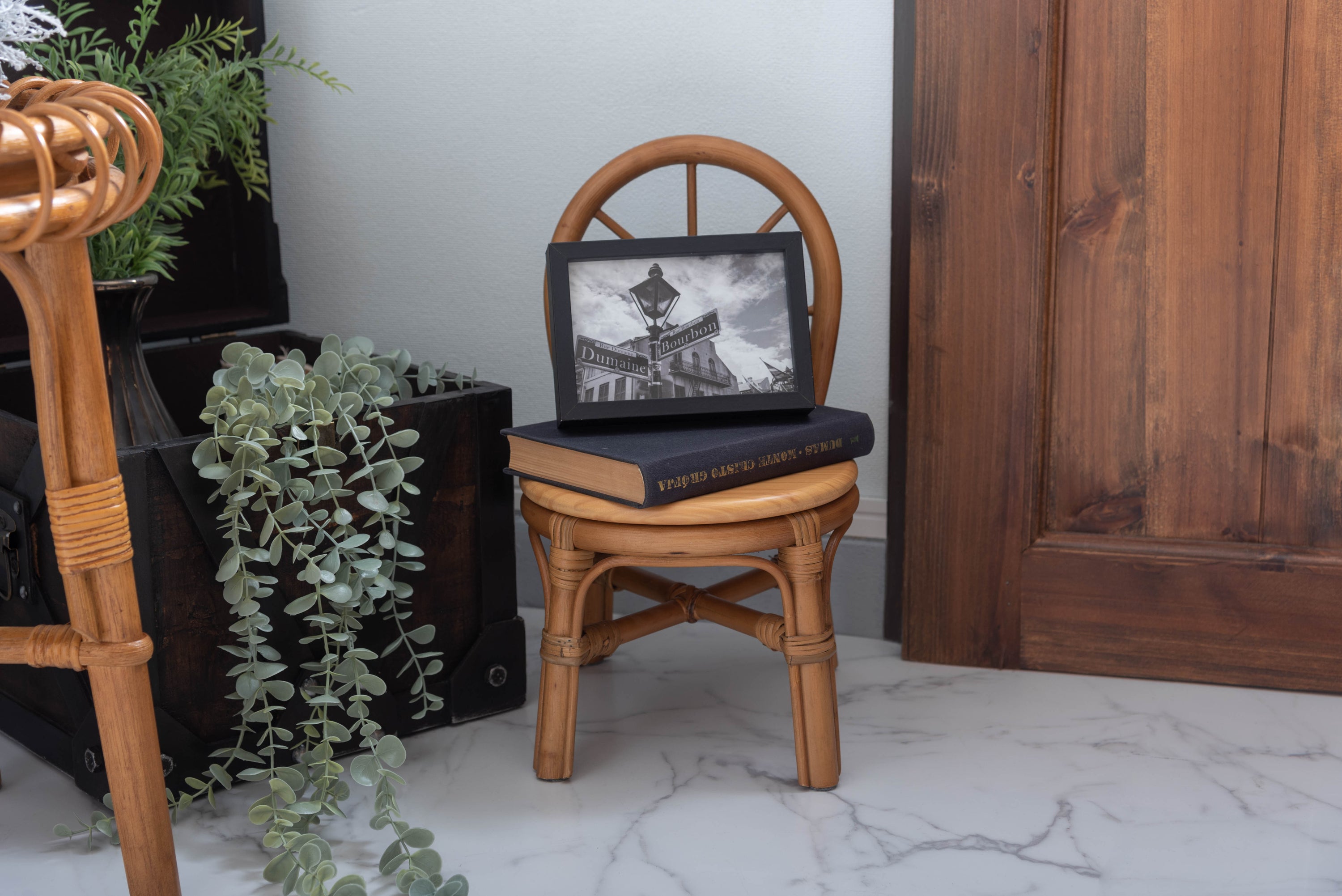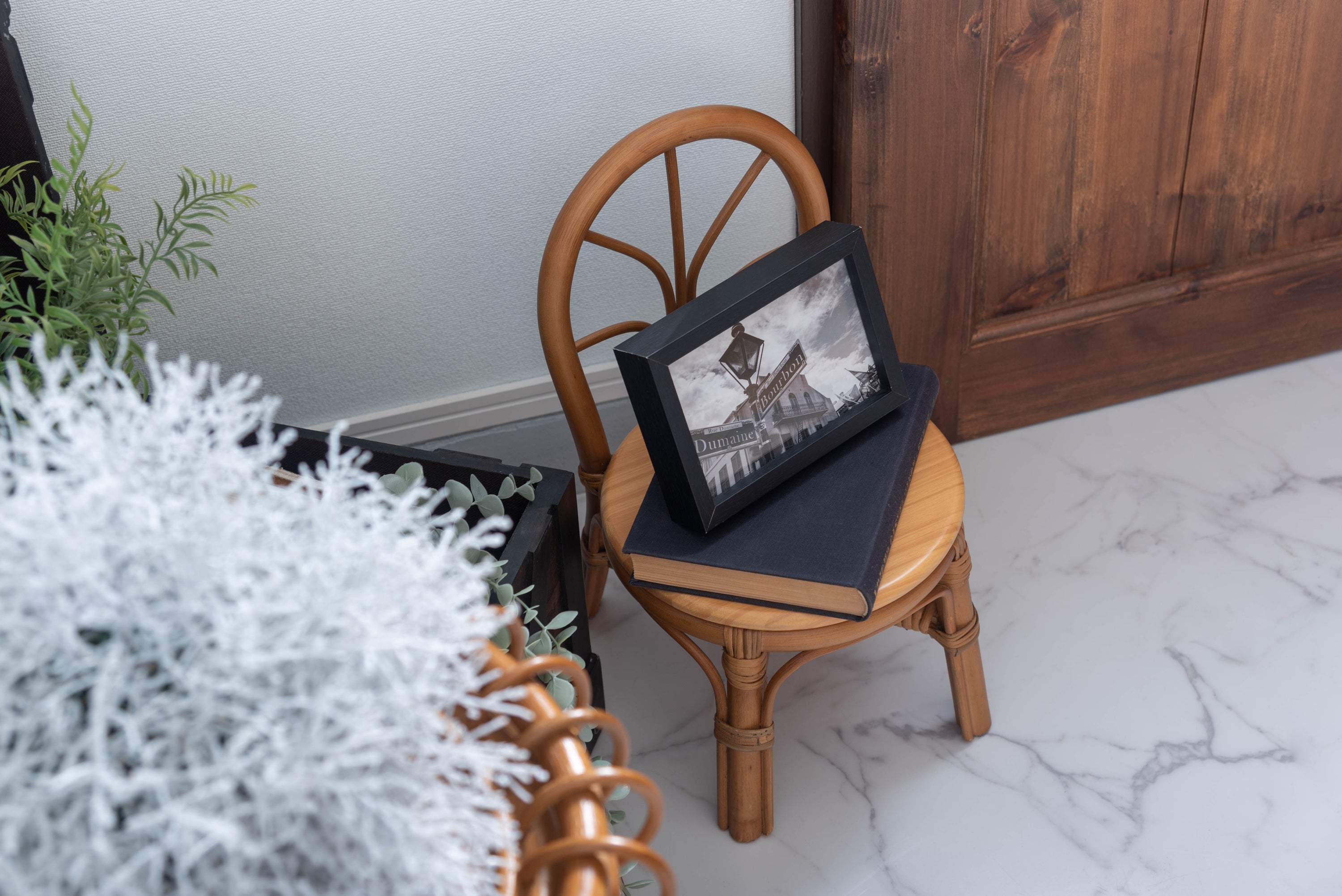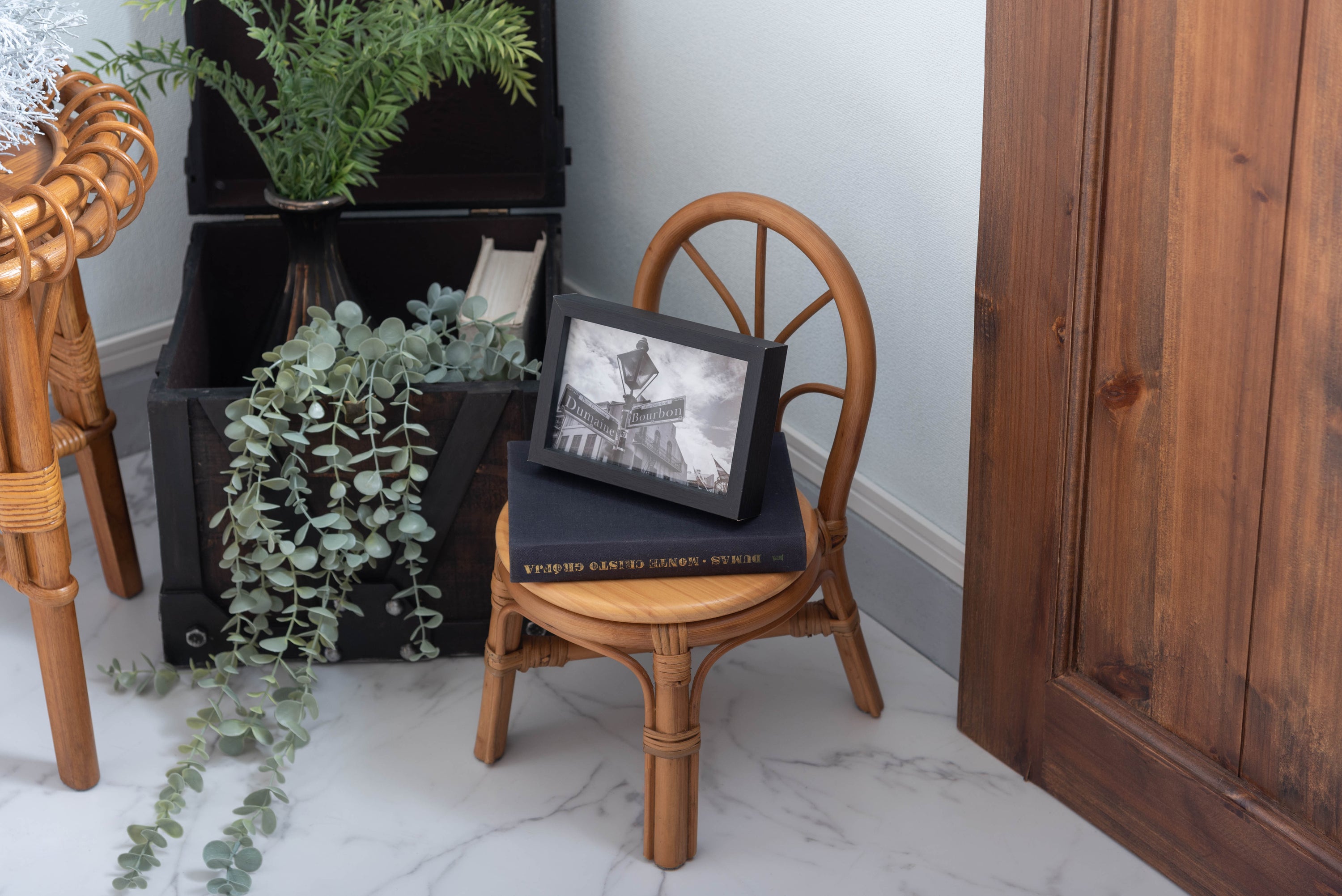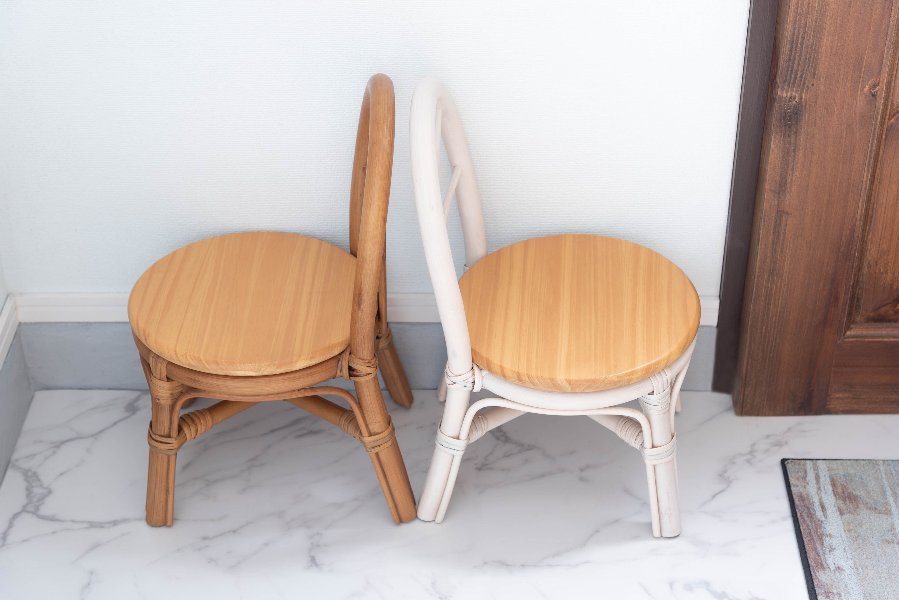 小さくてかわいらしいチェア型プランター。ラタンと天然木を組み合わせた人気のデザインです。フラットな天板はより安定し、植物や小物を置いたりそのままインテリアとして飾ることもできます。
