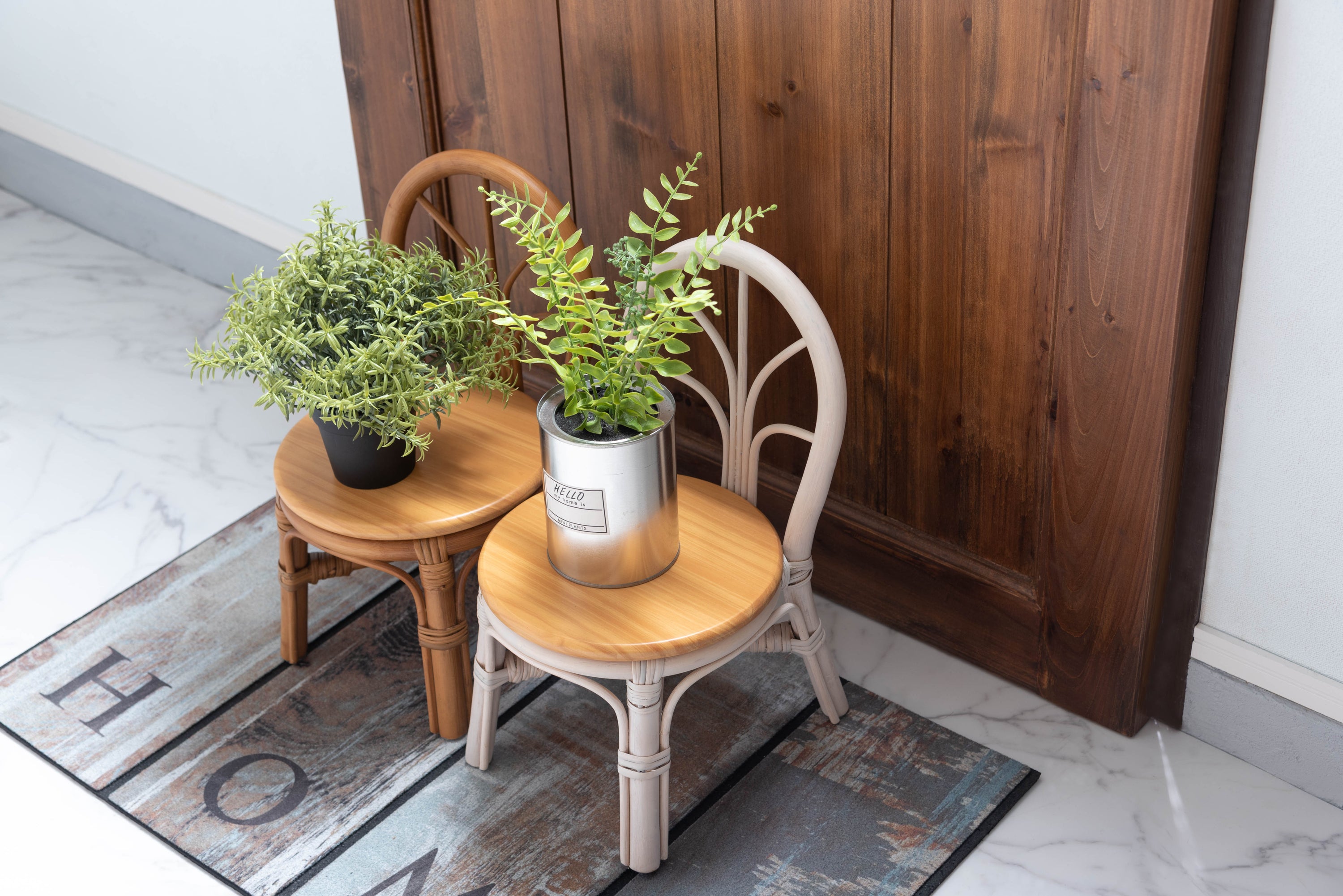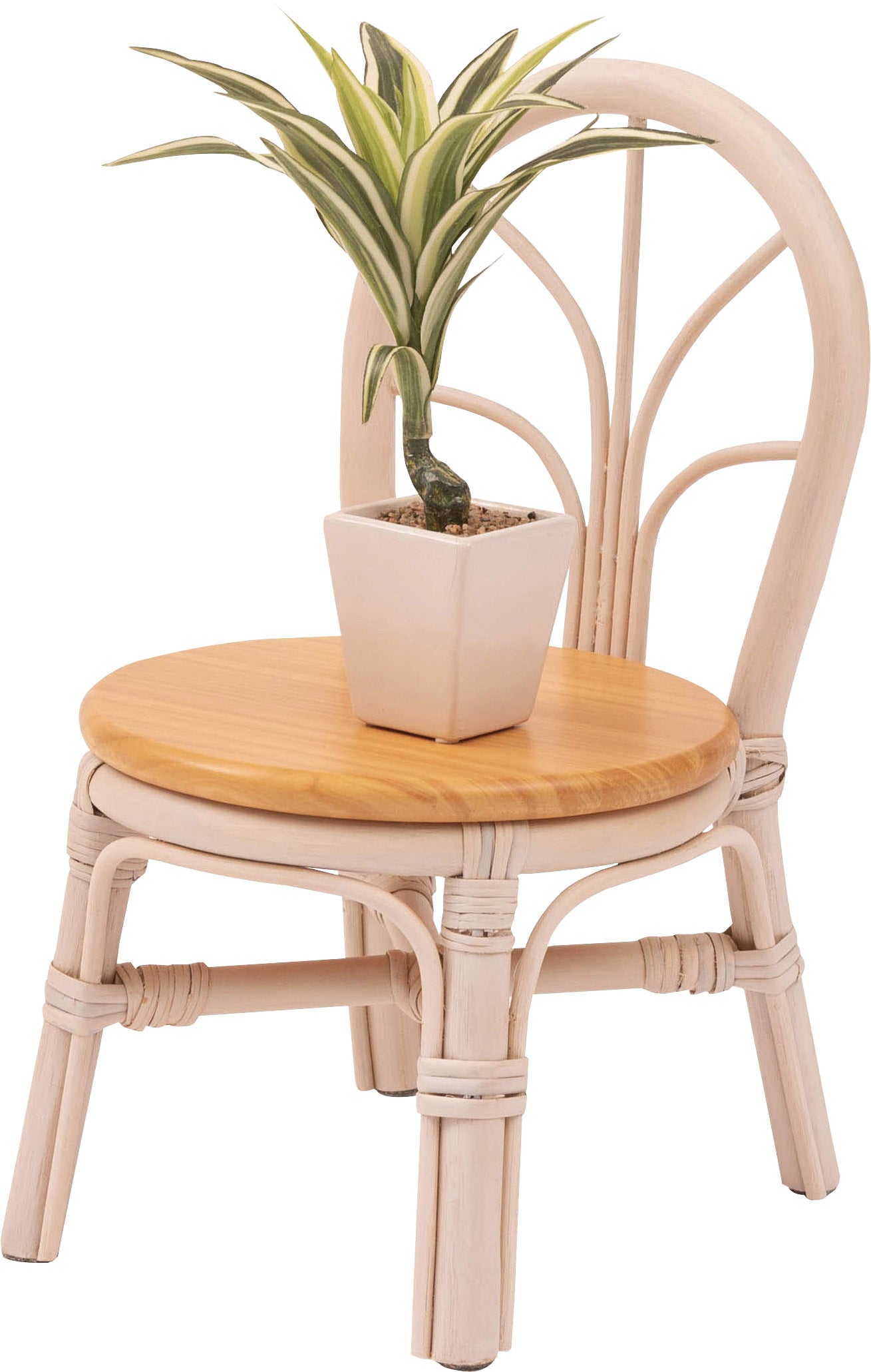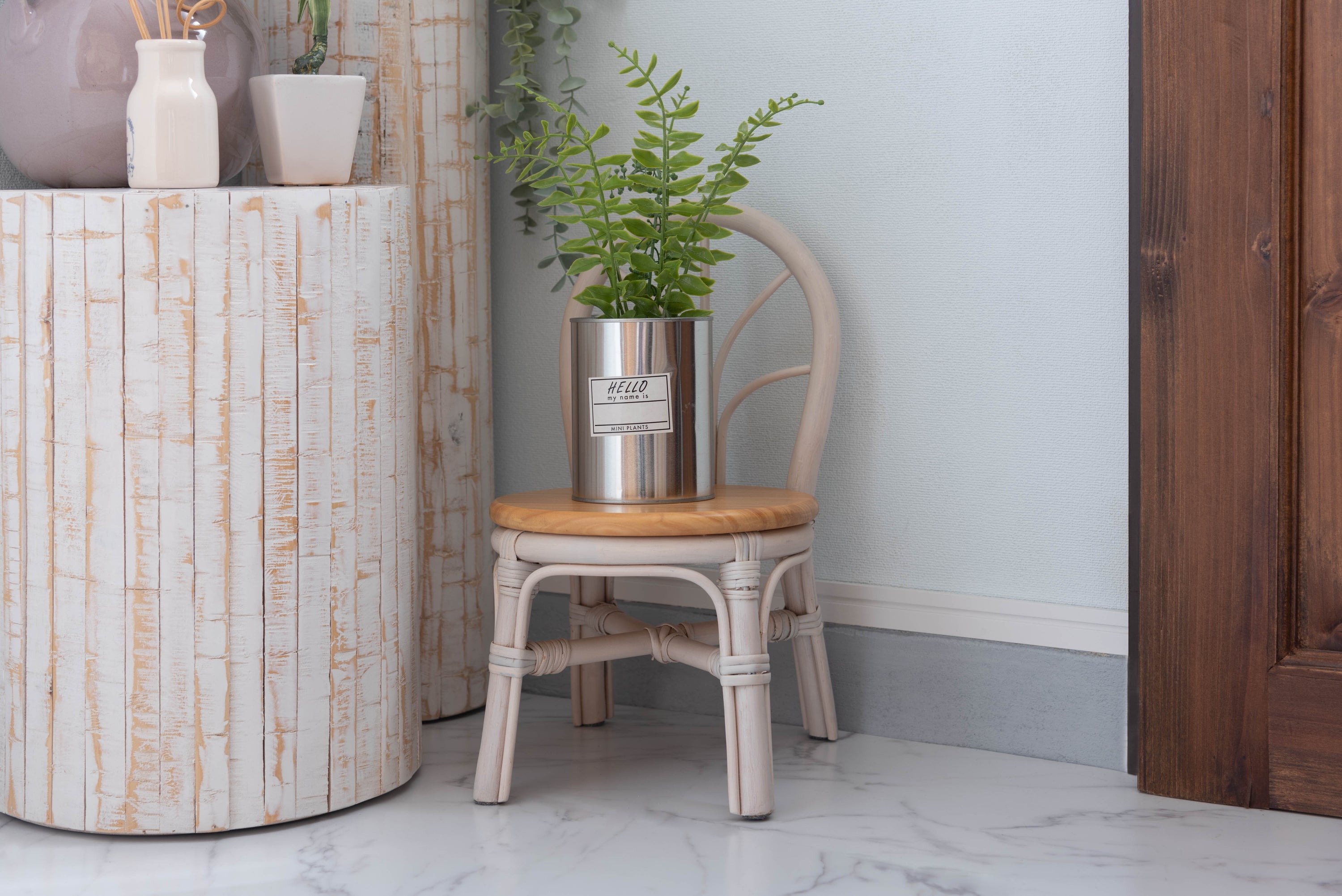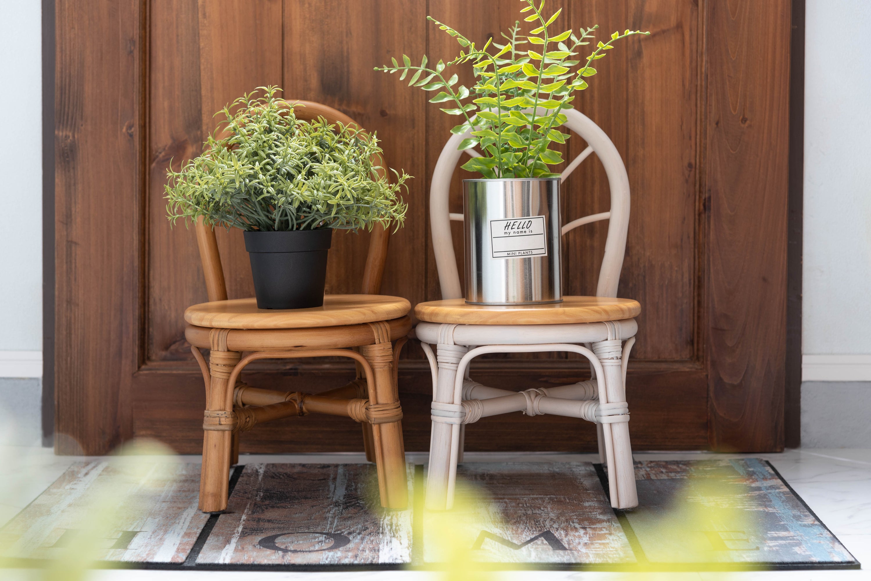 小さくてかわいらしいチェア型プランター。ラタンと天然木を組み合わせた人気のデザインです。フラットな天板はより安定し、植物や小物を置いたりそのままインテリアとして飾ることもできます。