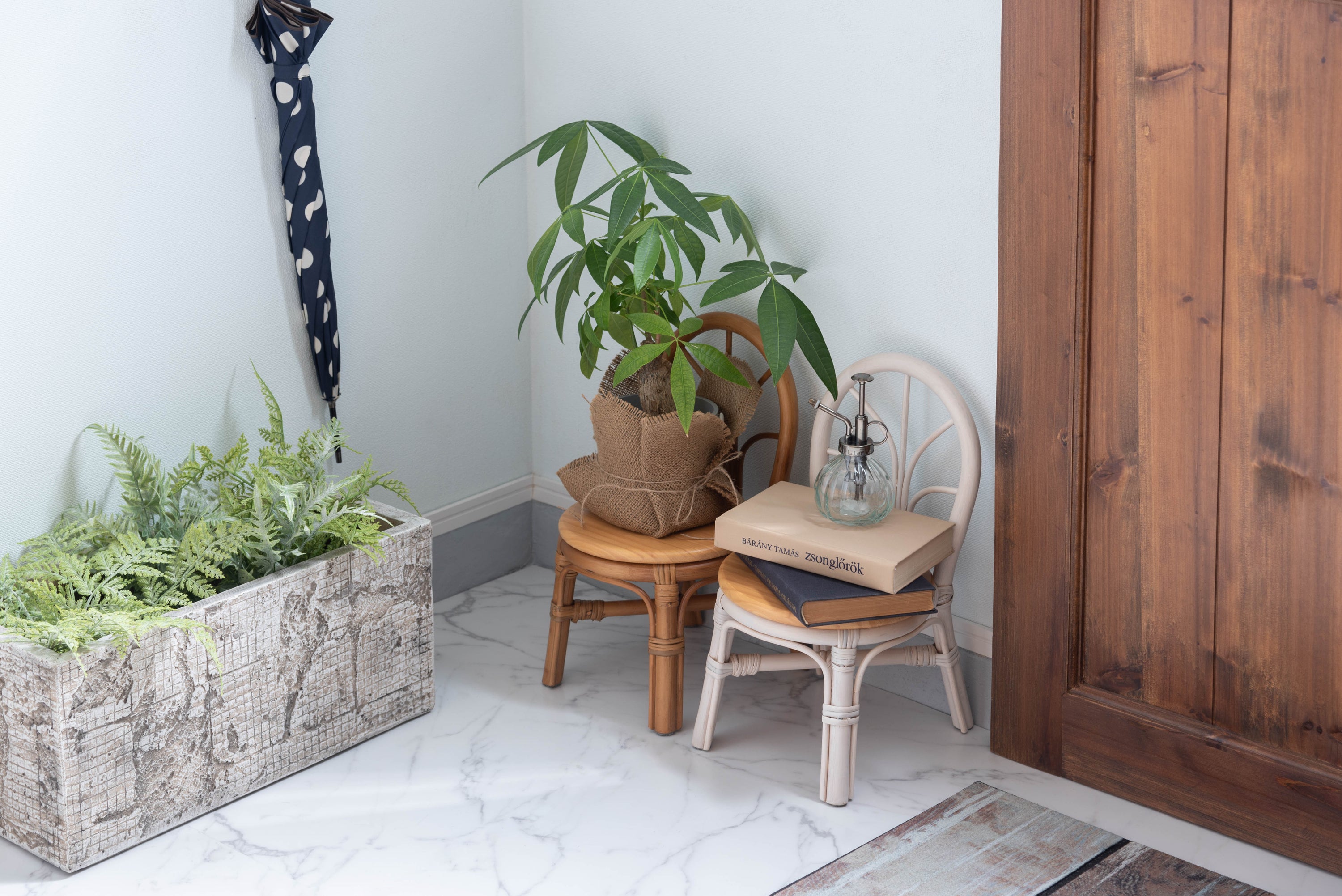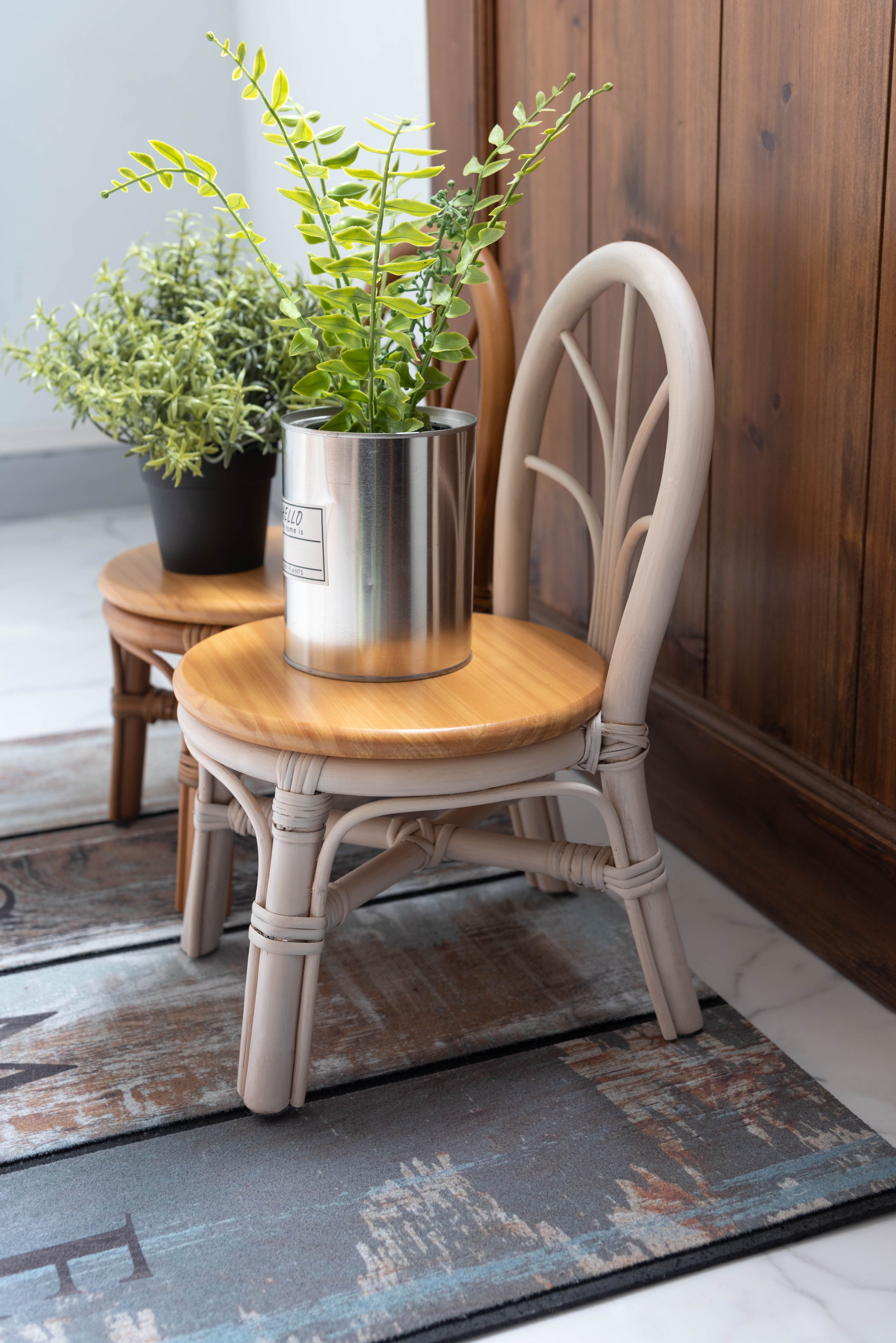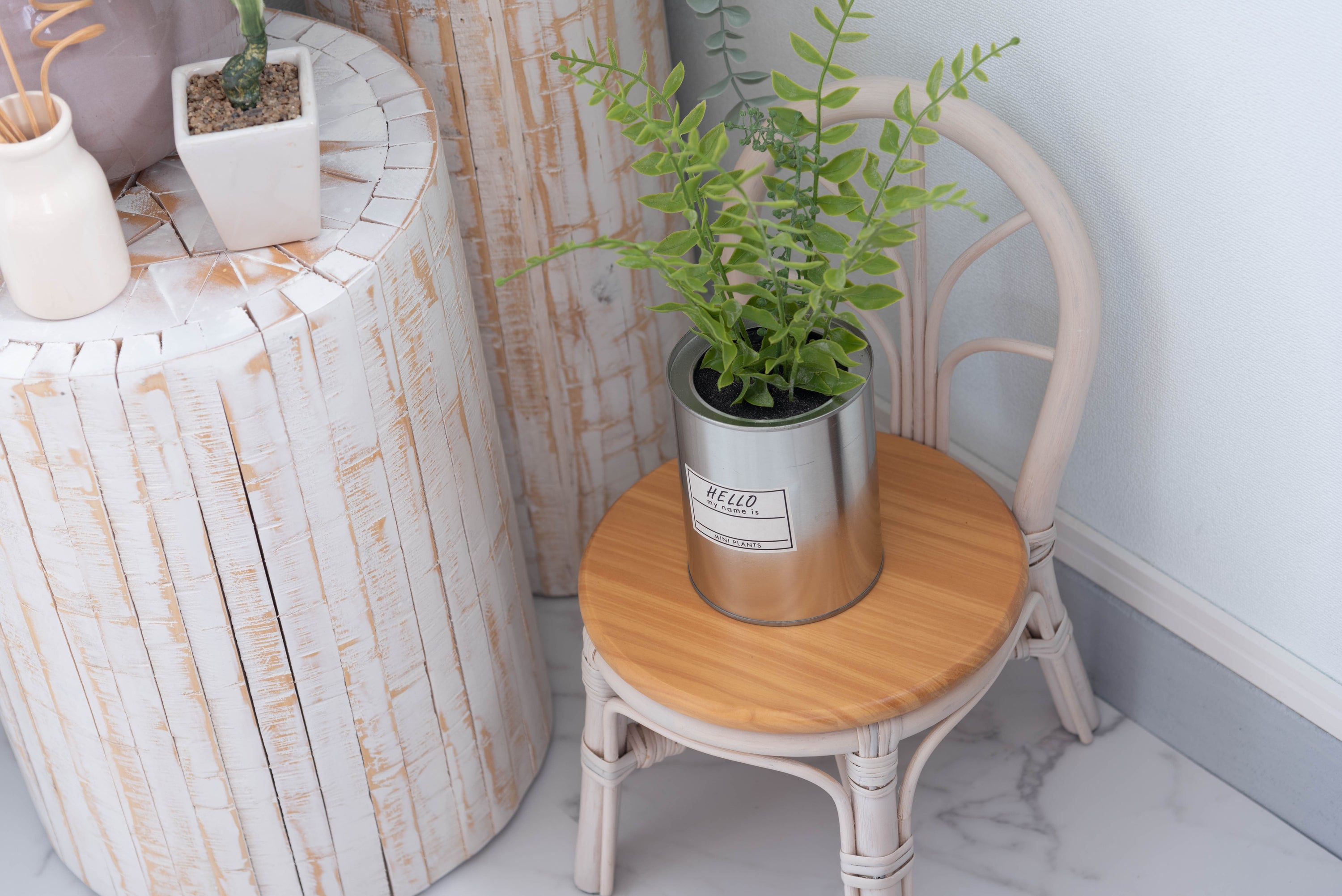 小さくてかわいらしいチェア型プランター。ラタンと天然木を組み合わせた人気のデザインです。フラットな天板はより安定し、植物や小物を置いたりそのままインテリアとして飾ることもできます。
