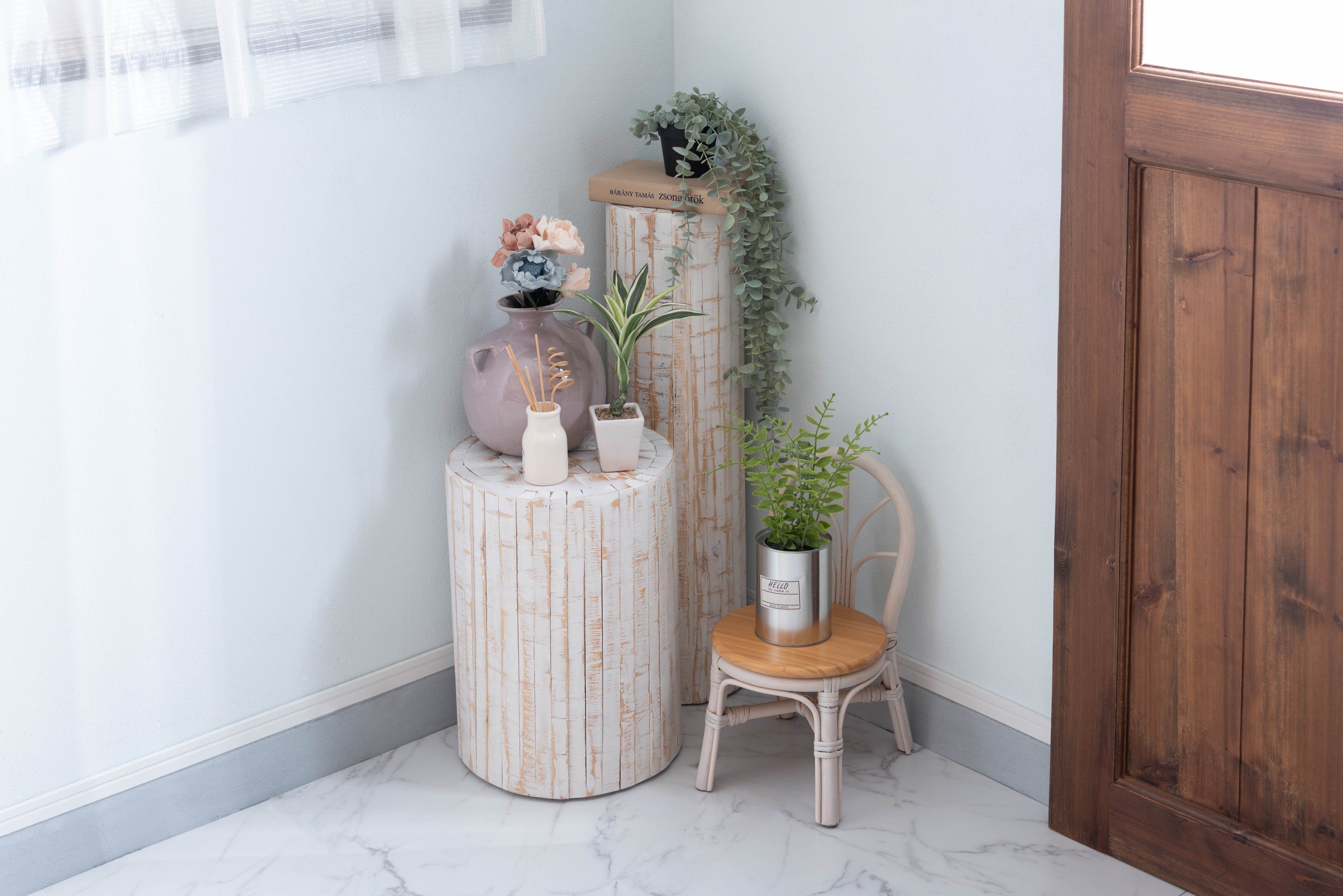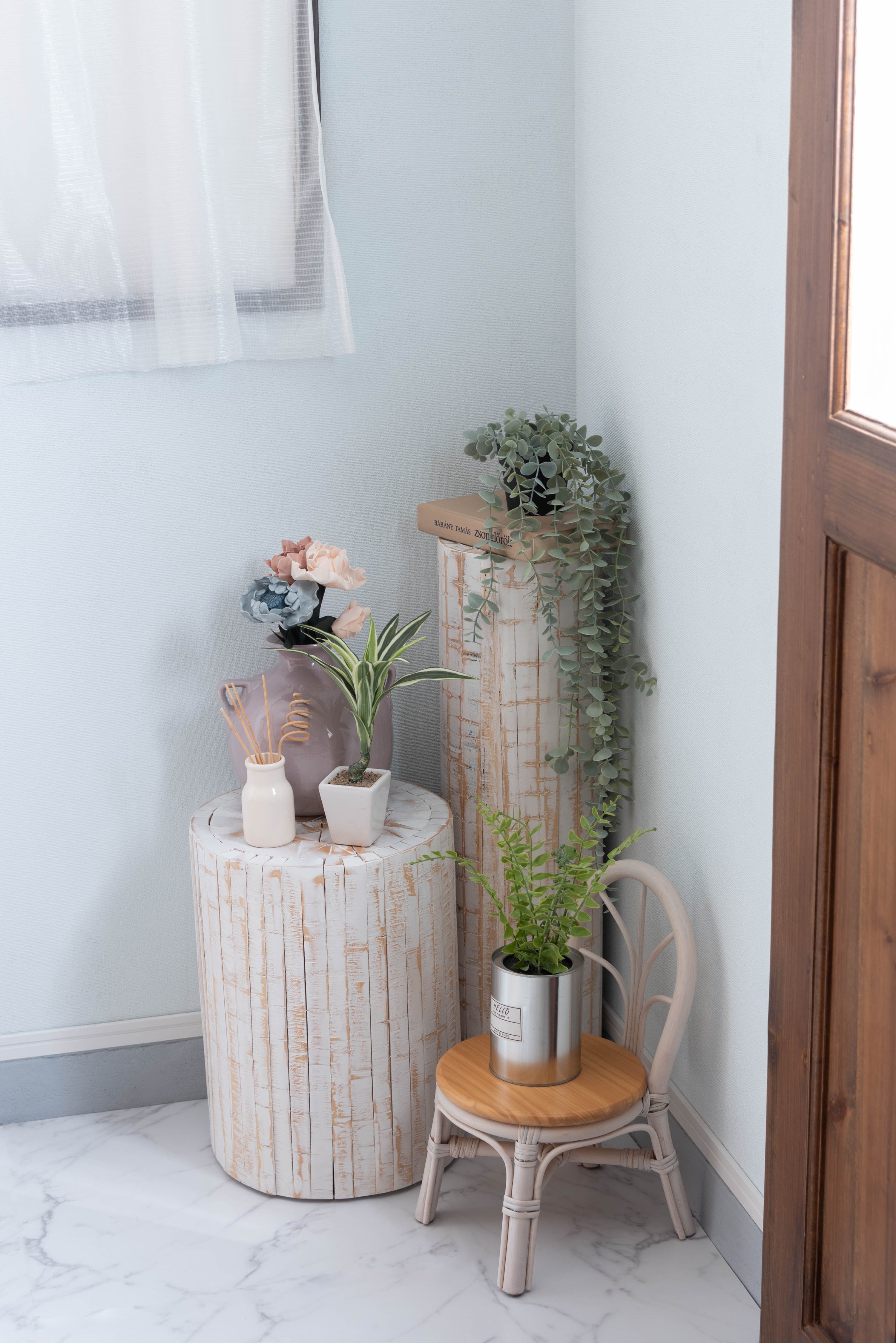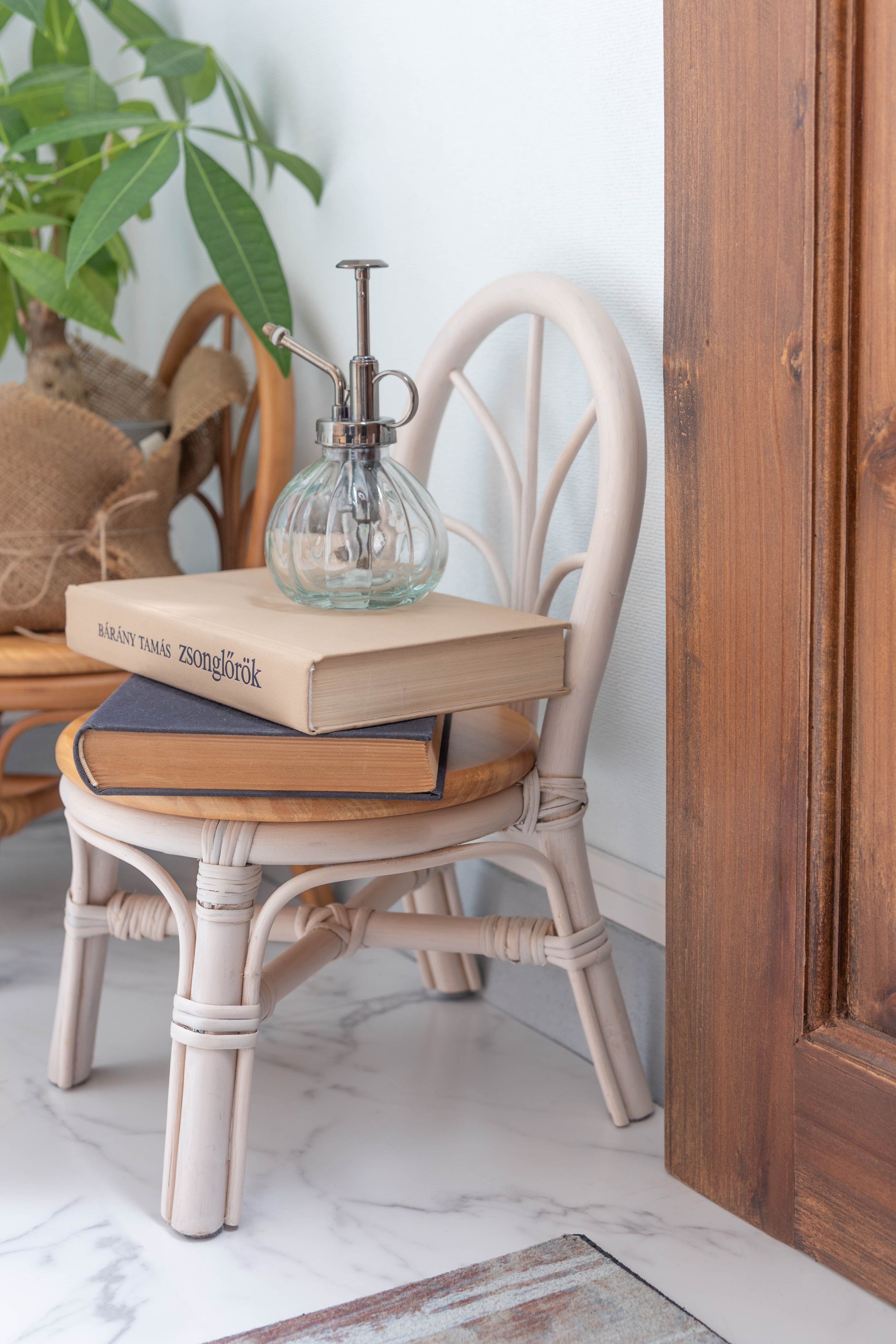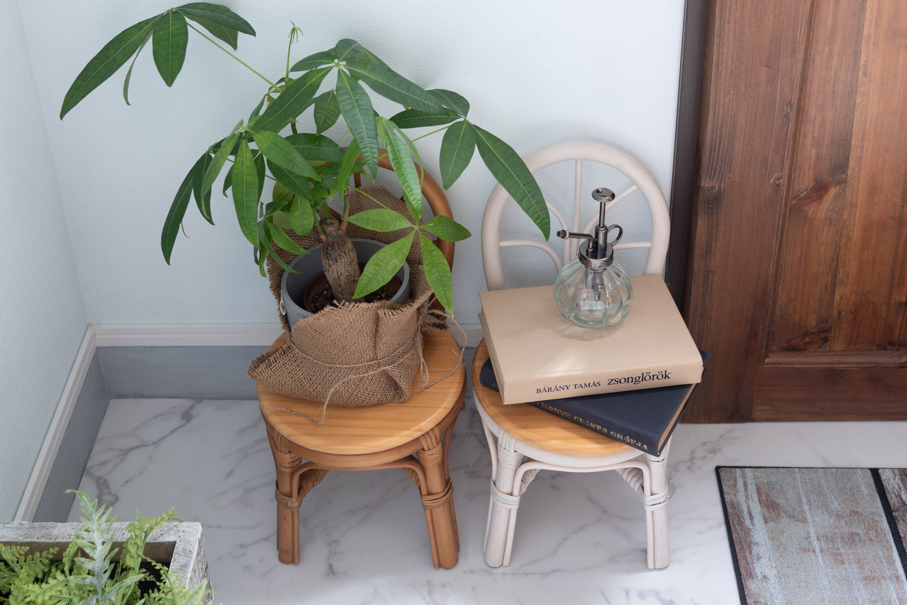 小さくてかわいらしいチェア型プランター。ラタンと天然木を組み合わせた人気のデザインです。フラットな天板はより安定し、植物や小物を置いたりそのままインテリアとして飾ることもできます。