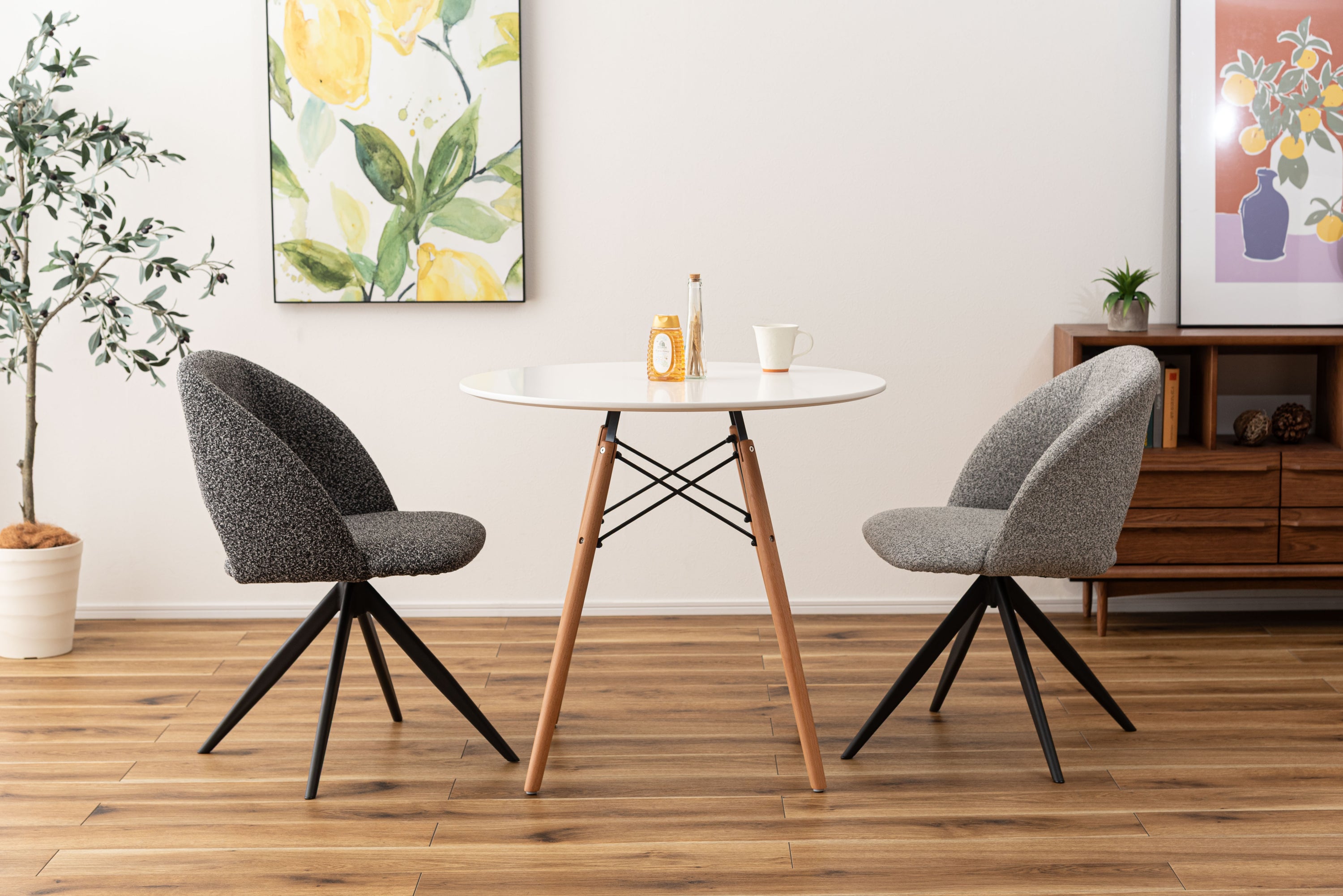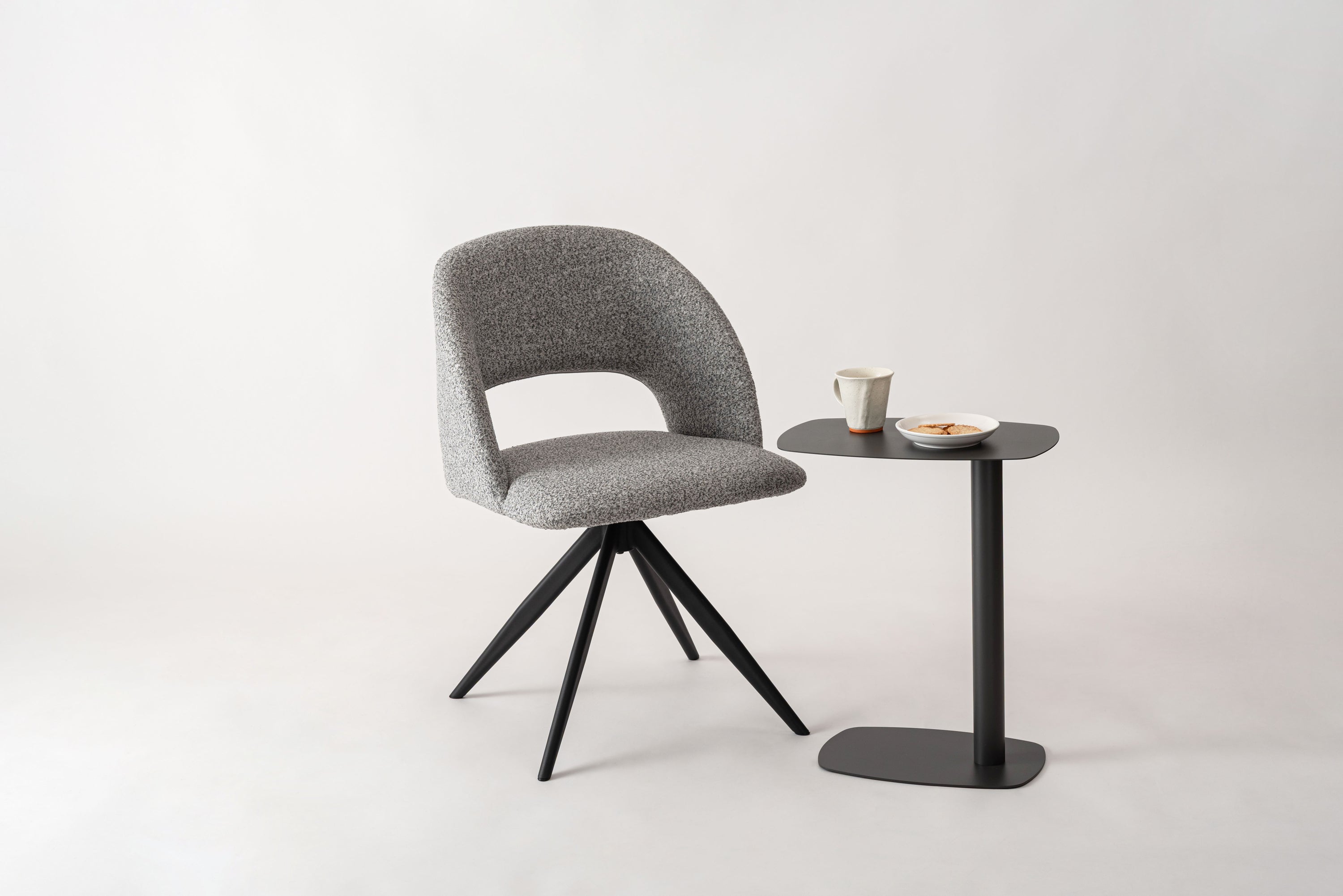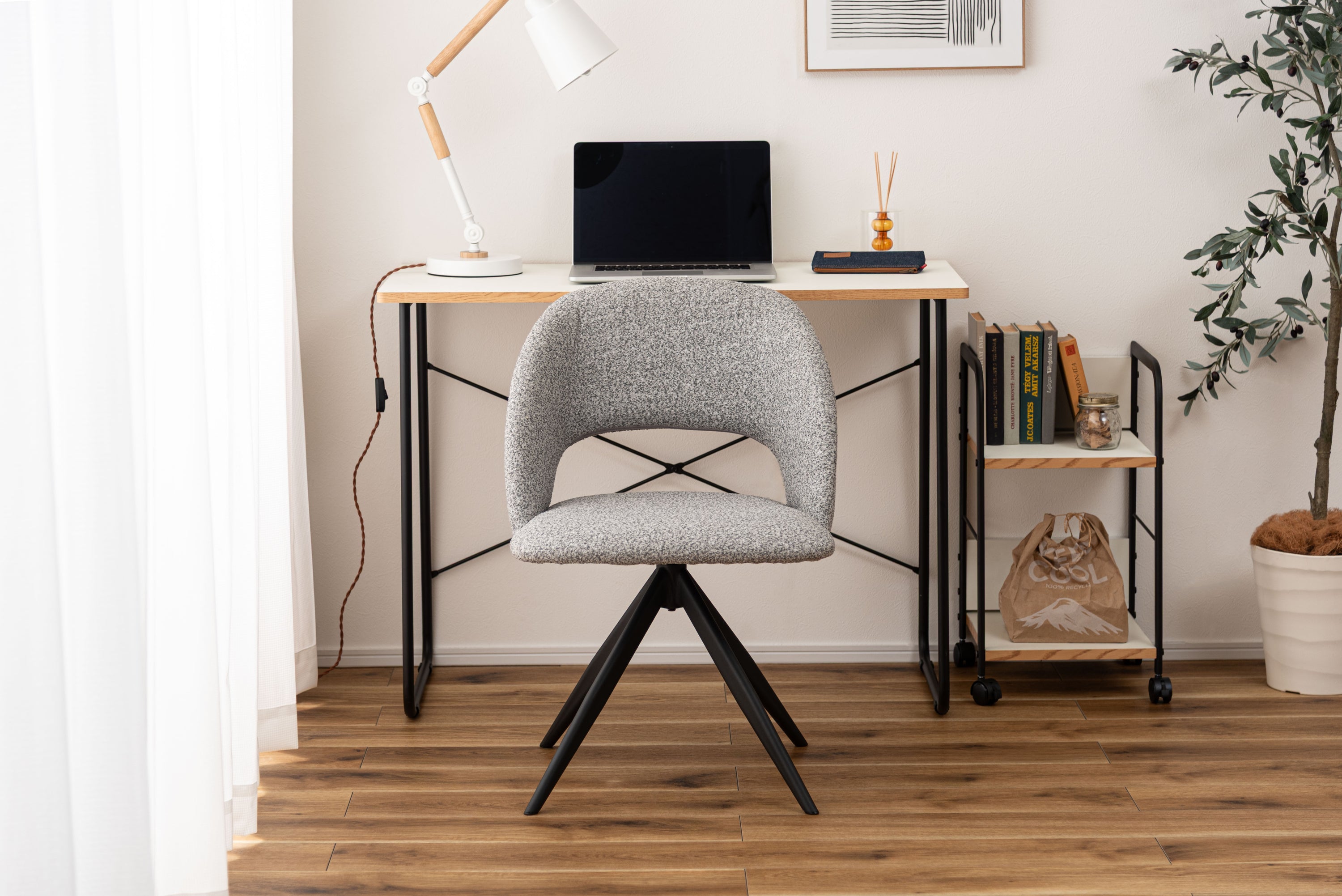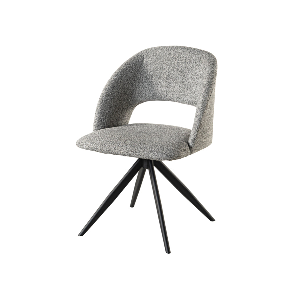 デザインと利便性を兼ね備えた回転チェア。曲線を活かしたボリューム感のある本体と、放射状に伸びた軽快な印象を感じさせる脚部が融合した回転チェア。腰部に抜きを作ることにより重量感を軽減。座面が回転するので座ったまま身体の向きを変えることができ、テーブルへの出入りもしやすくなります。座面が360度回転する仕様。立ち座りの動作もスムーズ。緩やかに湾曲した背面が身体にフィット。柔らかすぎず硬すぎない程よいクッション性で、長時間座っても疲れにくい仕様。細身のスチール脚が全体の印象を引き締めスタイリッシュさを演出。