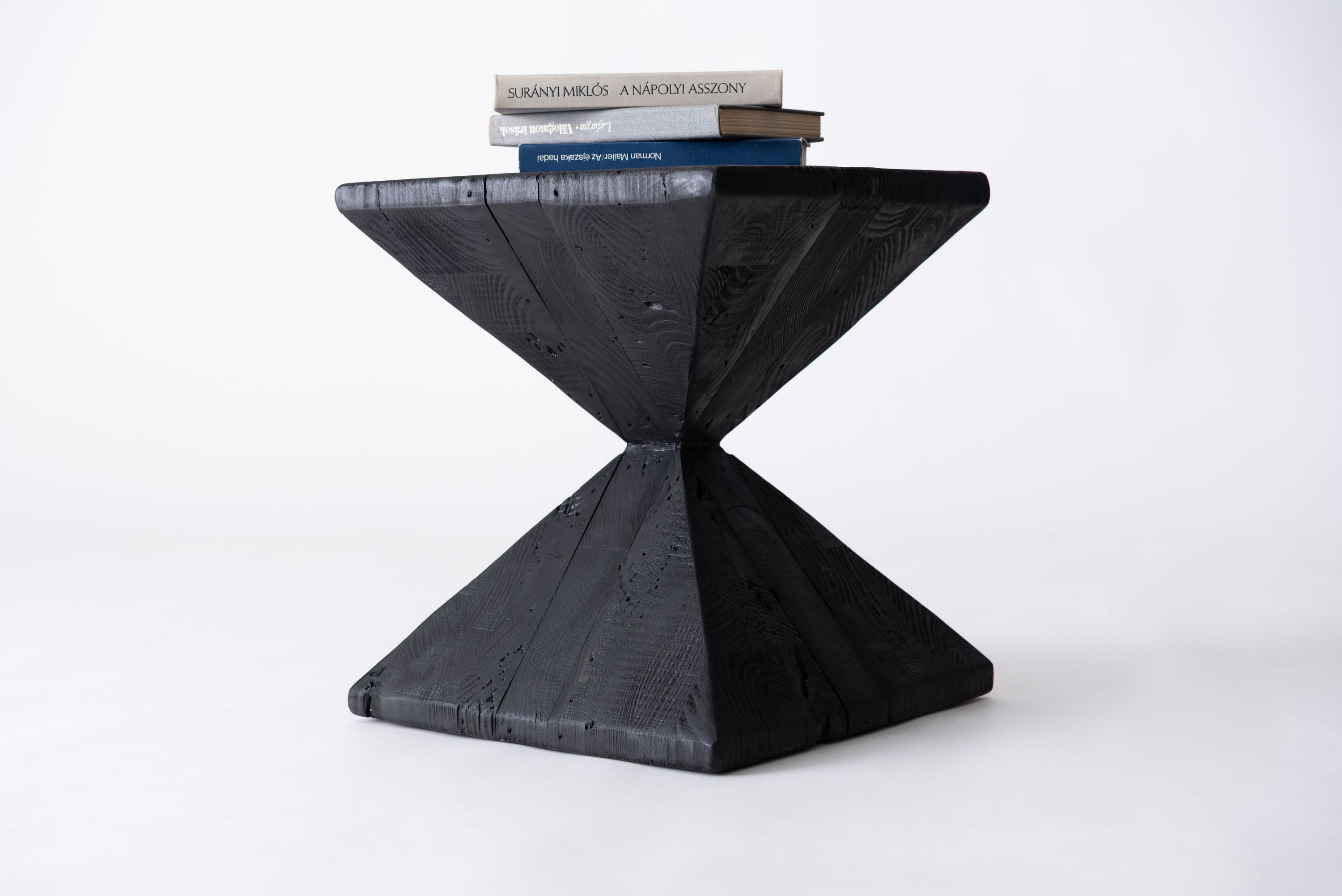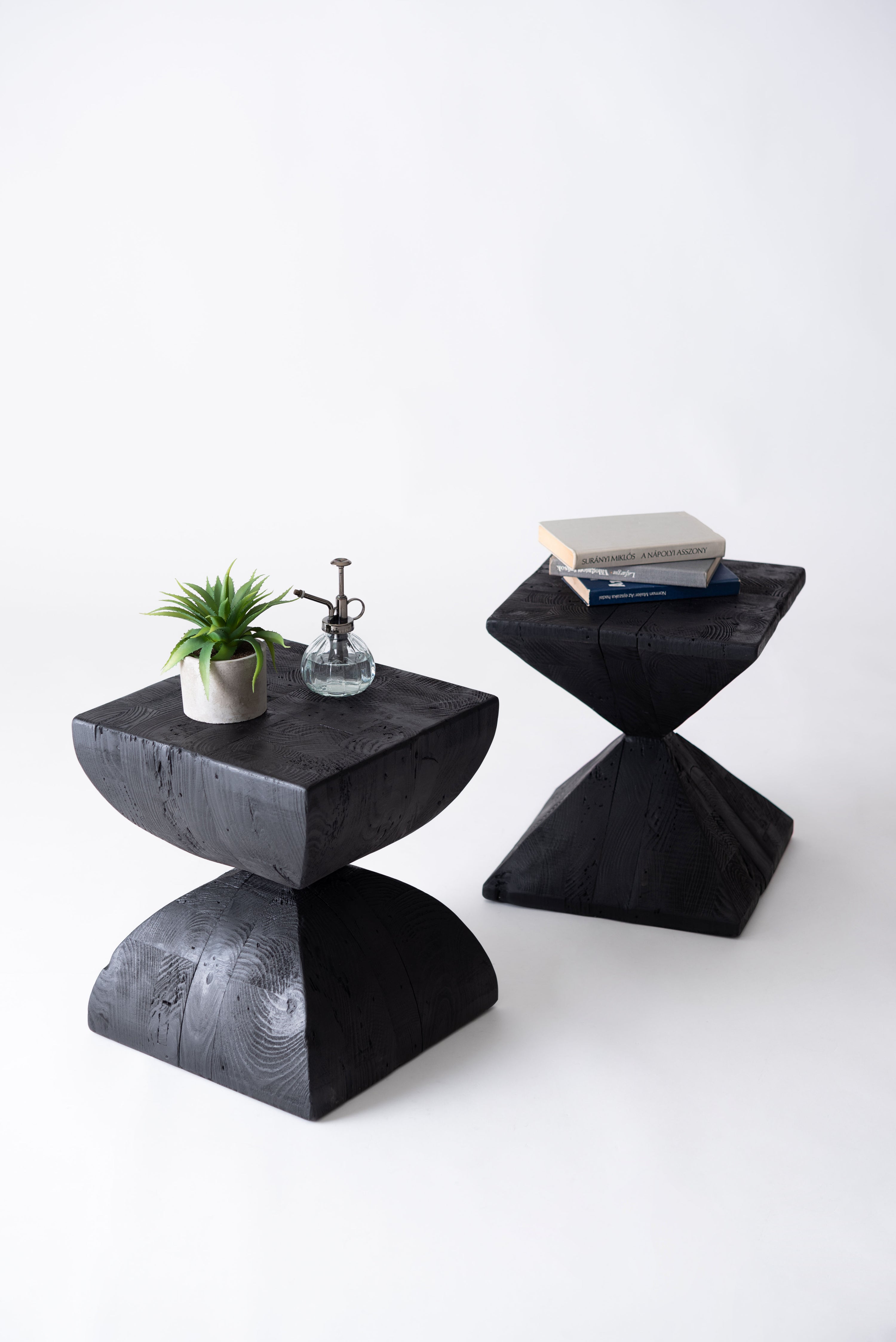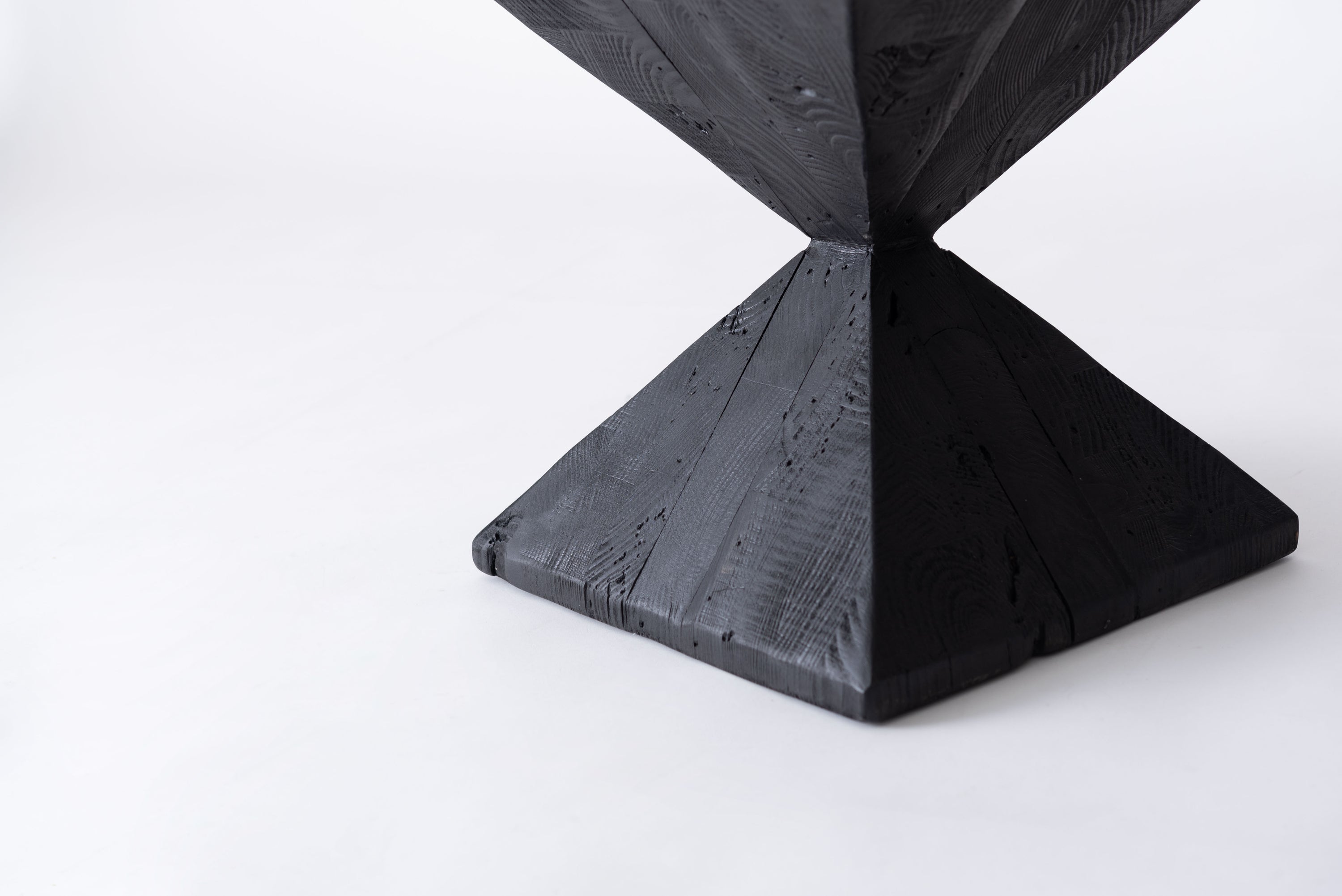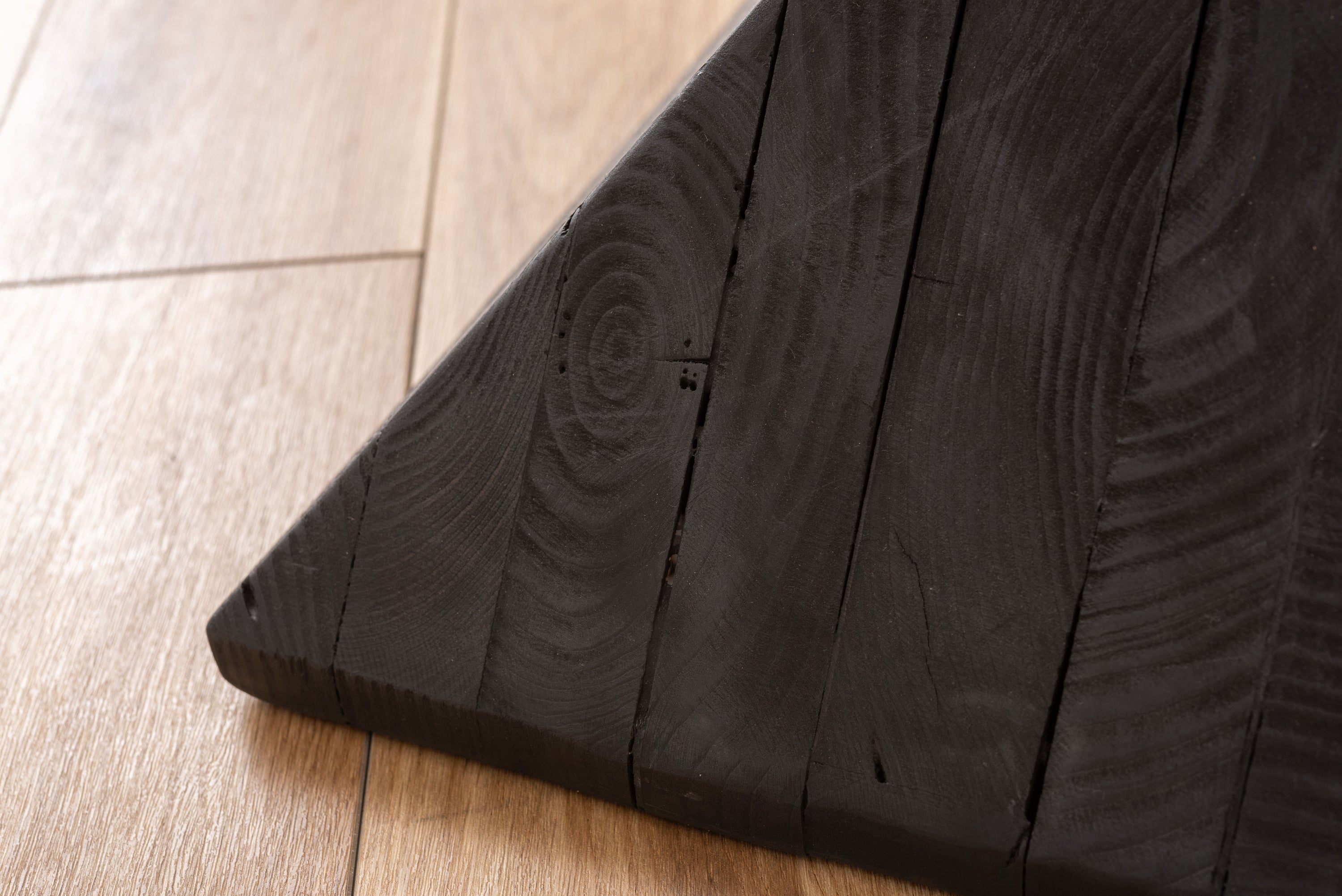 パイン古材×黒×線の美しさのバランス。インテリアのひとつとして置くだけでも存在感を放つサイドテーブル。表情の異なるパイン古材の質感と独特の形状が上質な空間を演出。ディスプレイ棚やスツールとしても使うことができます。ゆったりと使える上面。裏面に滑り止めフェルト付き。