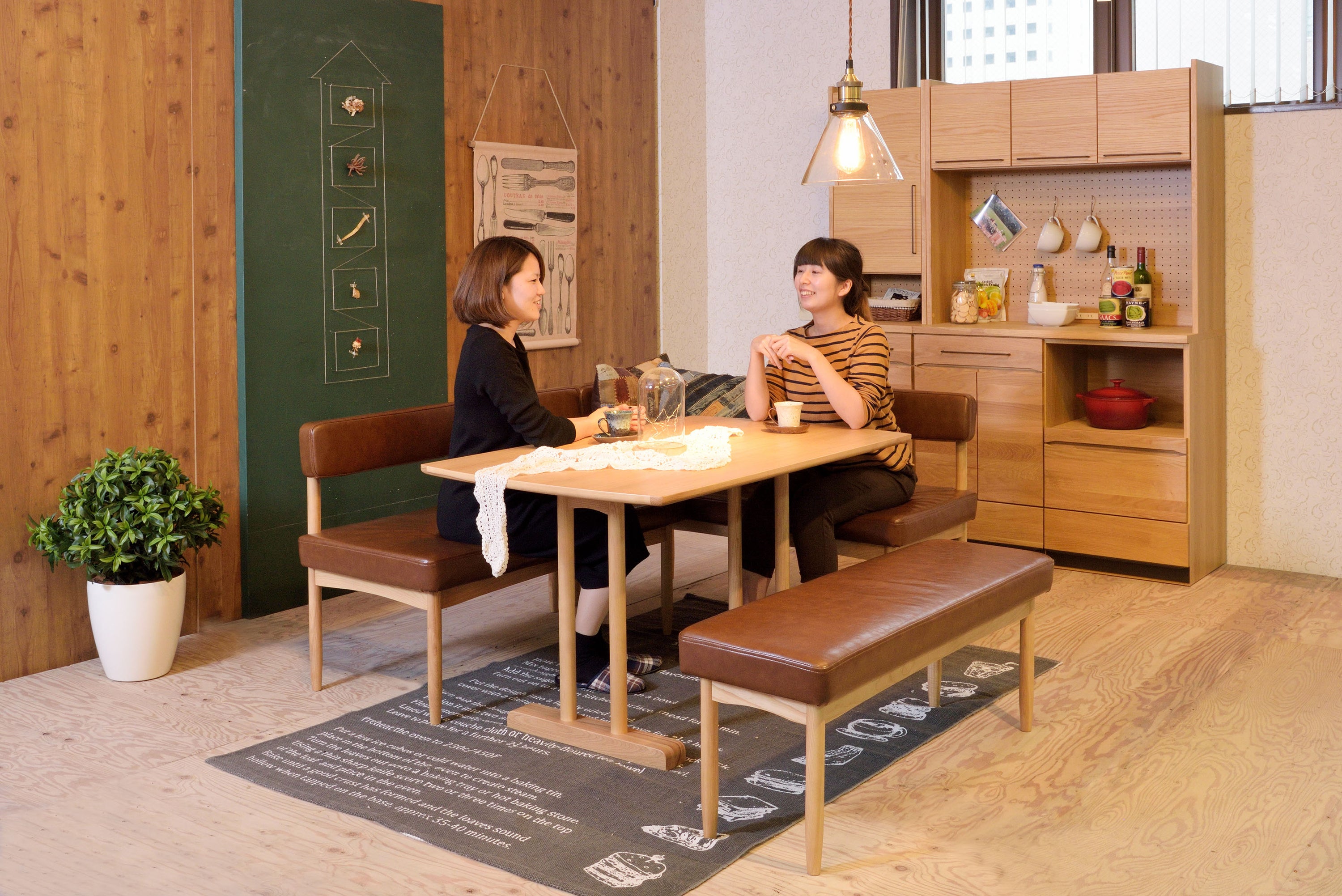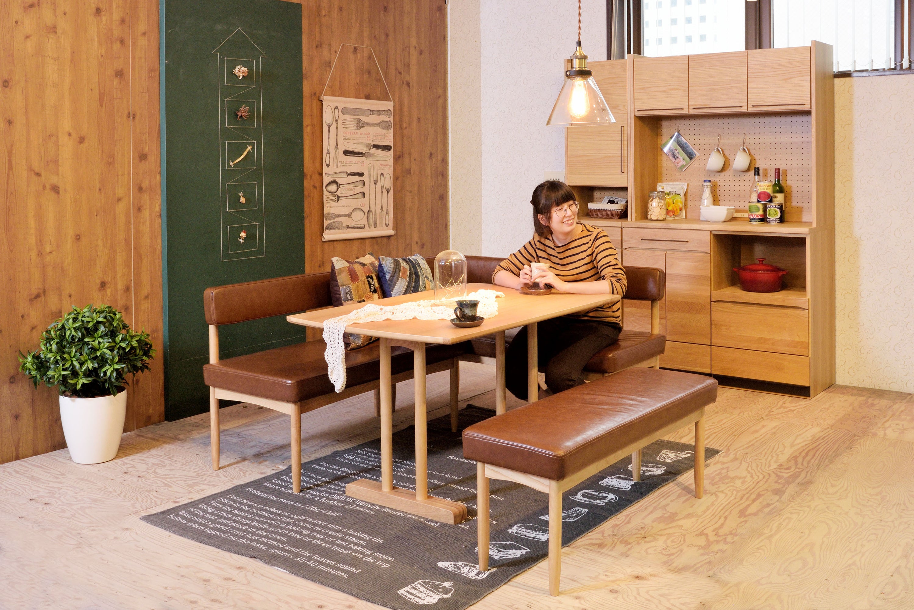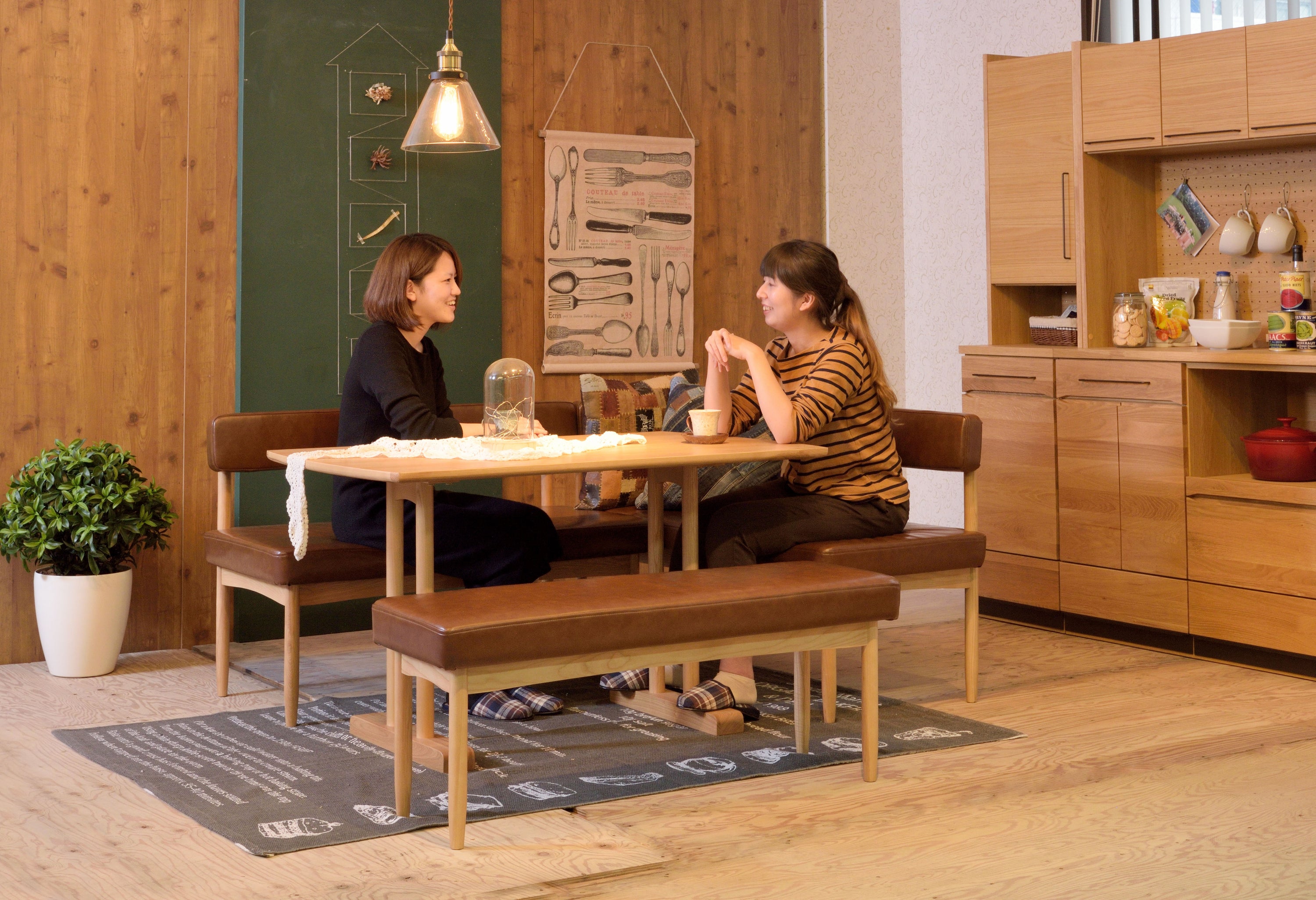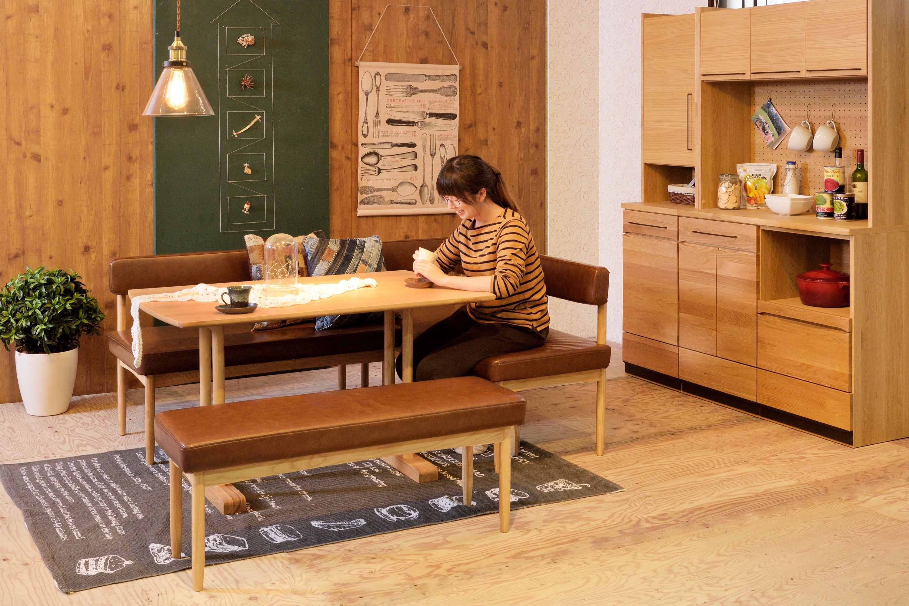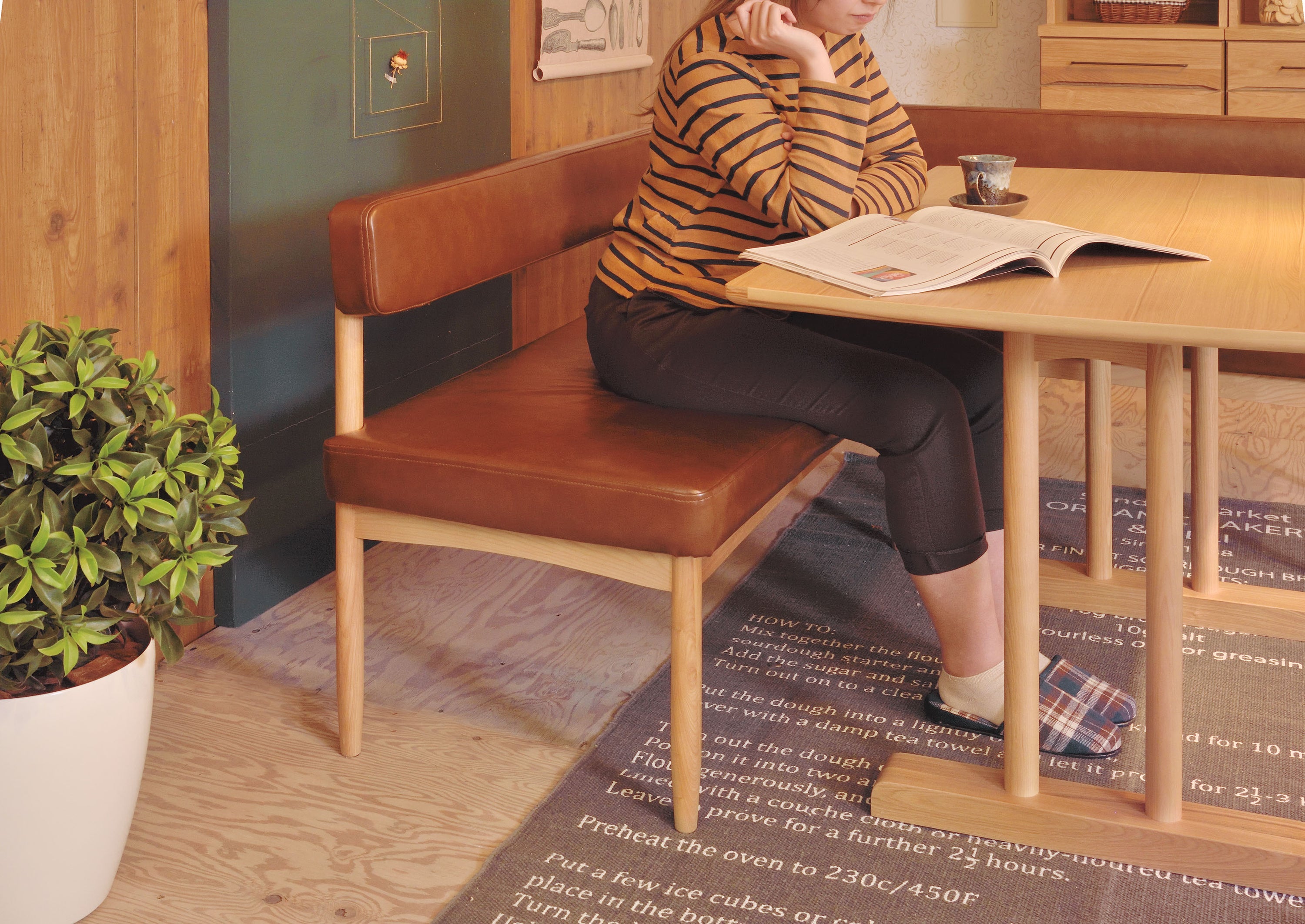 あの時立ち寄ったおしゃれなカフェの雰囲気をお部屋で再現できるダイニングアイテムです。合皮と天然木の組み合わせが、ほろにがい大人のカフェ空間に仕上げてくれます。