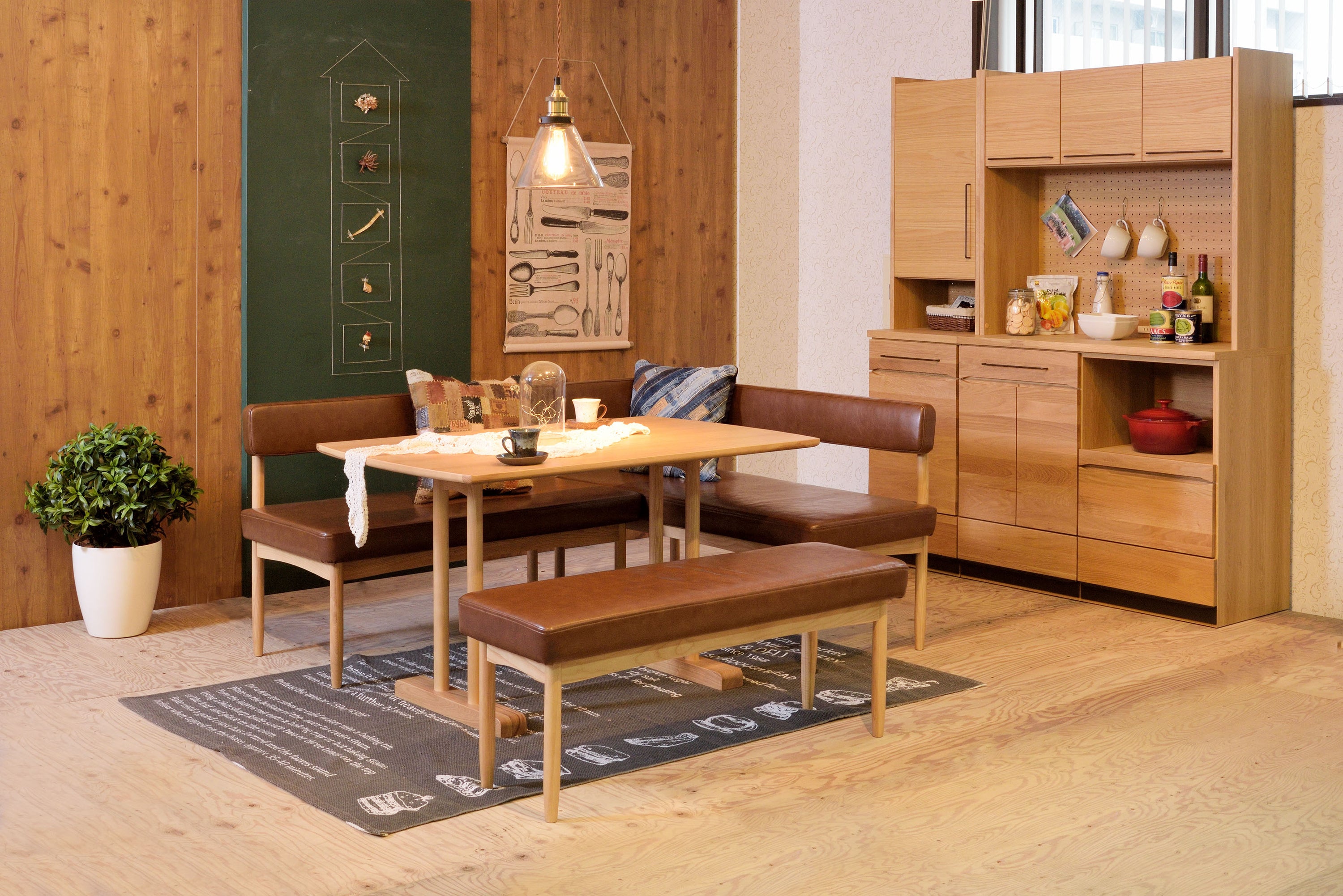 あの時立ち寄ったおしゃれなカフェの雰囲気をお部屋で再現できるダイニングアイテムです。合皮と天然木の組み合わせが、ほろにがい大人のカフェ空間に仕上げてくれます。